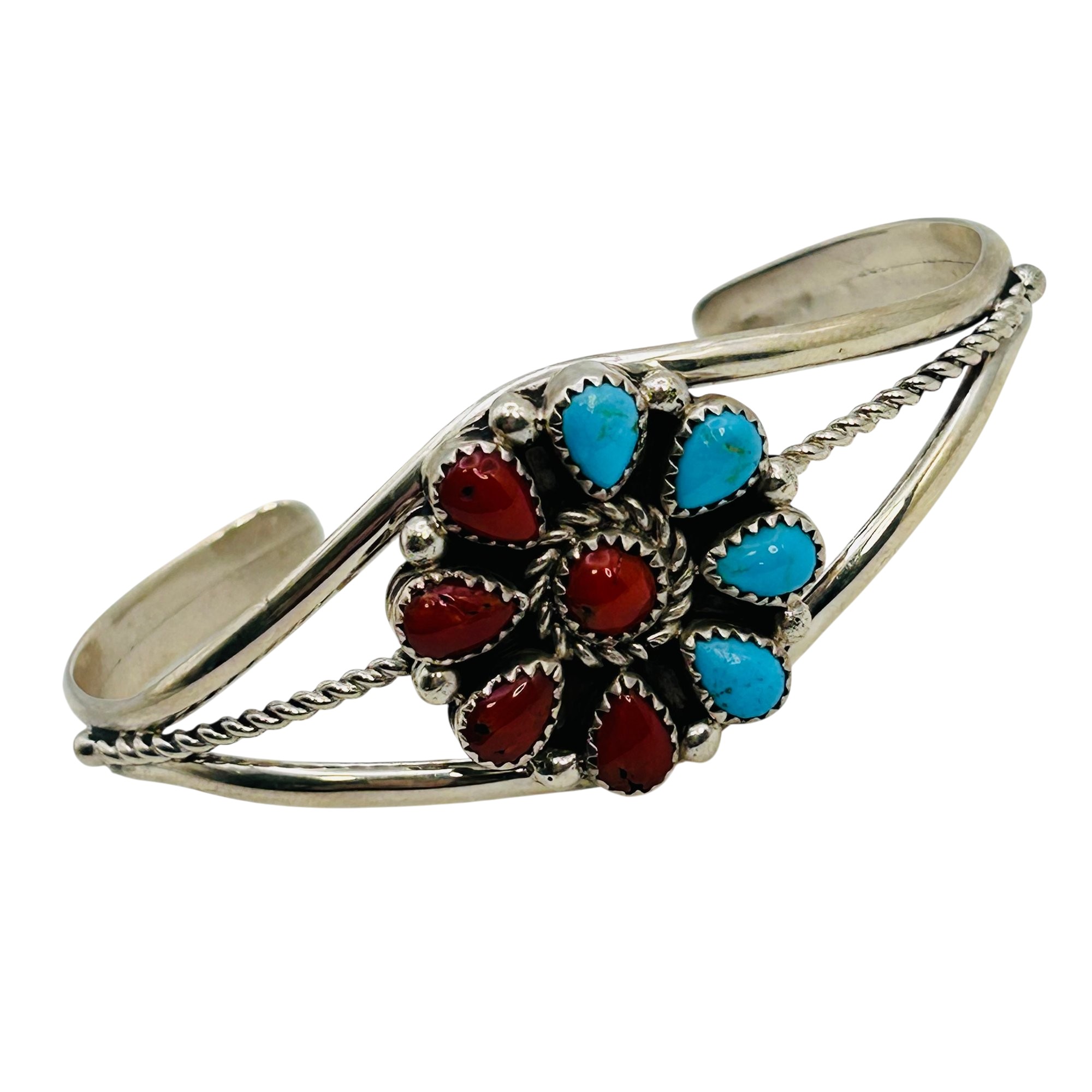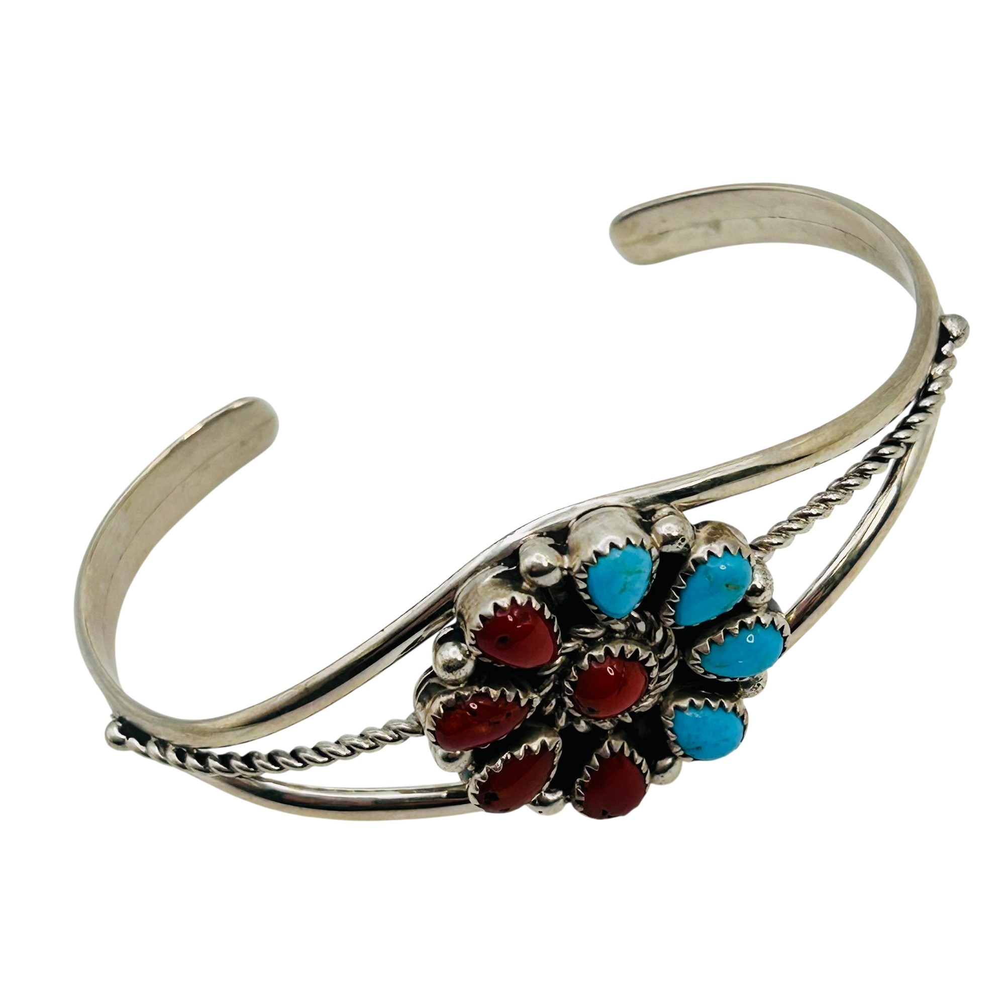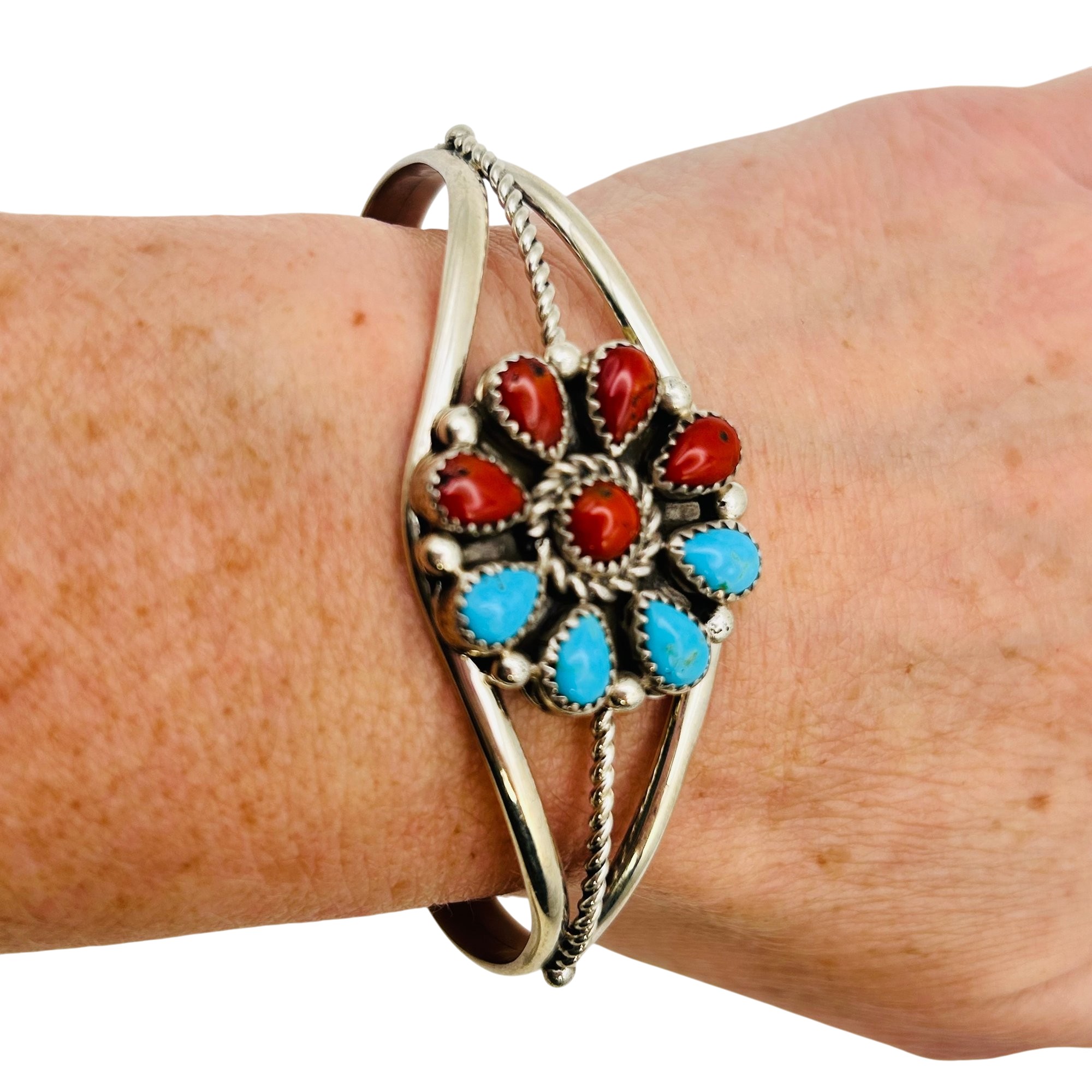 Darlene Begay Native Sterling Turquoise Coral Cuff