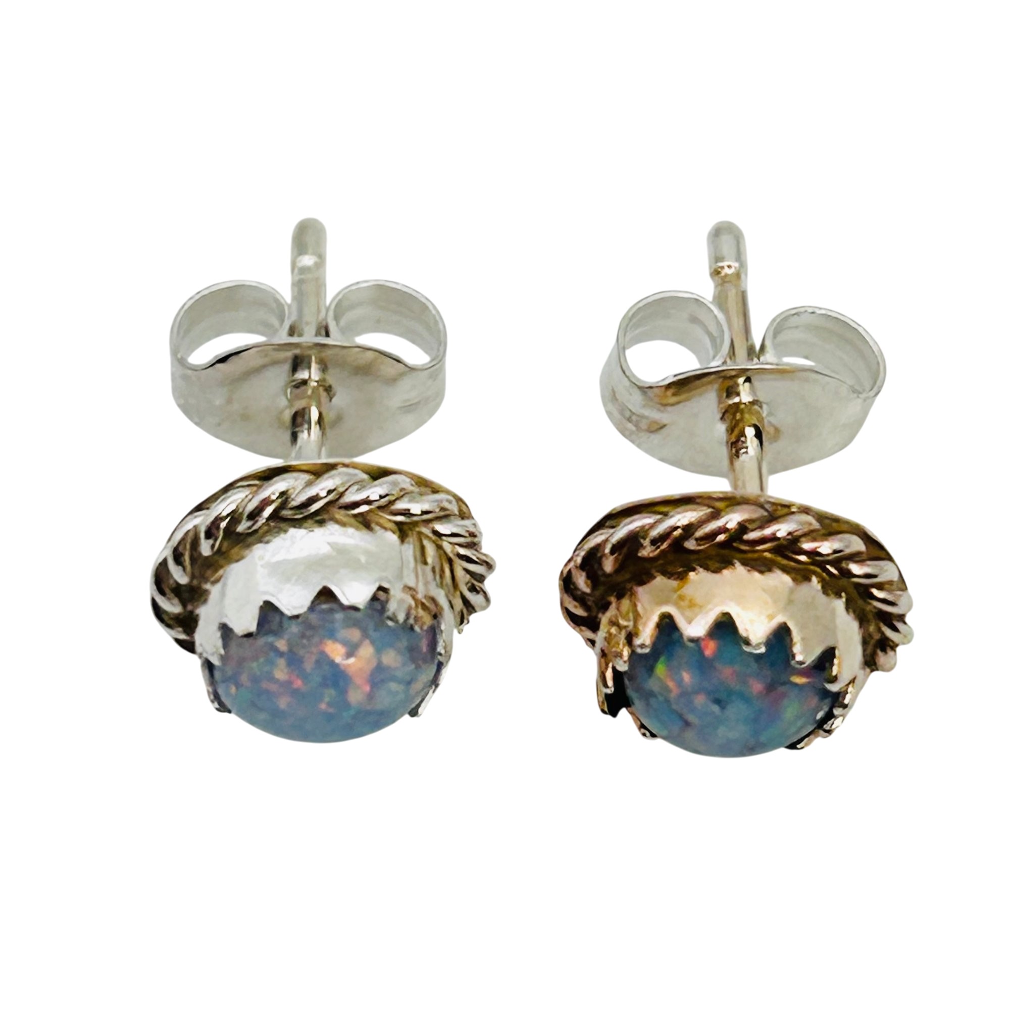 Esther White Navajo Sterling Opal Stud Earring 1.1 grams