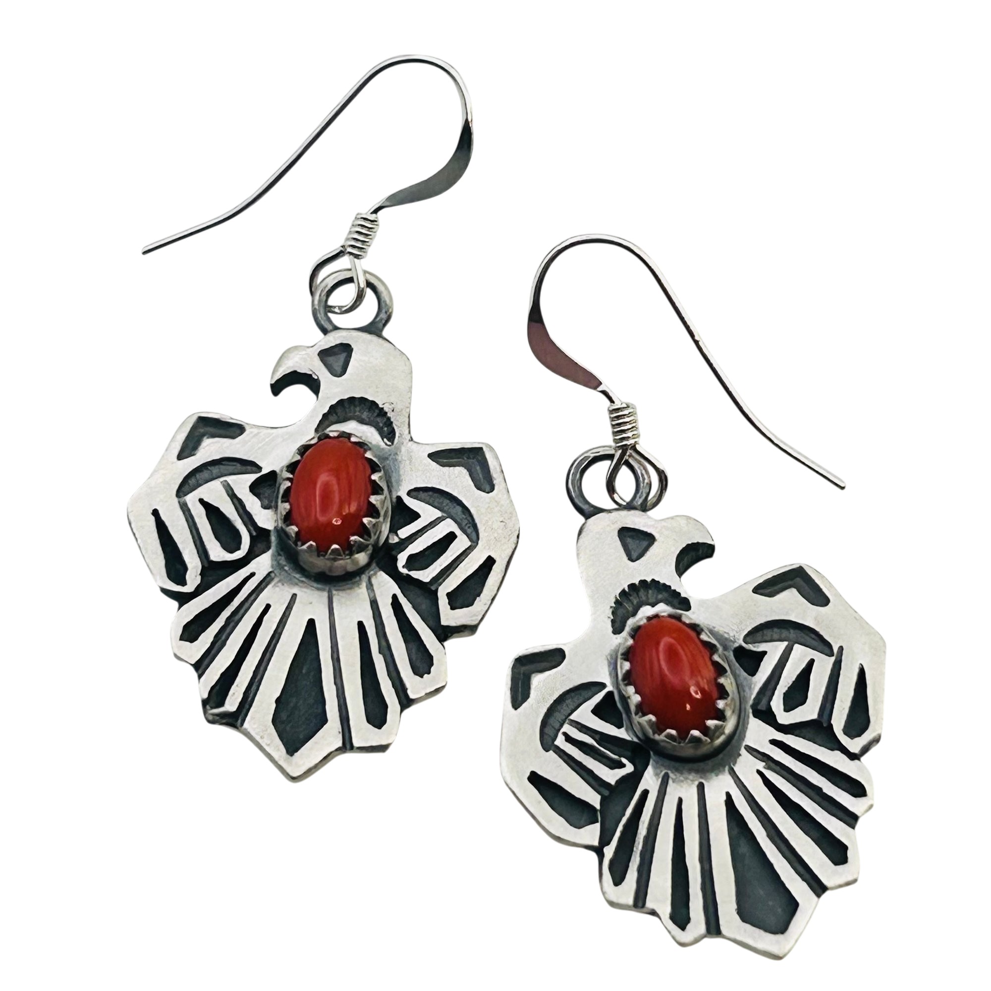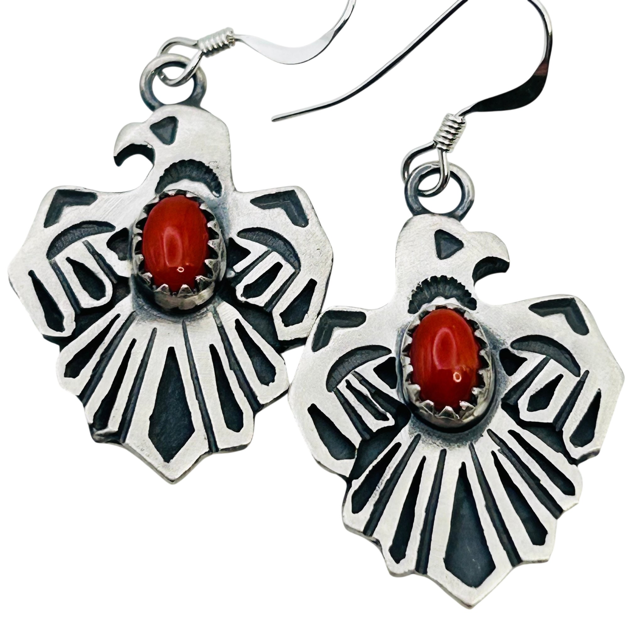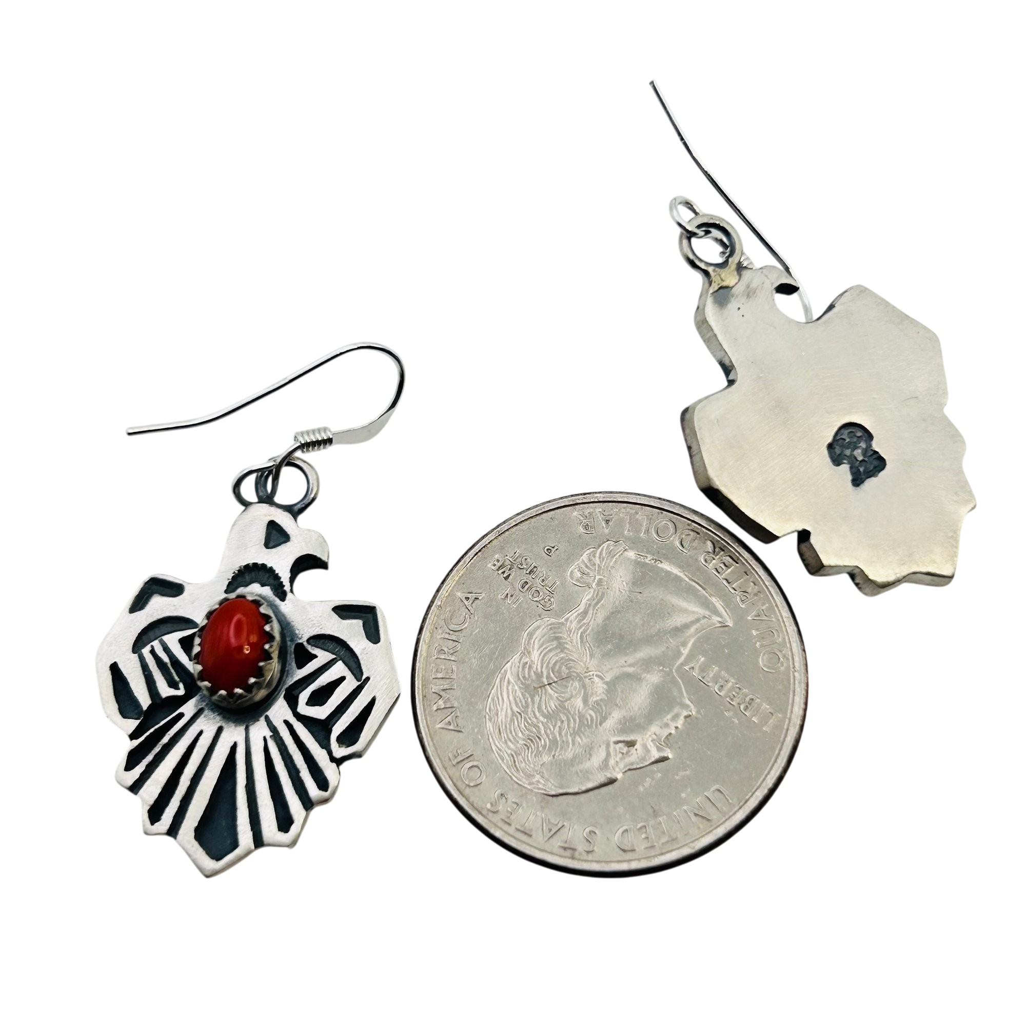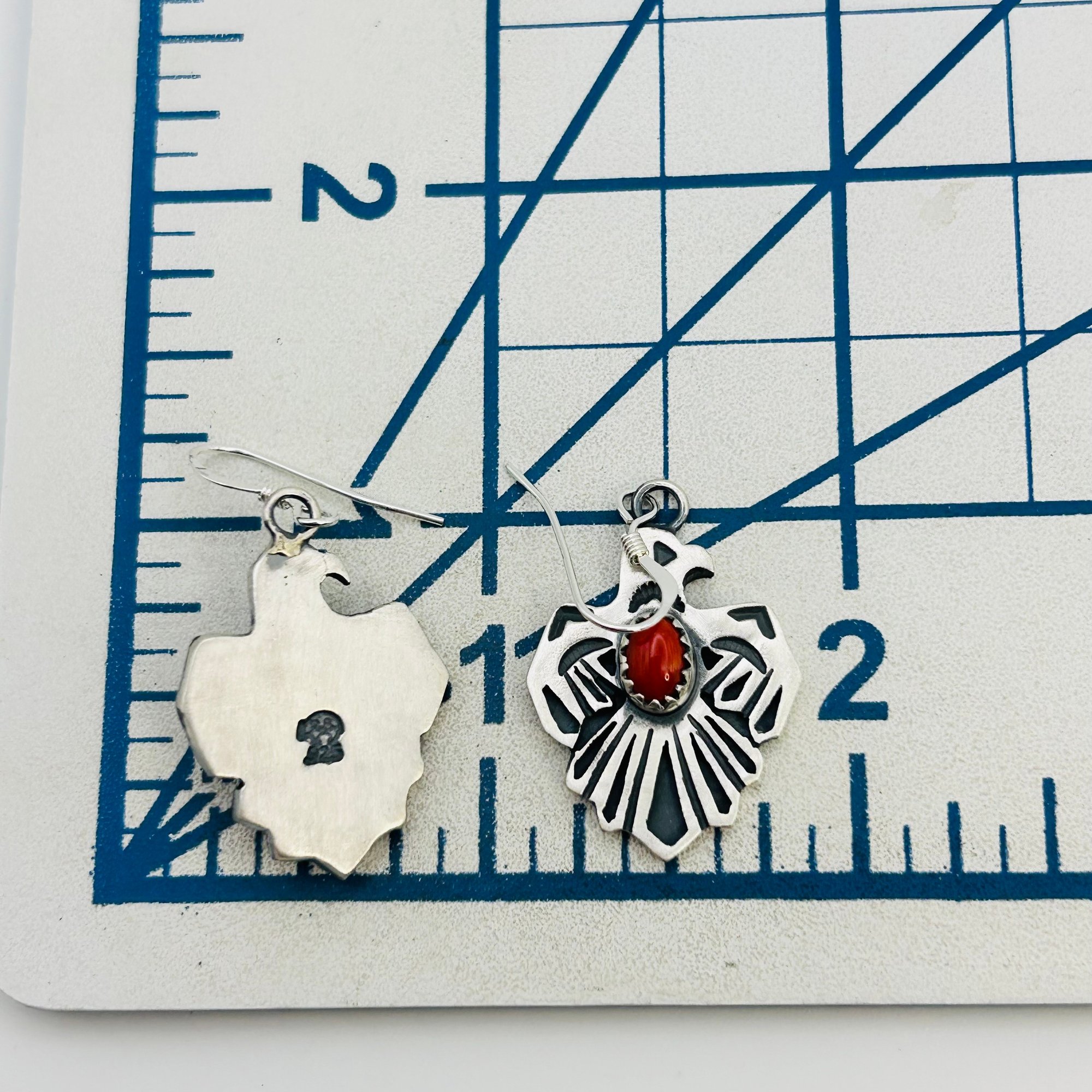 Genevive Frnsc Navajo Sterling Red Coral hook back thunderbird Earrings 9.48 grams
