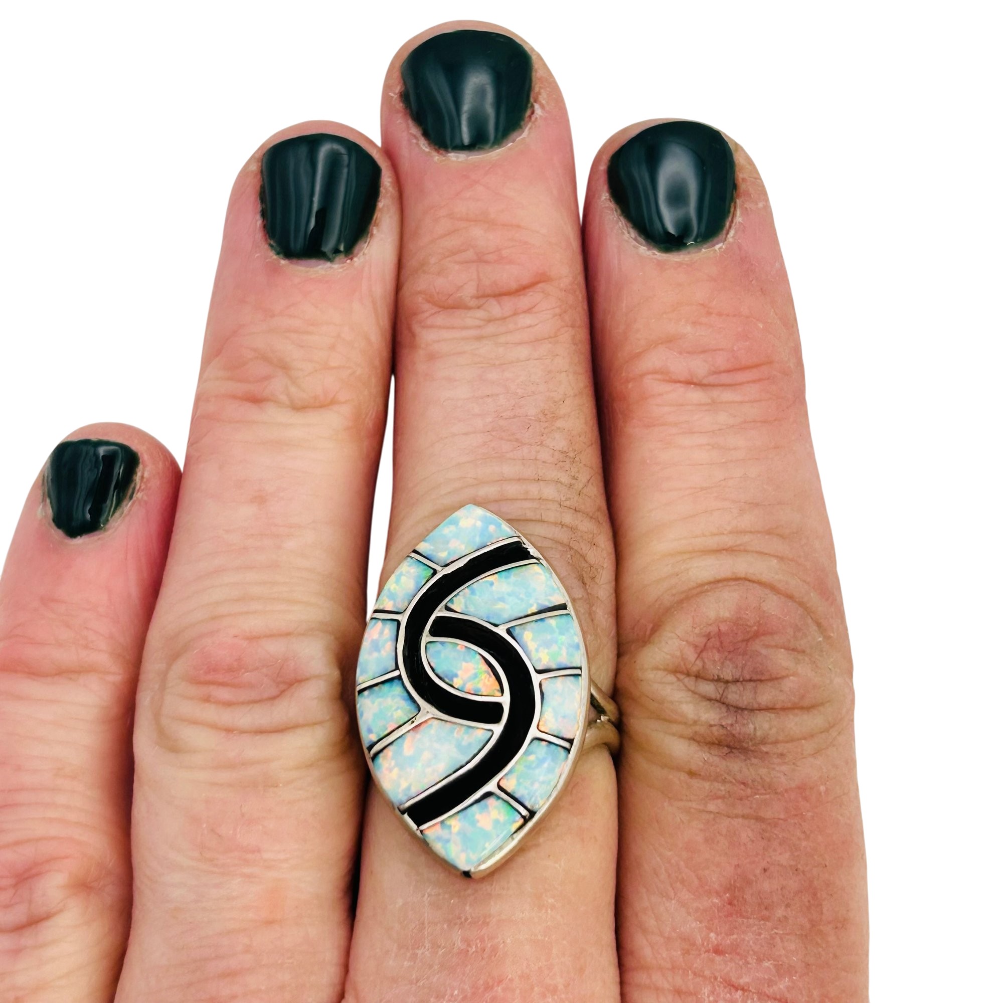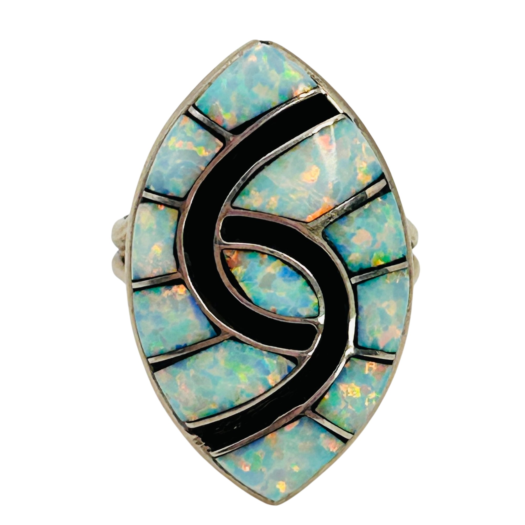 Amy Quandelaoy Native Sterling Opal Ring SZ.8 7.16 grams