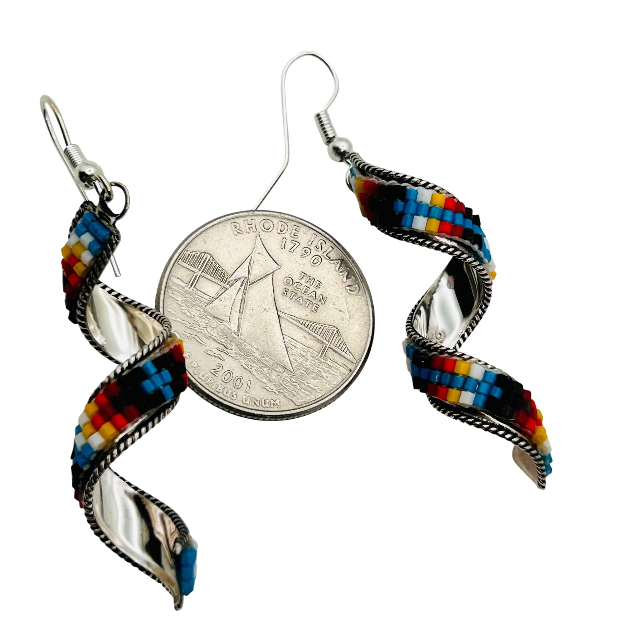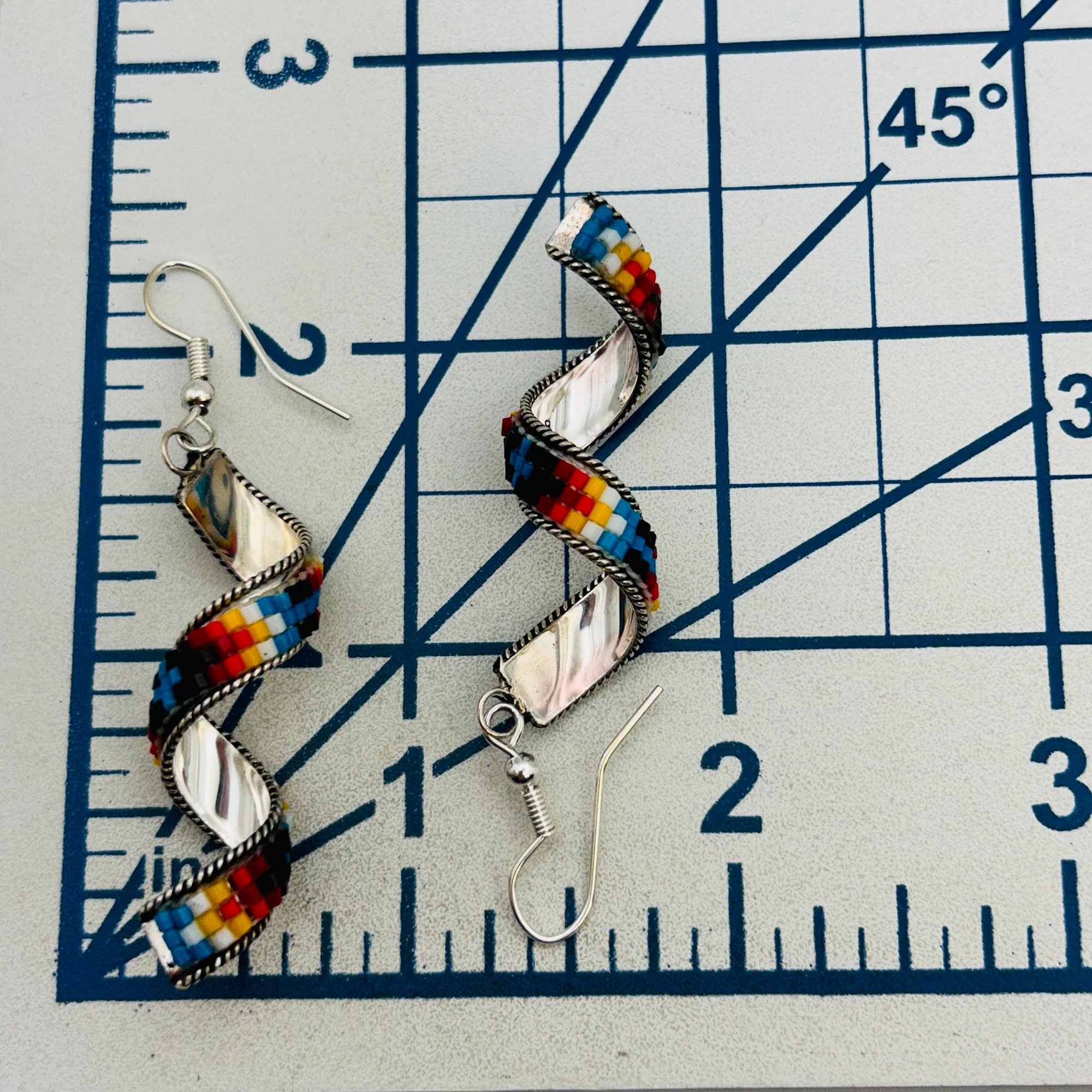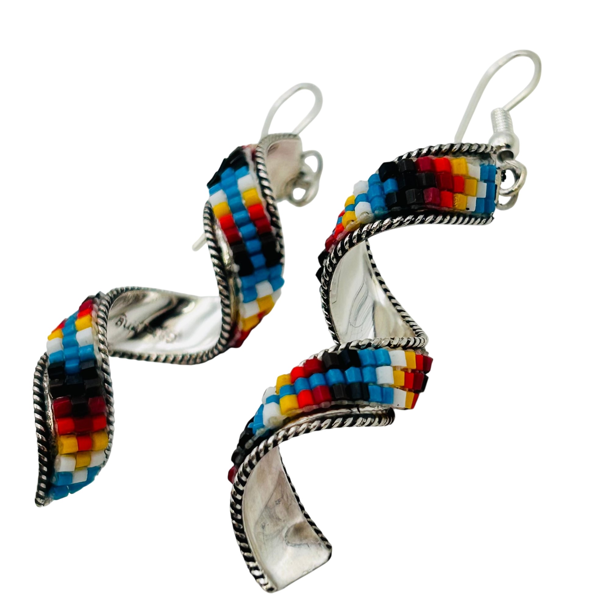 Lucille Romone Navajo Beaded twist hook back dangle earrings 4.43grams