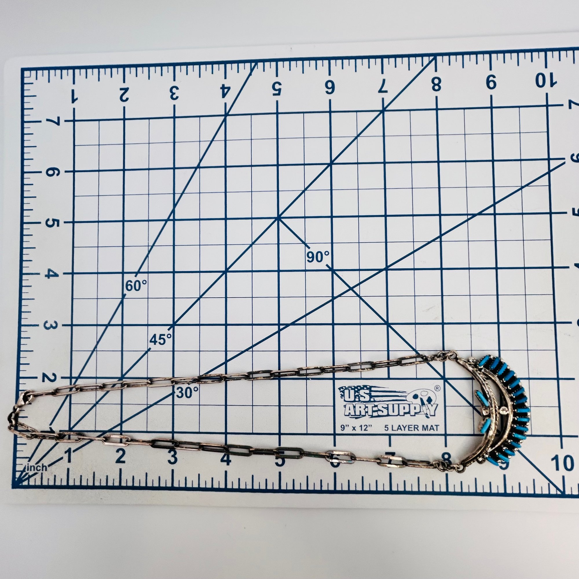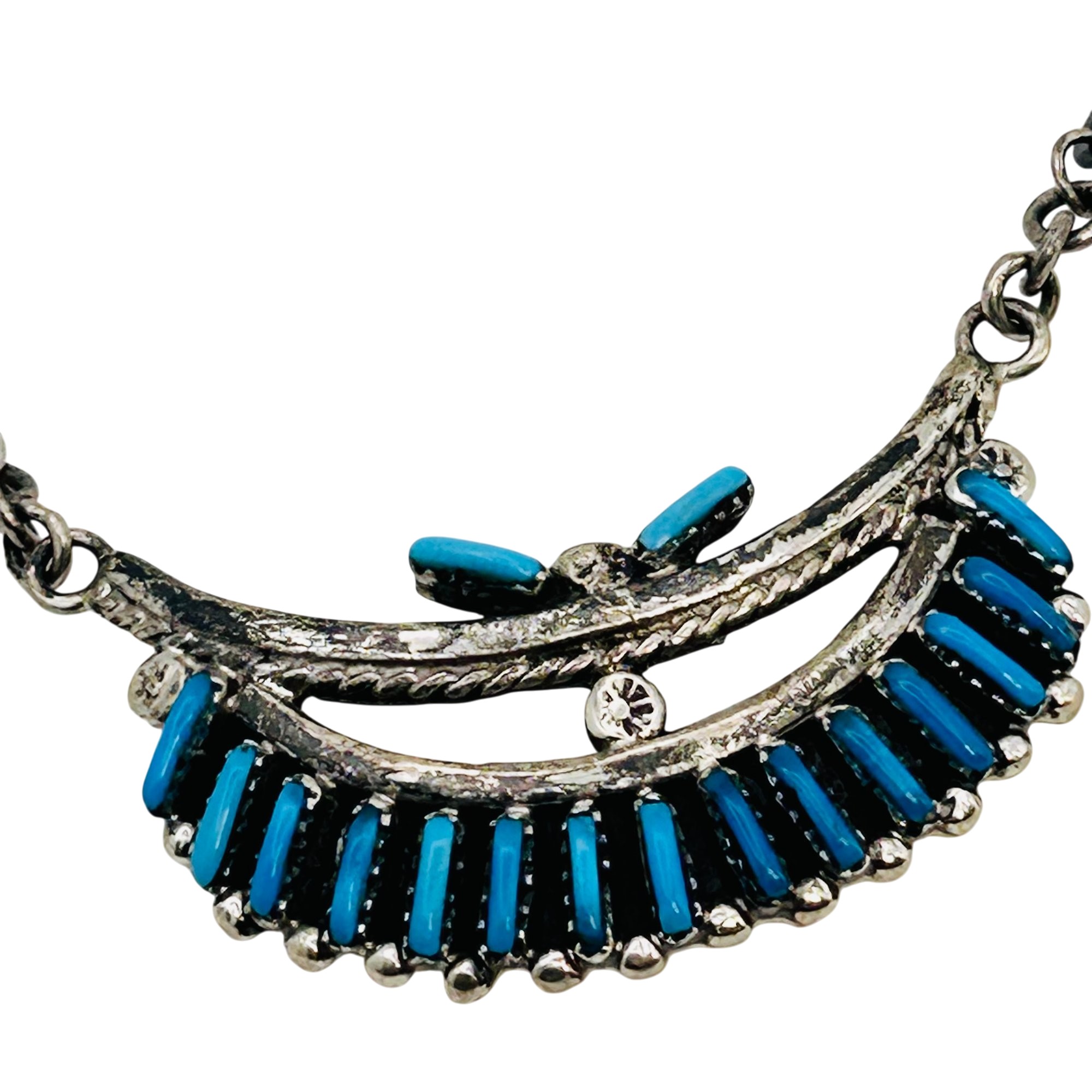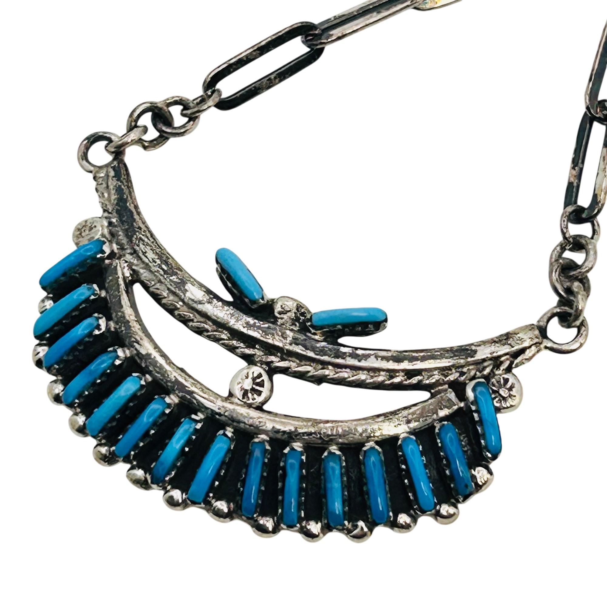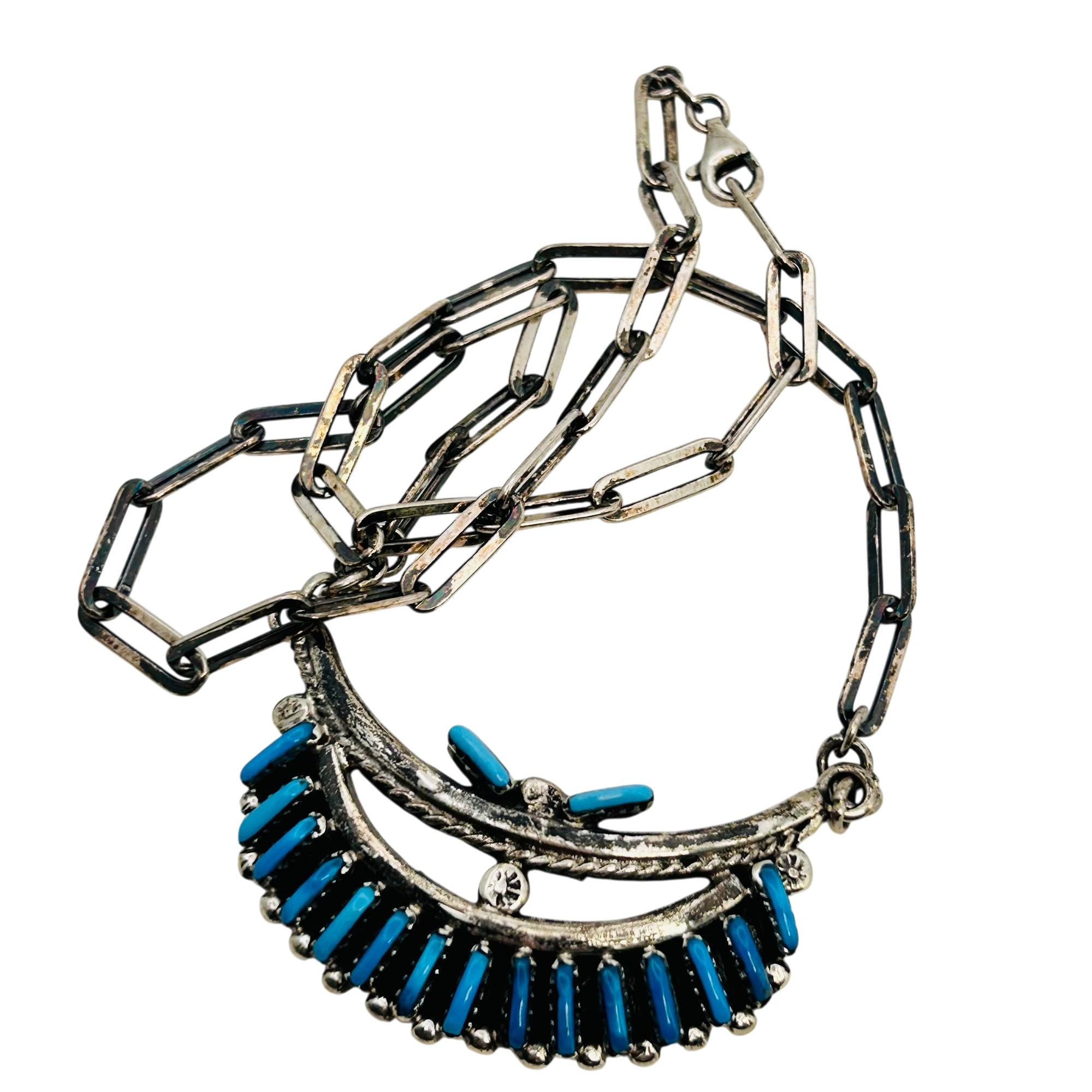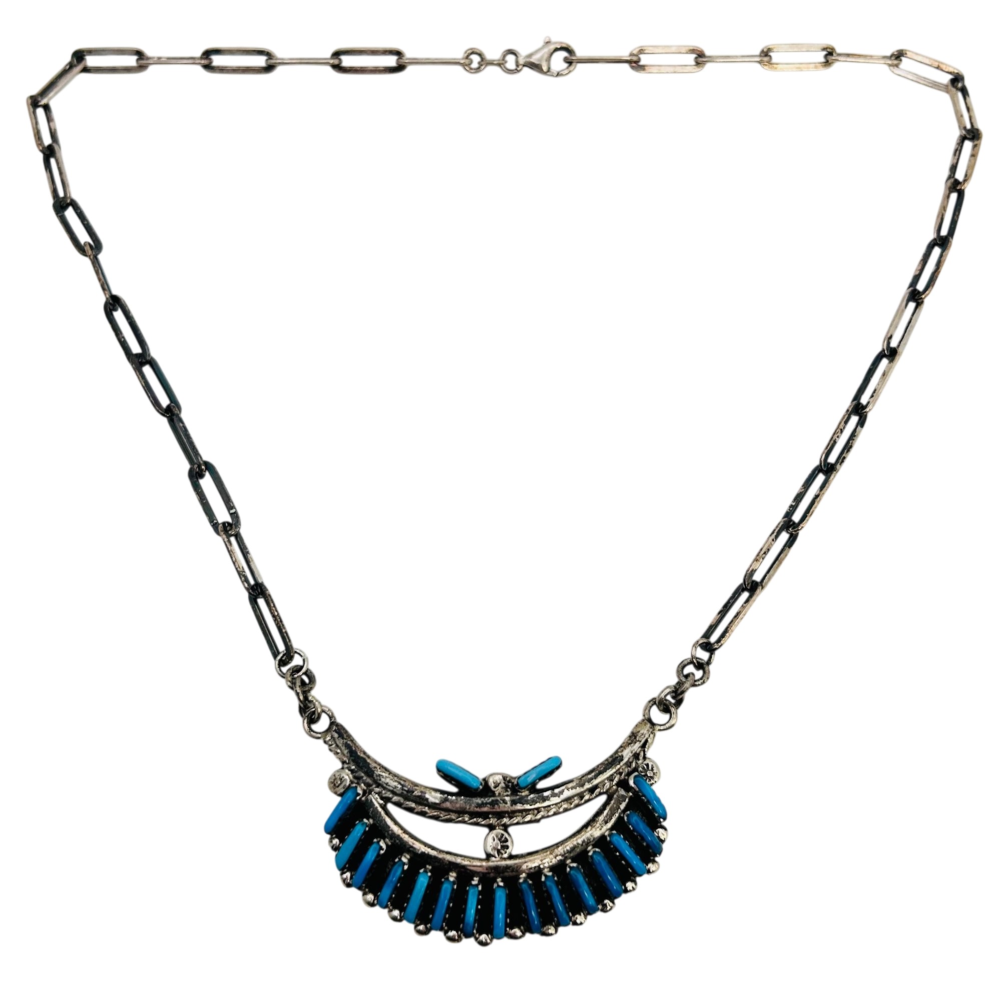 Southwestern Sterling needlepoint Kingman Turquoise Necklace 16inch linked chain 26.97 grams