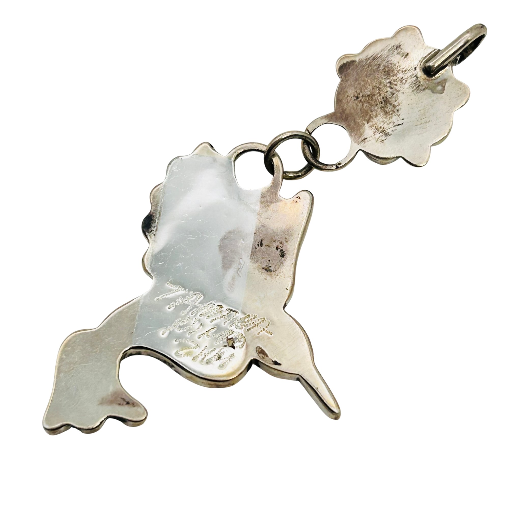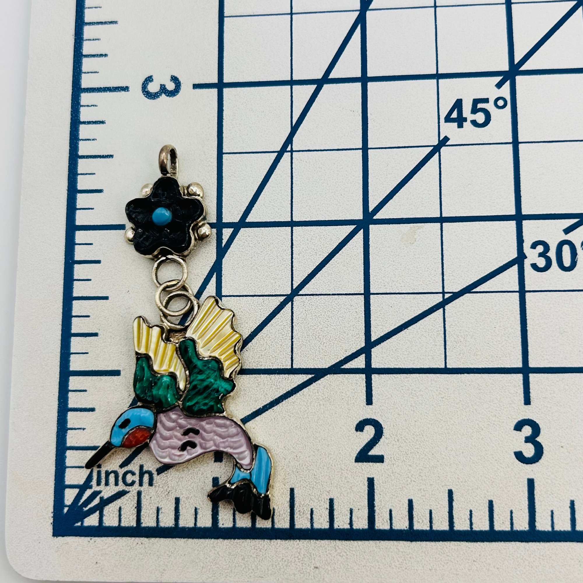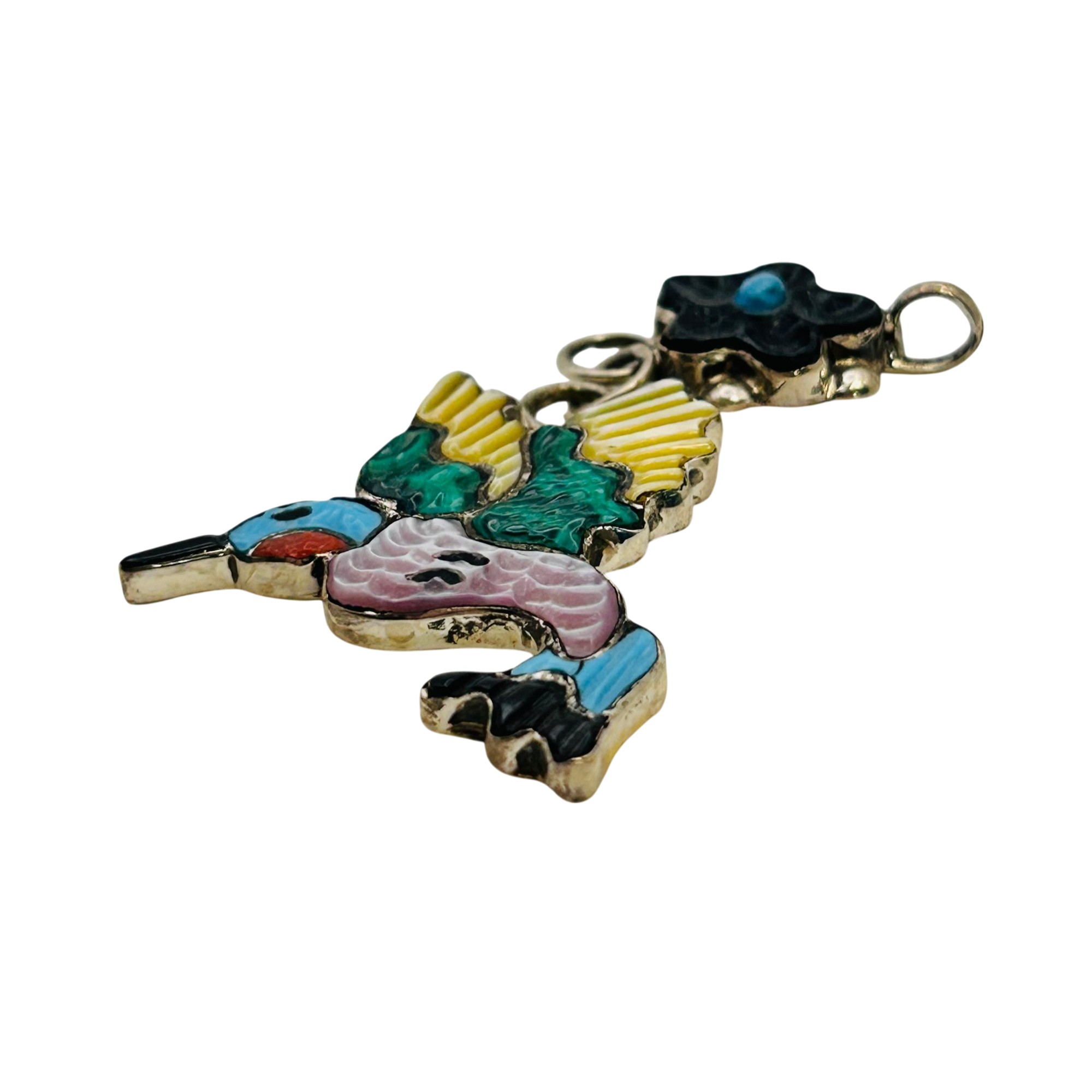 Tamara Pinto Zuni Sterling Multi Color turquoise onyx malachite coral mother of pearl hummingbird and flower Pendant 6.95 grams