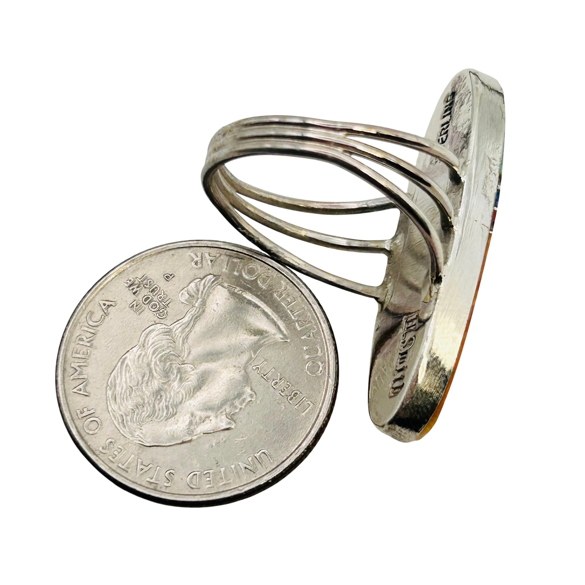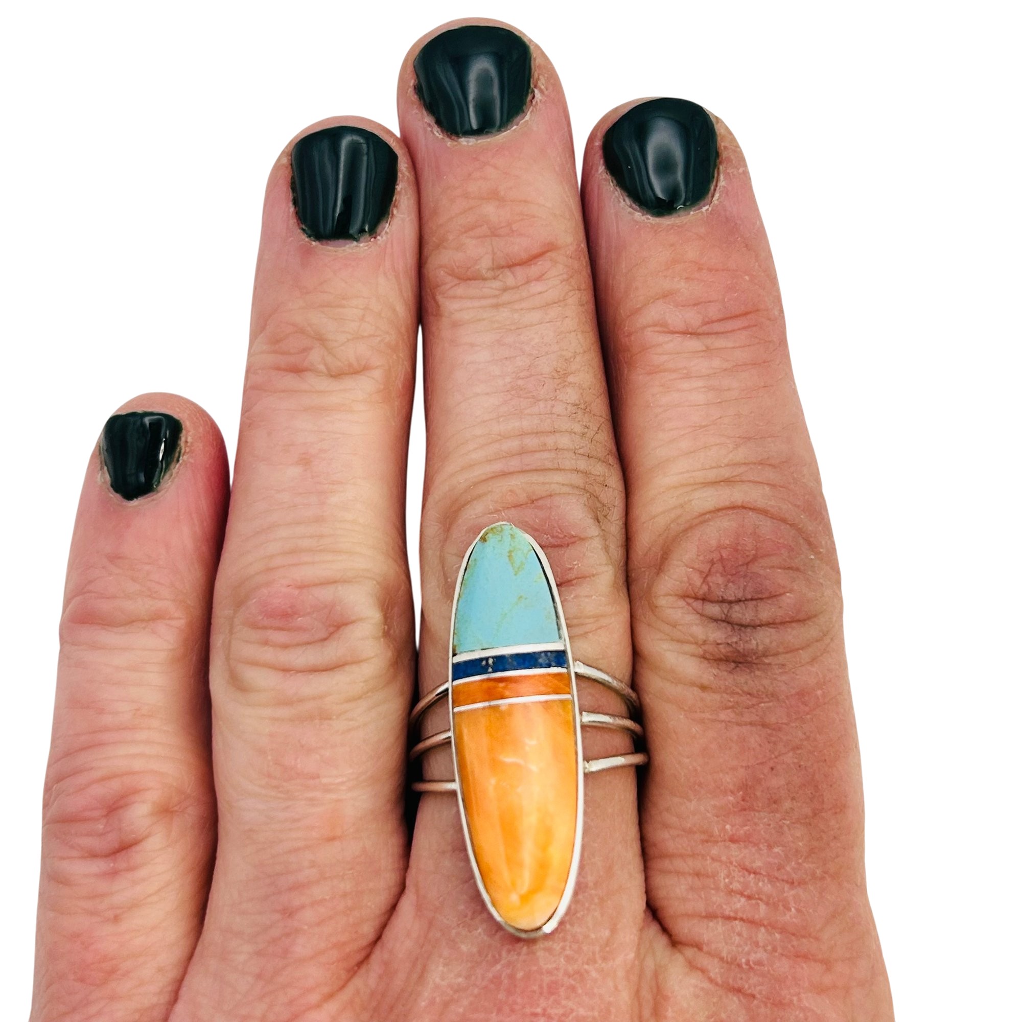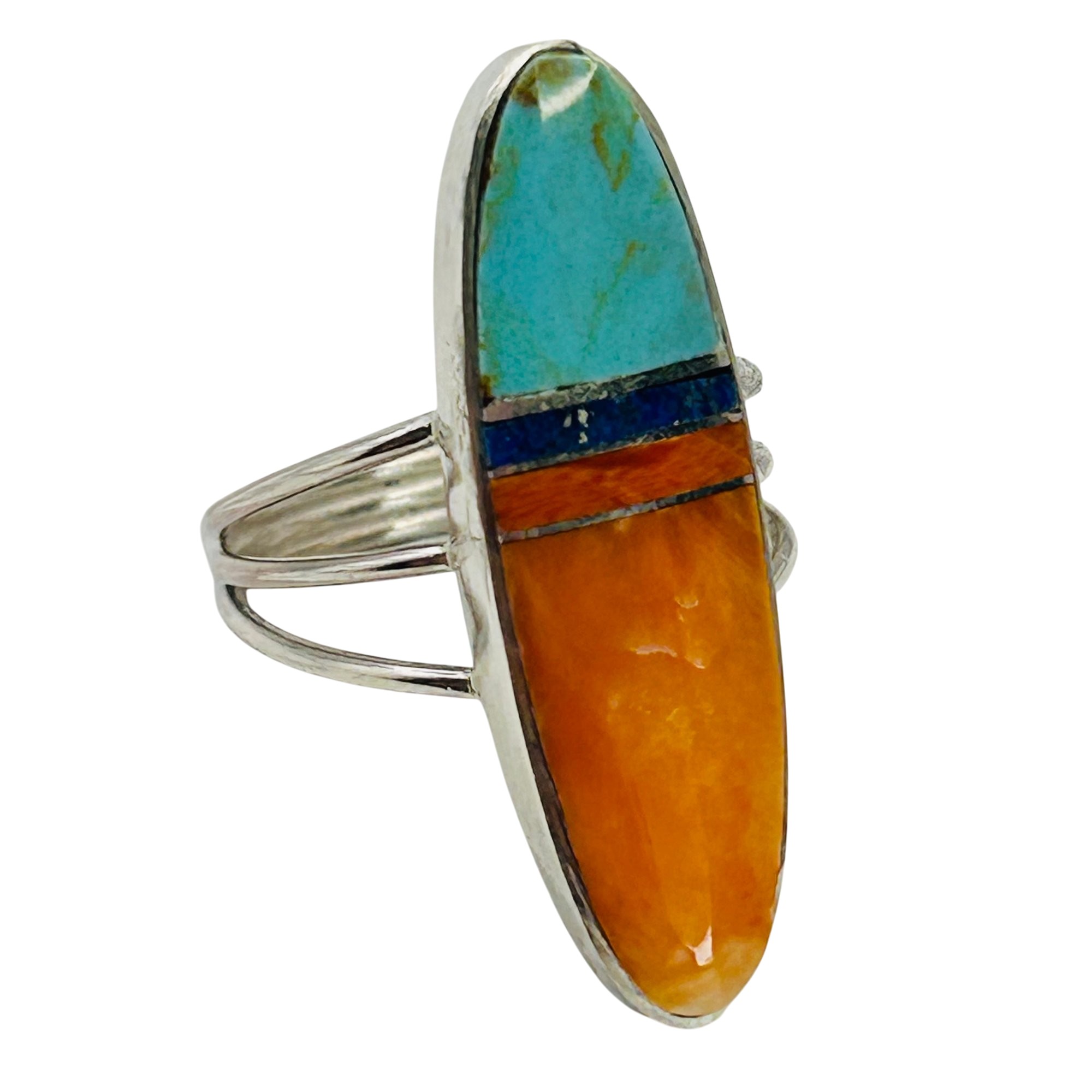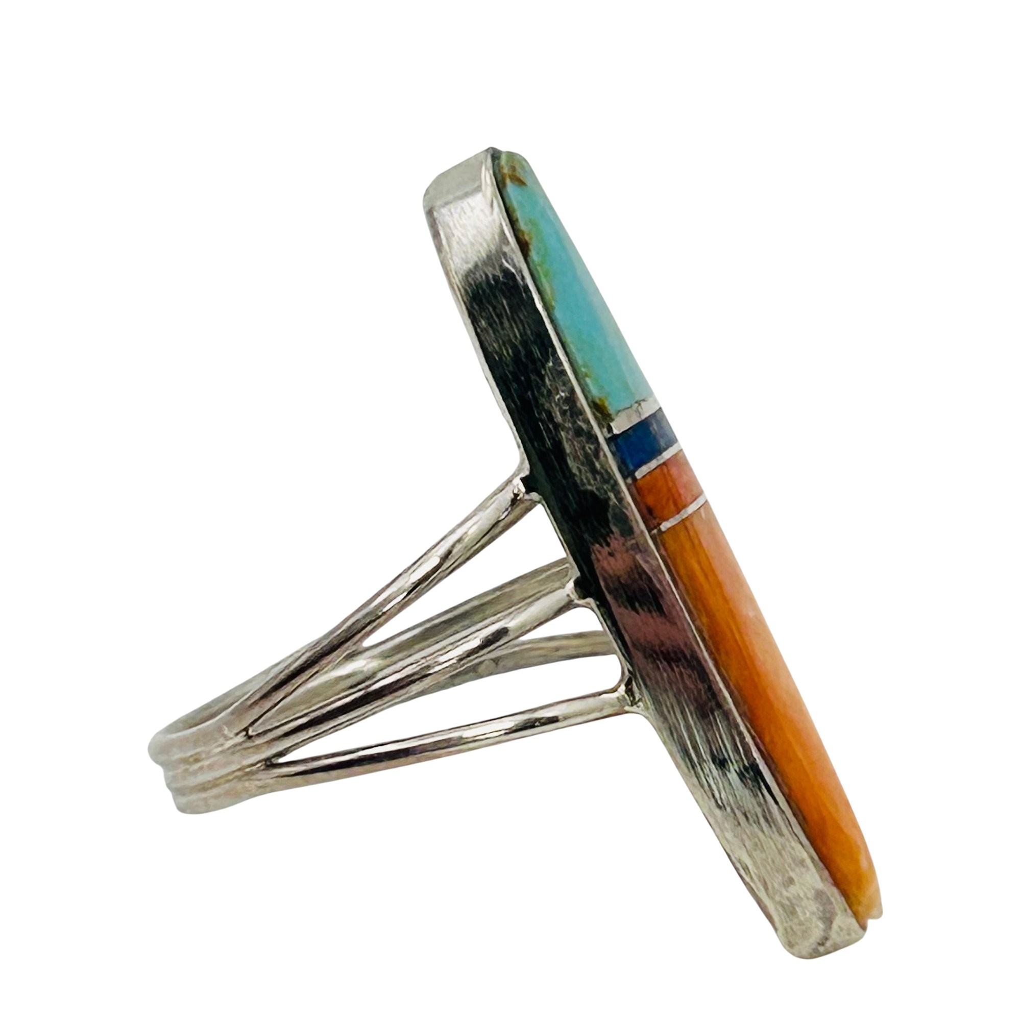 Harold Smith Navajo Stlering Multi Stone spiny oyster turquoise lapis Ring SZ. 8.5 5.55 grams