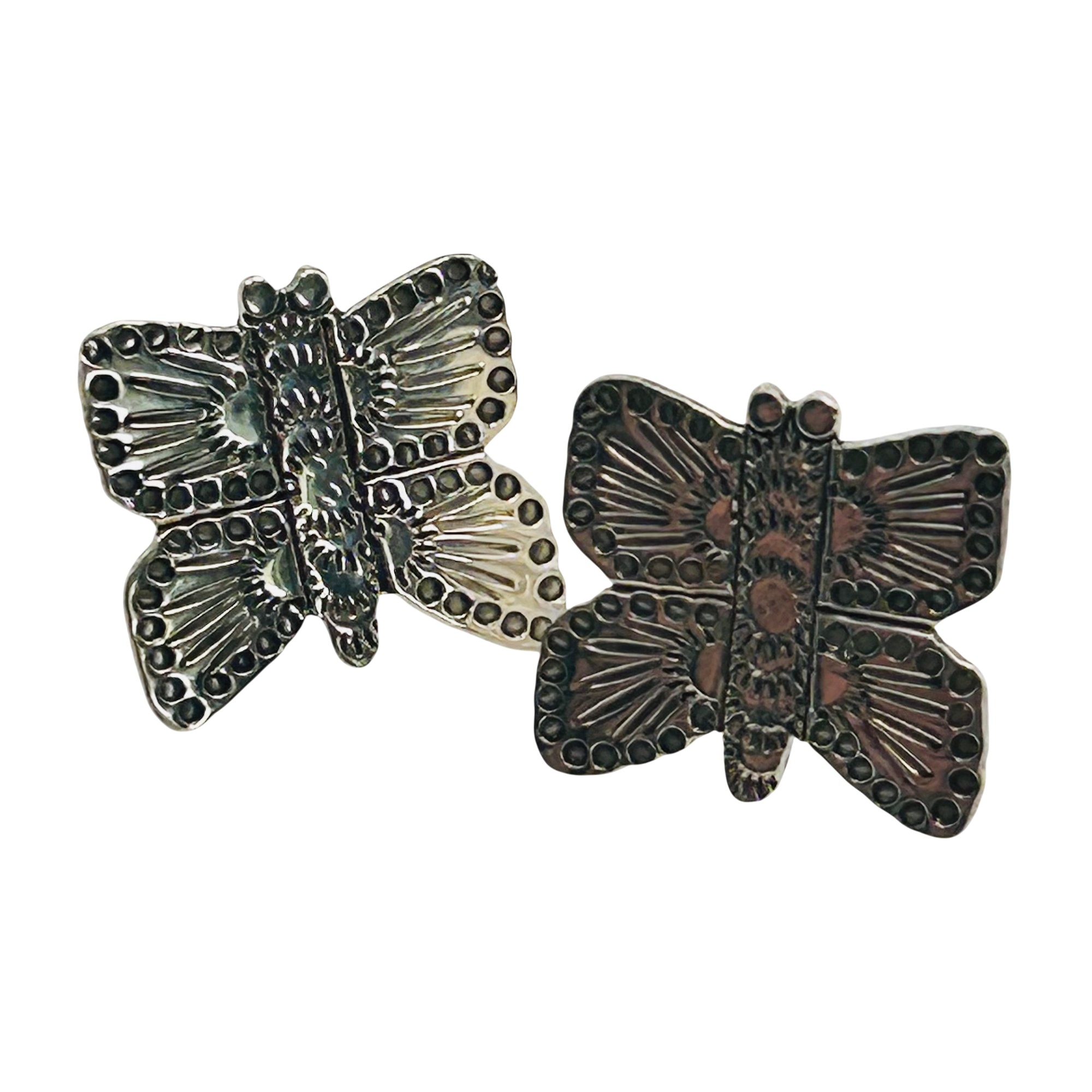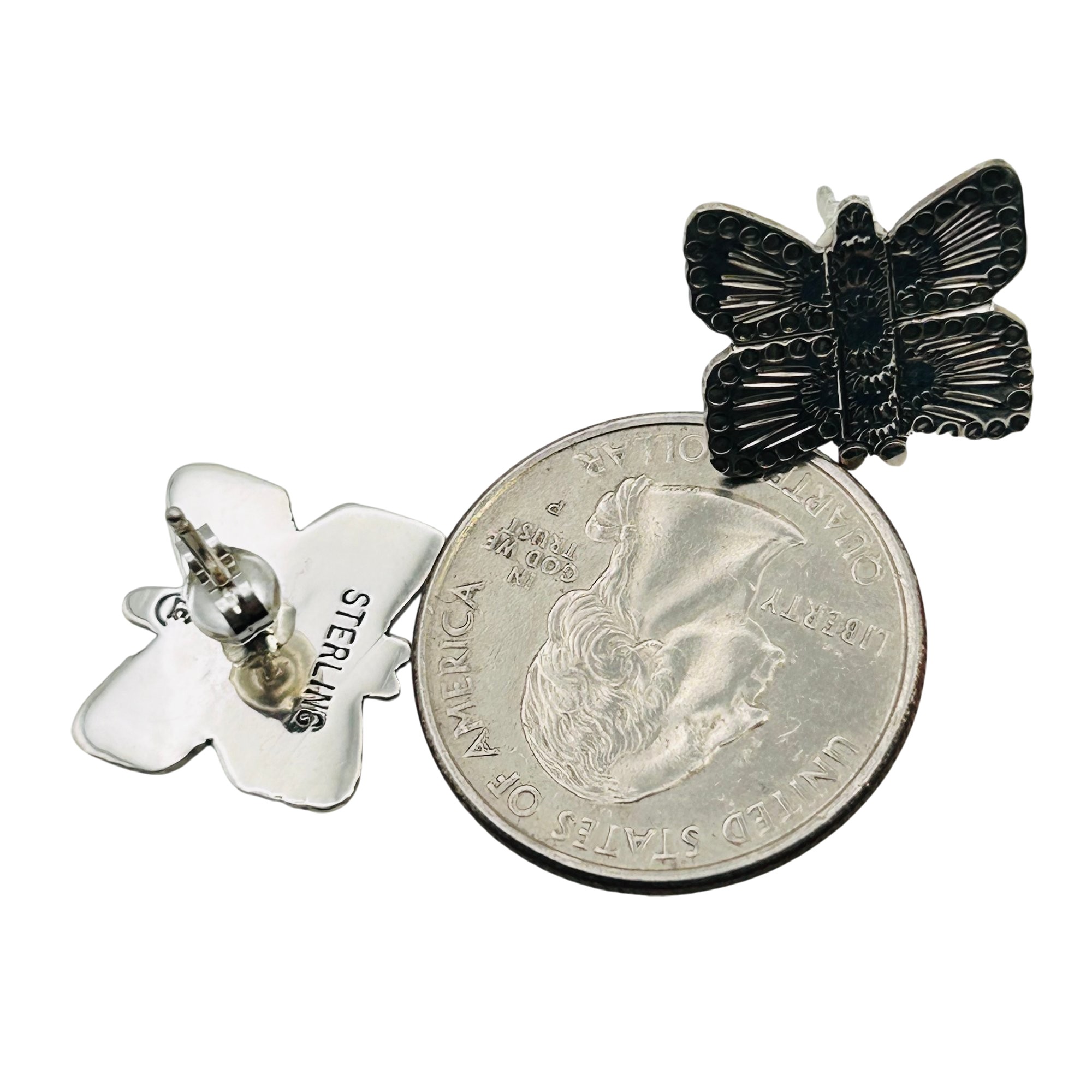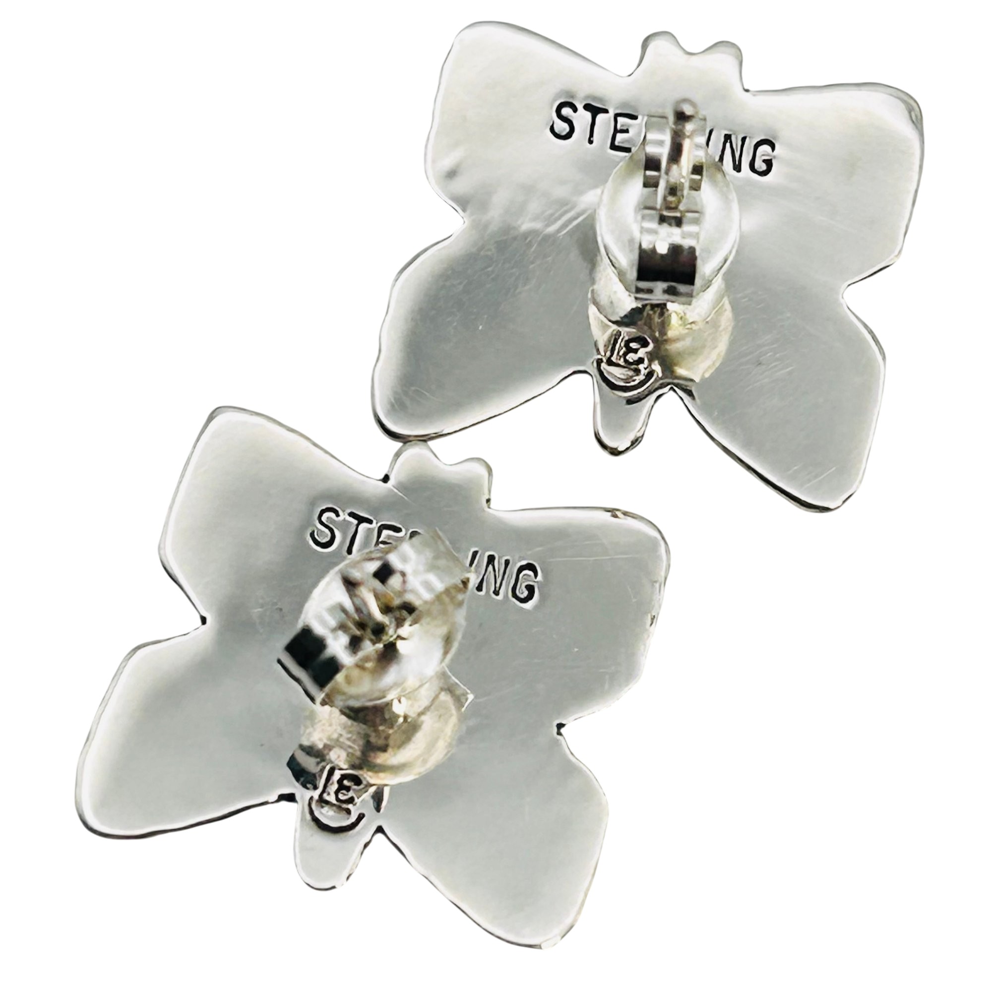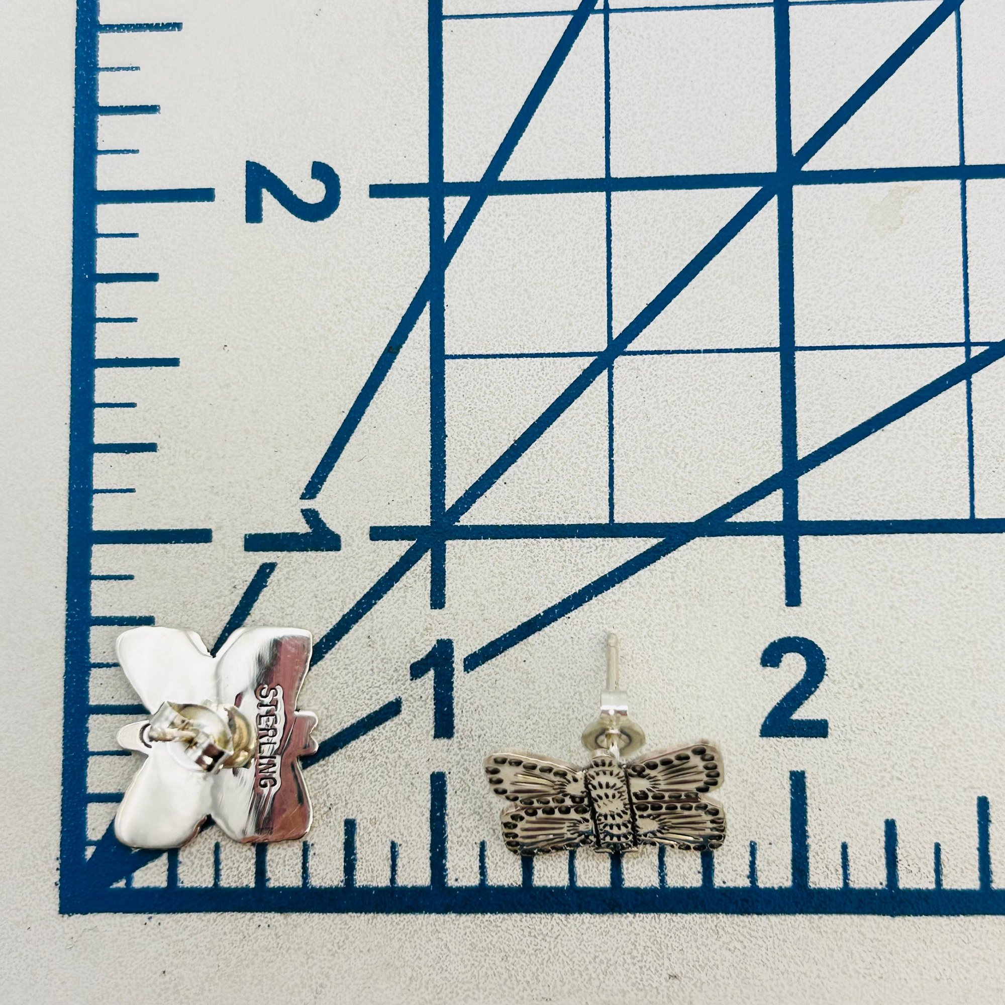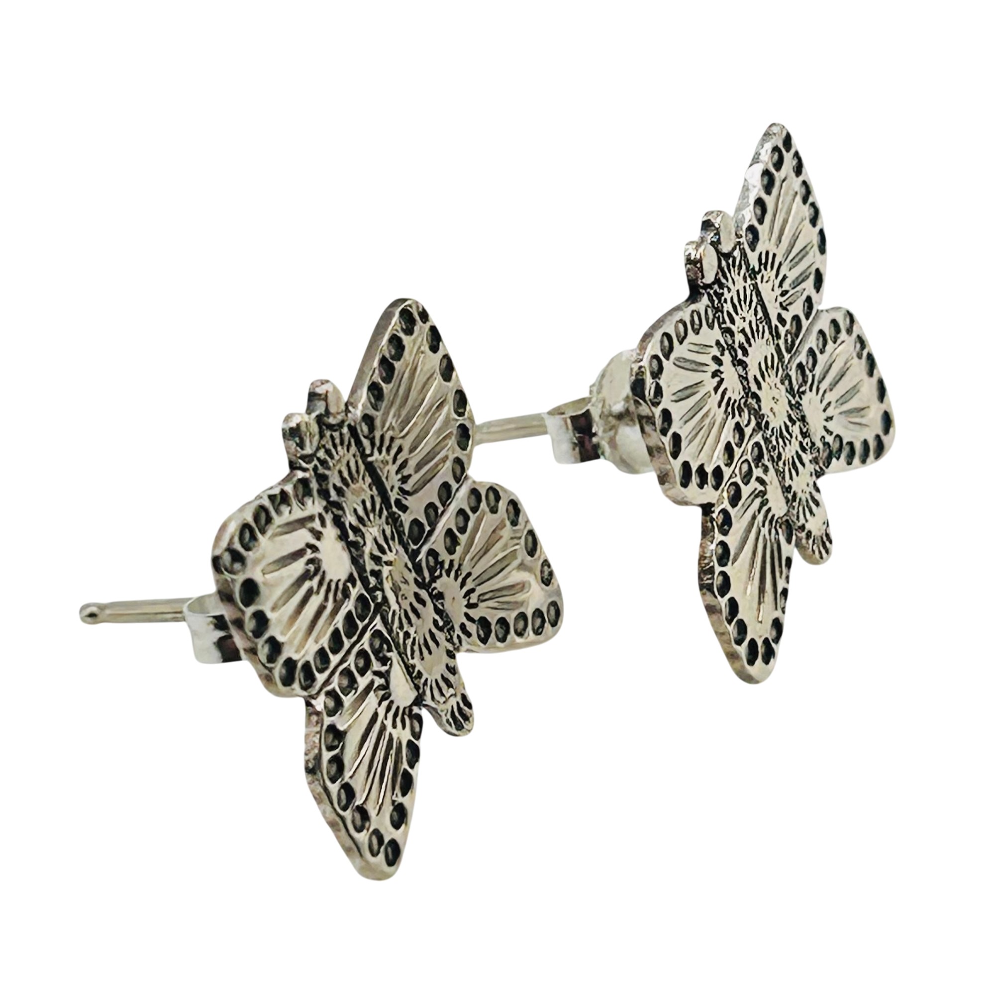 Zandra Tahy Navajo Sterling Butterfly stamped pushback Earrings 3.15 grams