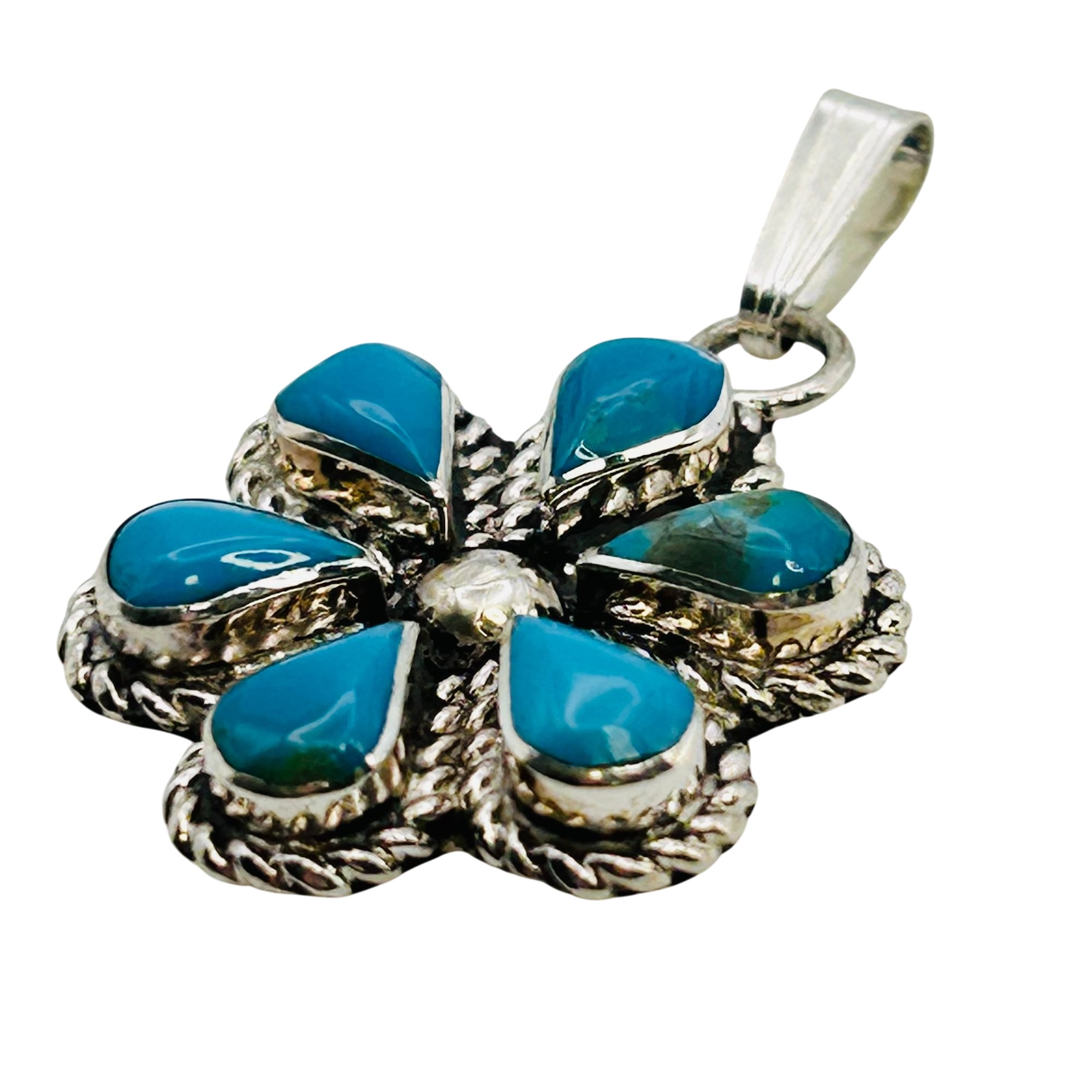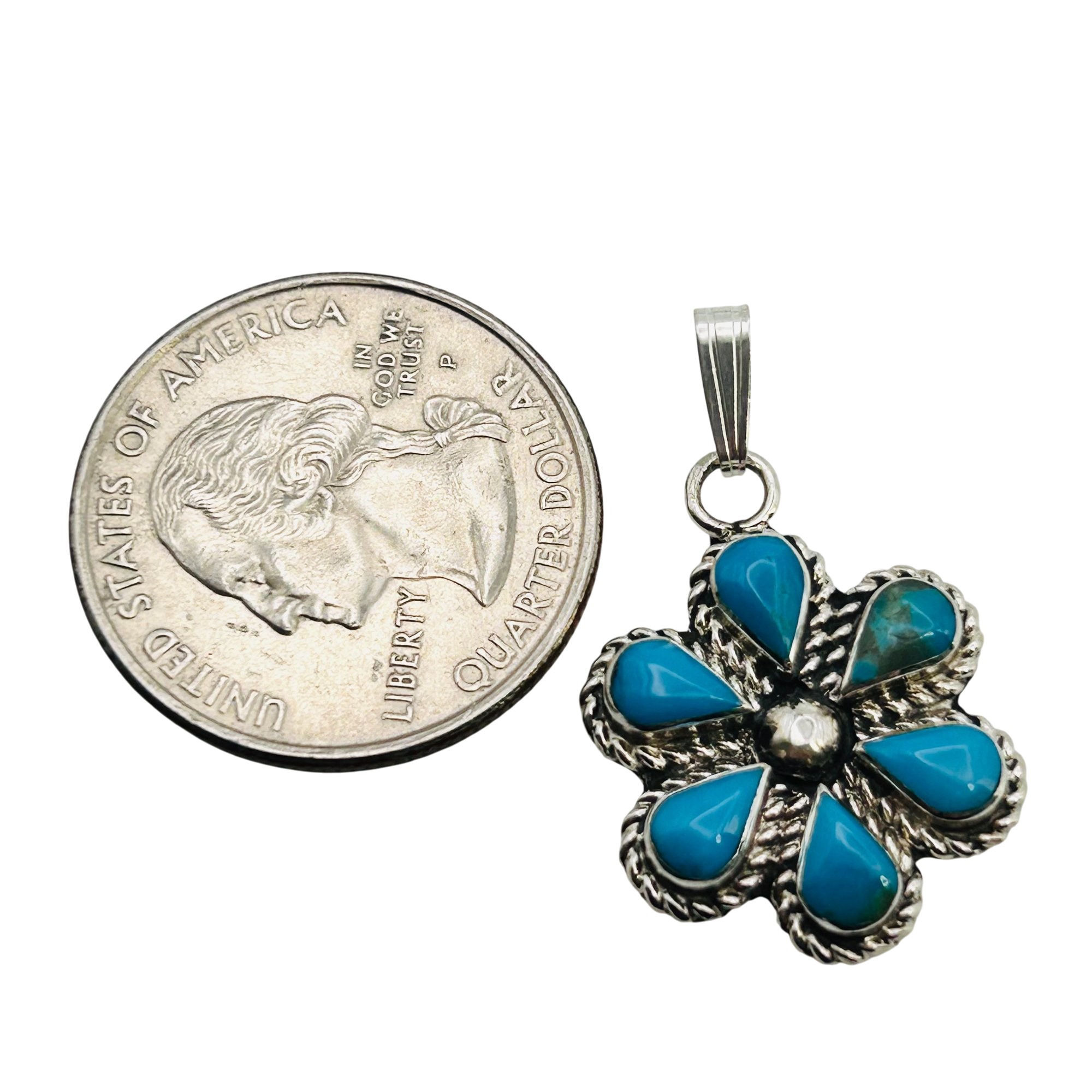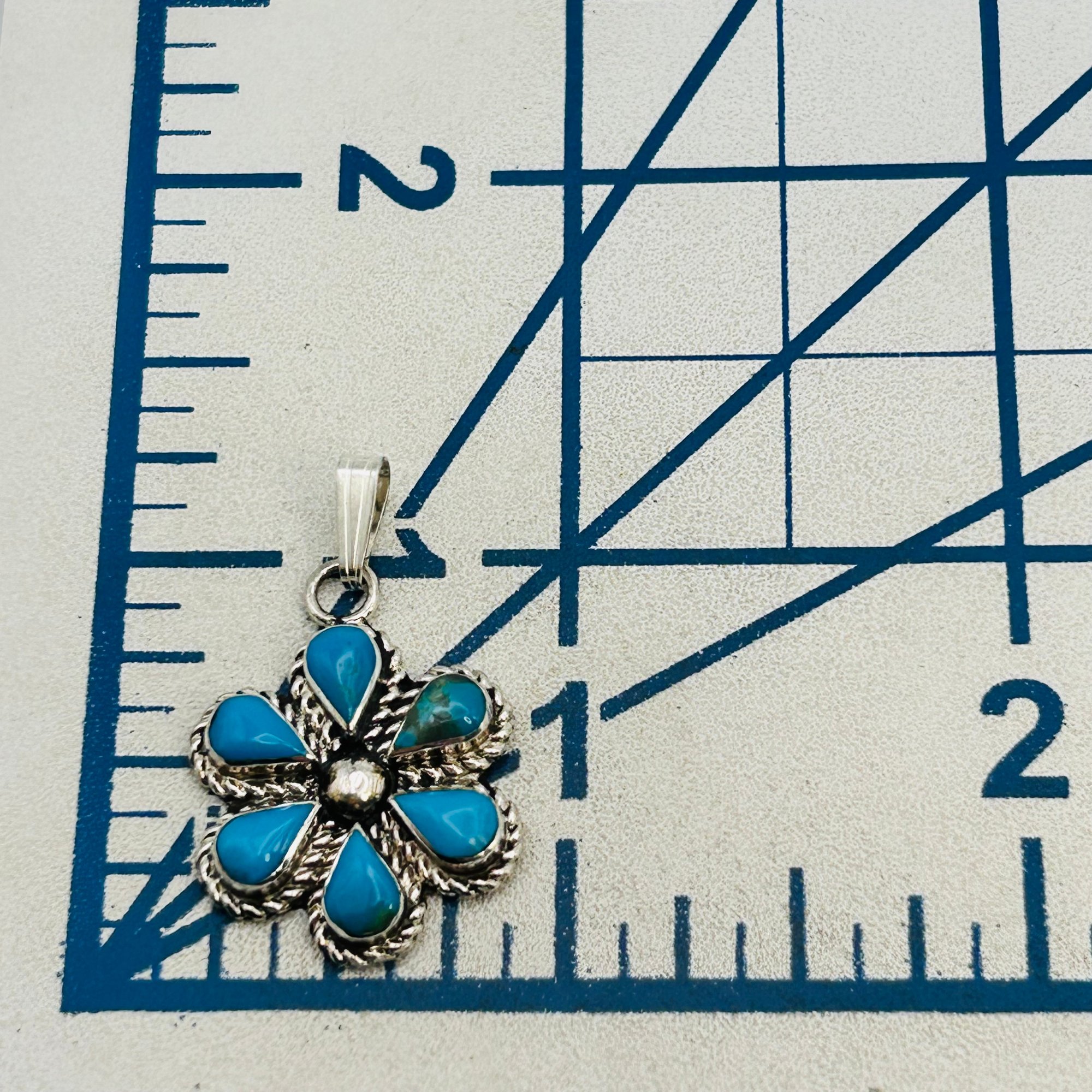 Gina Dosedo Zuni Sterling Turquoise flower pendant 3.12 grams