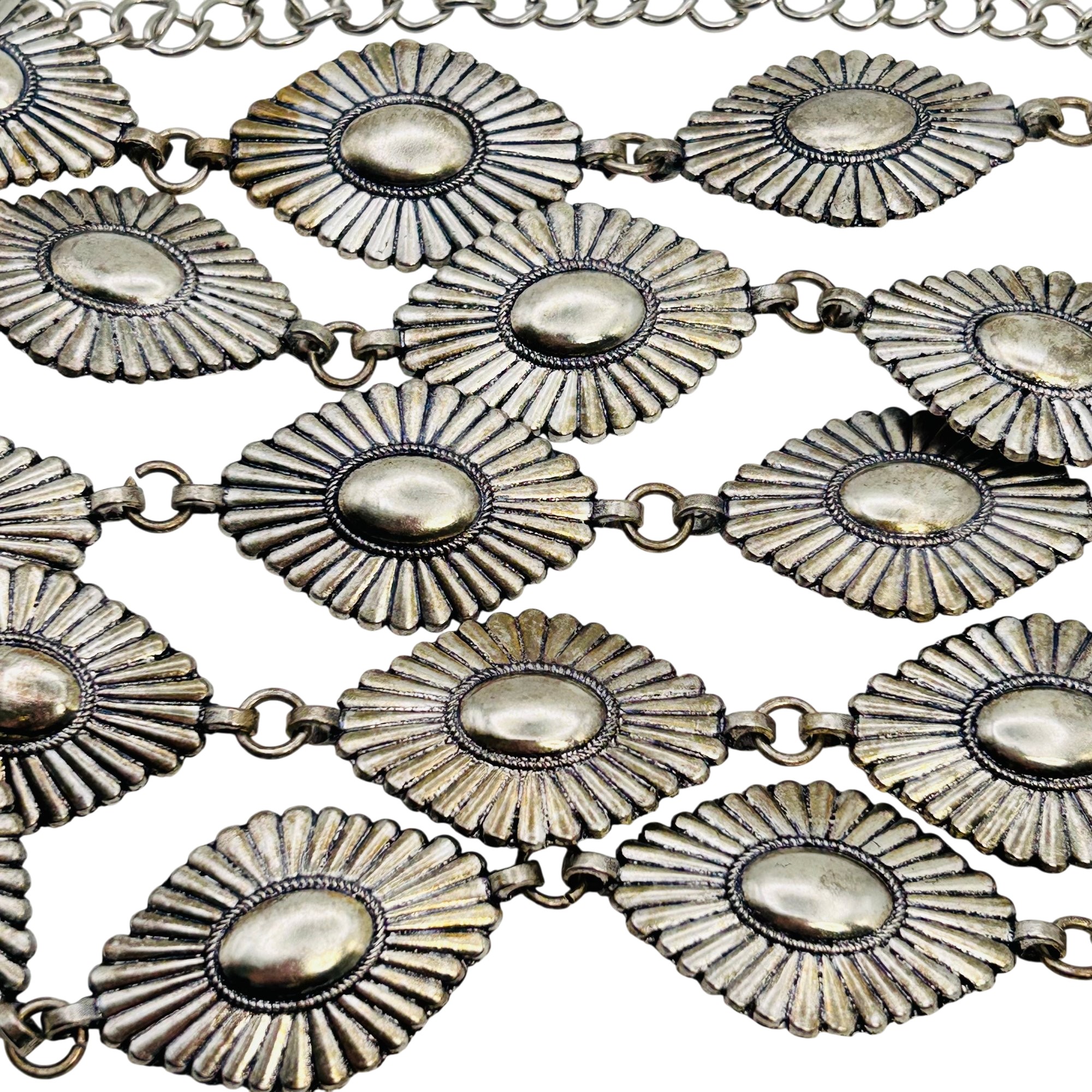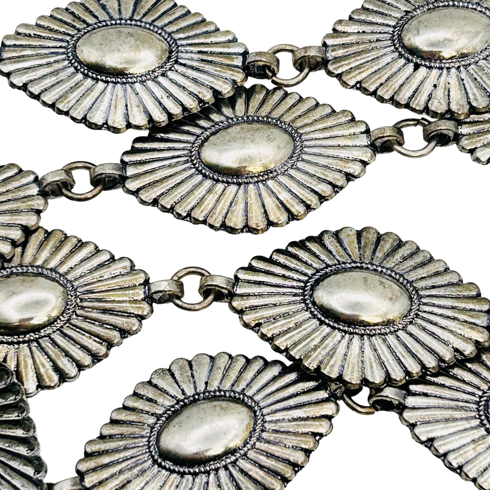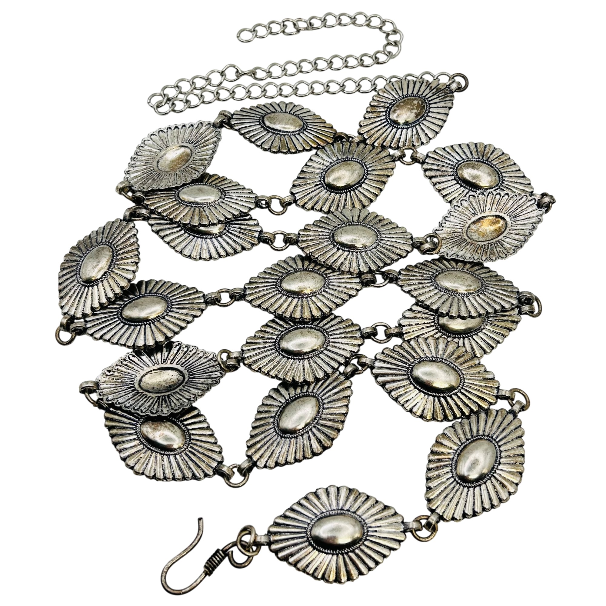 Native Western style Nickel Silver adjustable 42 in. Linked diamond shaped Belt 99.4 grams