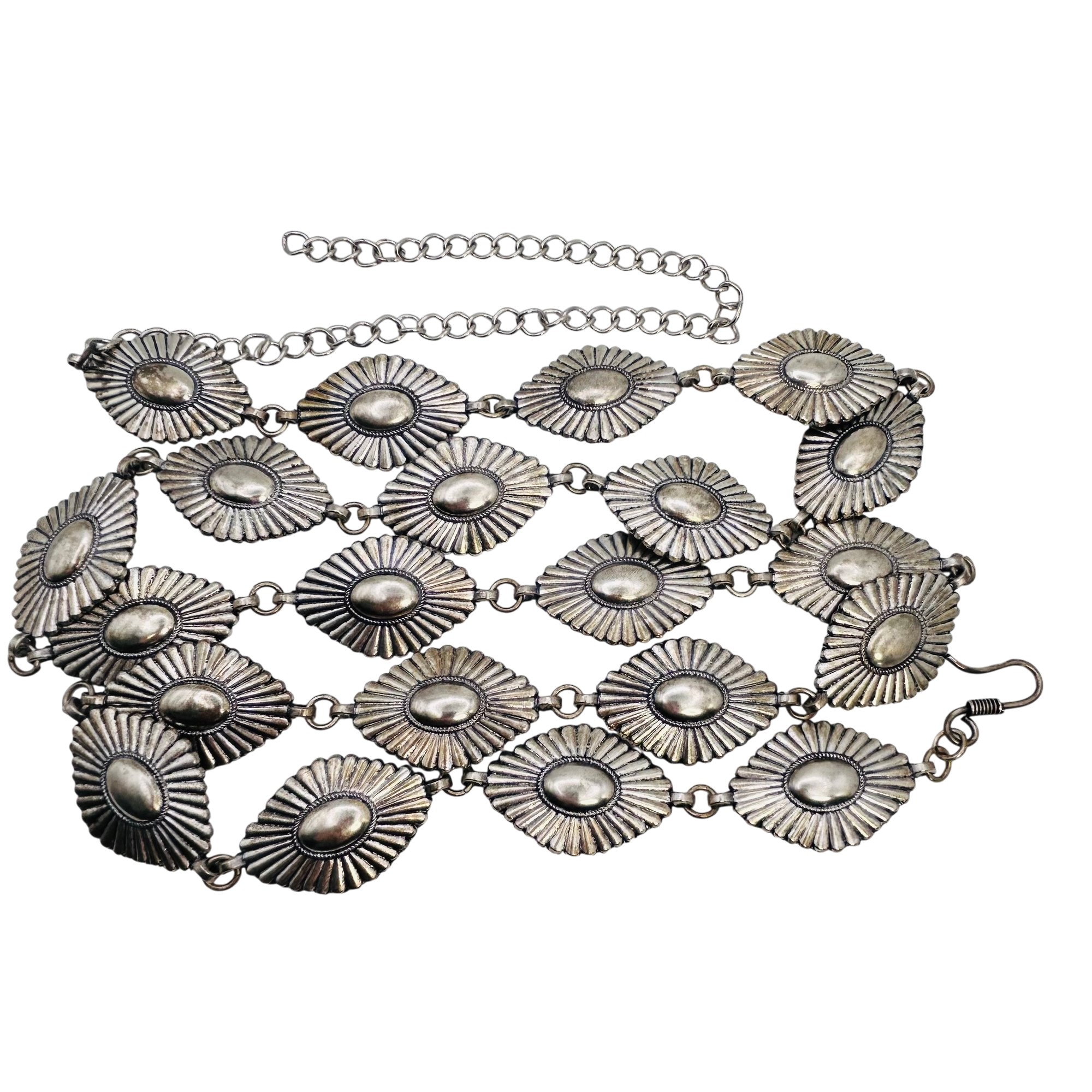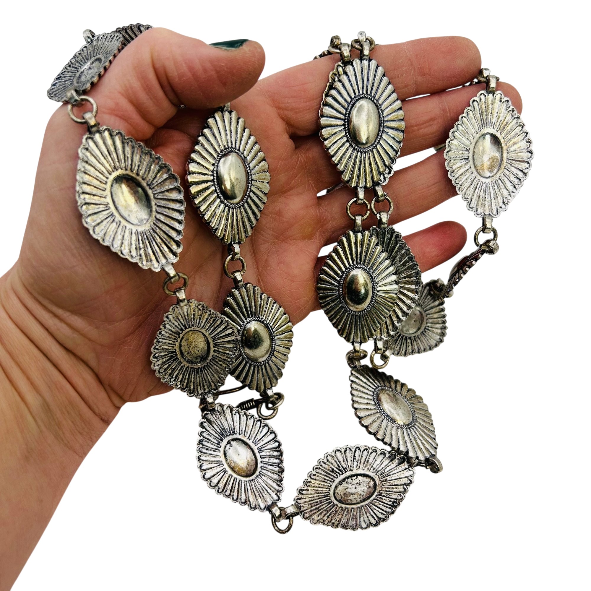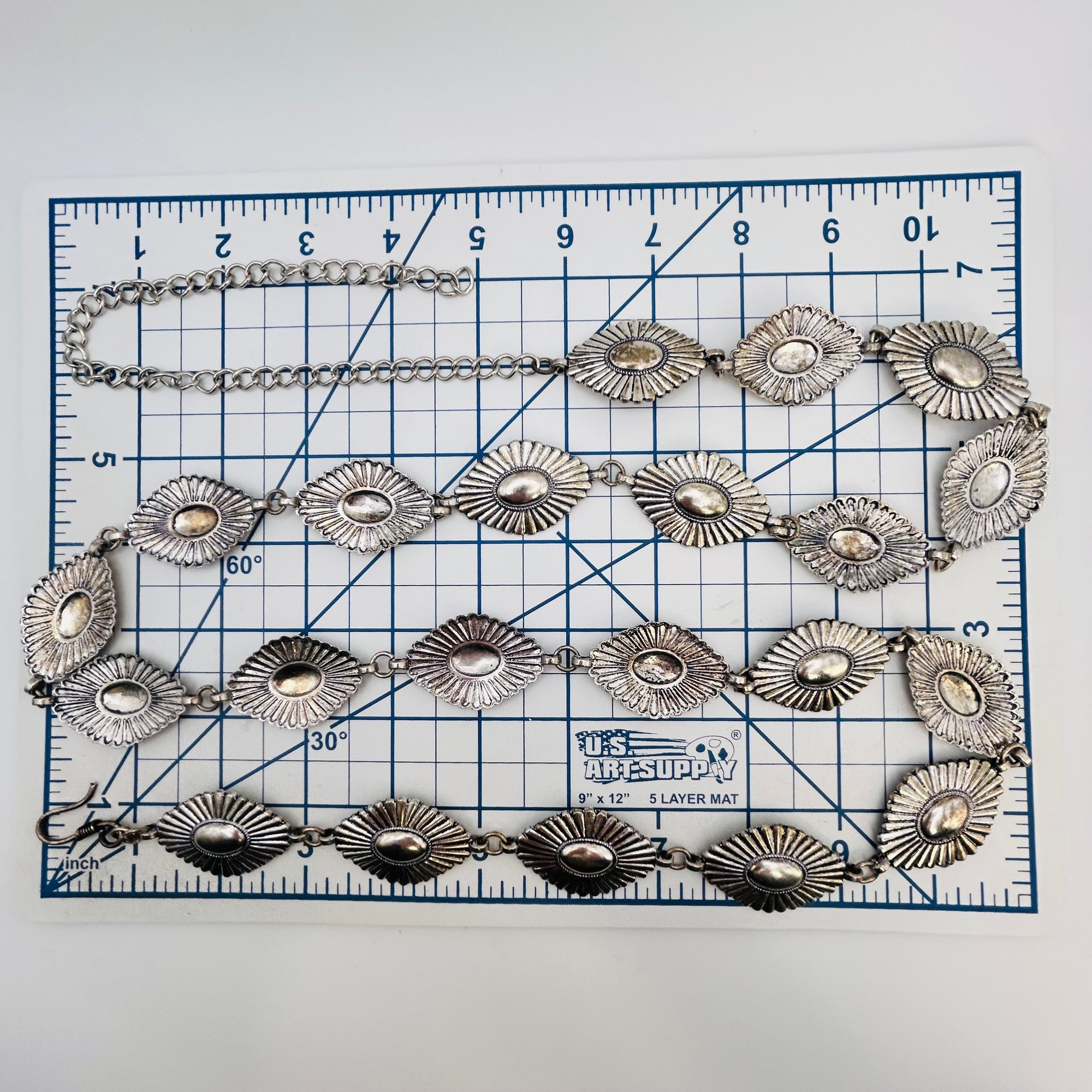 Native Western style Nickel Silver adjustable 42 in. Linked diamond shaped Belt 99.4 grams
