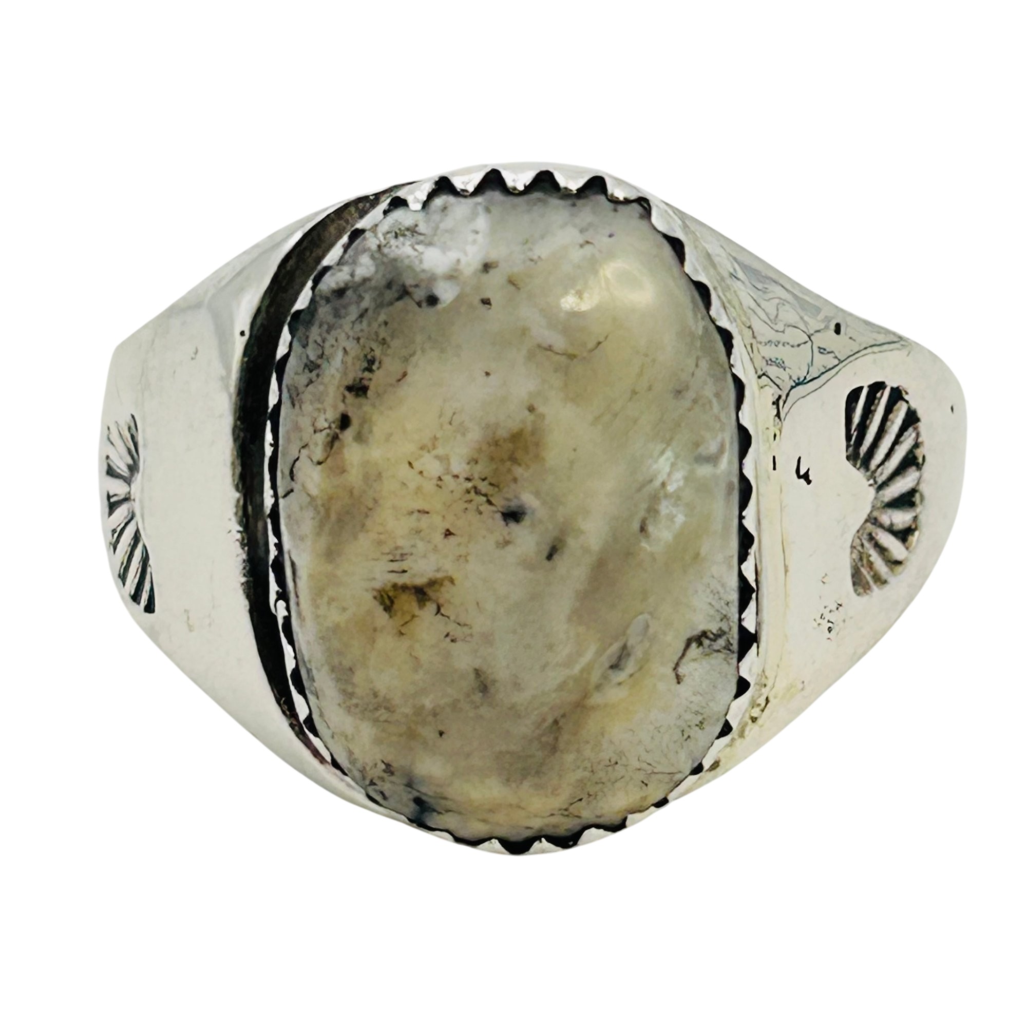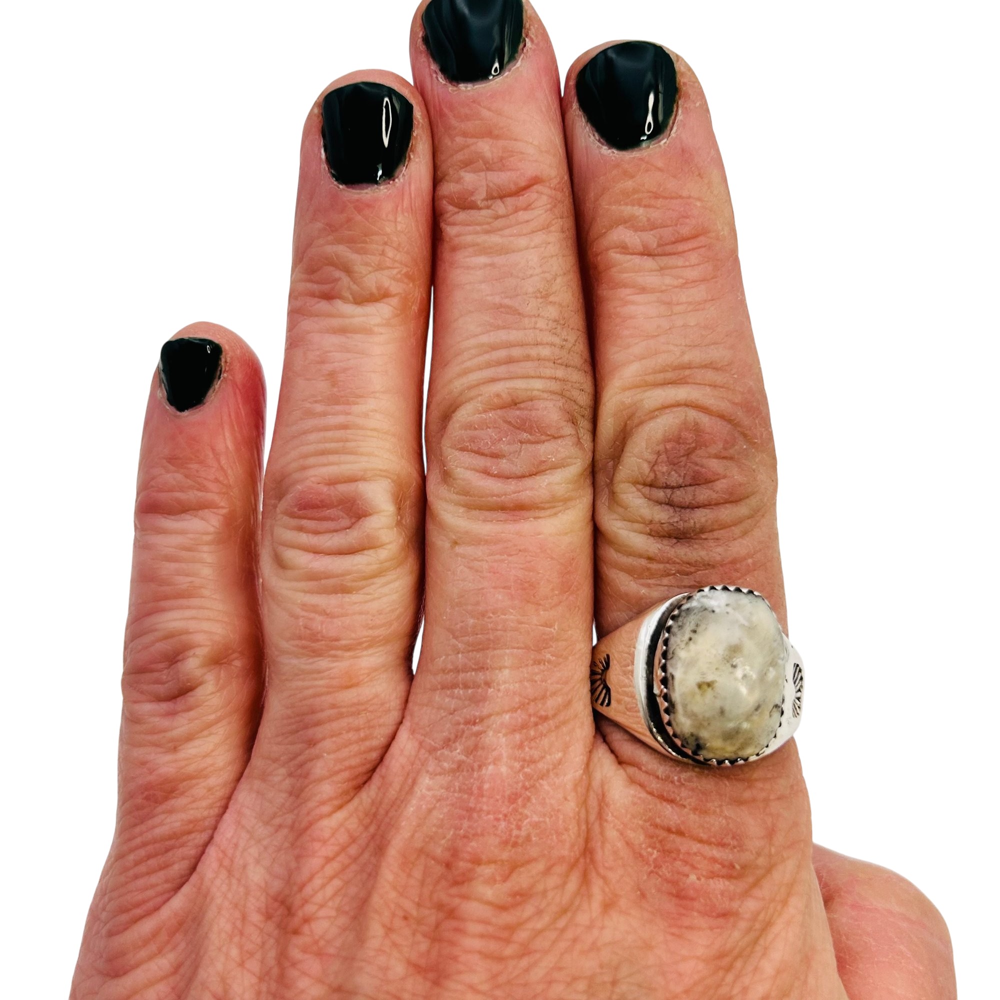 Annie Lincoln Navajo Sterling White Buffalo Turquoise Ring Sz. 10.5