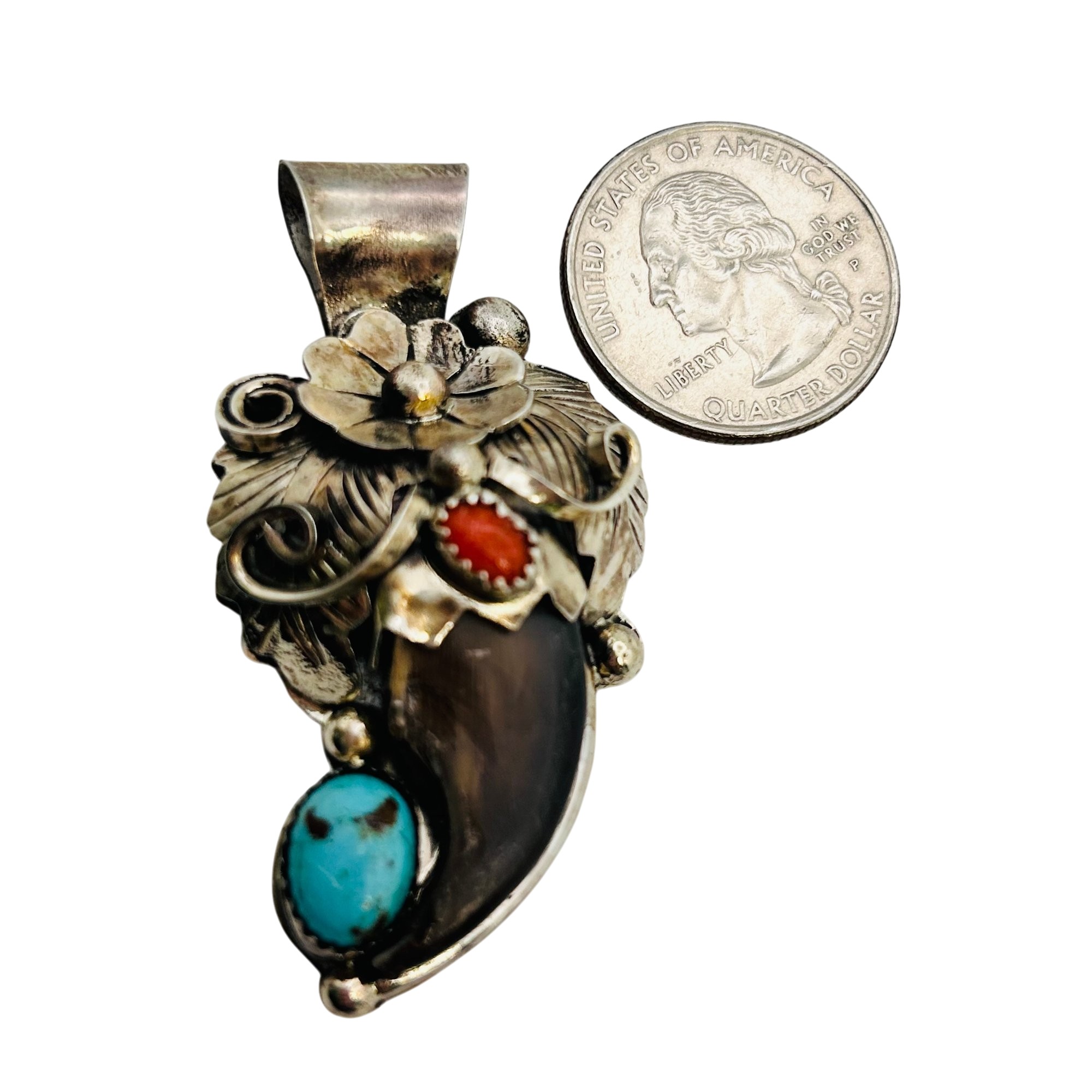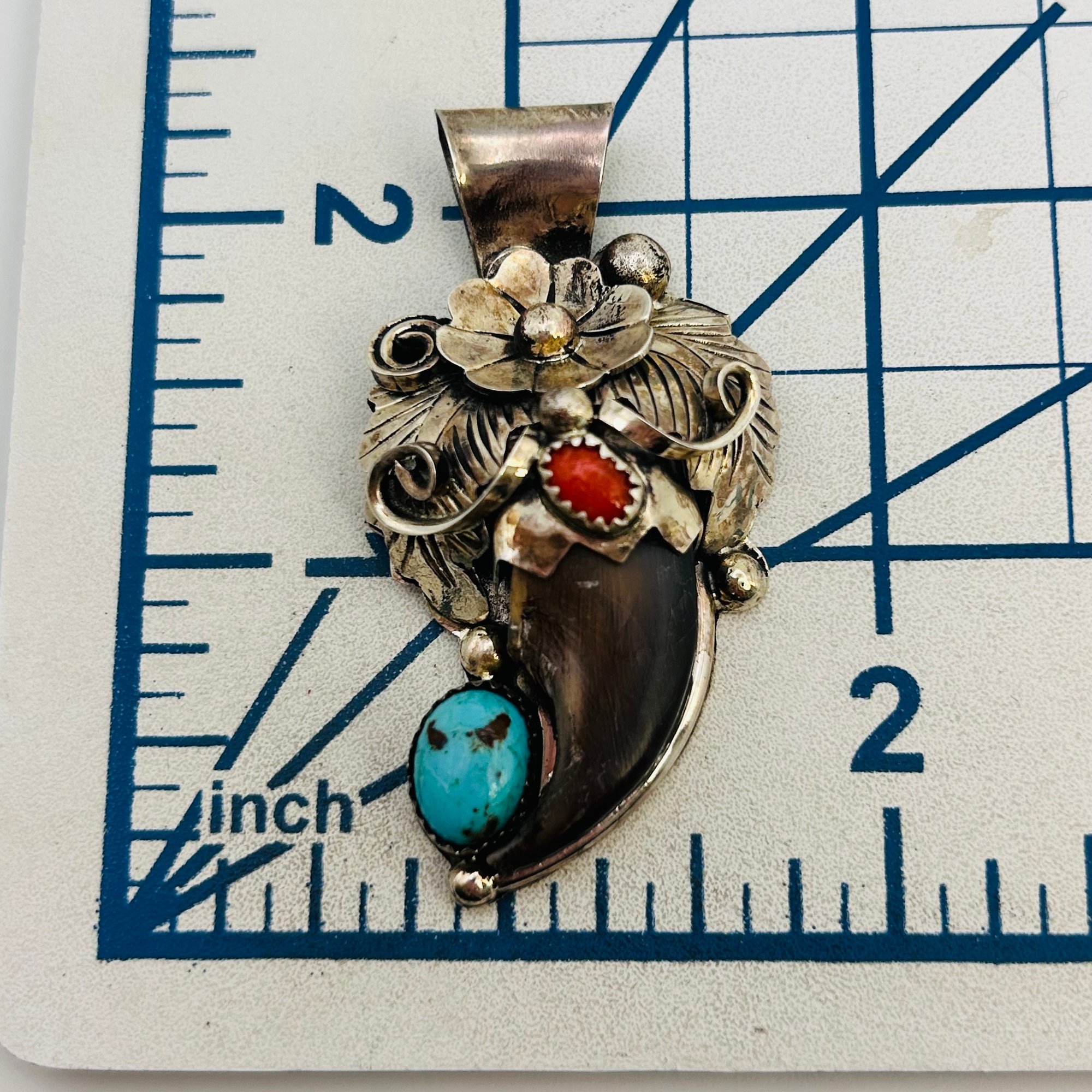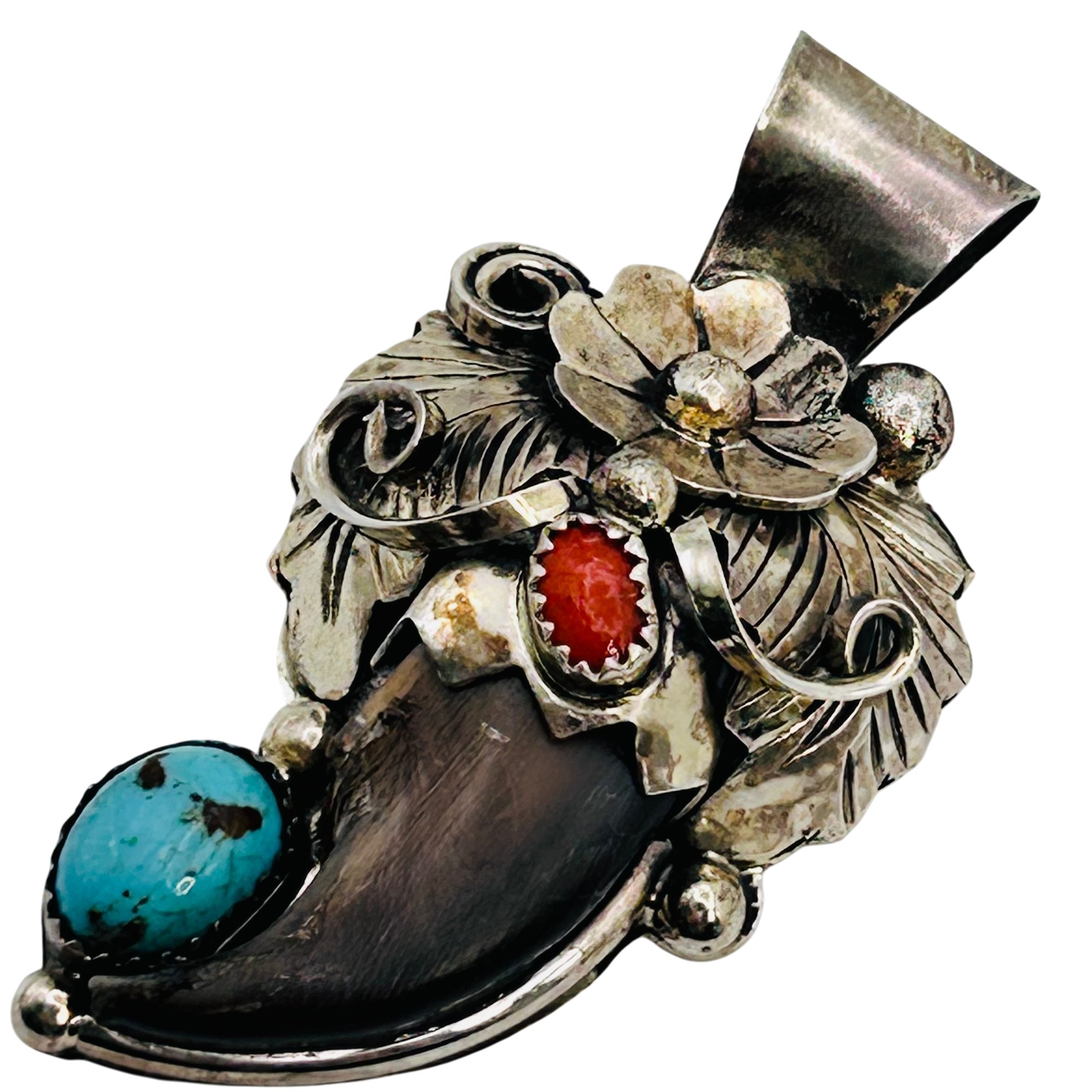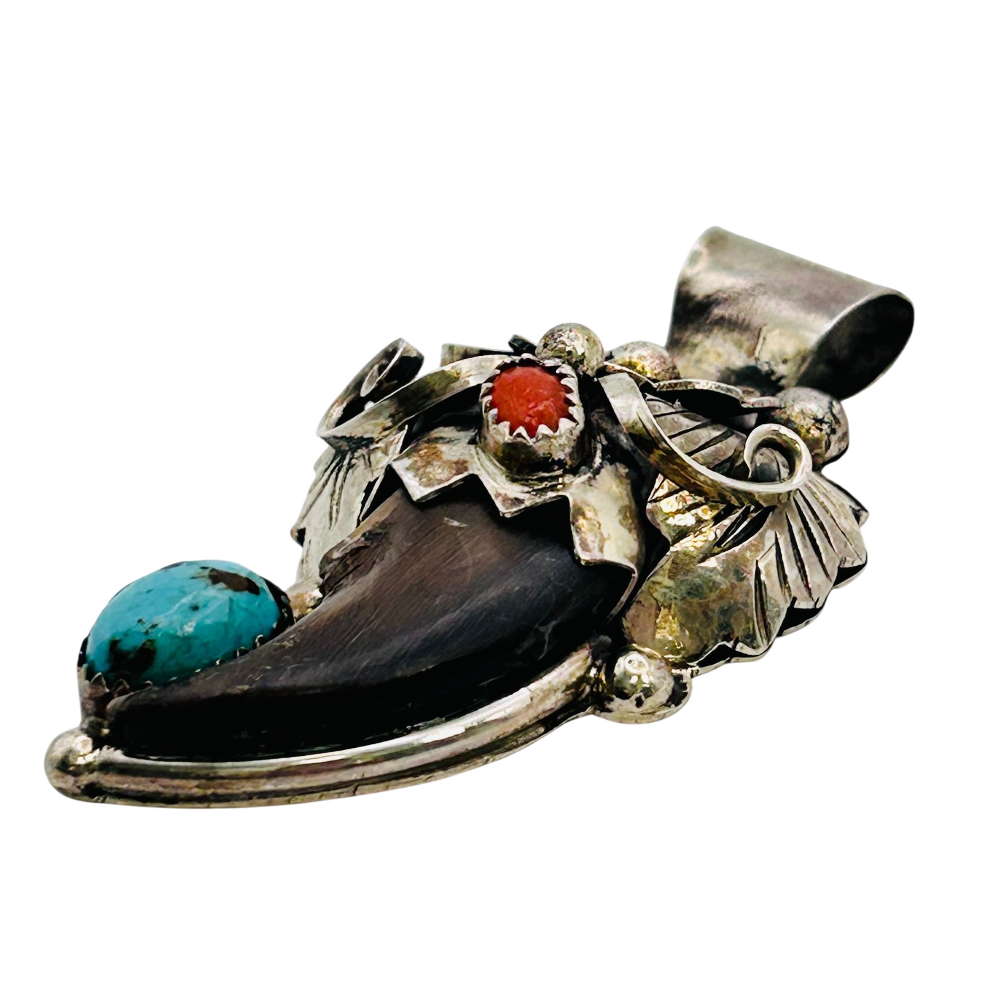 Jerry Thompson Navajo Sterling Turquoise Coral claw Pendant 13.25 grams