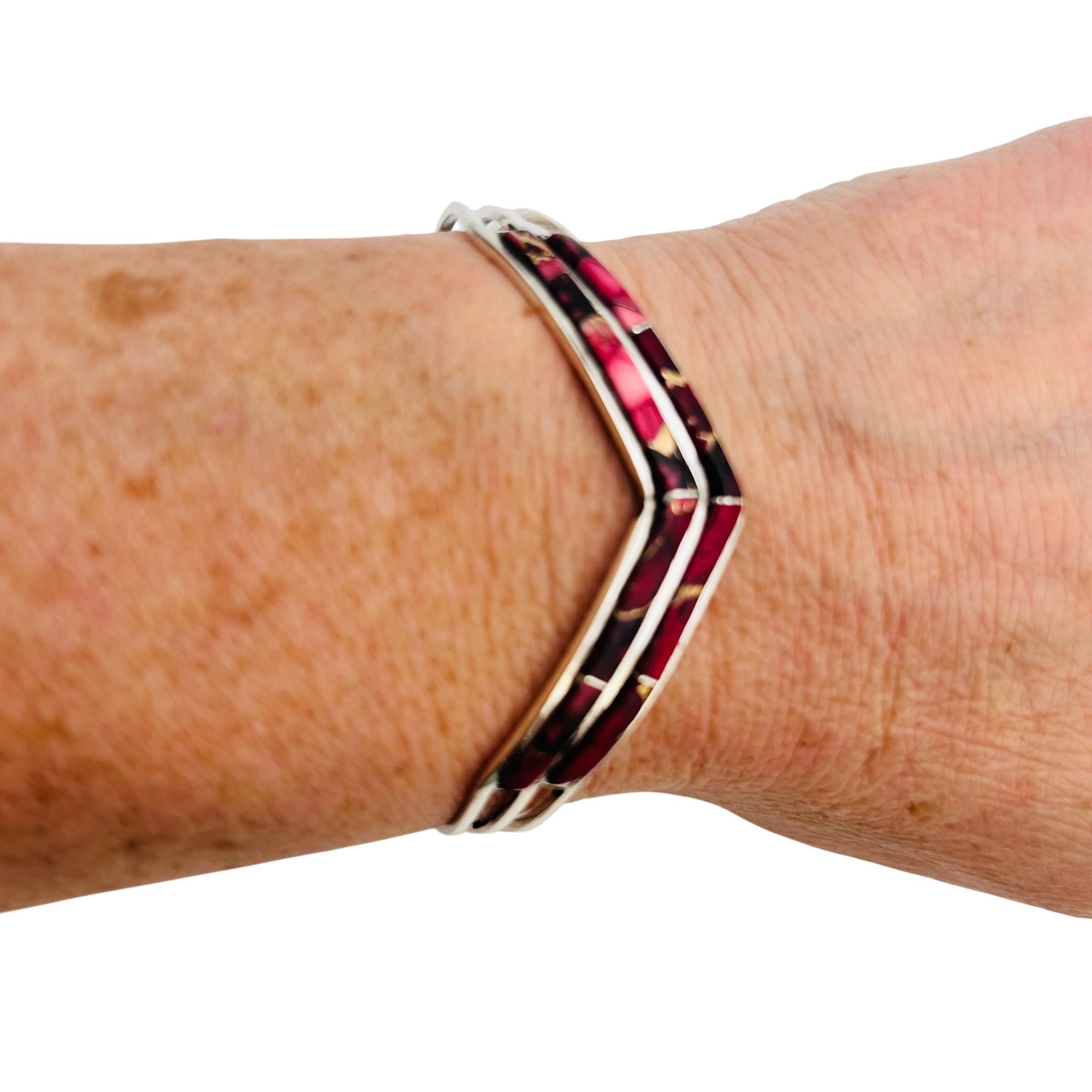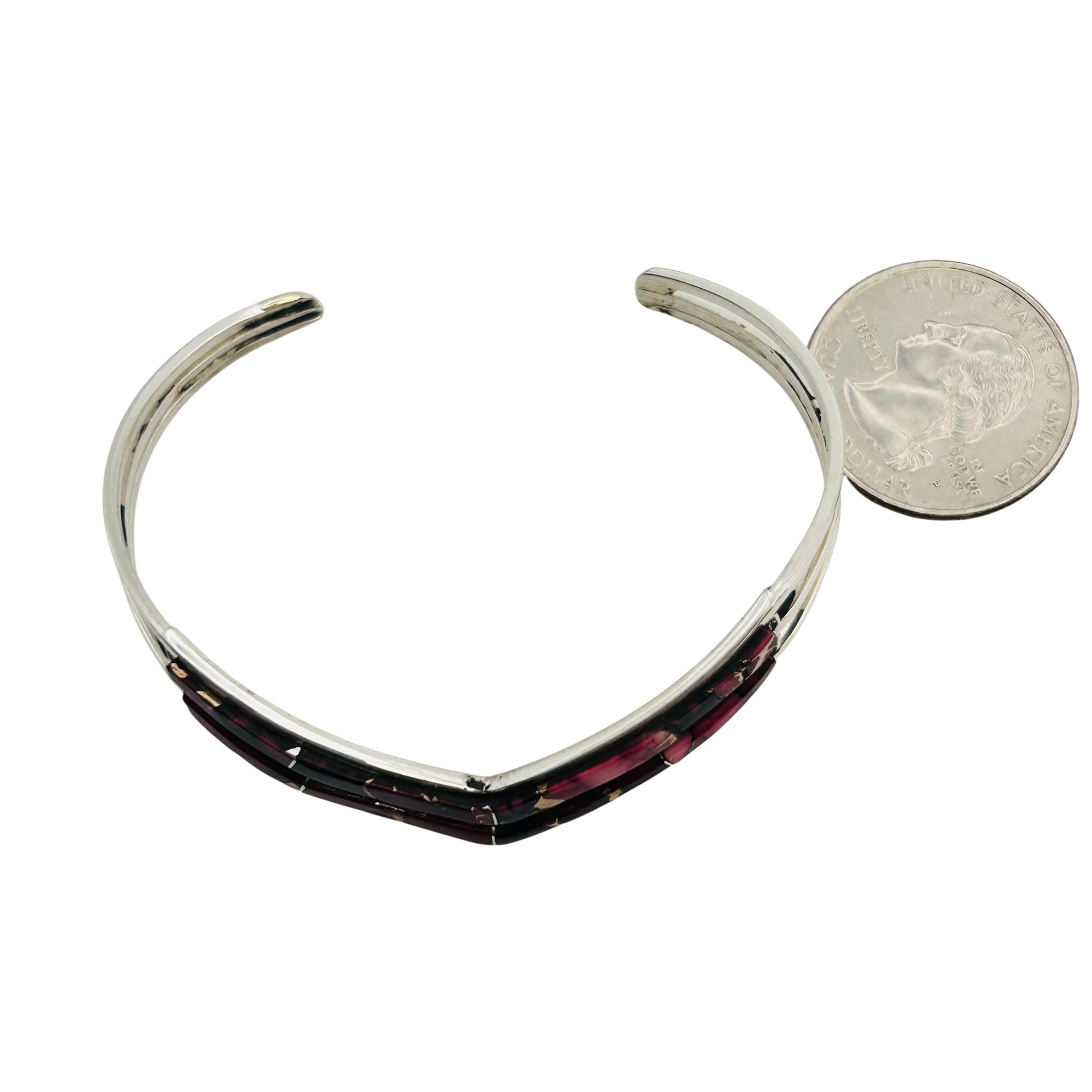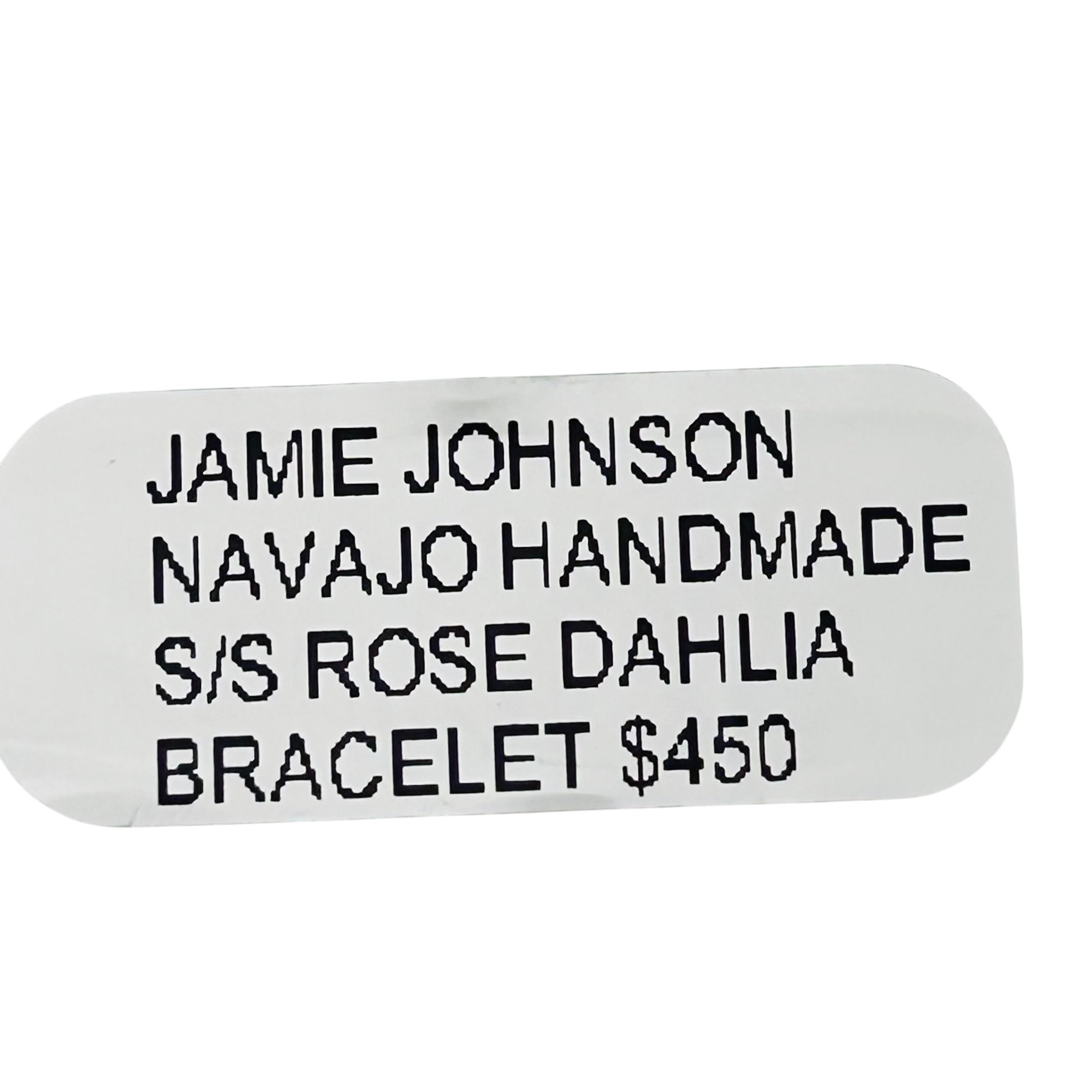 Jamie Johnson Navajo Sterling Rose Dahlia curved Cuff bracelet 10.17 grams