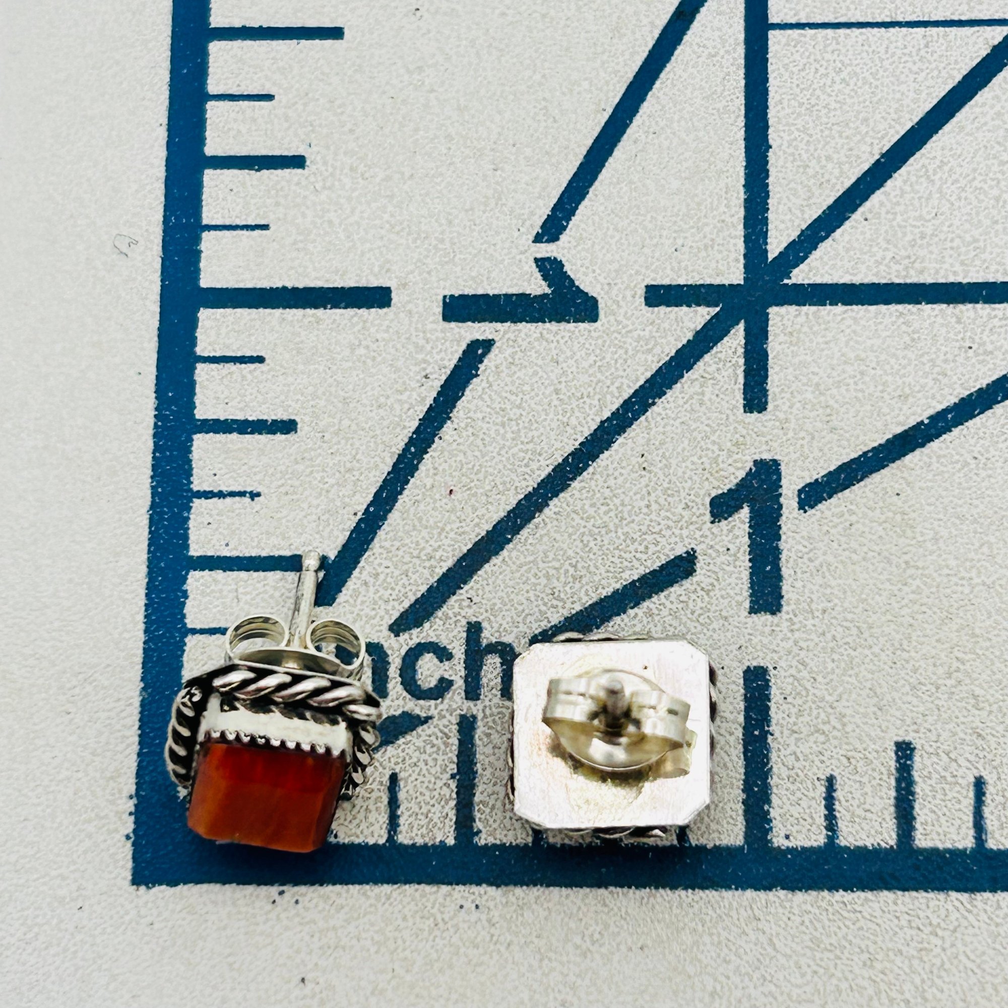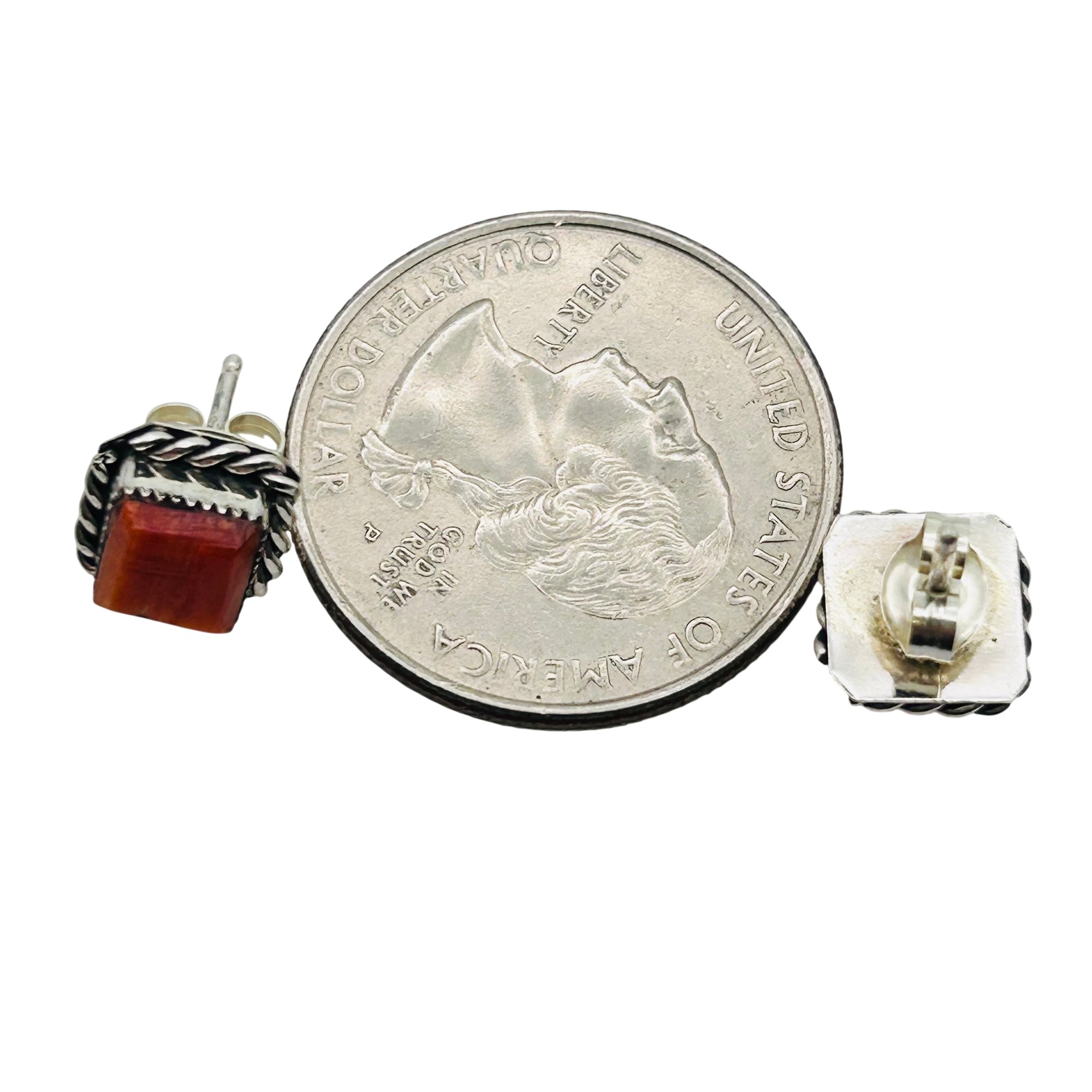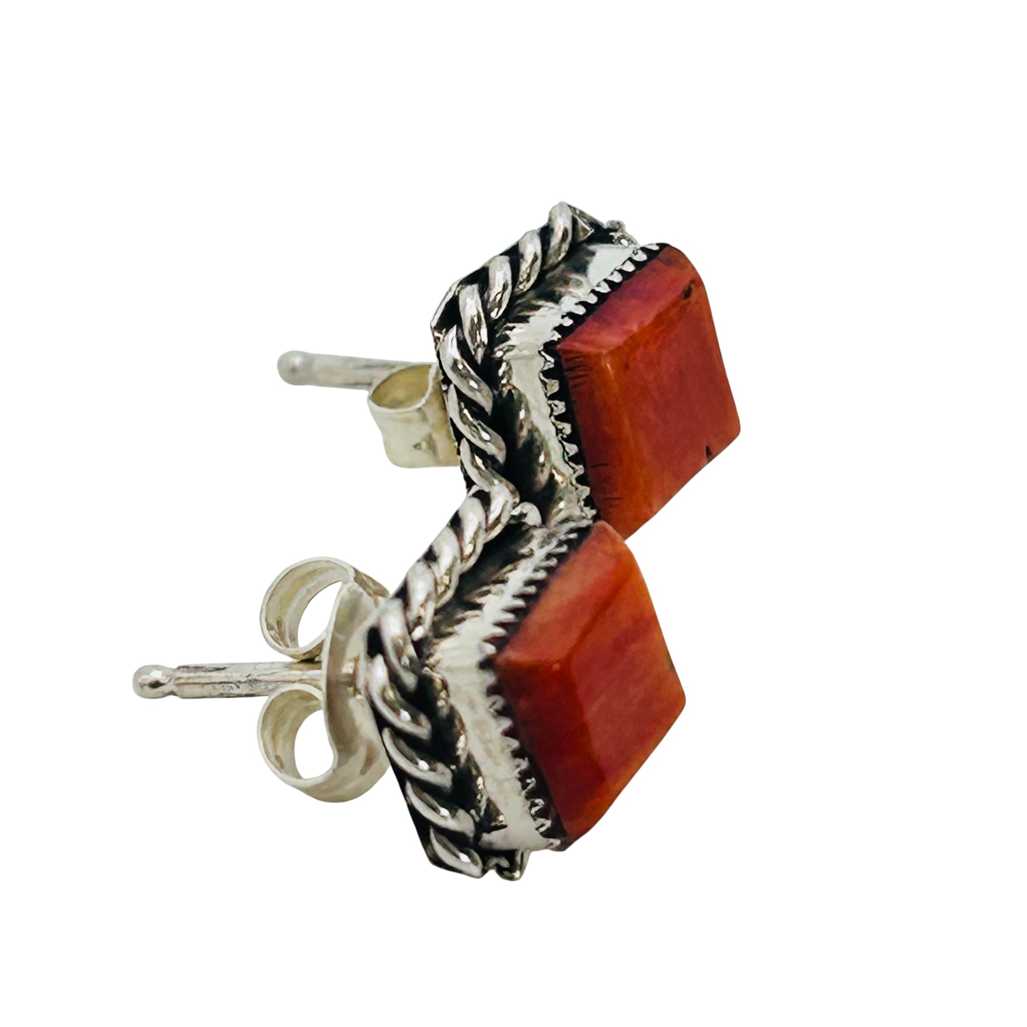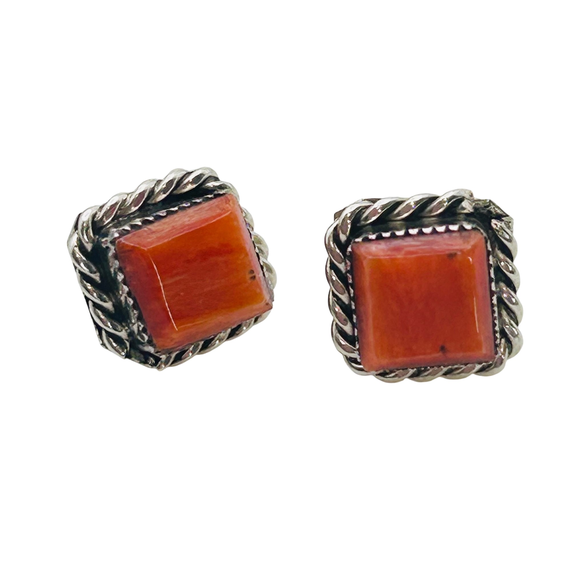 Jesus Espino Navajo Sterling Coral square stud earrings 1.87 grams