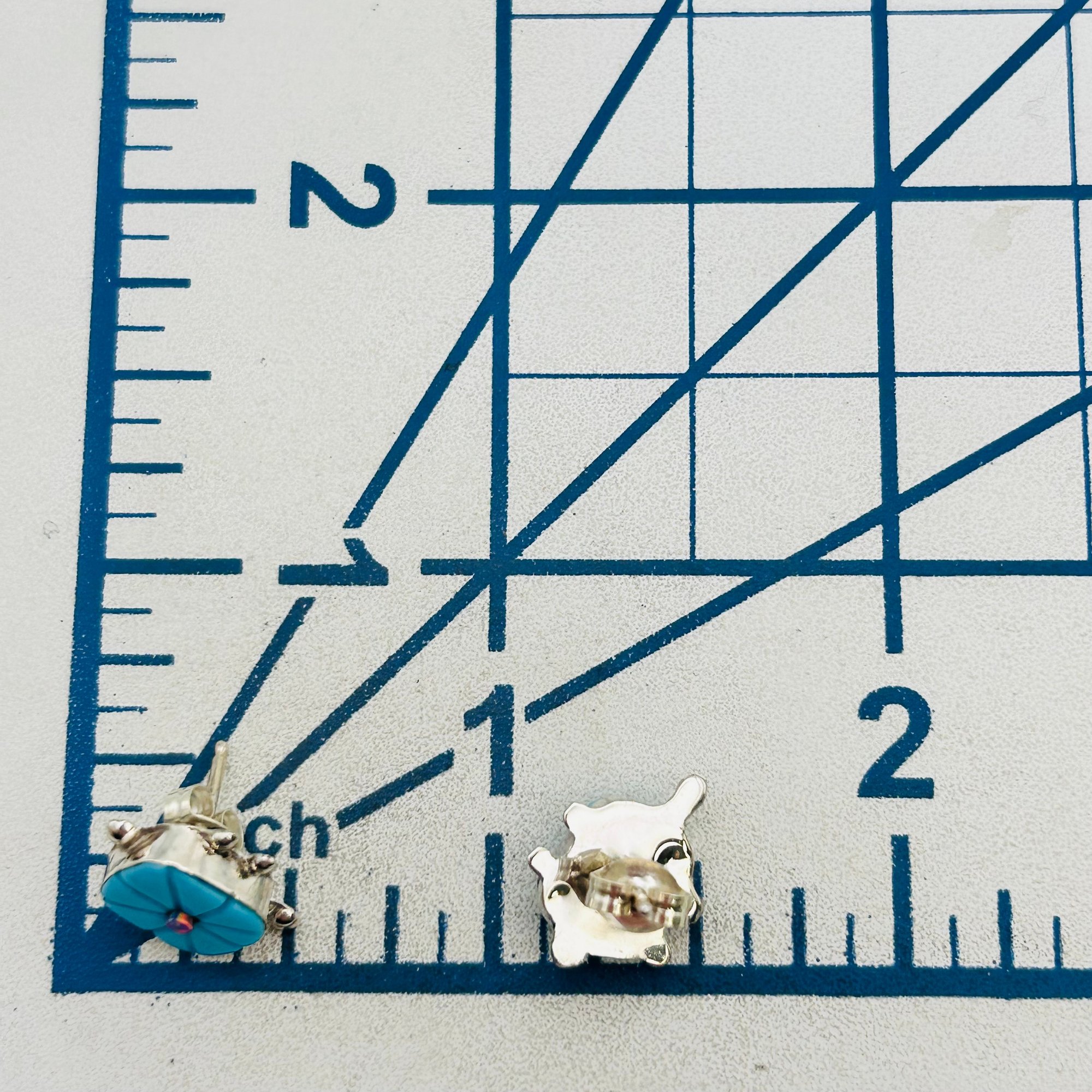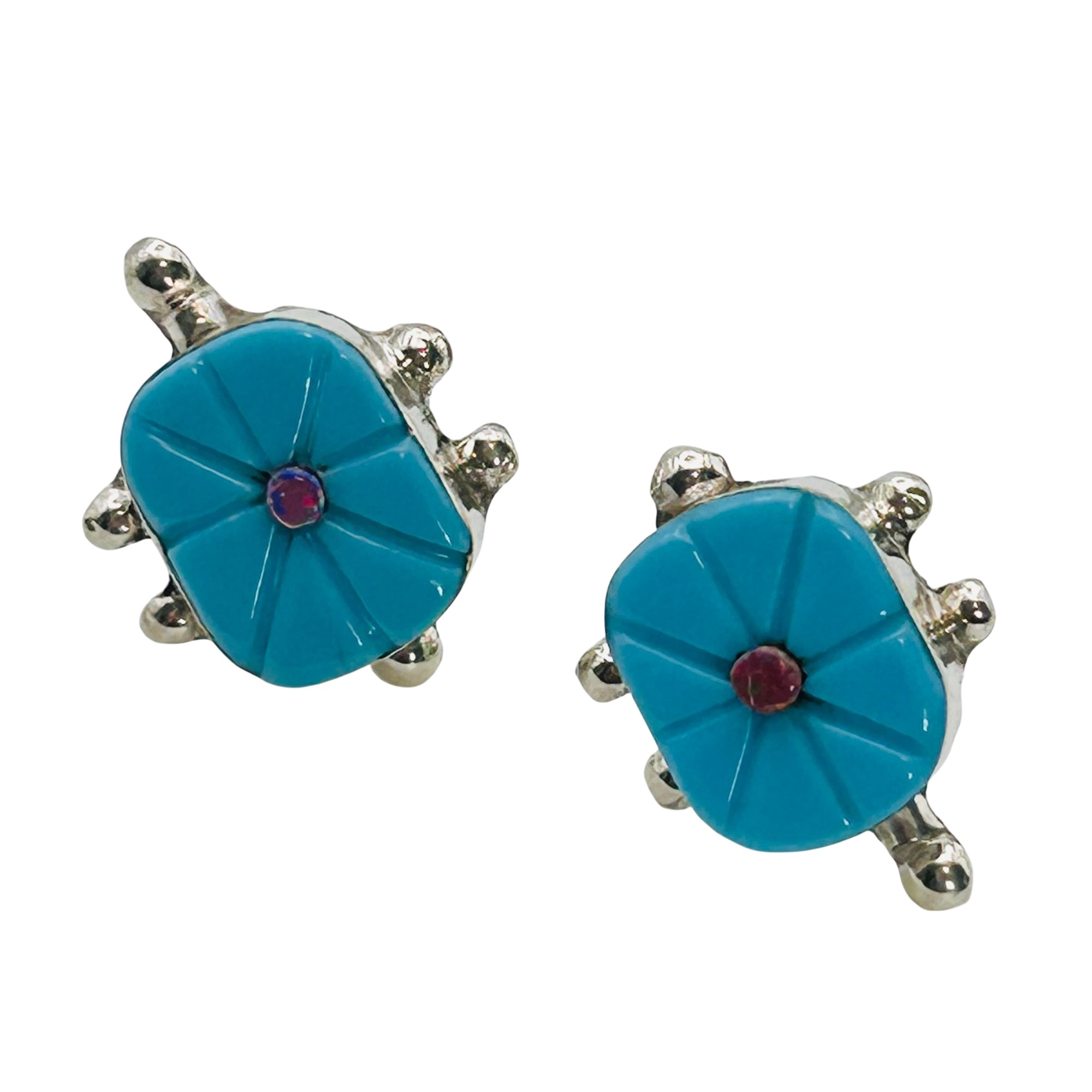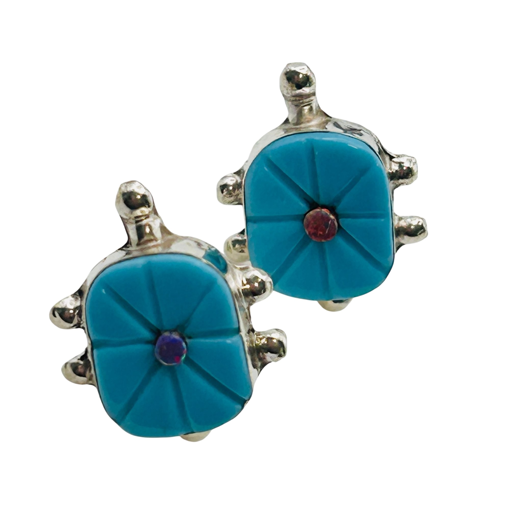 Sarah Bowannie Zuni Sterling Multi stone turquoise and opal pushback turtle Earrings 1.39 grams