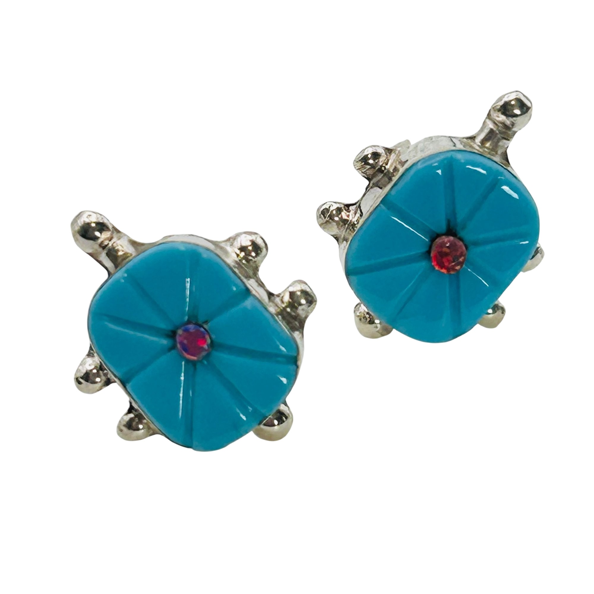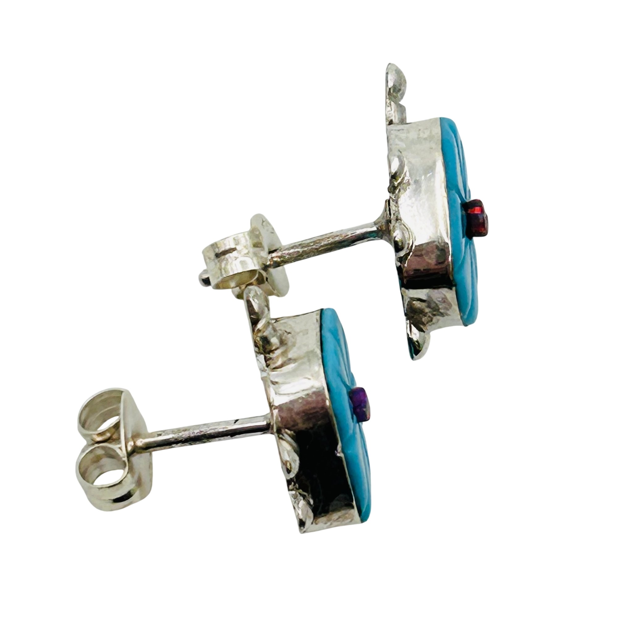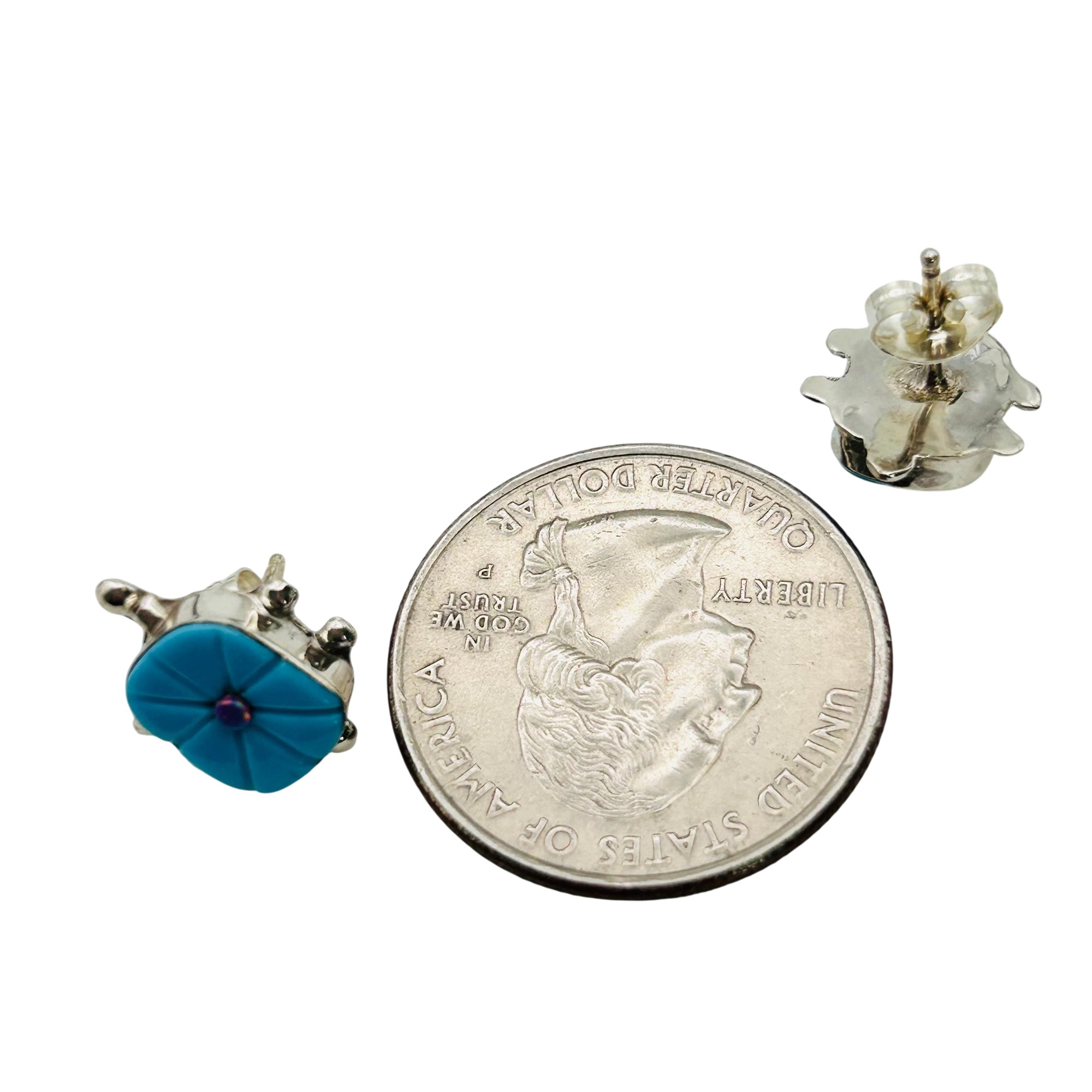 Sarah Bowannie Zuni Sterling Multi stone turquoise and opal pushback turtle Earrings 1.39 grams