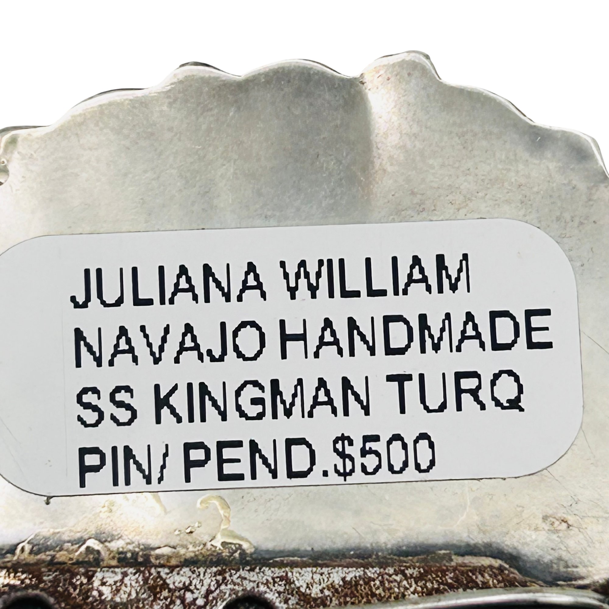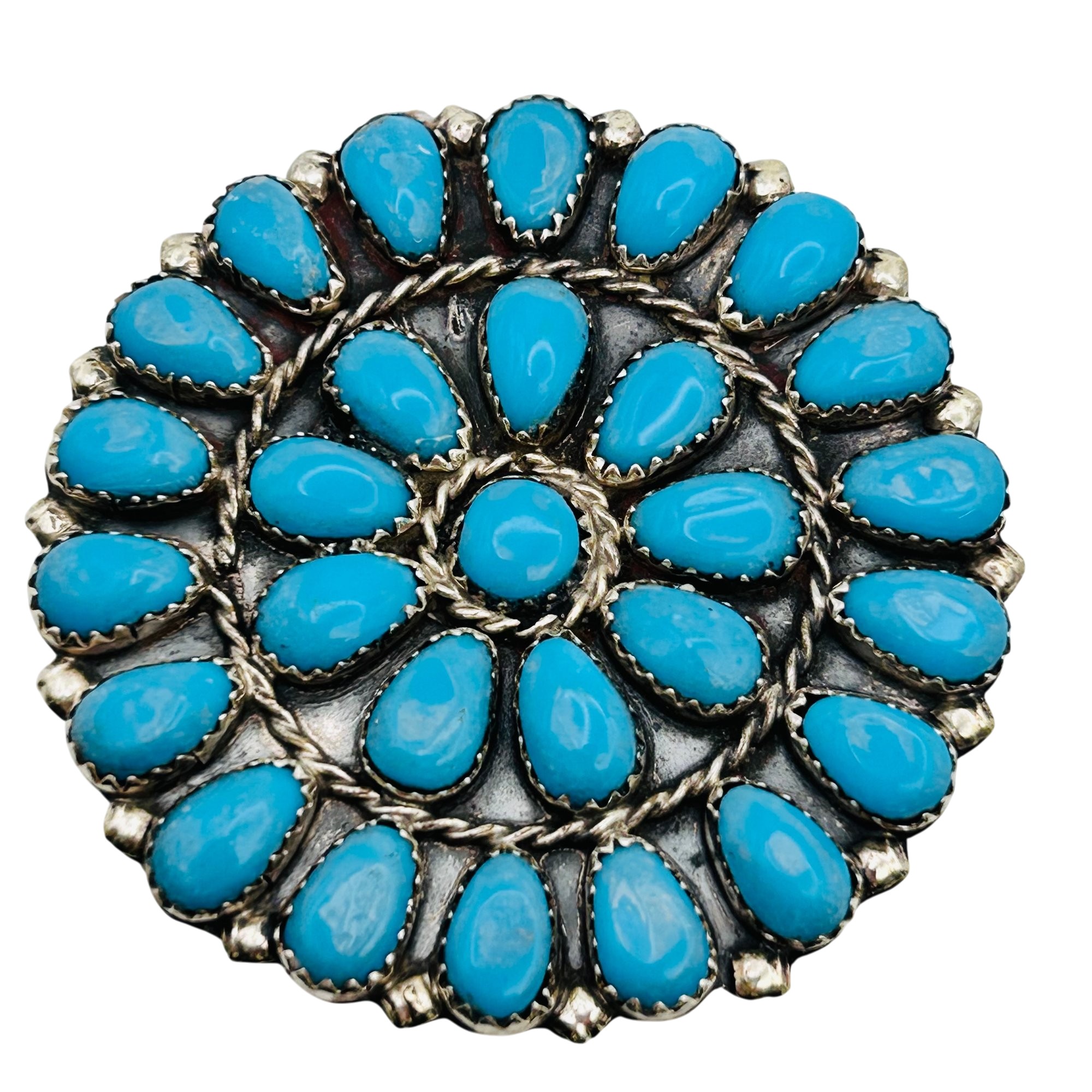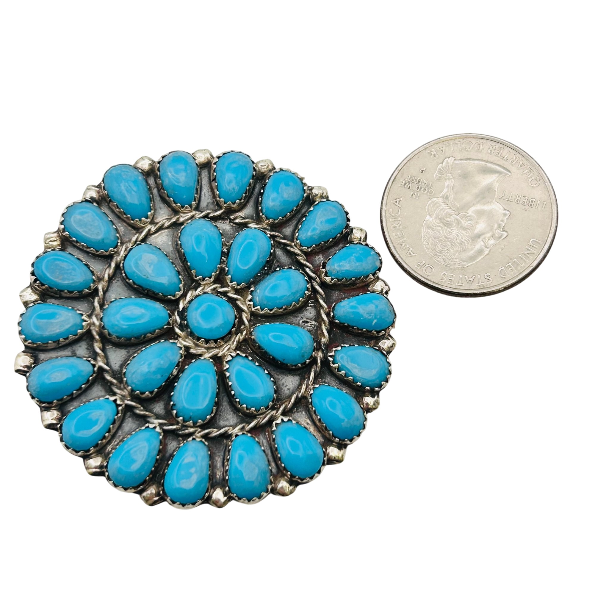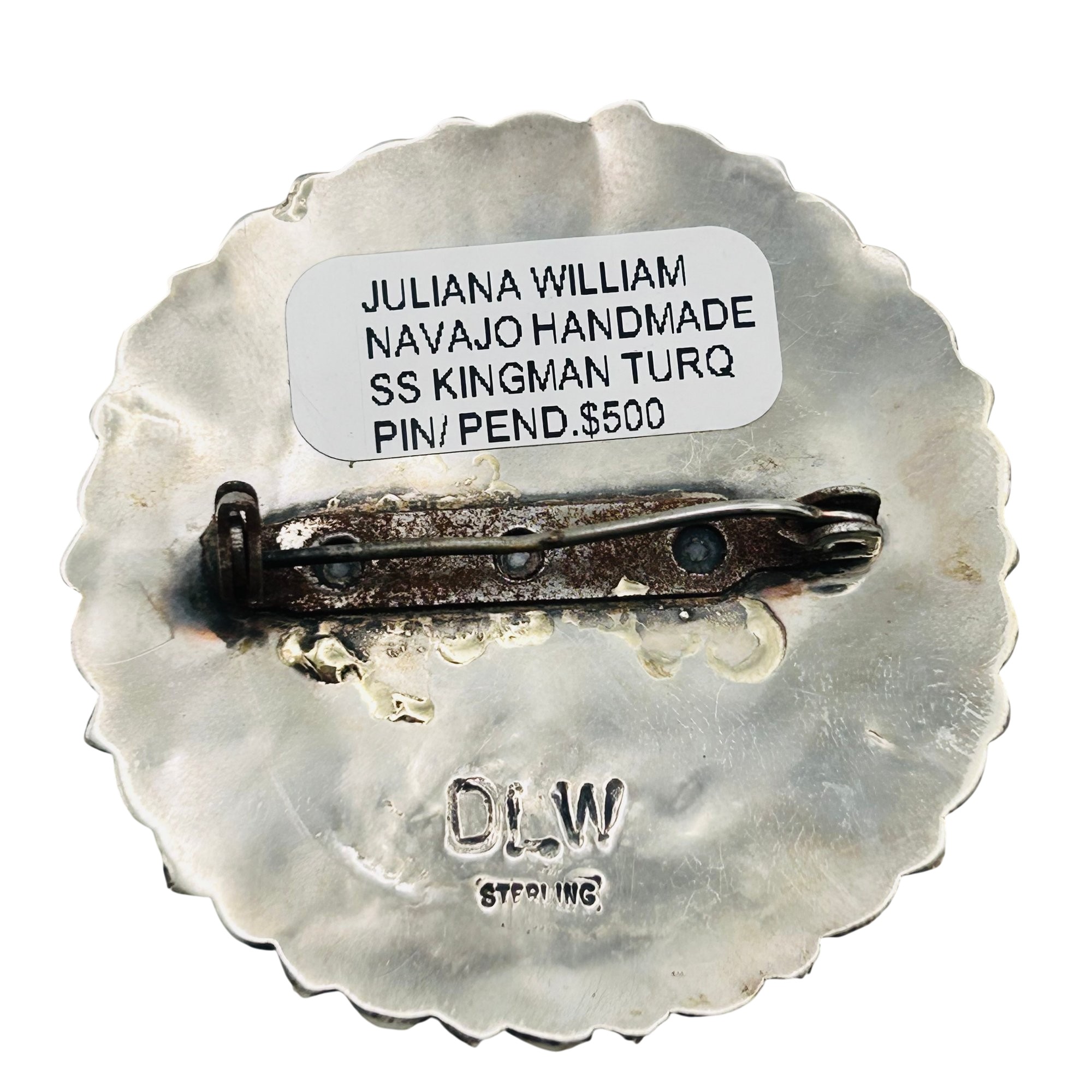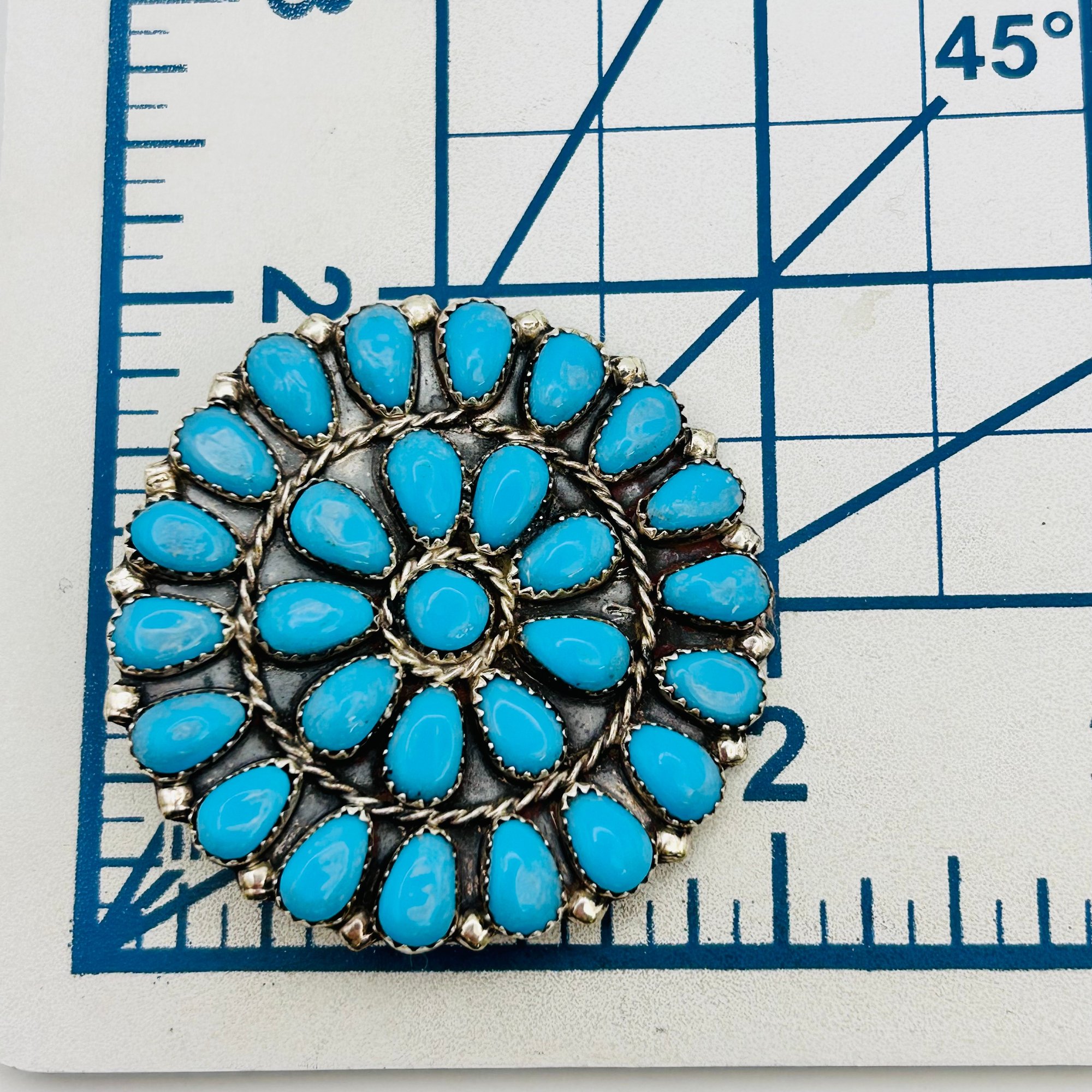 Juliana William Navajo Sterling Kingman Turquoise round cluster Pin 14.84 grams