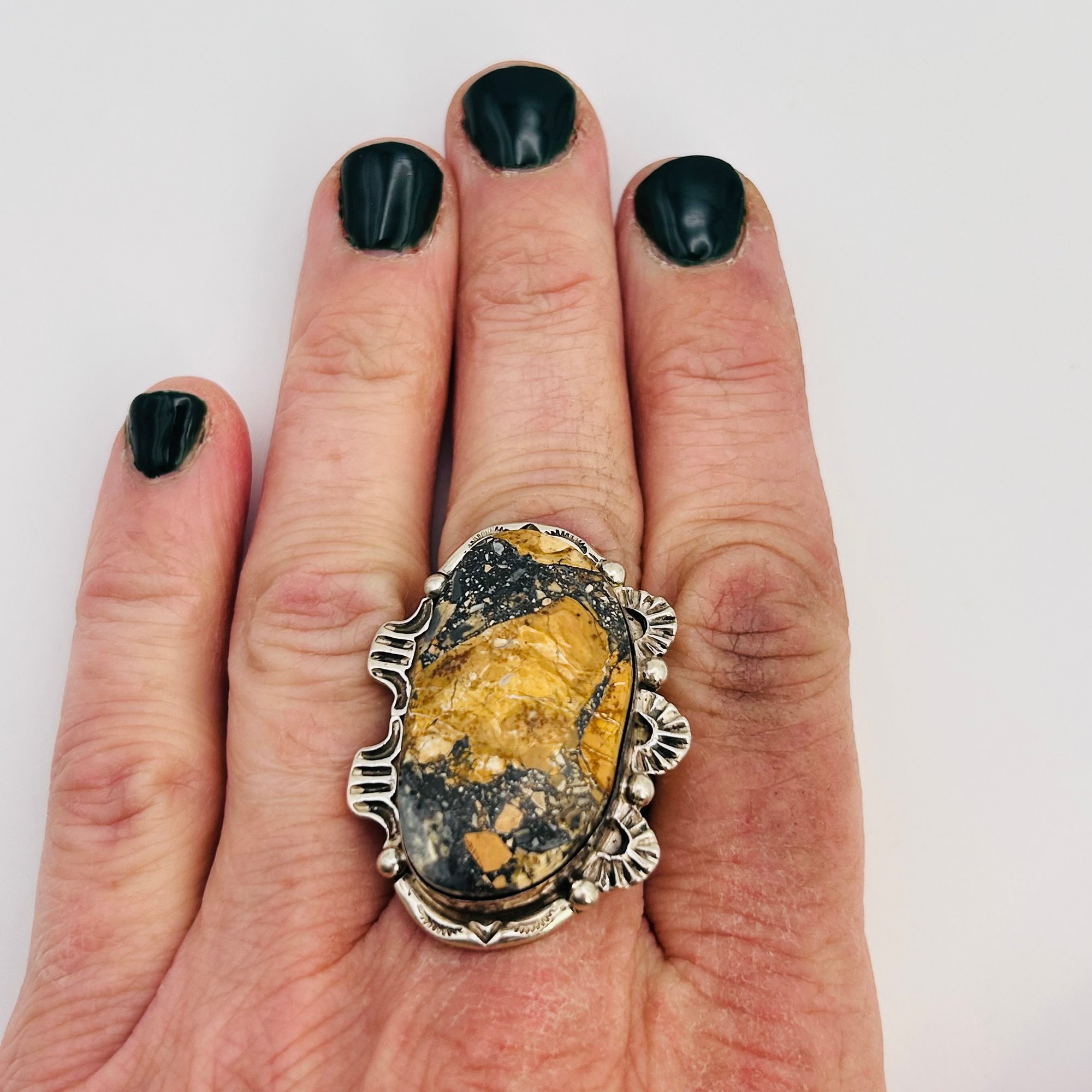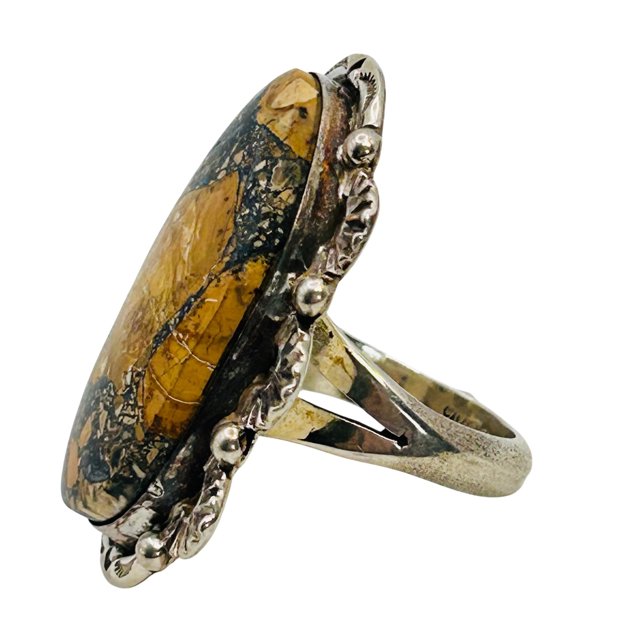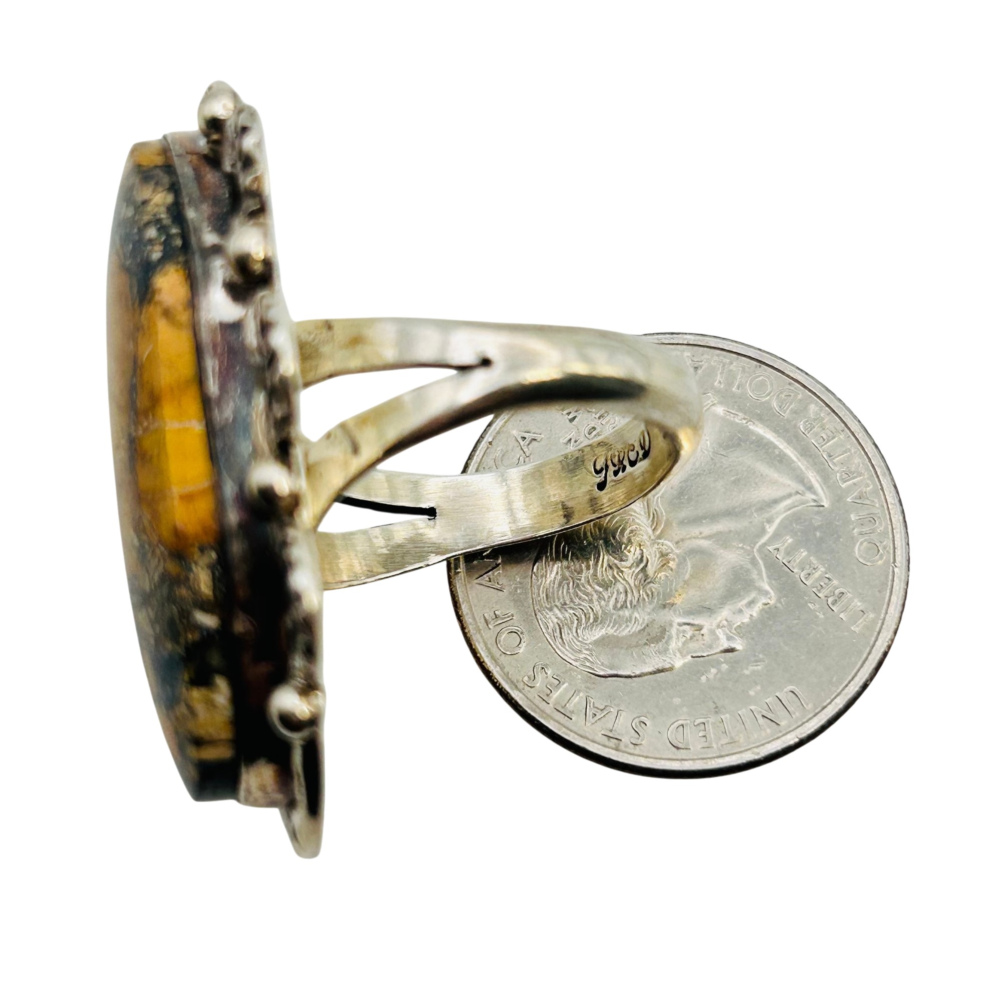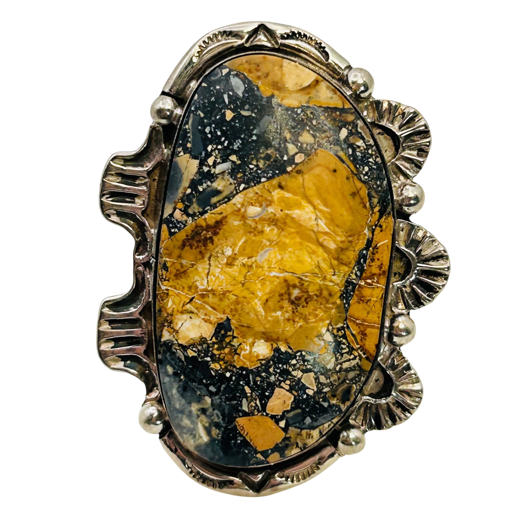 Fred Francis Navajo Sterling Maligano Jasper large oval statement Ring sz.8 16.73 grams
