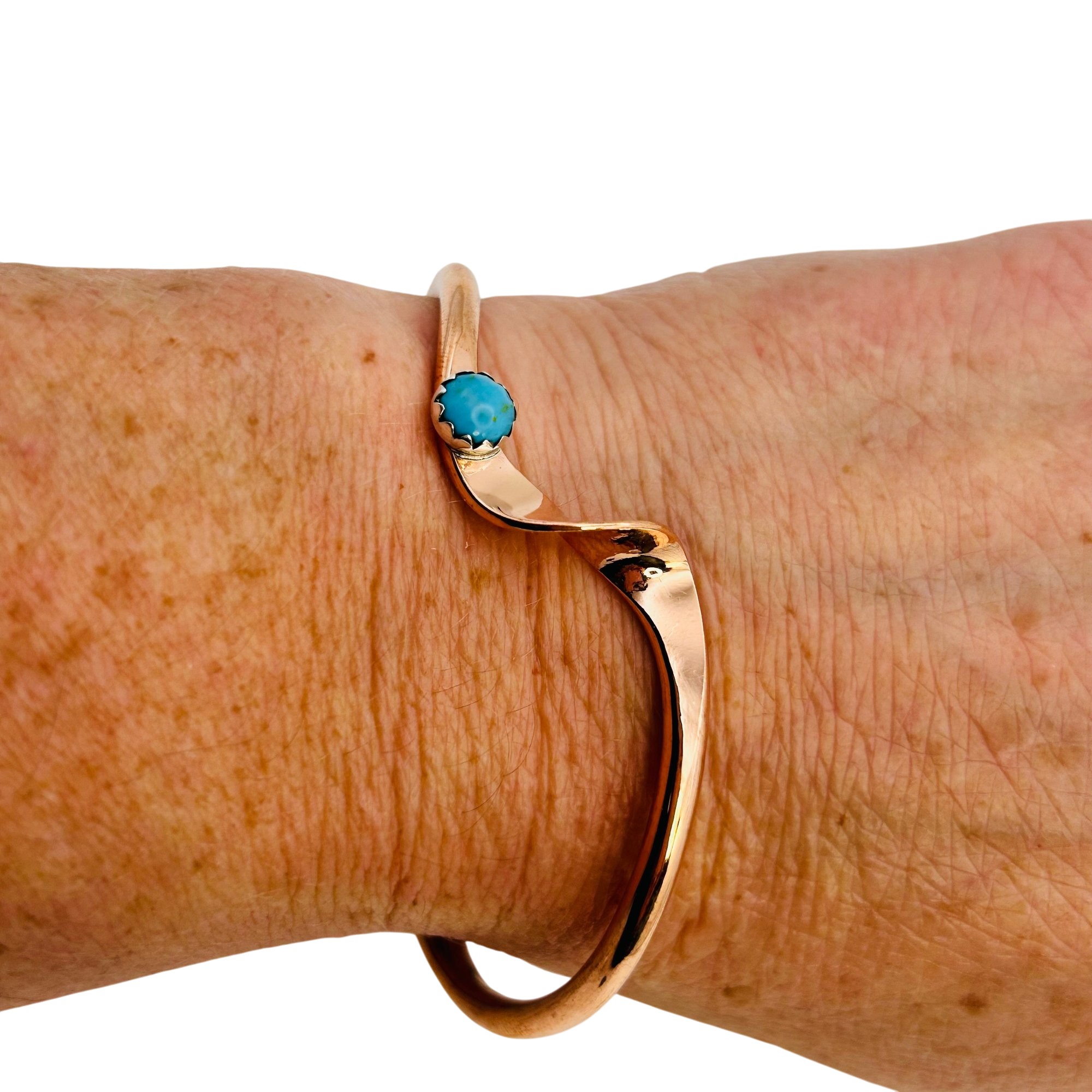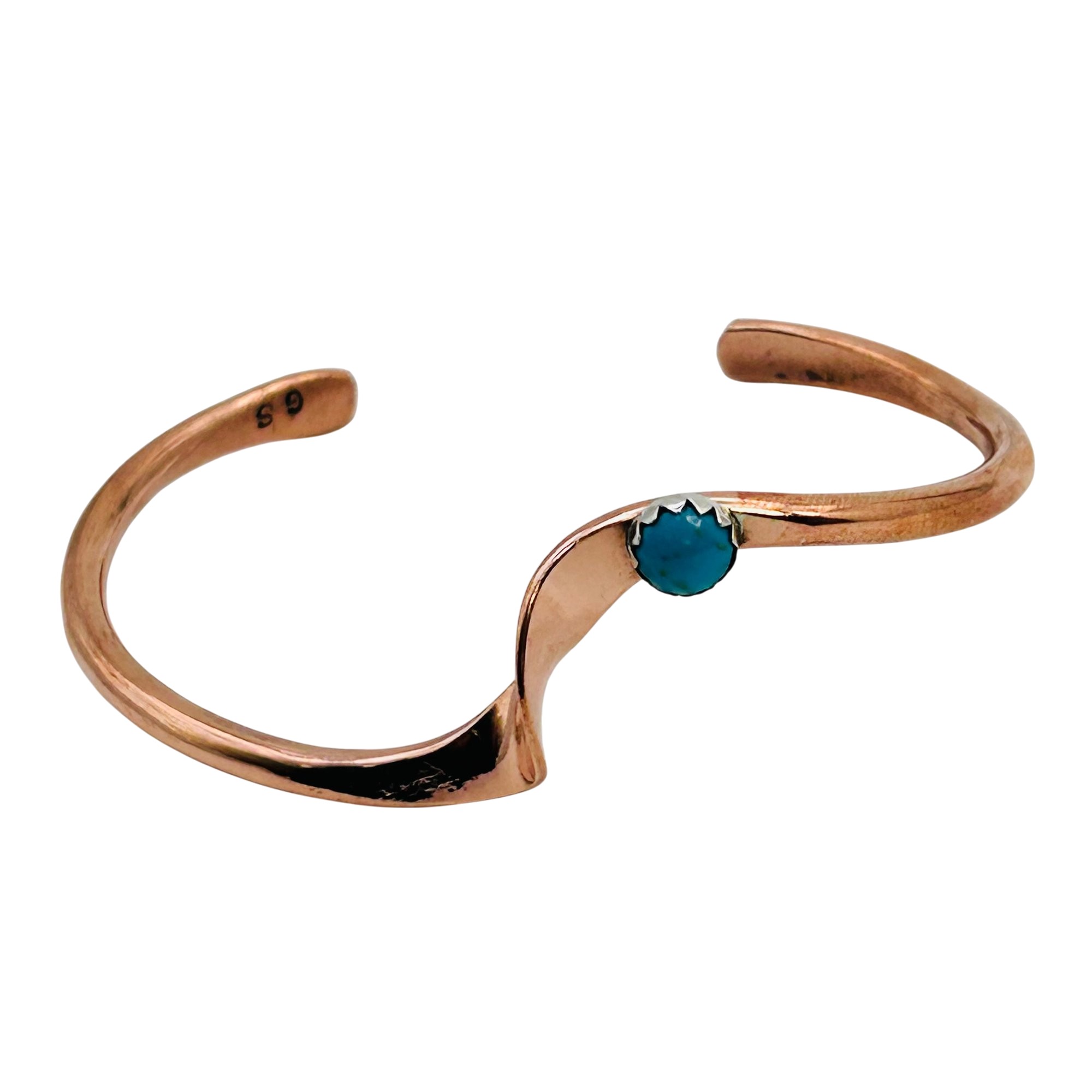 Yolanda Skeets Navajo Sterling Kingman Turquoise Copper Bracelet 11.74 grams
