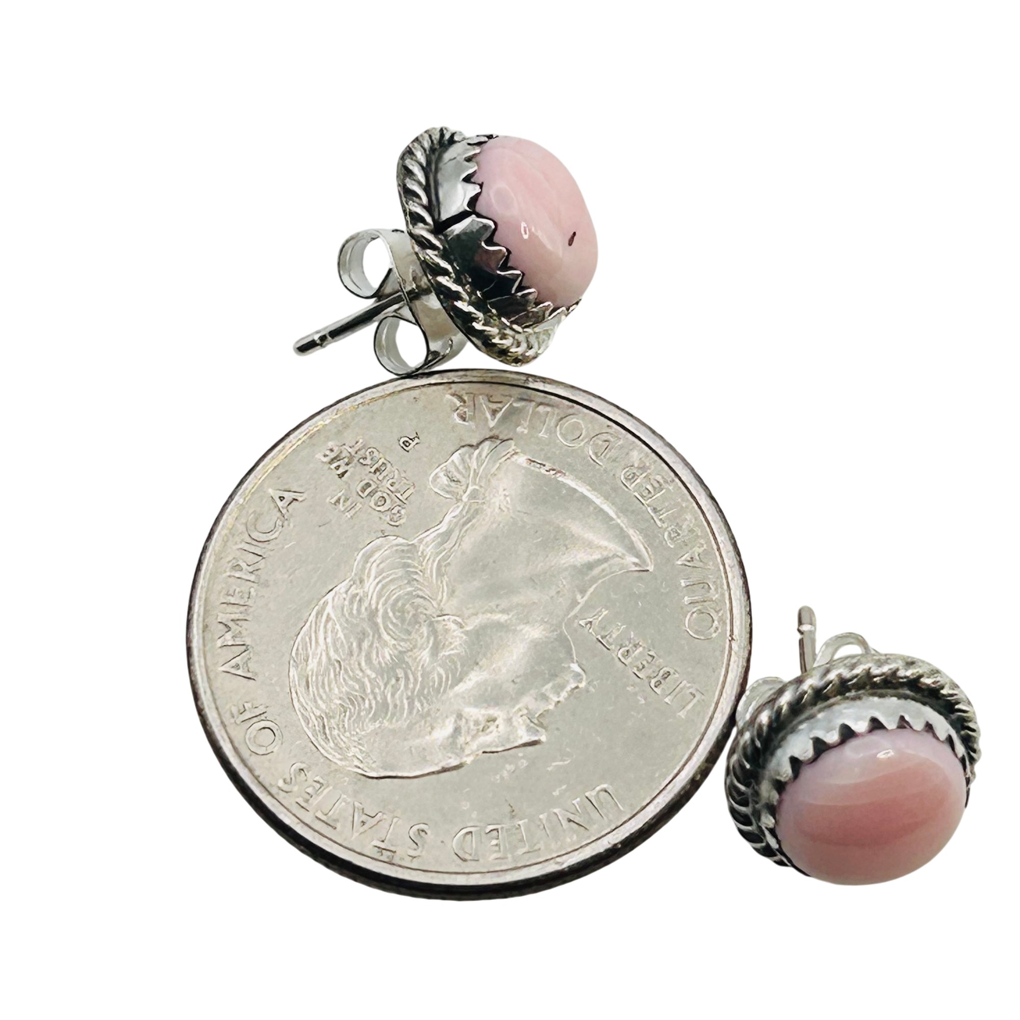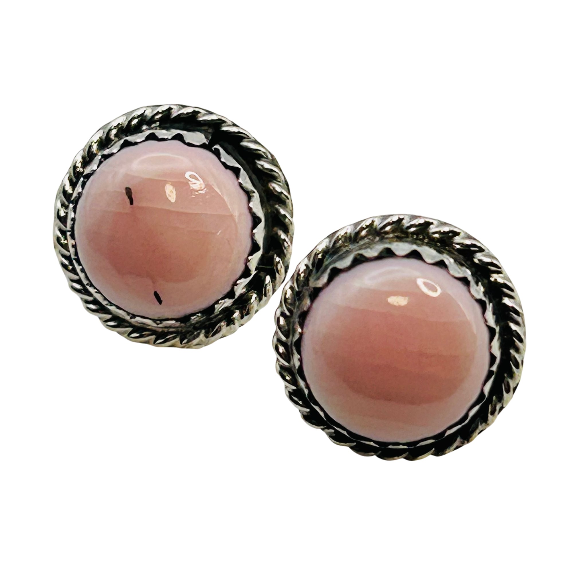 Esther White Navajo Sterling Pink Conch push back stud Earring