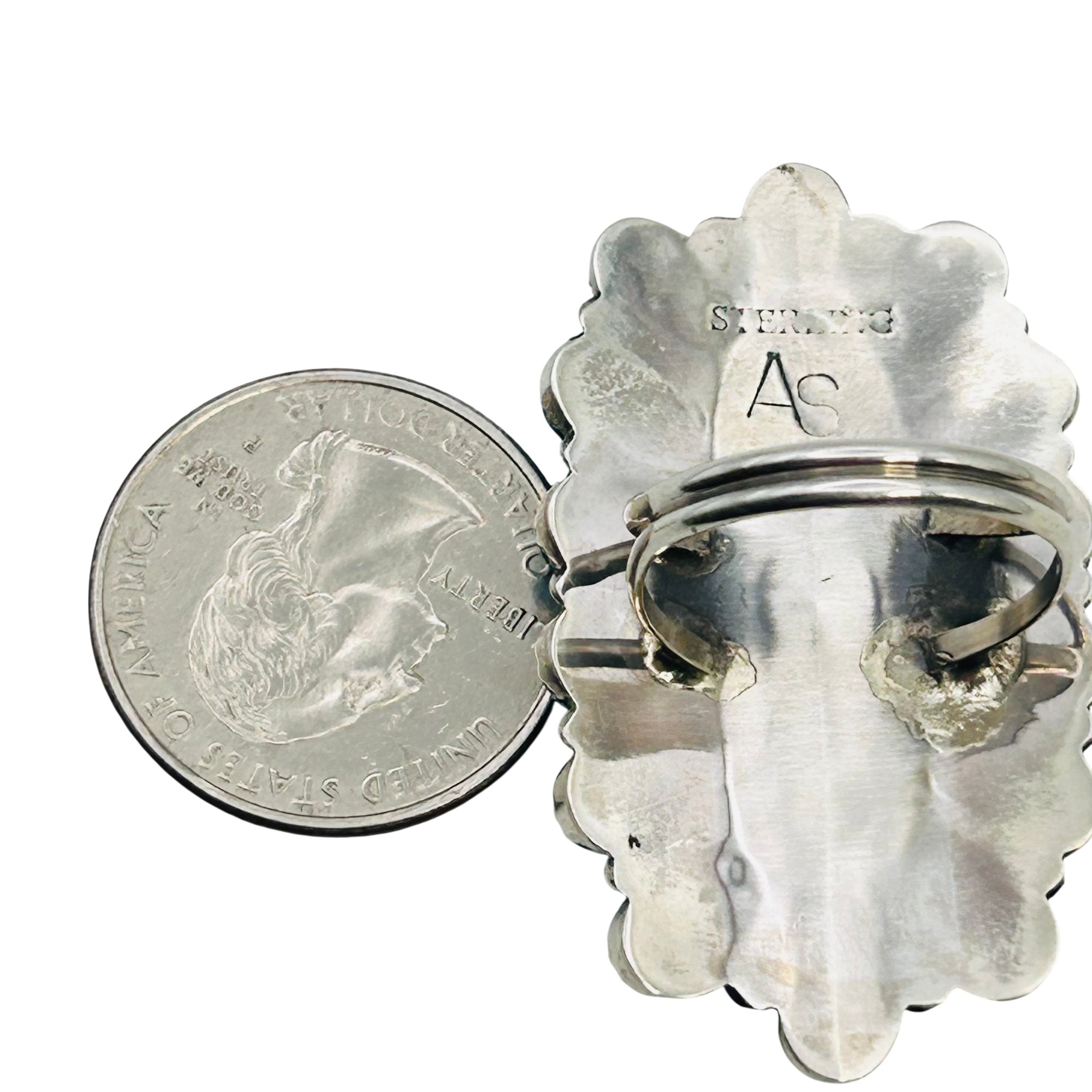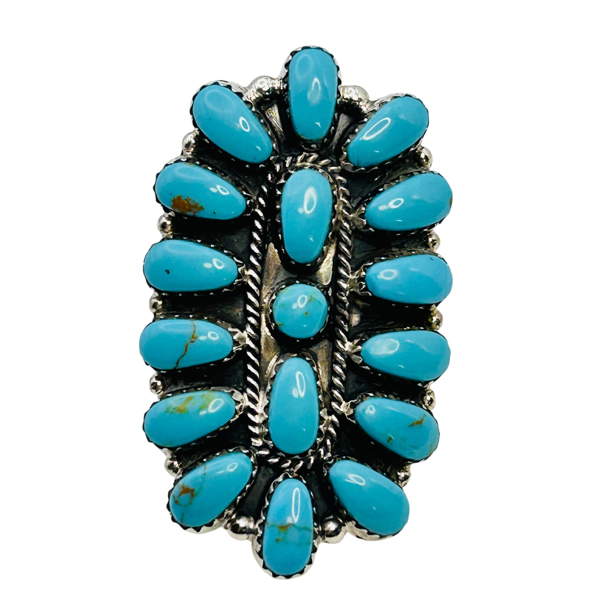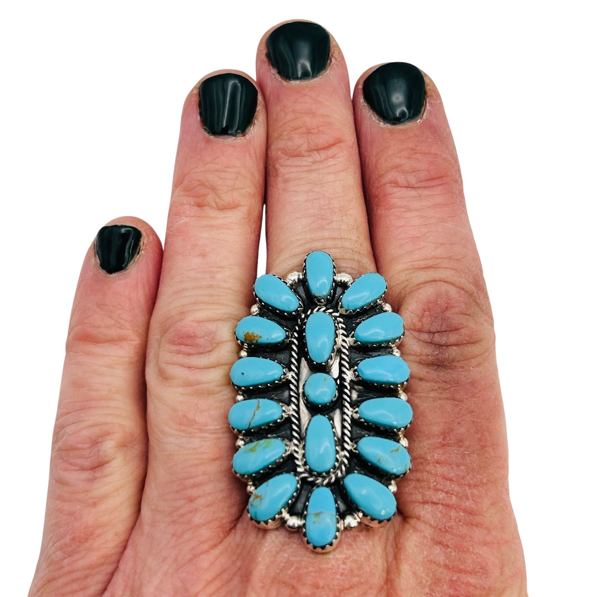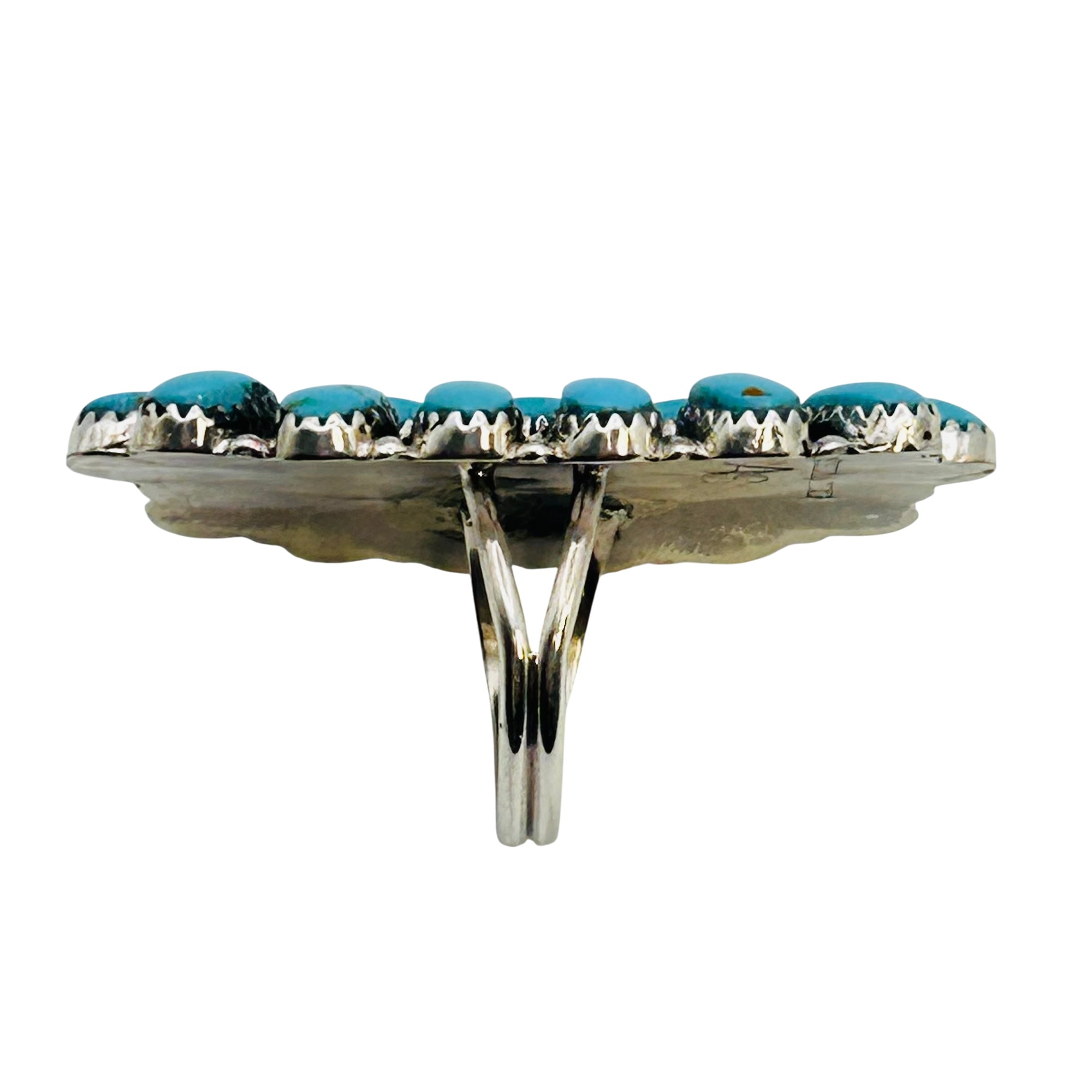 Annie Smith Navajo Sterling Turquoise oval statement Ring SZ.9 9.77 grams