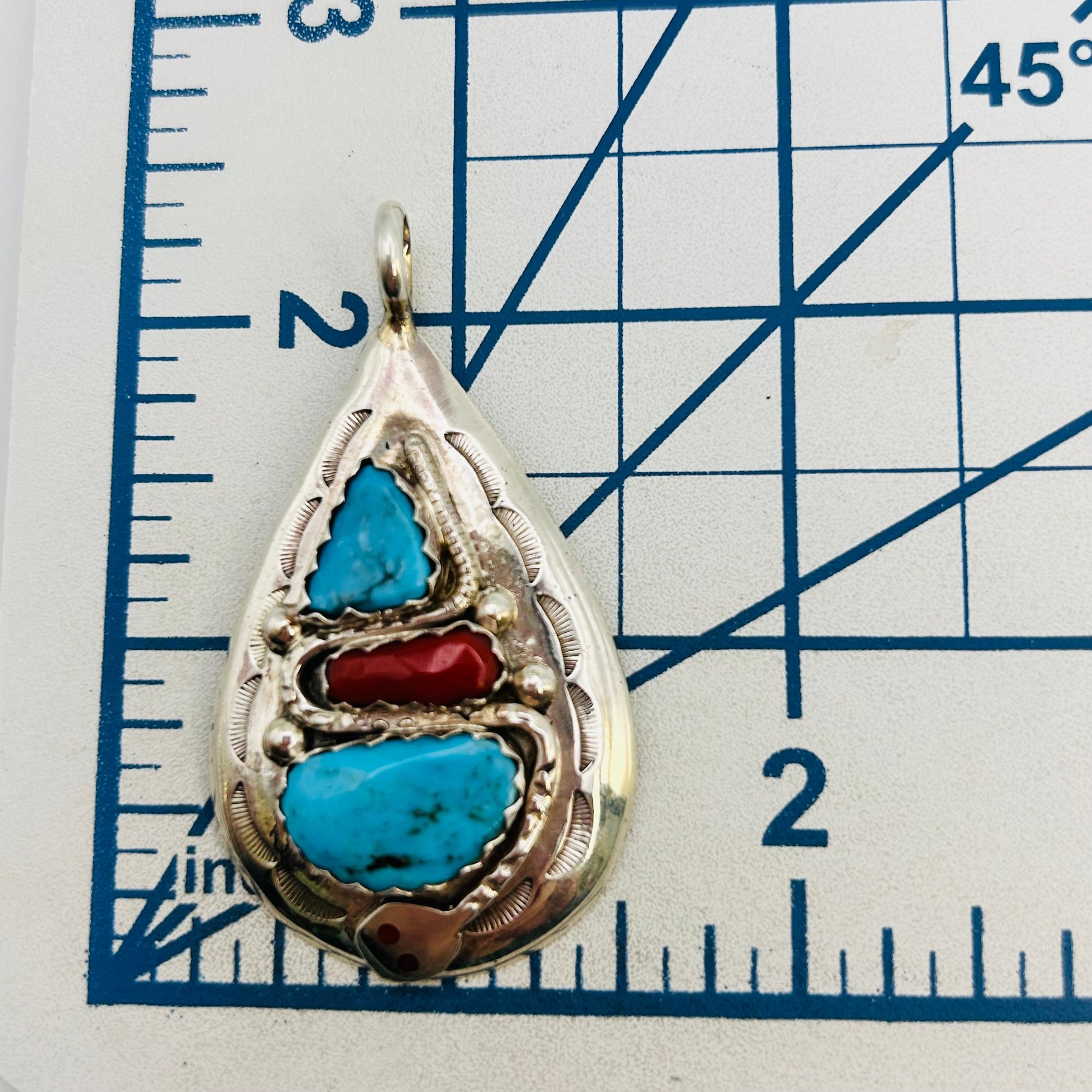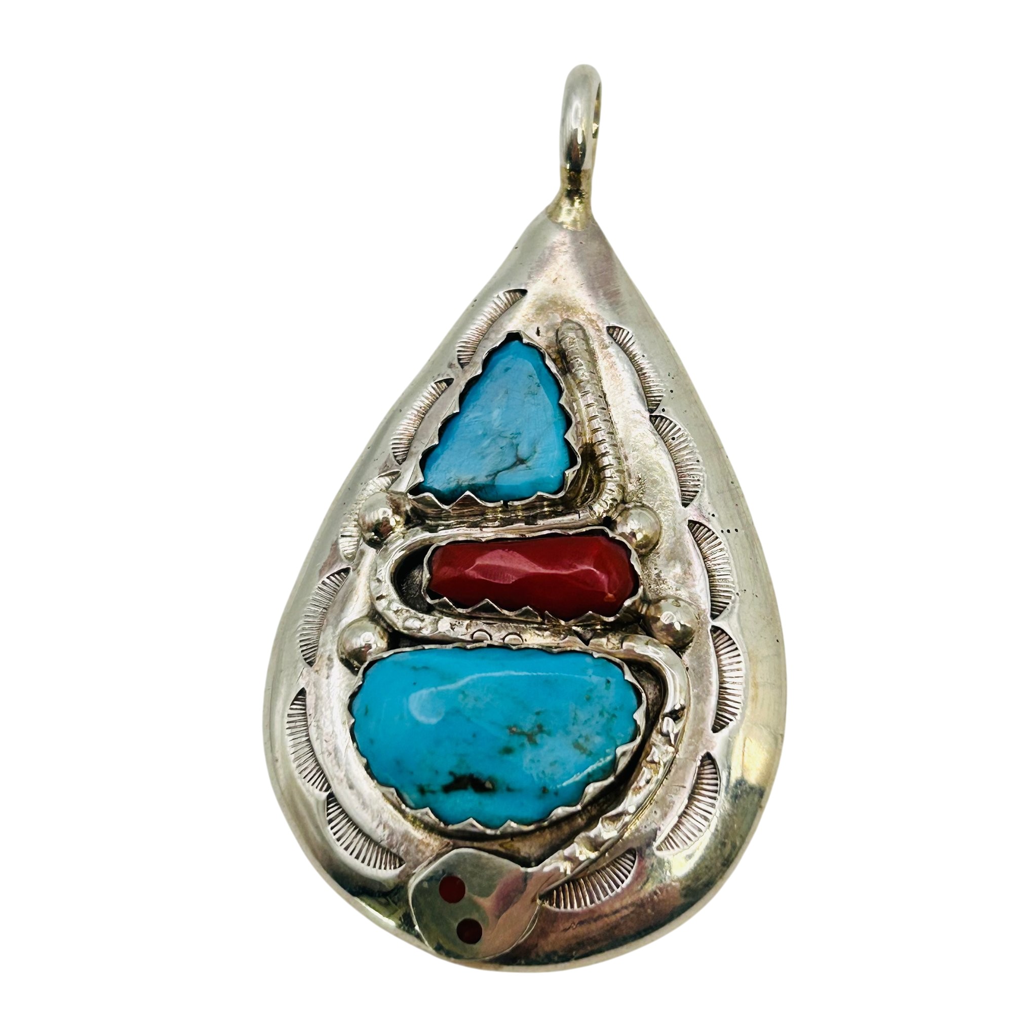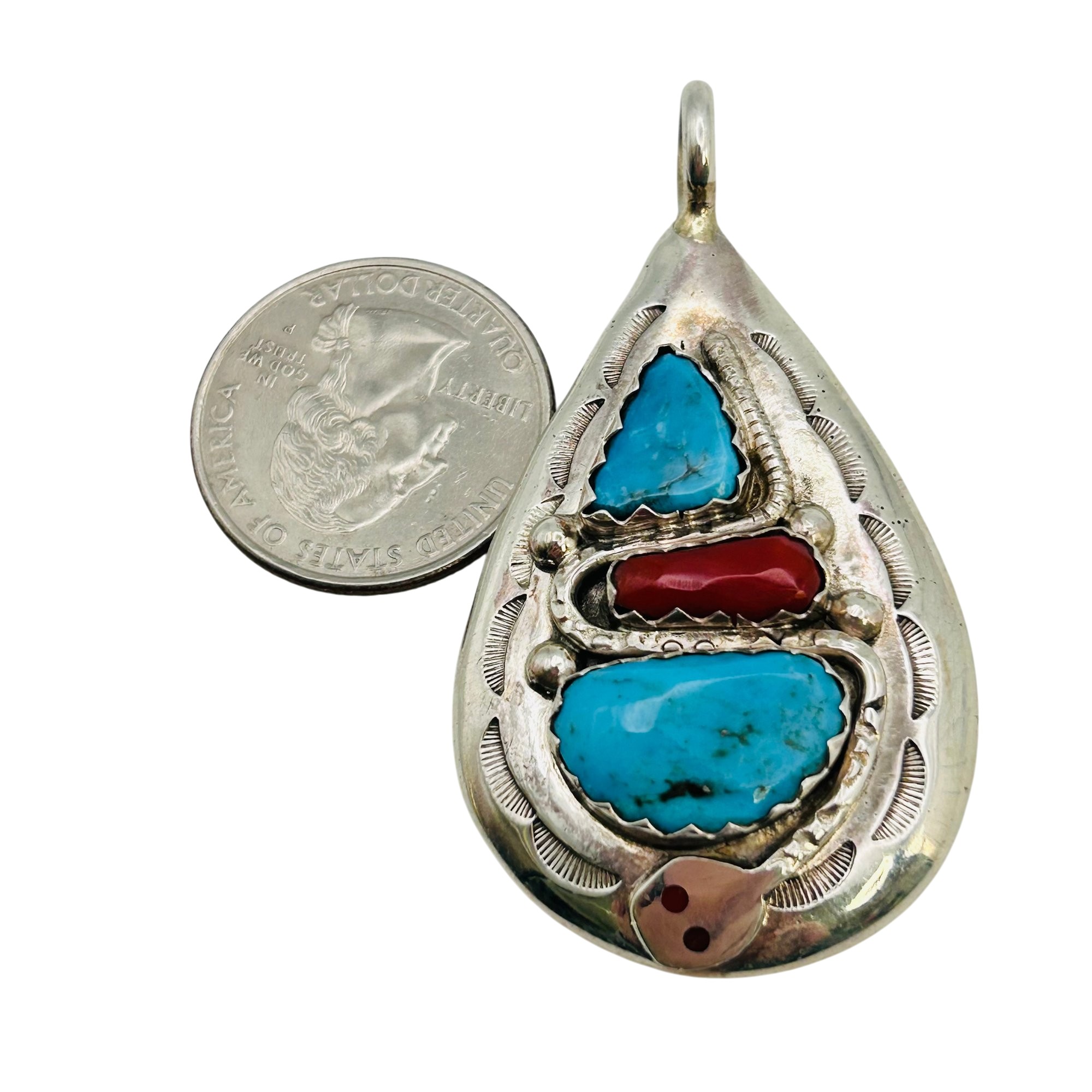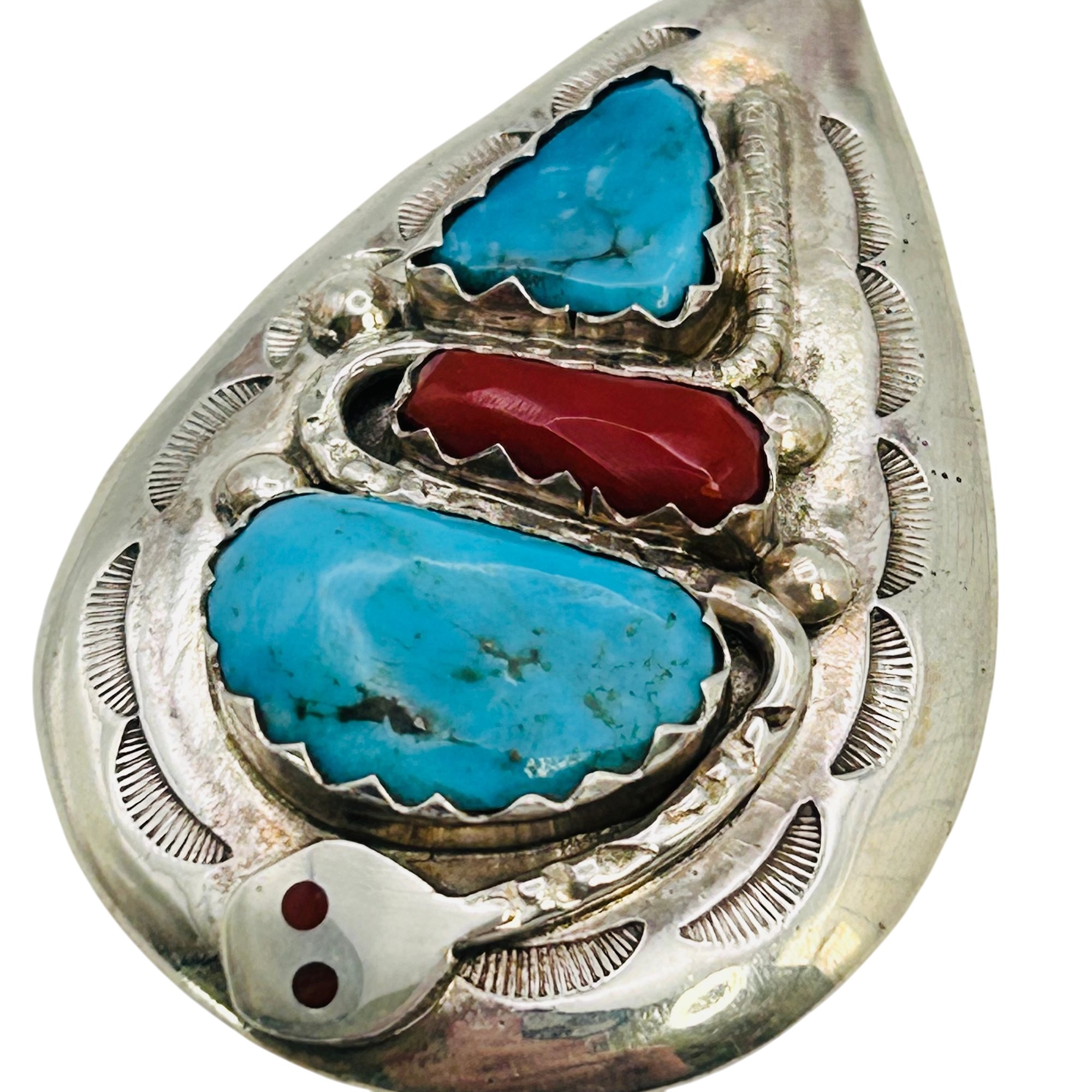 Effie Calavaza Zuni Sterling Turquoise Coral snake statement Pendant 19.35grams