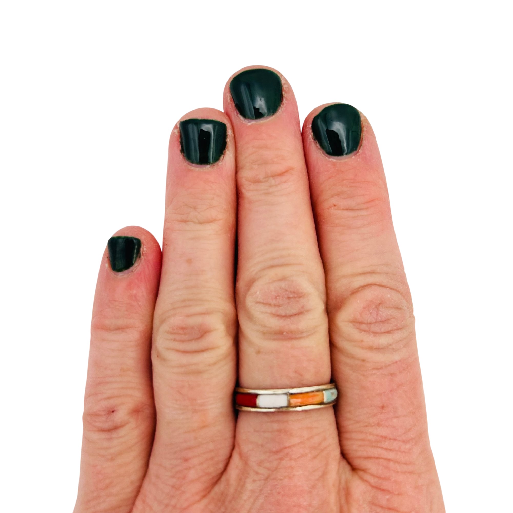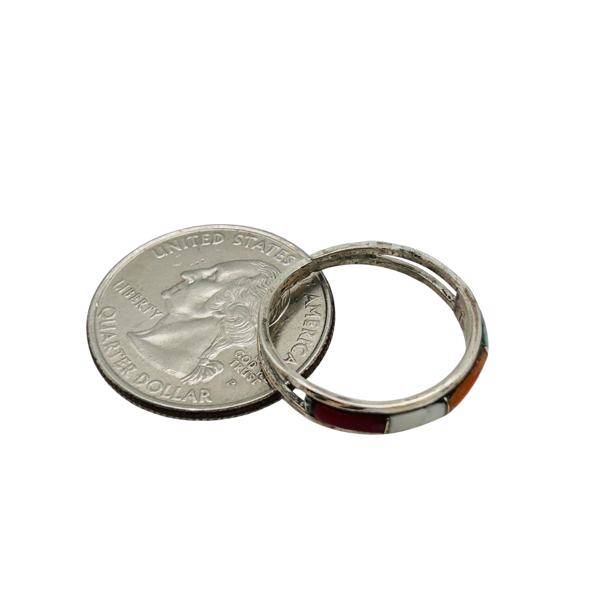 Debbie Livingston Navajo Sterling Multi Stone Coral spiny oyster turquoise Ring SZ 9 1.64 grams