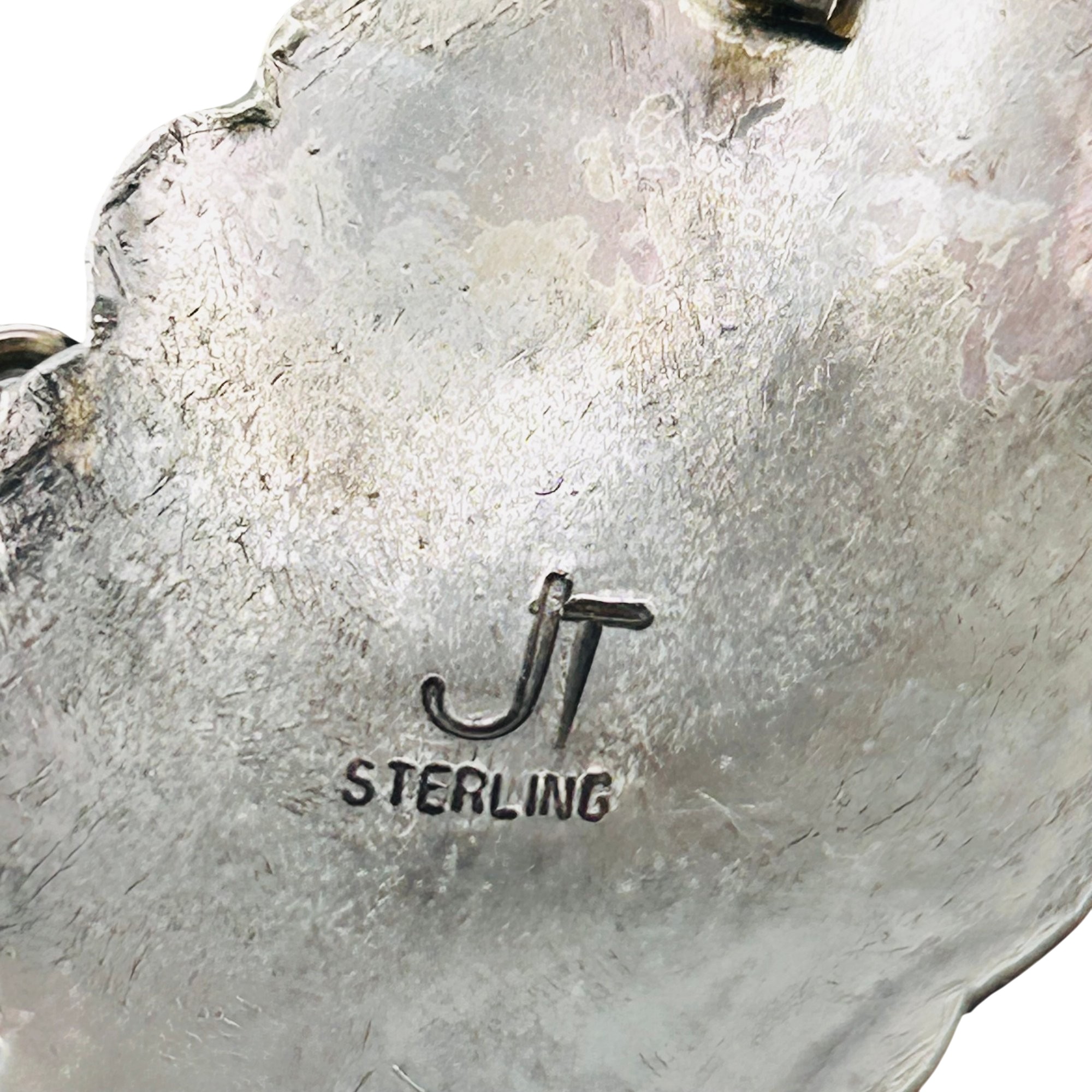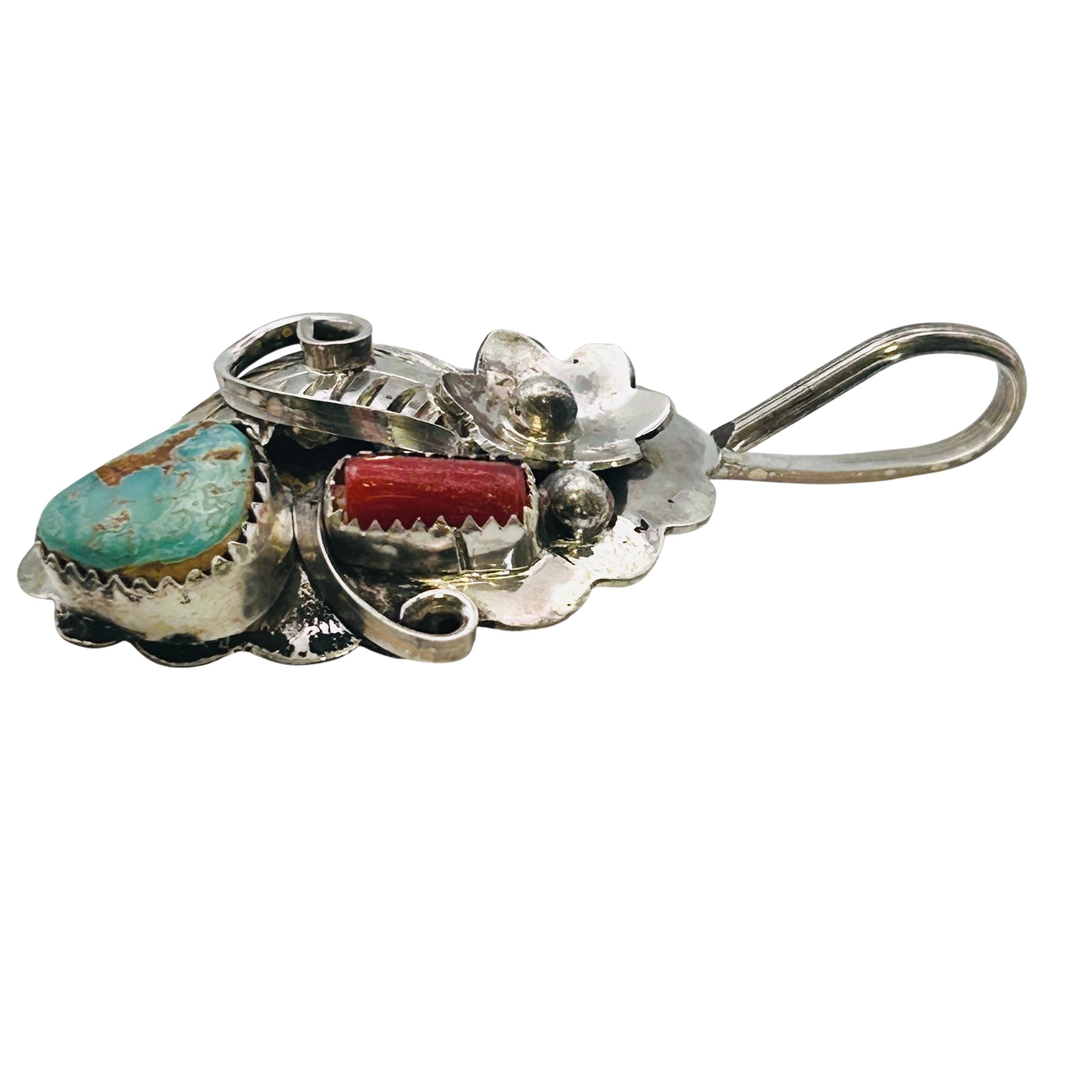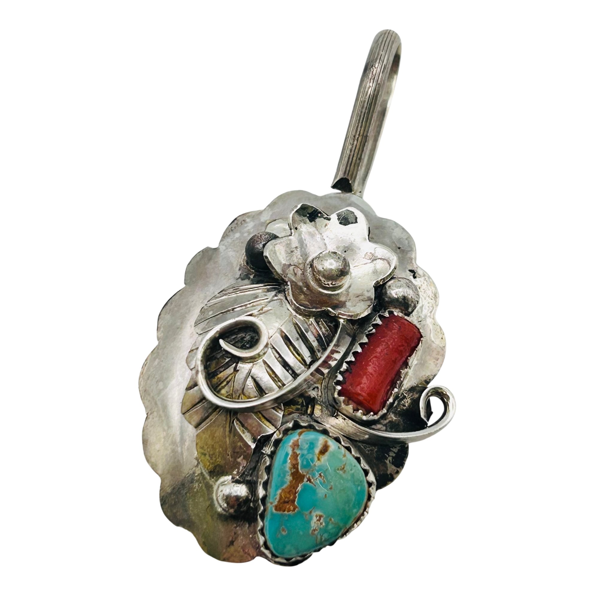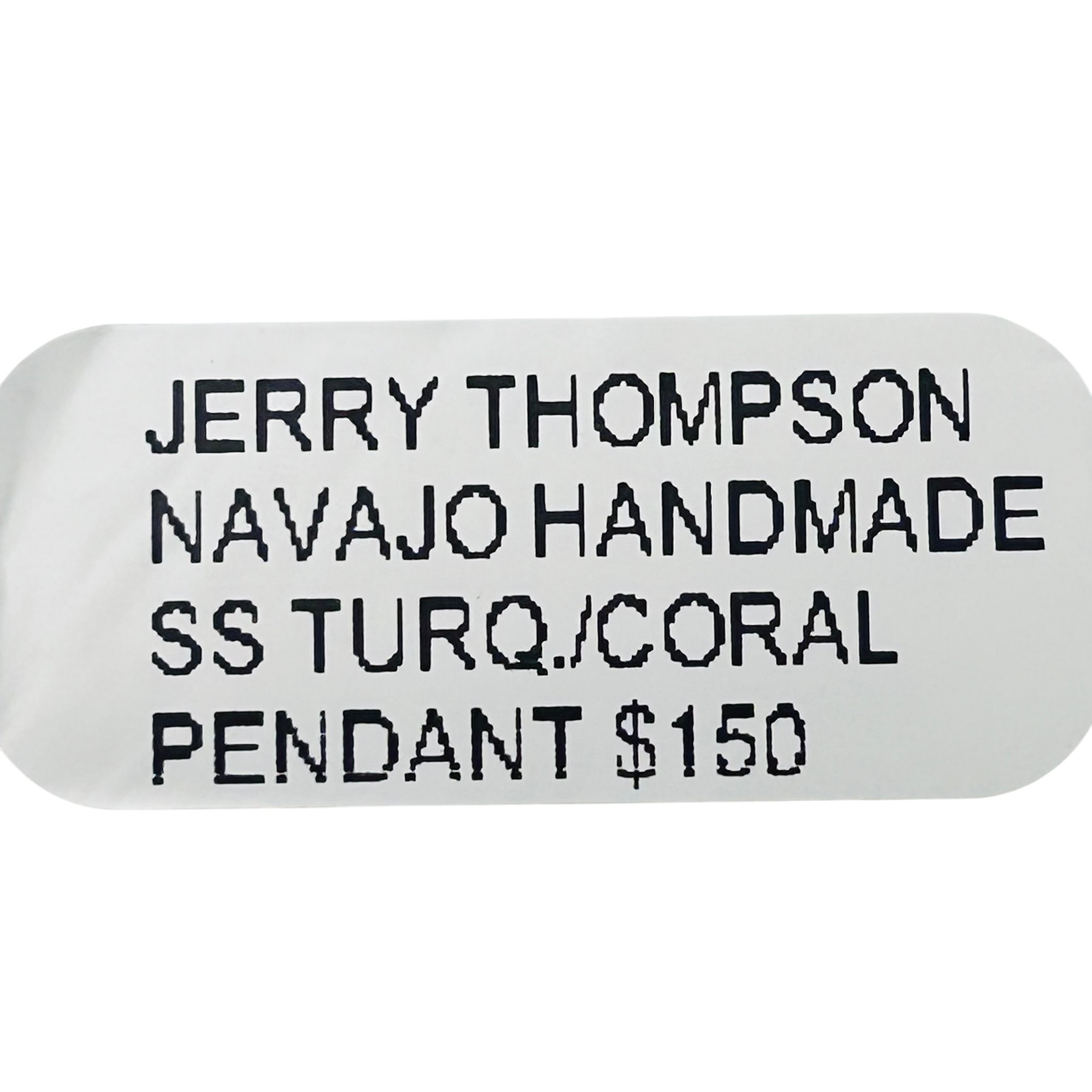 Jerry Thompson Navajo Sterling Turquoise Coral flower and leaf detail Pendant 8.03 grams