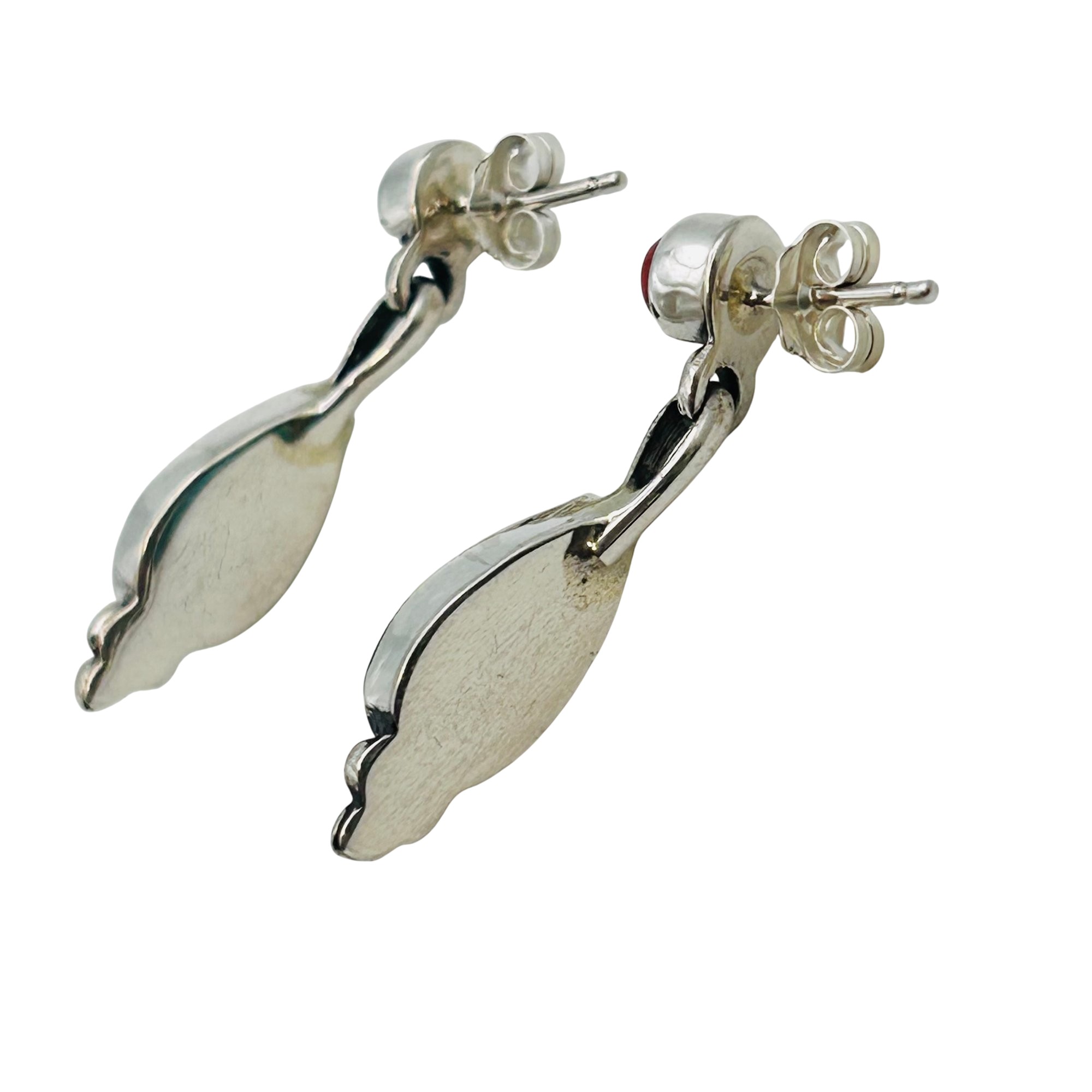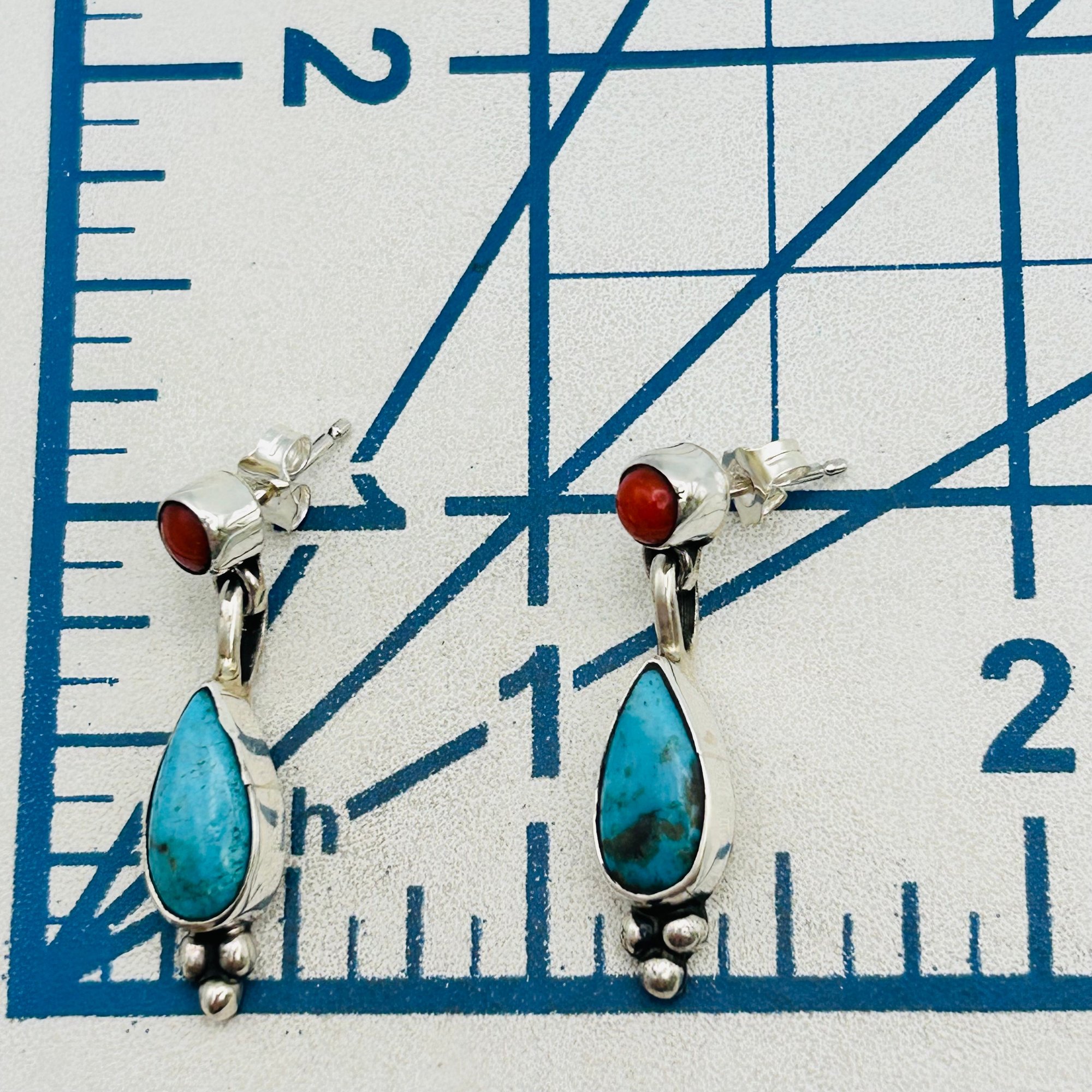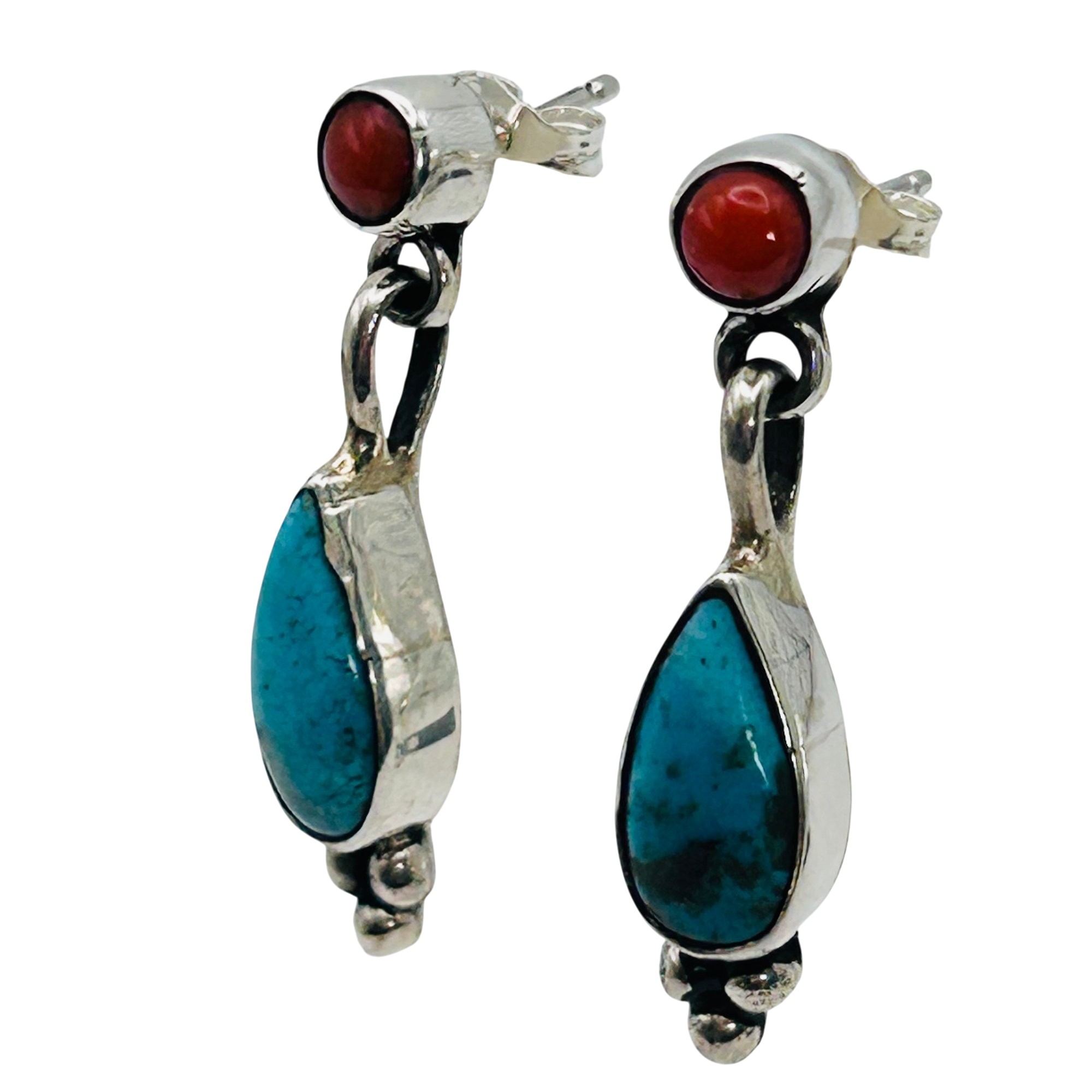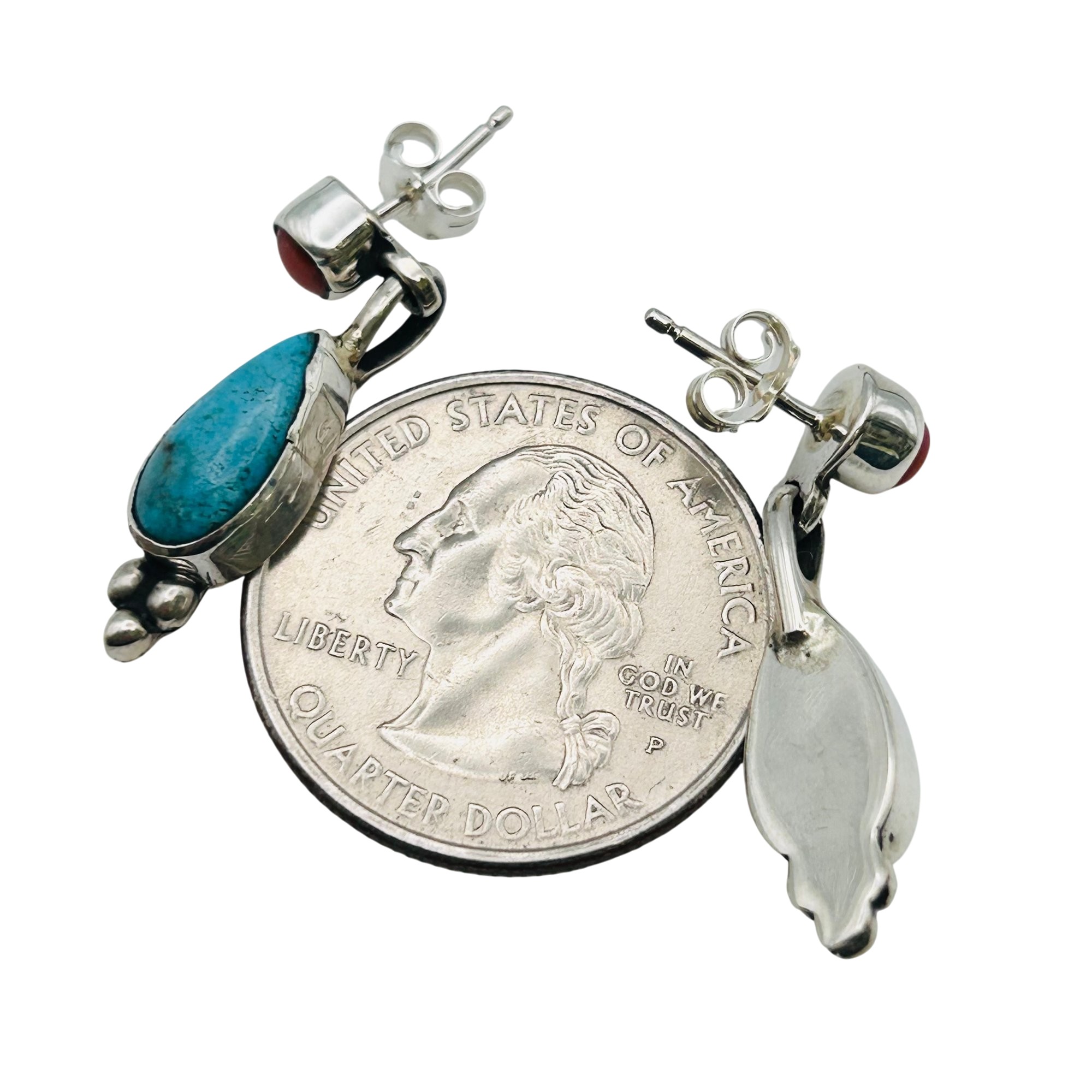 Gary Shorty Navajo Sterling Turquoise Coral pushback dangle Earrings 1.87 grams