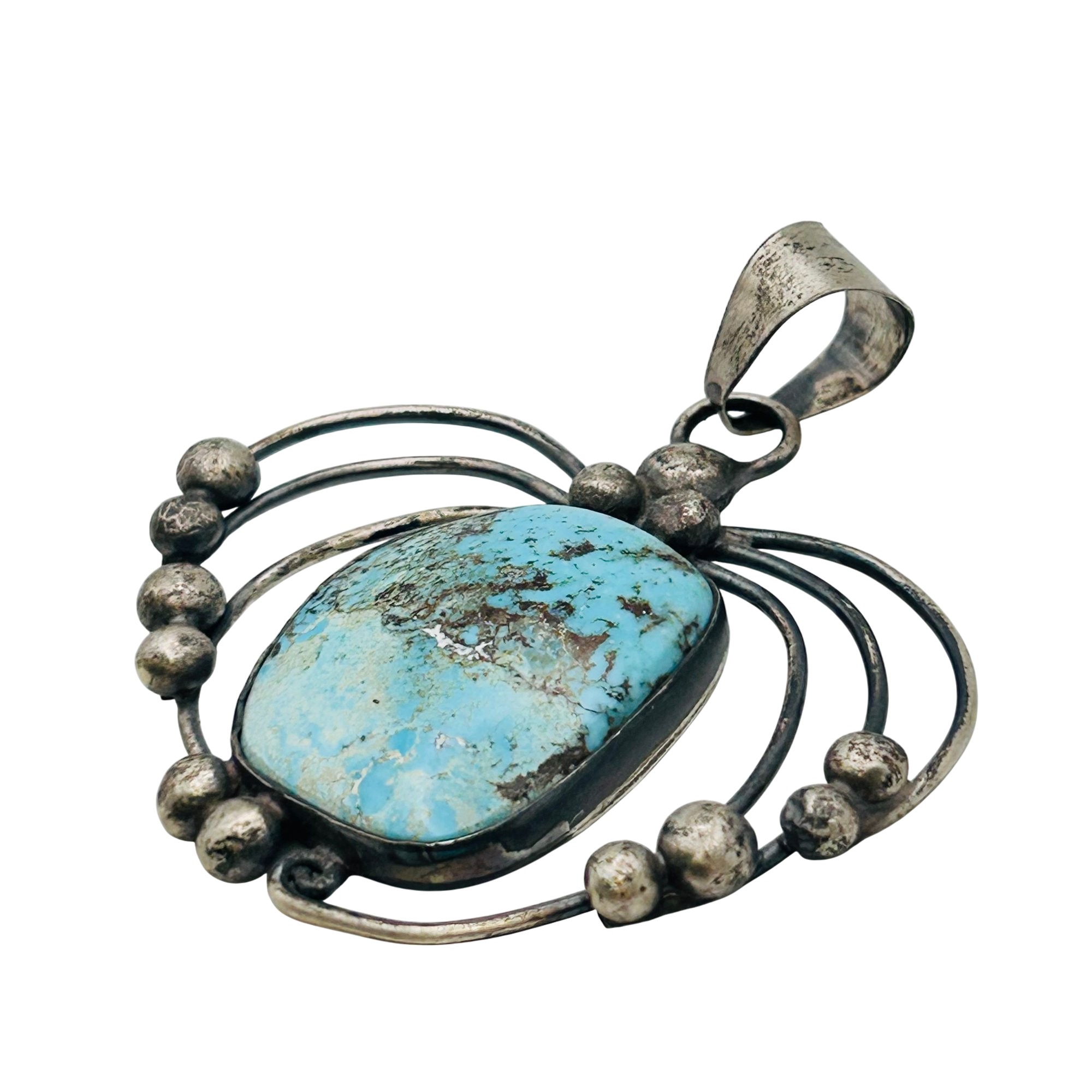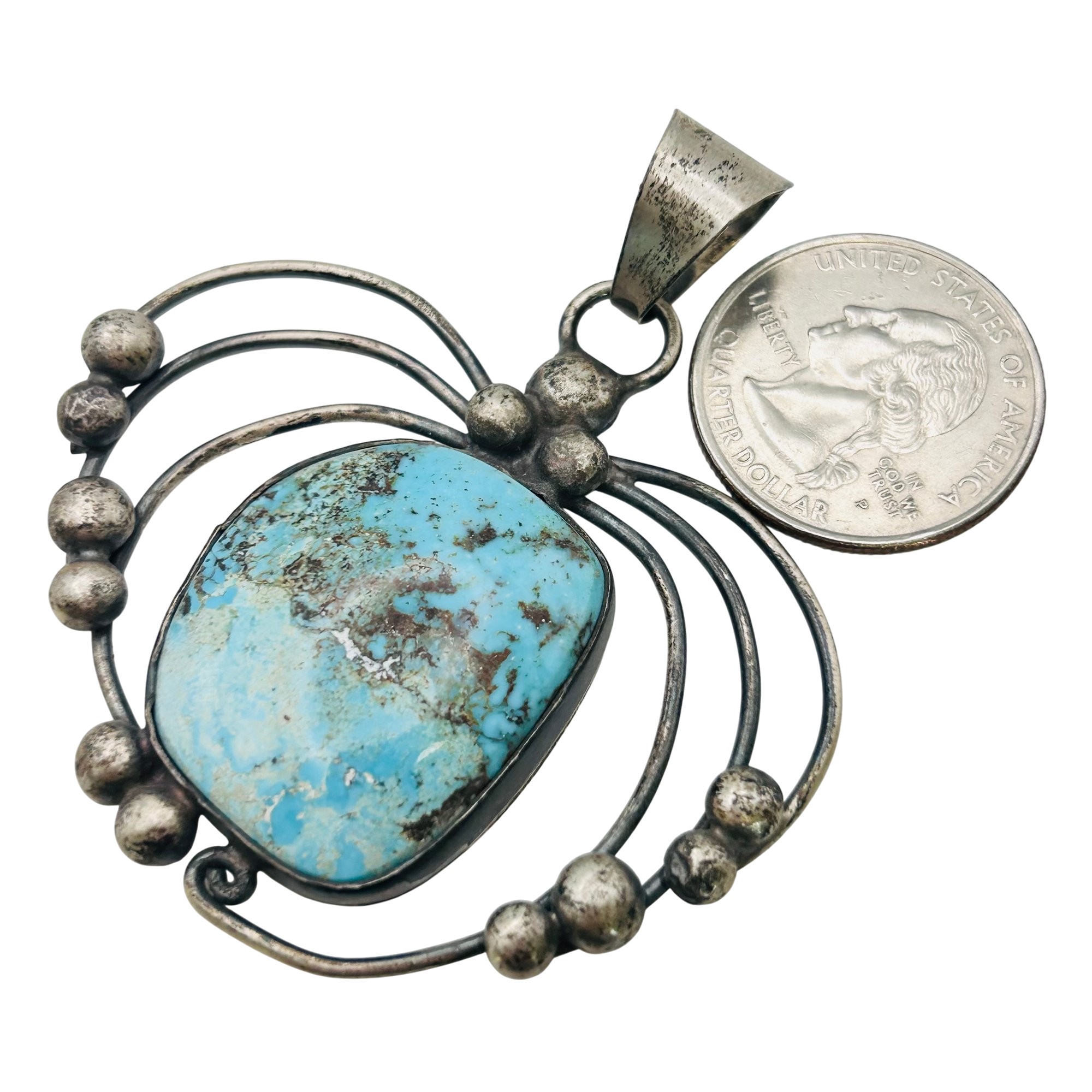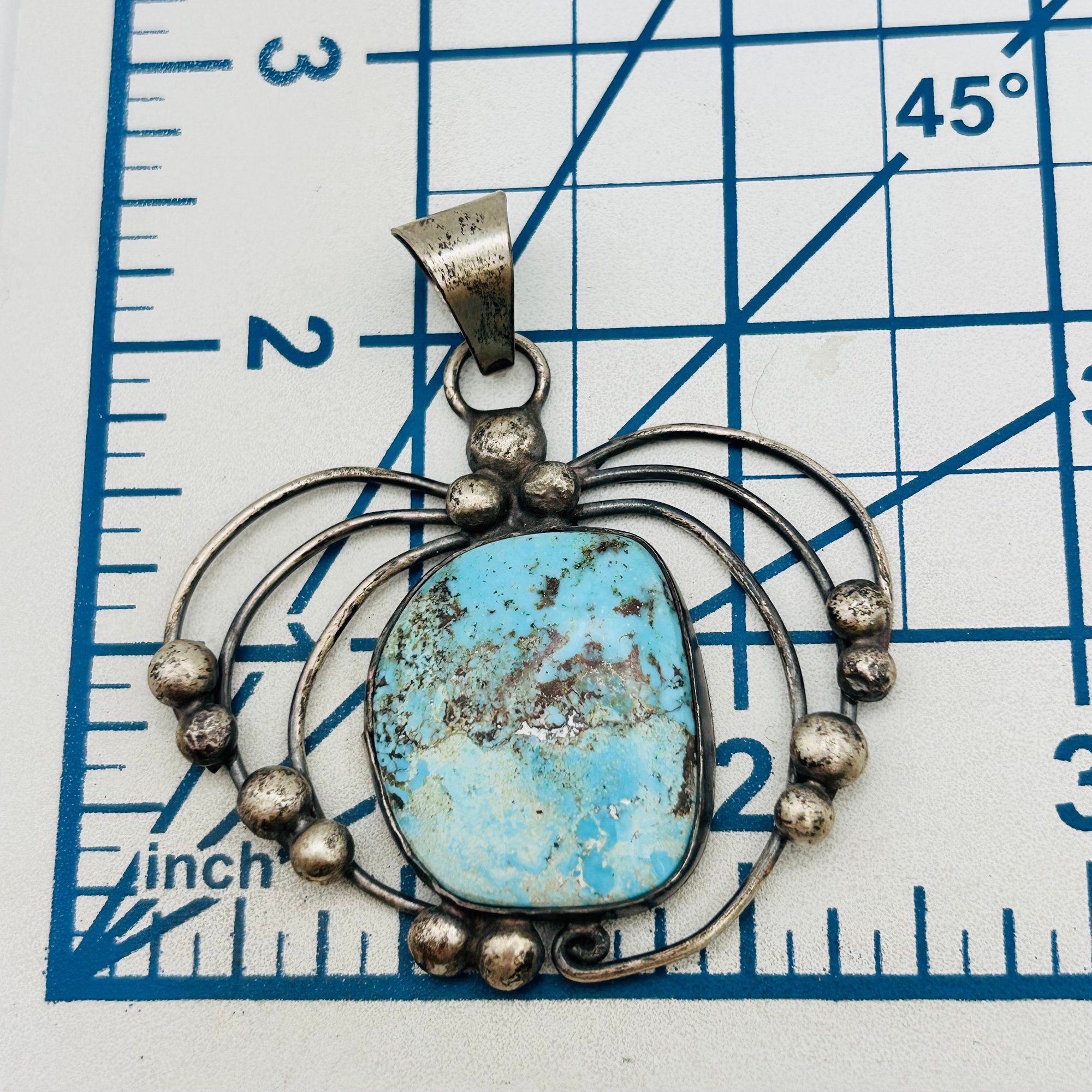 Merle House Navajo Sterling KIngman Turquoise Statement Pendant 22.37 grams