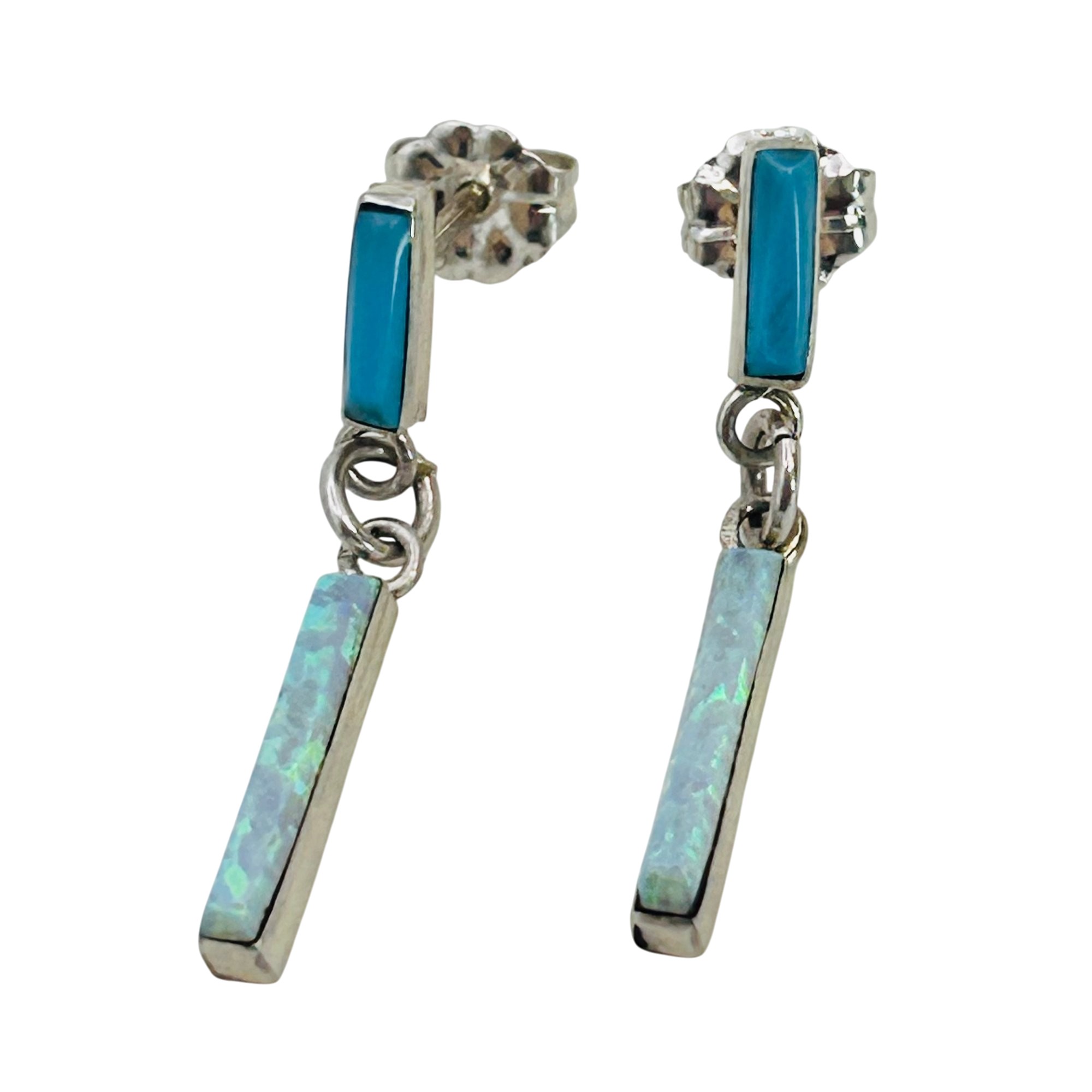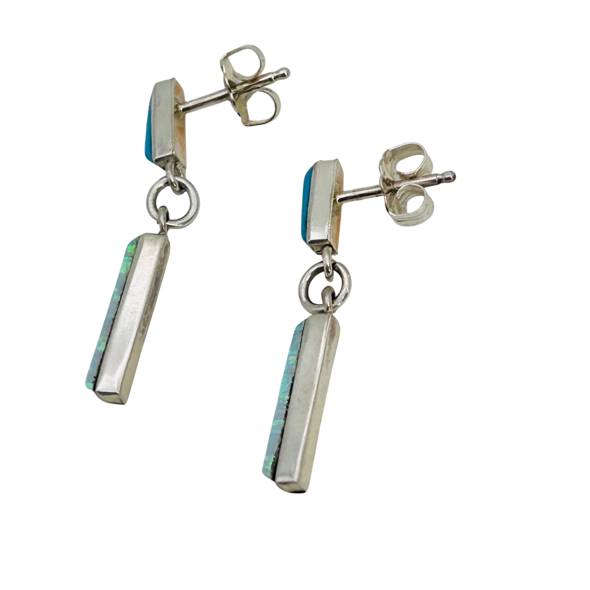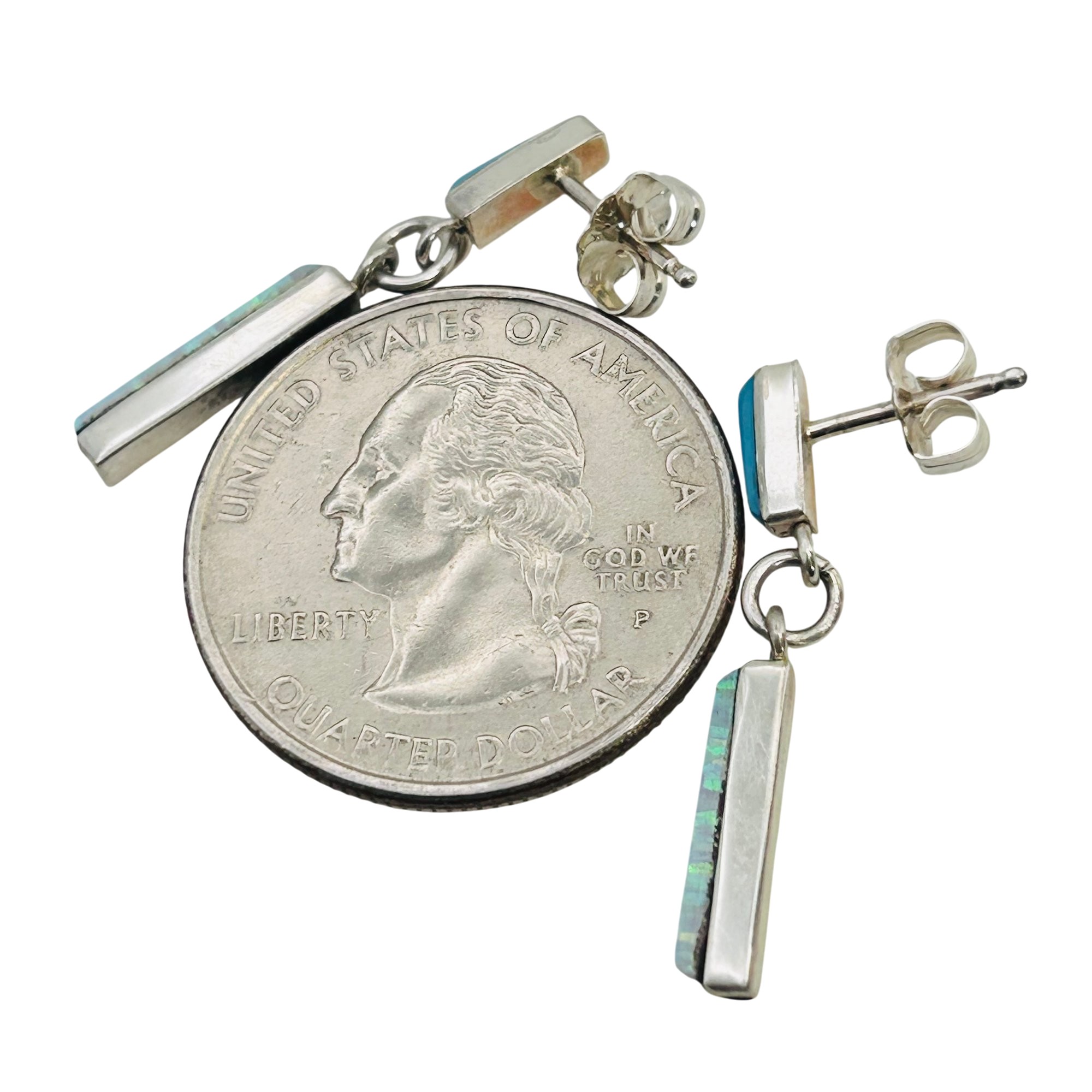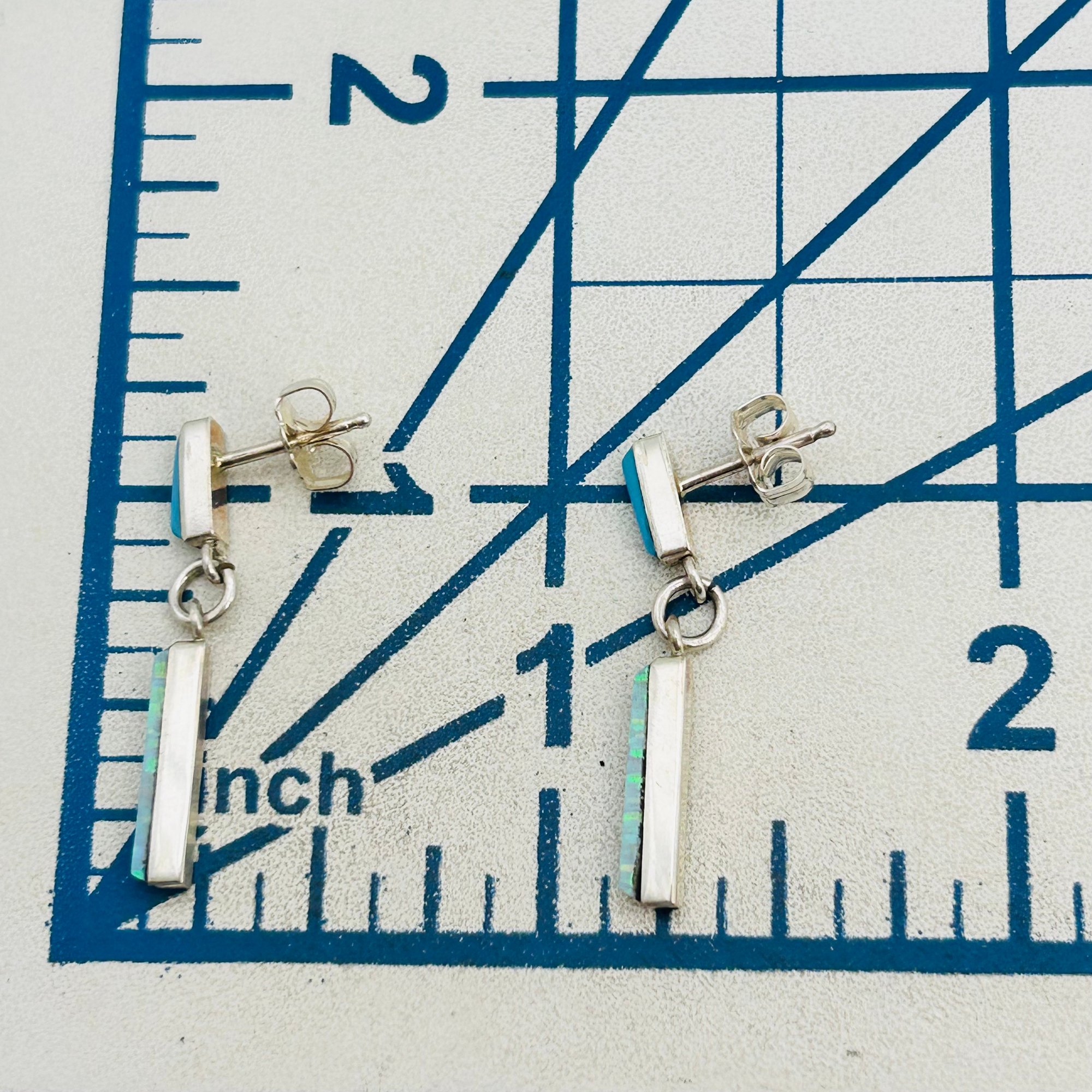 Falena Hooee Zuni Sterling Opal Turquoise pushback dangle Earrings 1.35 grams