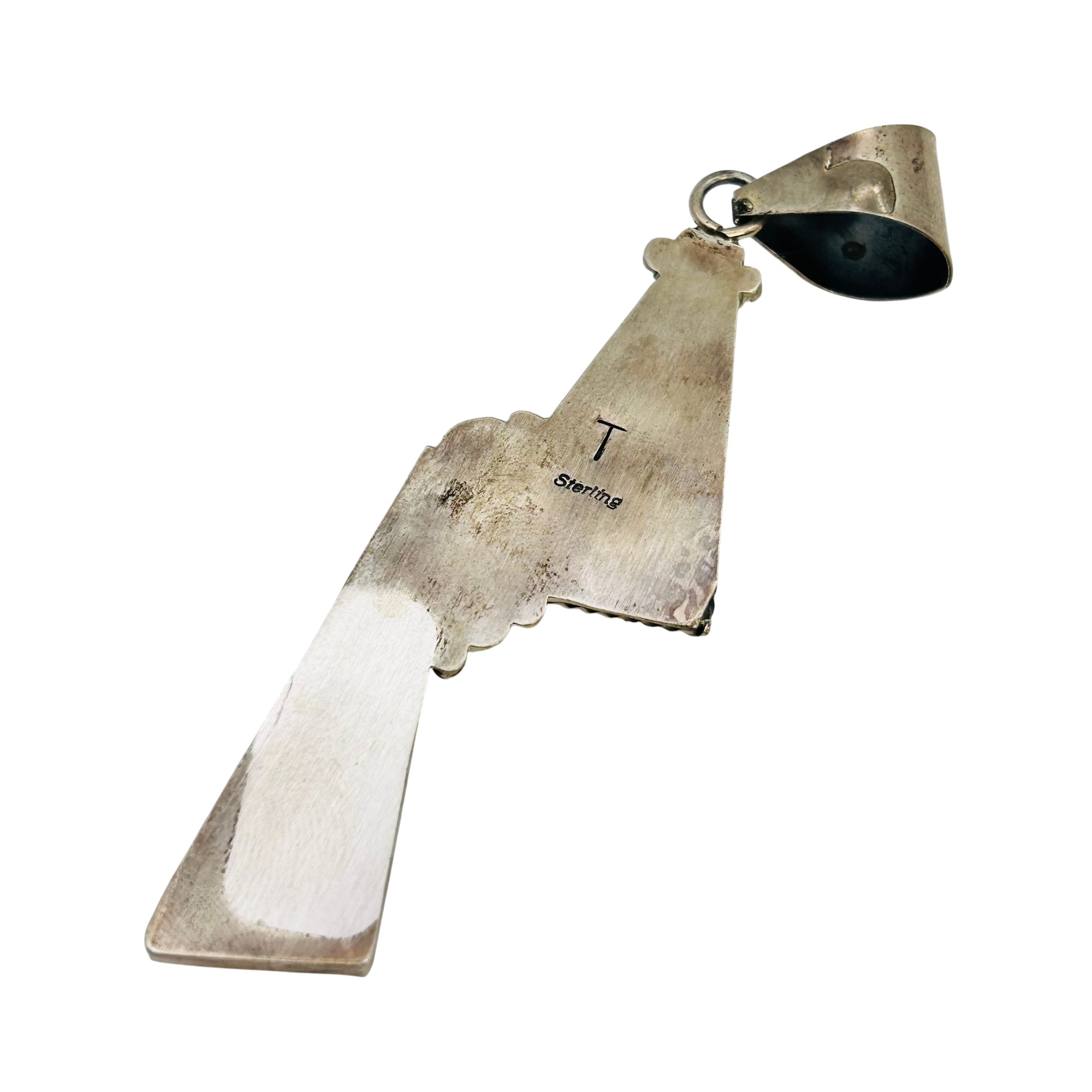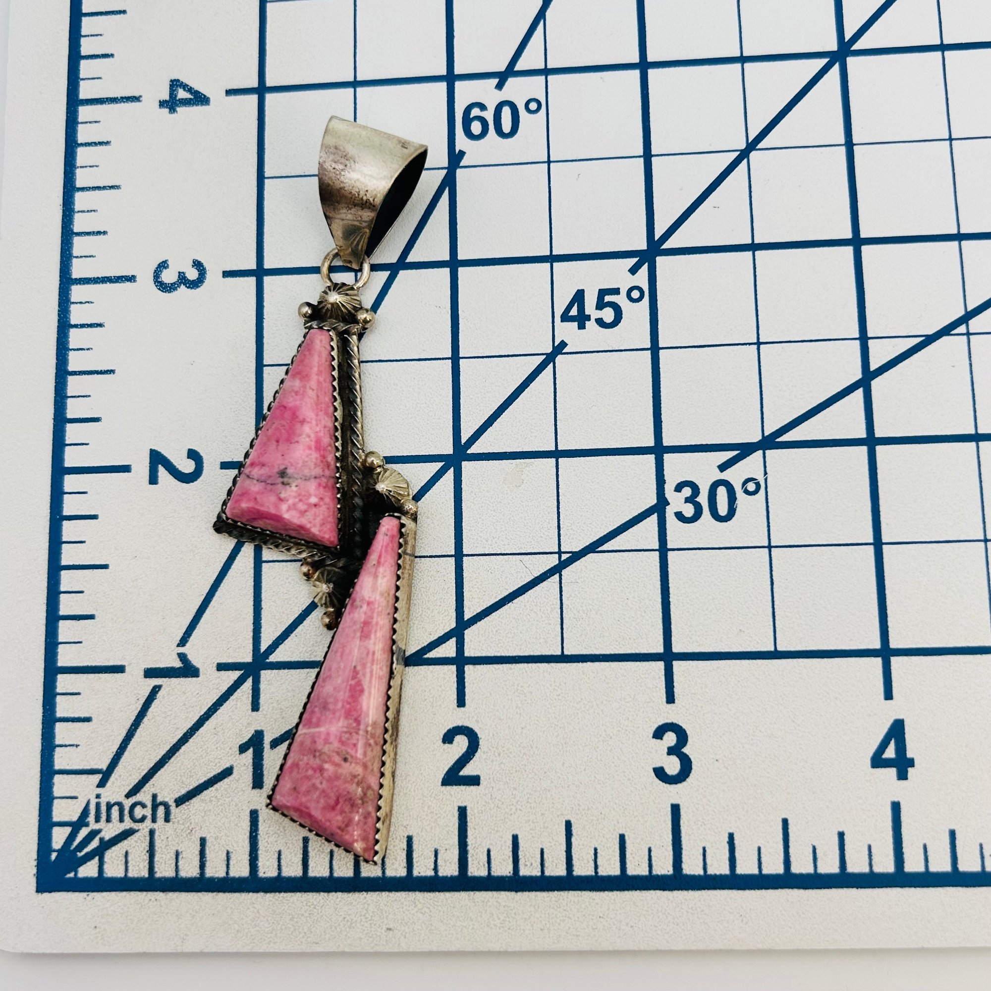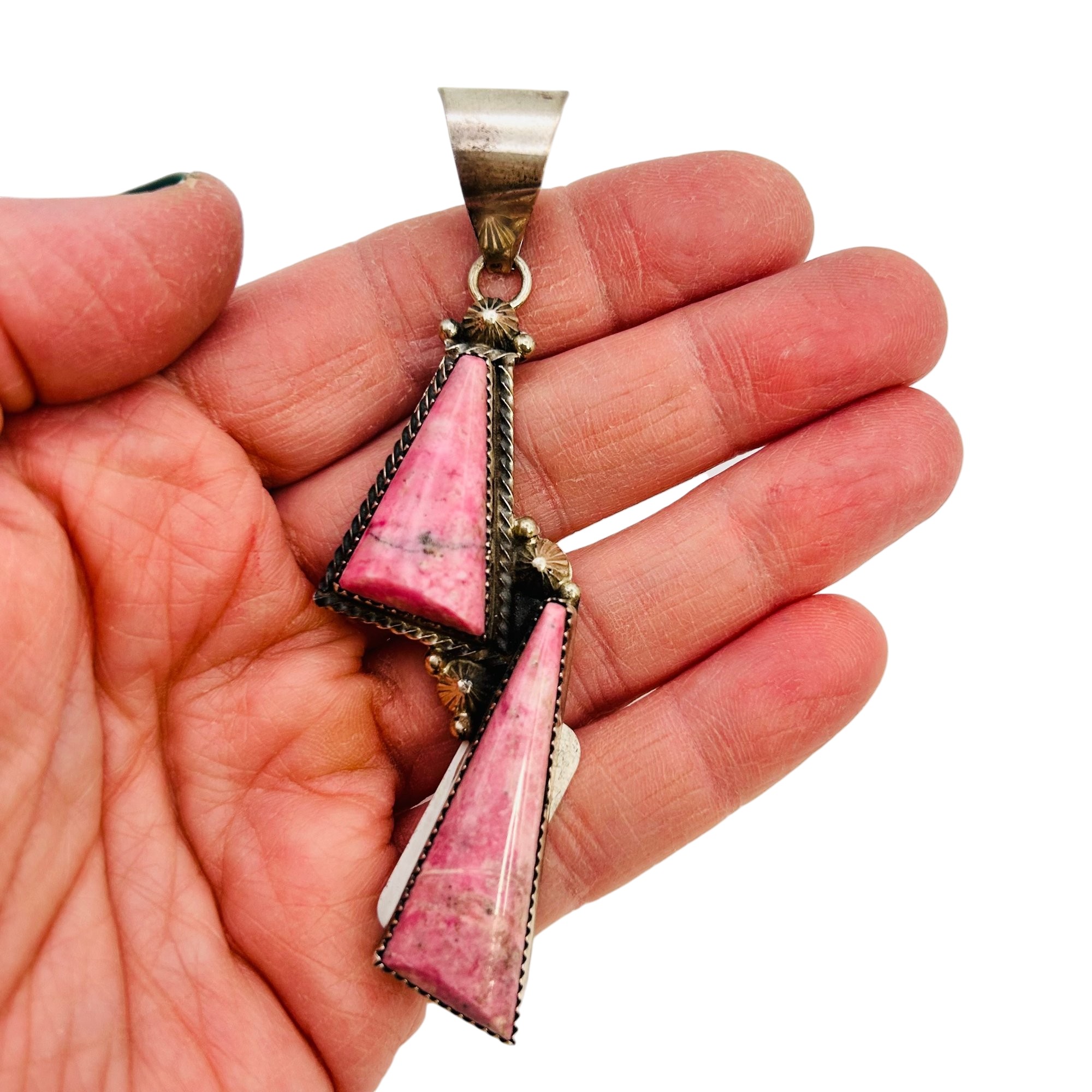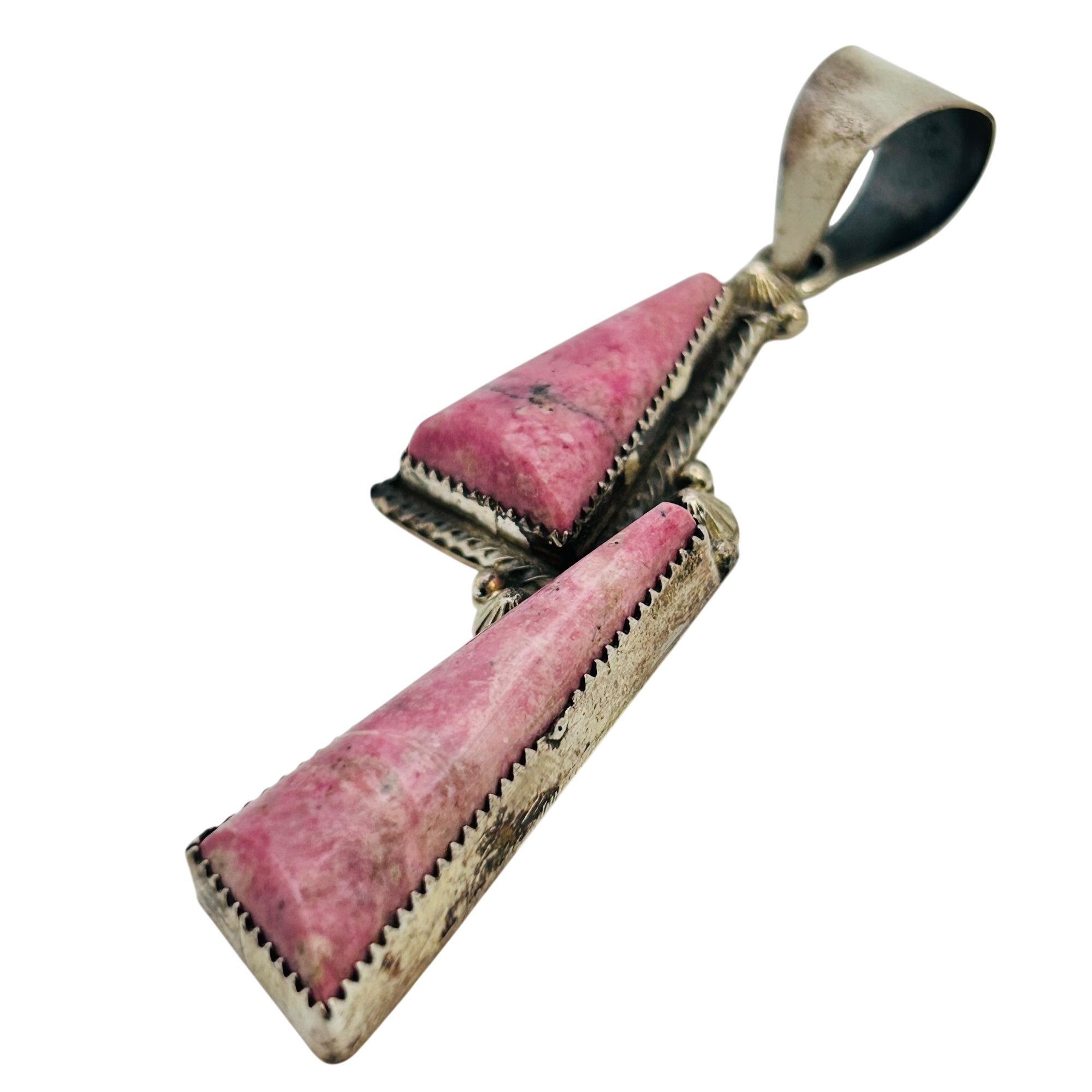 Tia Long Navajo Sterling Thulite Stone Statement Double Stone Triangle Pendant 18.60 grams