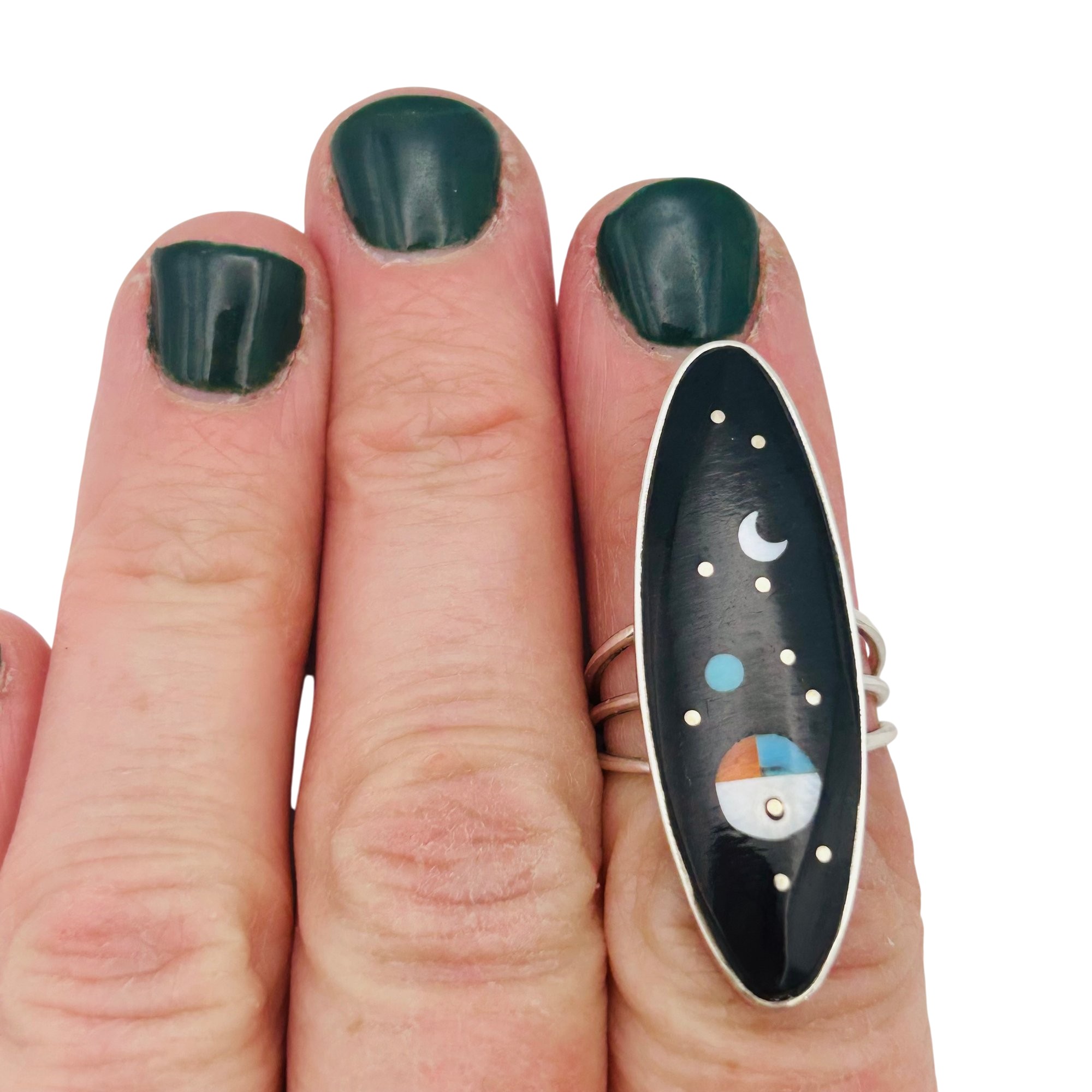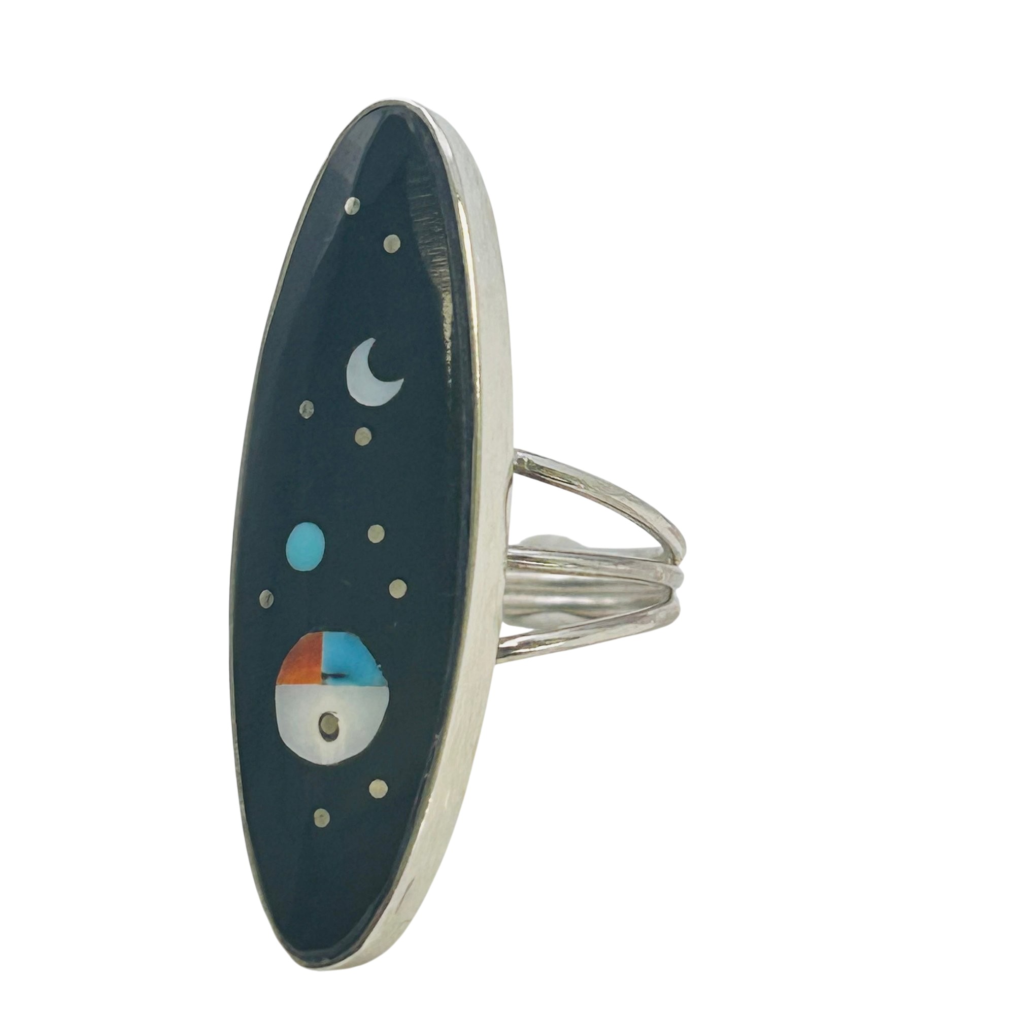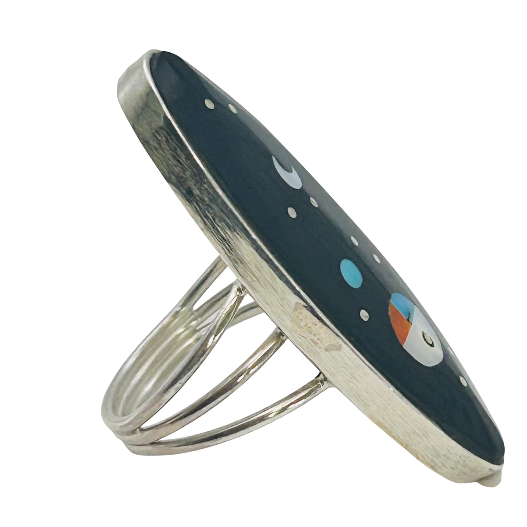 Harold Smith Navajo Sterling Pueblo Night Sky Multi Stone inlay Ring SZ 6.5 5.94 grams