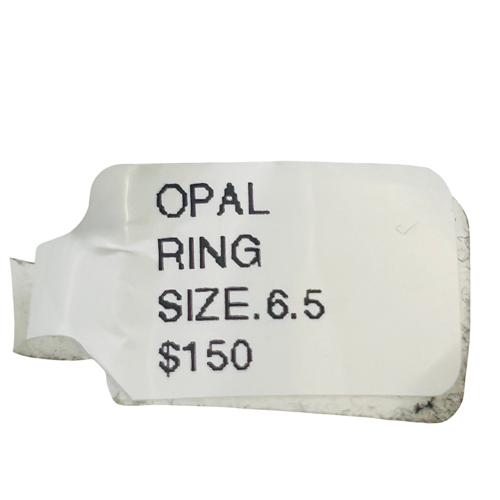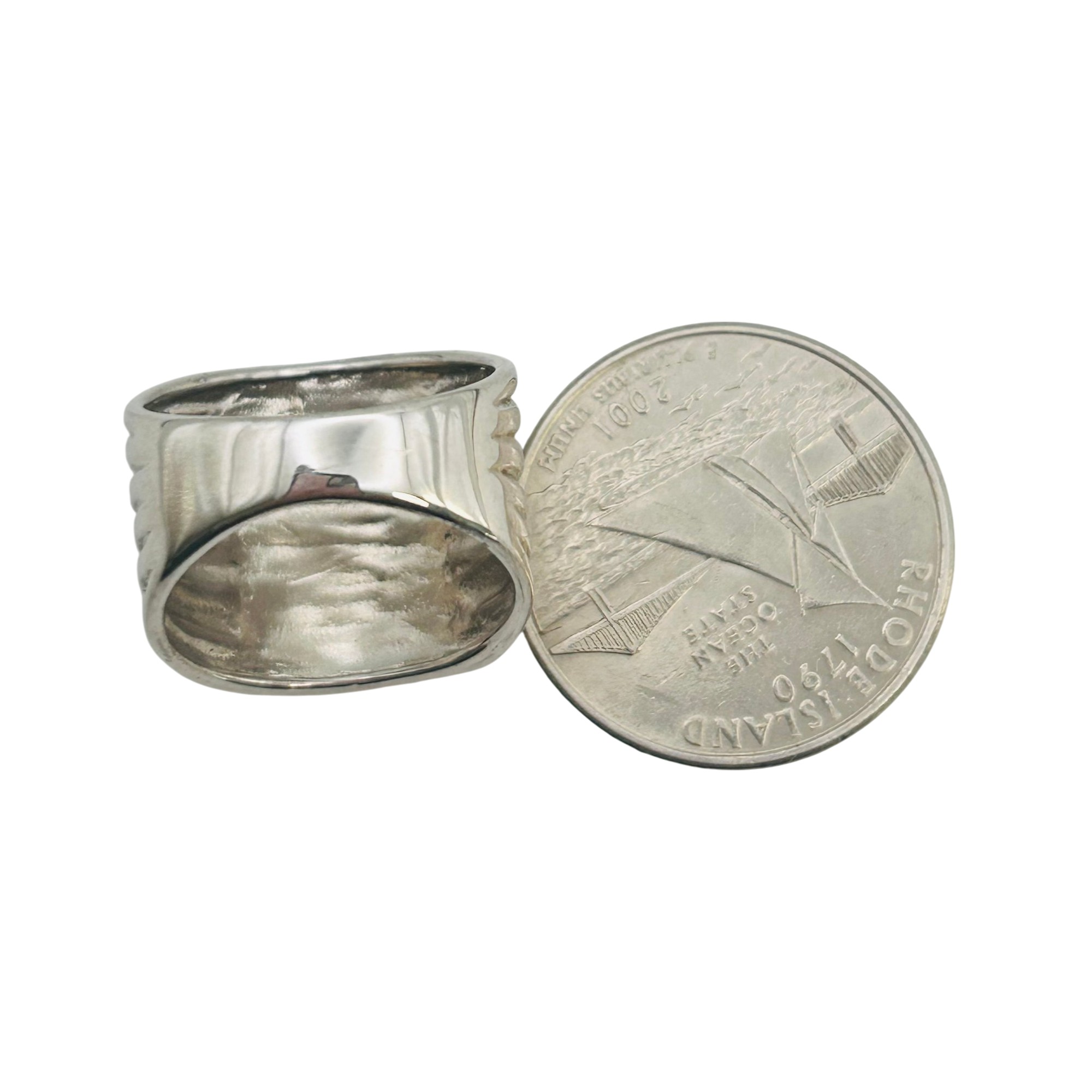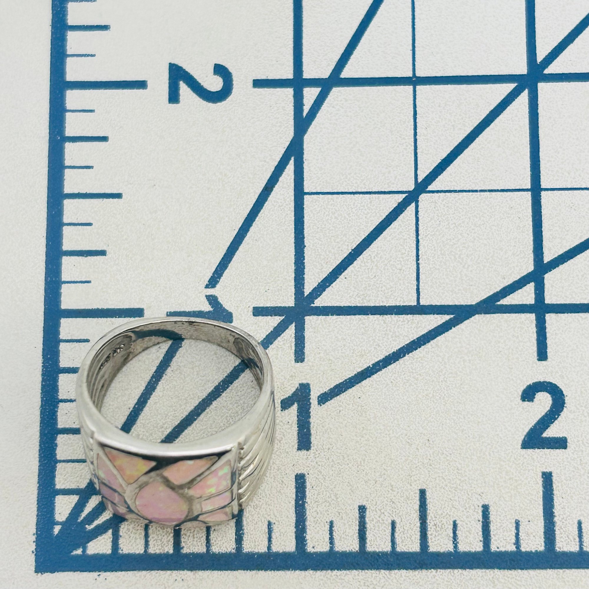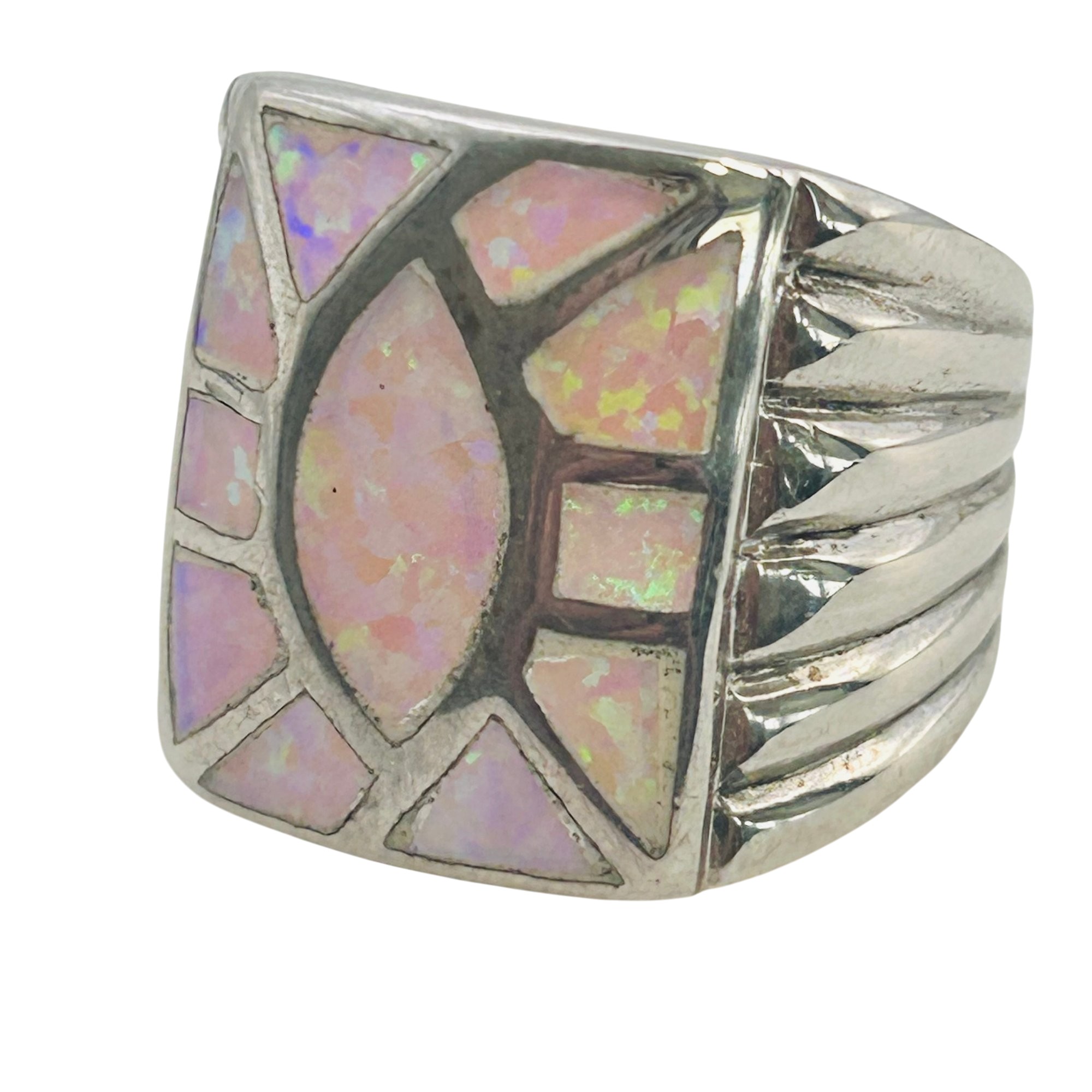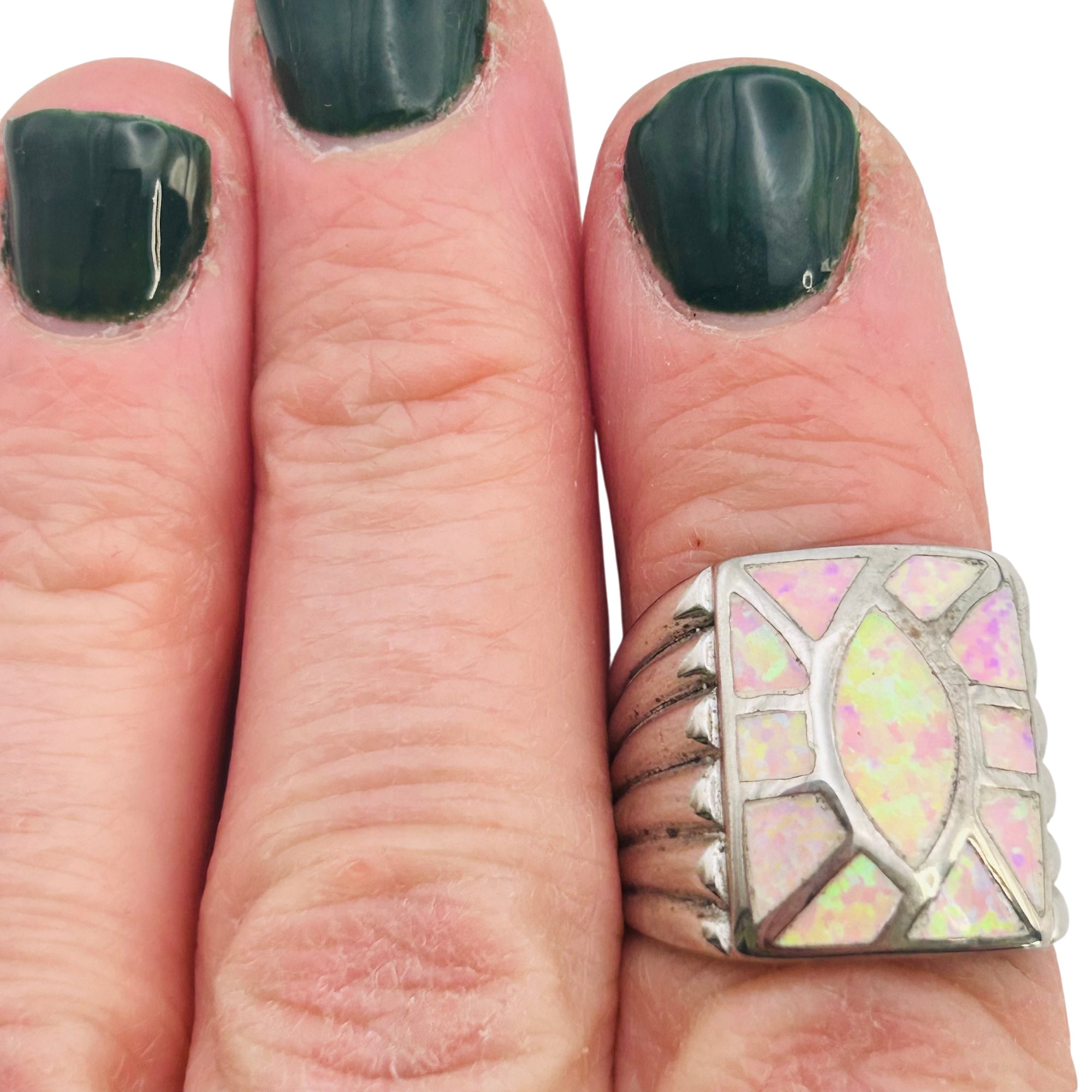 Southwestern Style Sterling Opal Dome Ring wide ribbed band SZ 6.5 7.65 Grams