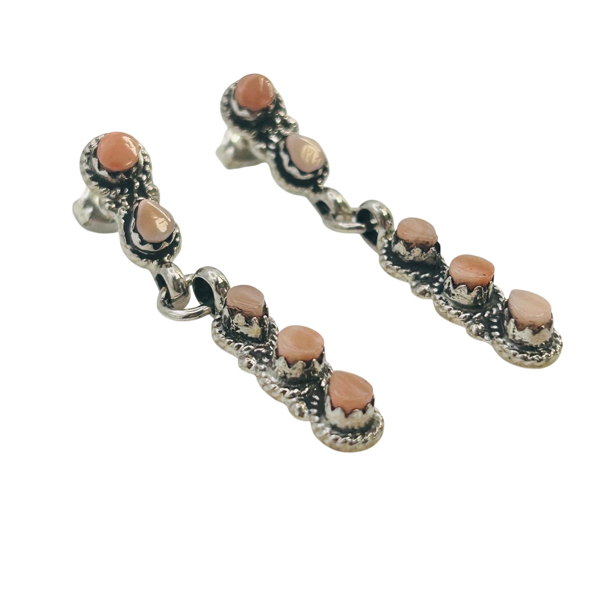 Jovi Burns Zuni Stering pink coral pushback dangle earrings 5.81