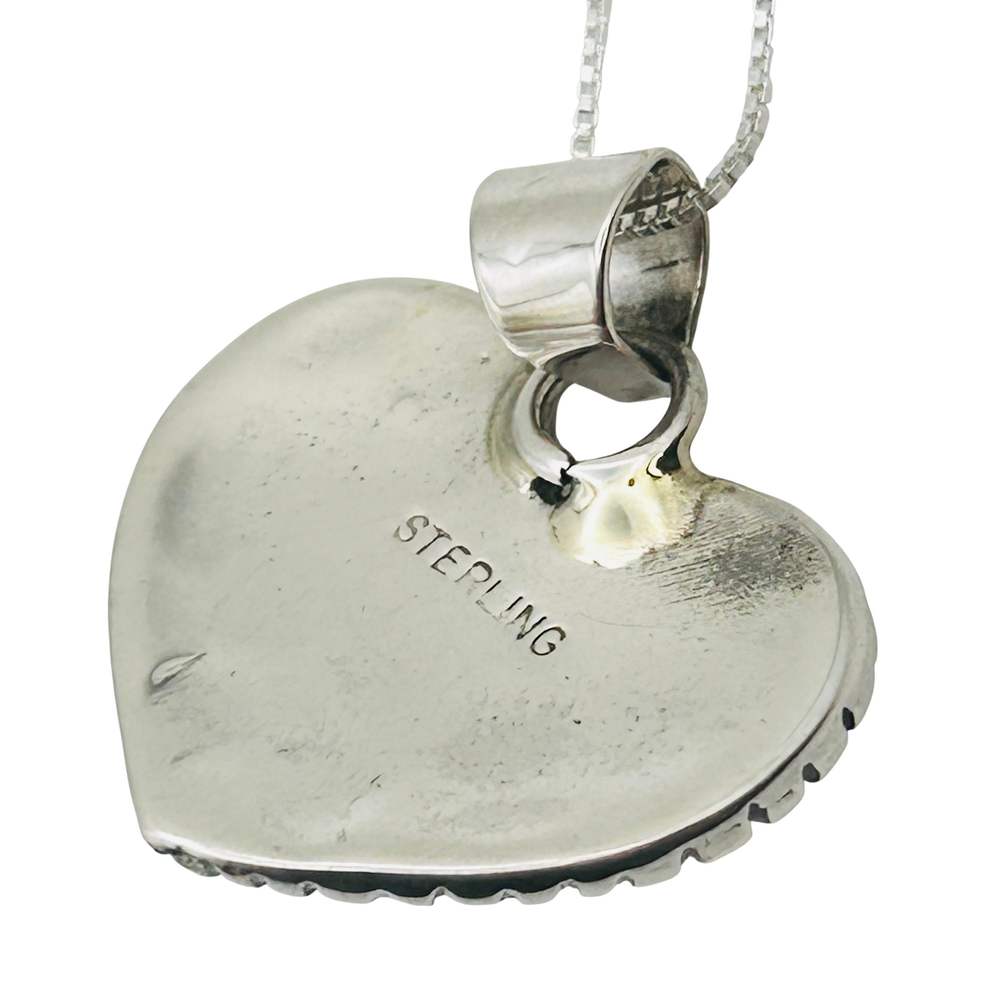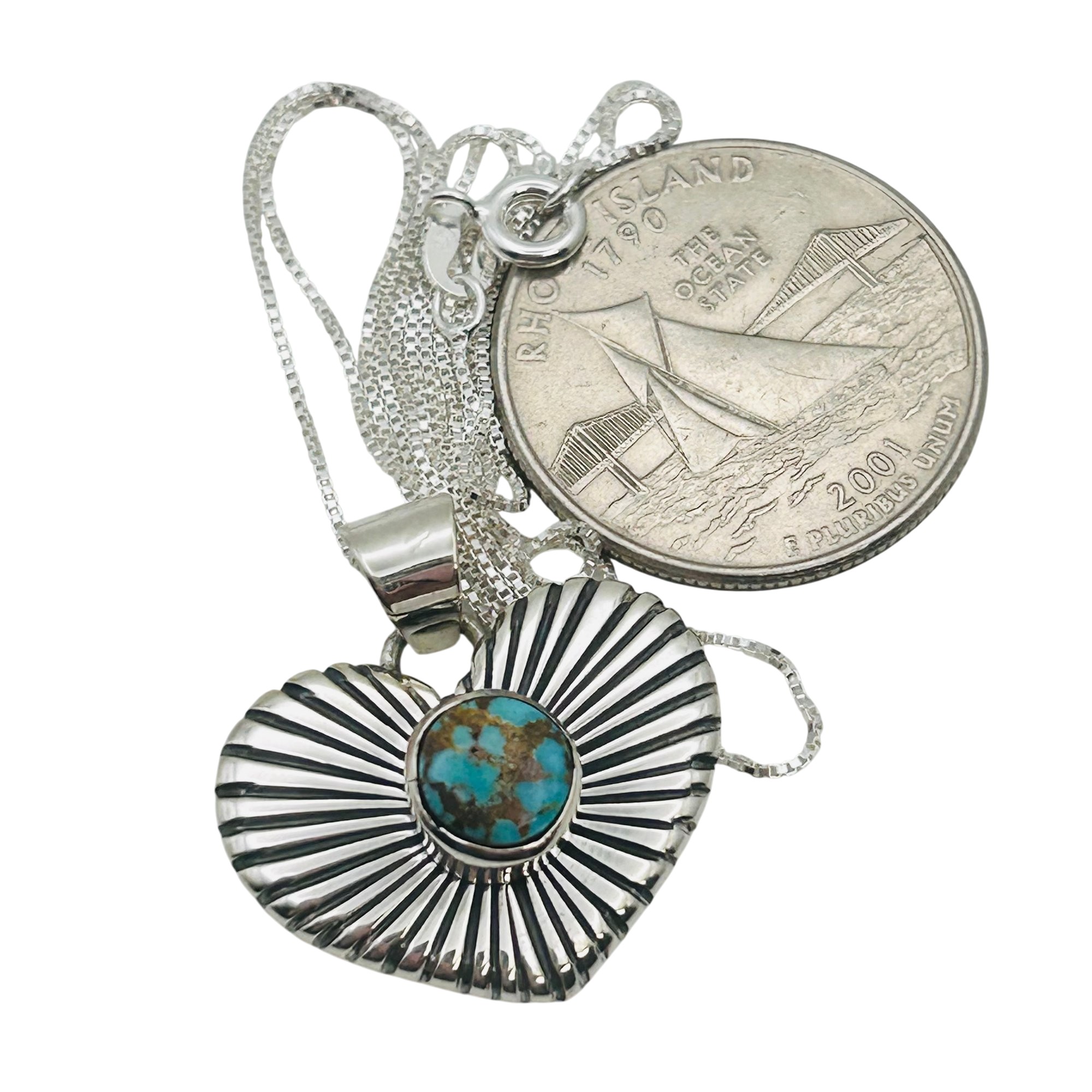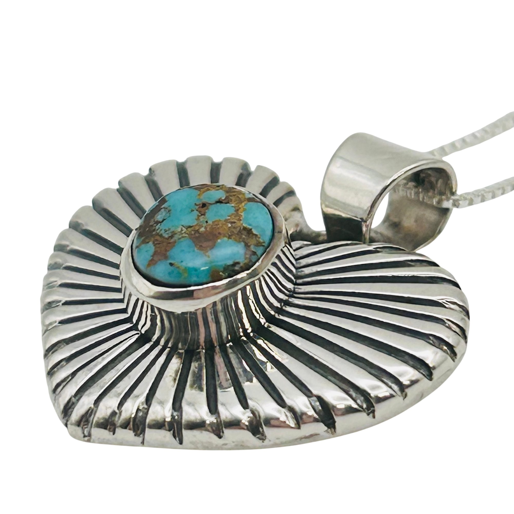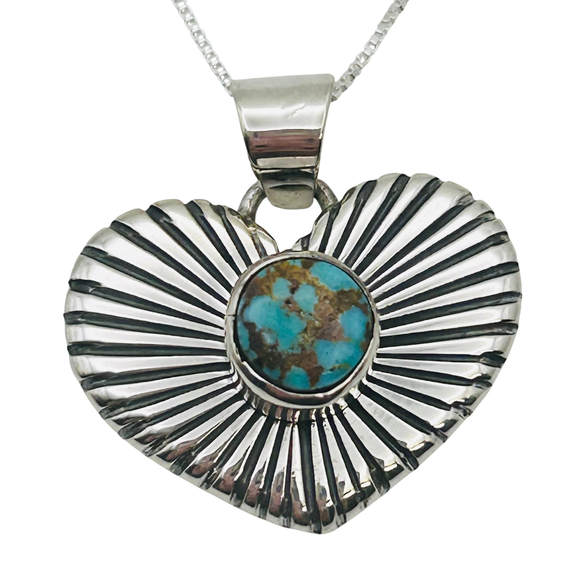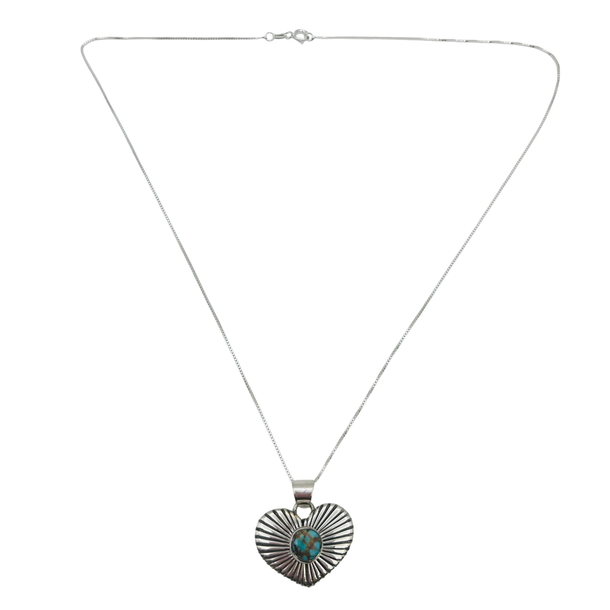Allen Lee Navajo Sterling Kingman Turquoise heart pendant 18 inch sterling boxchain Necklace 8.86 grams