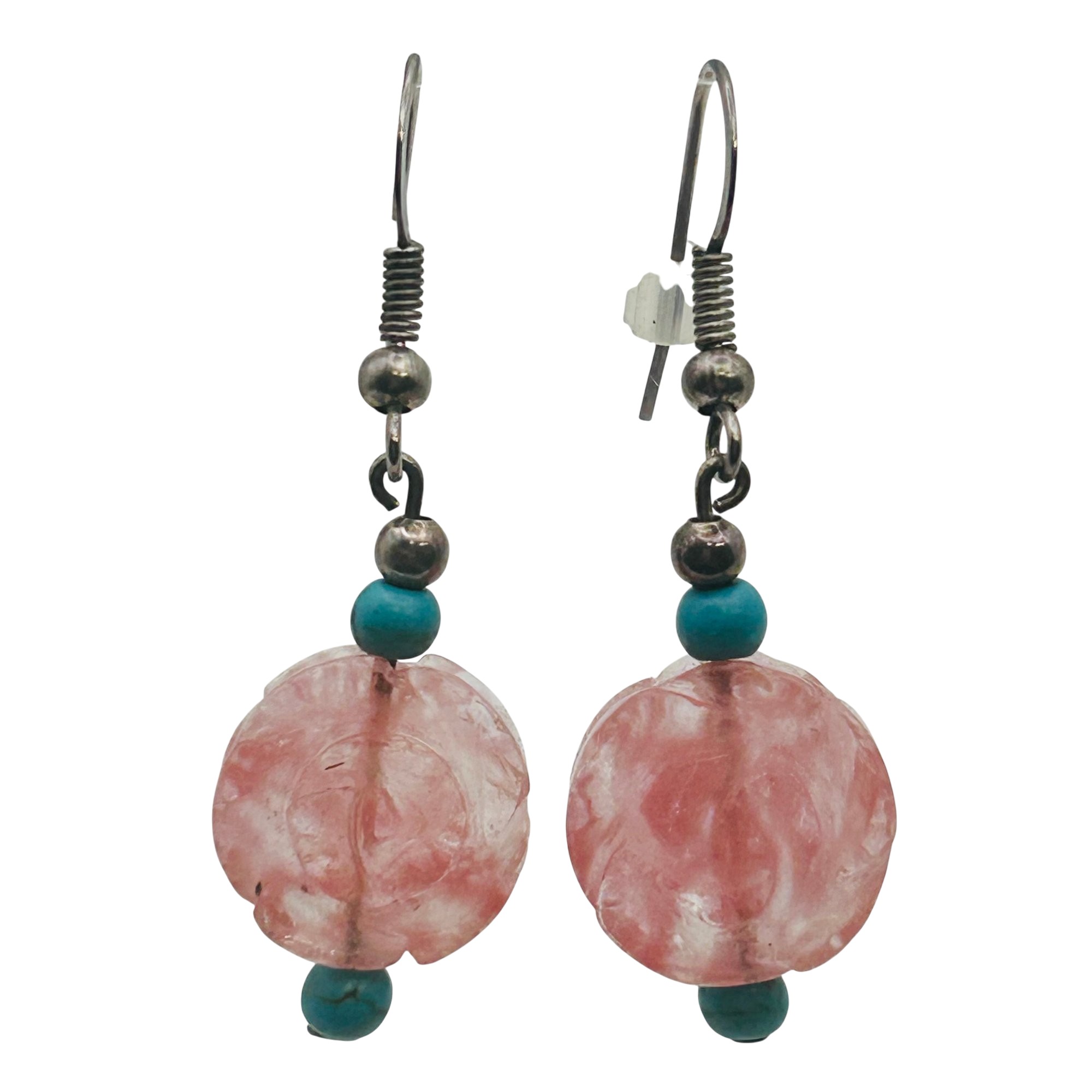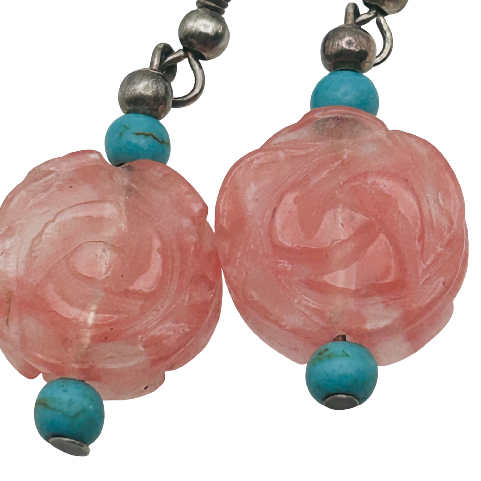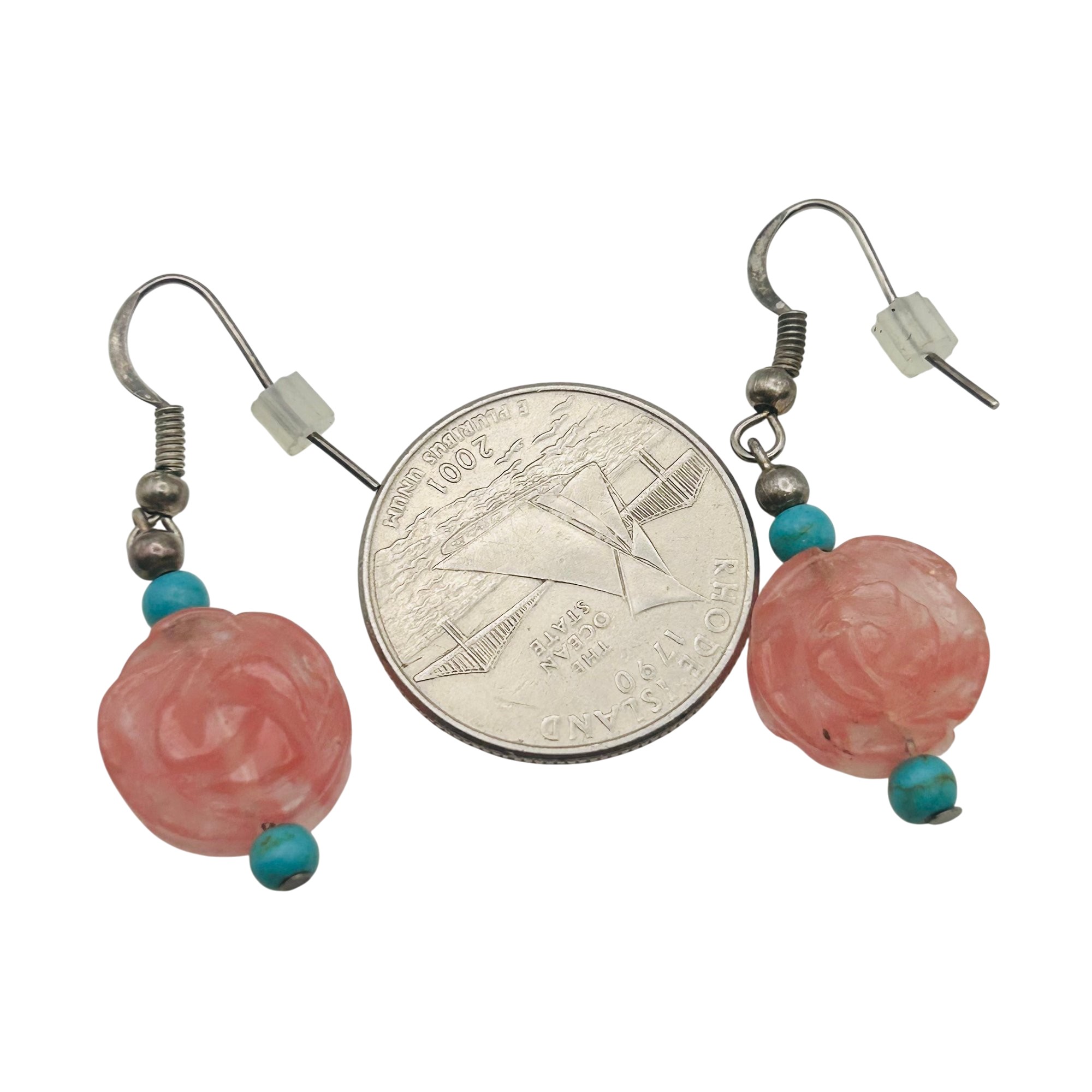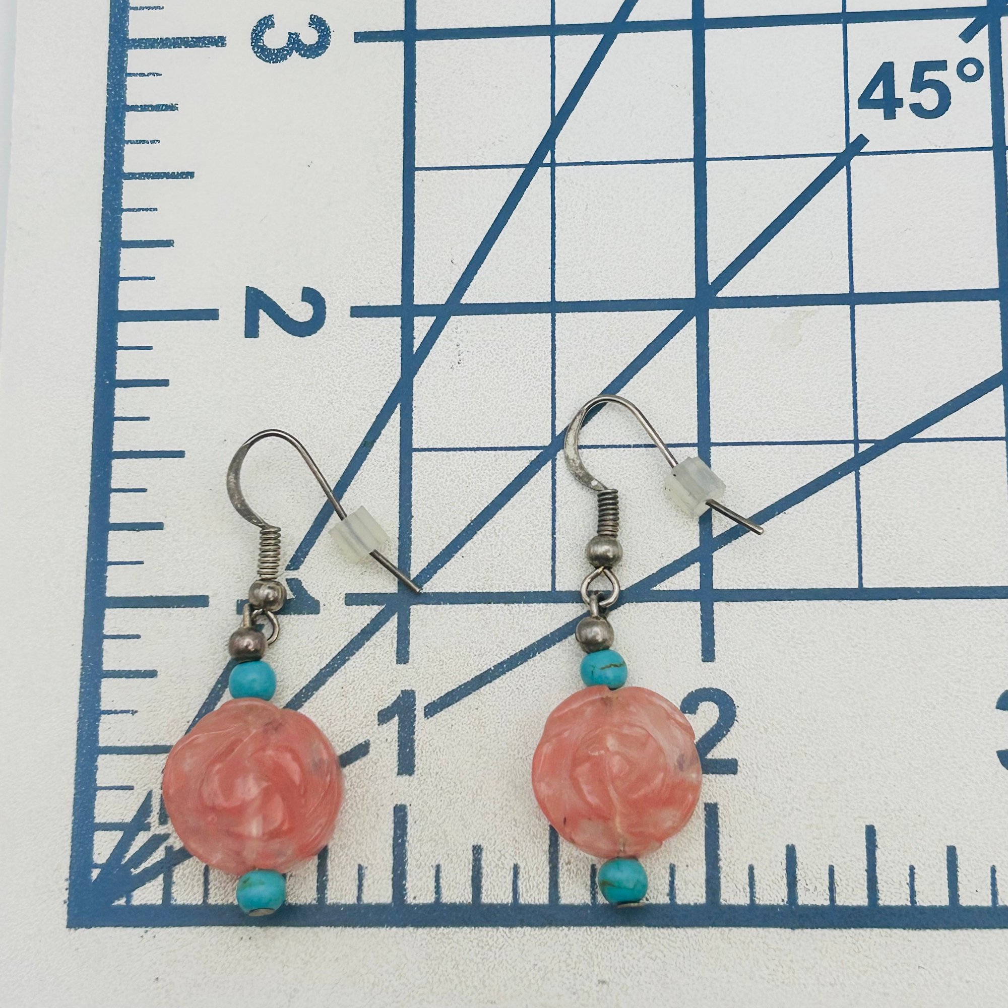 Rebecca Goodluck Navajo Sterling Turquoise Carved Flower hookback dangle Earring 3.48 grams