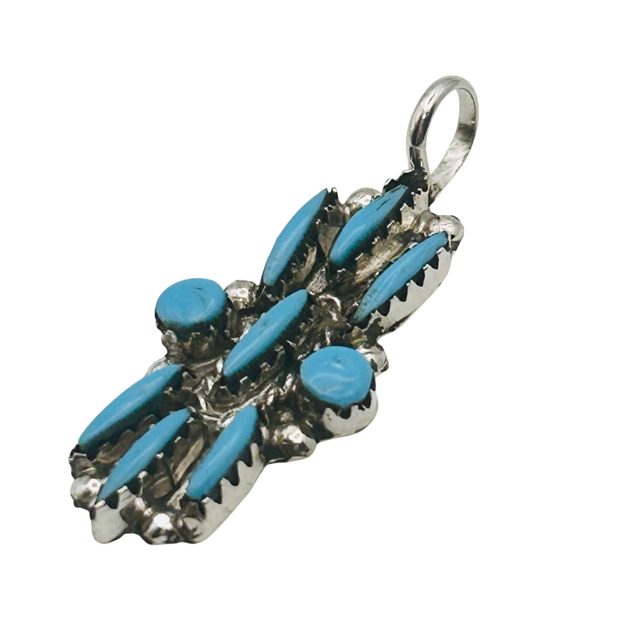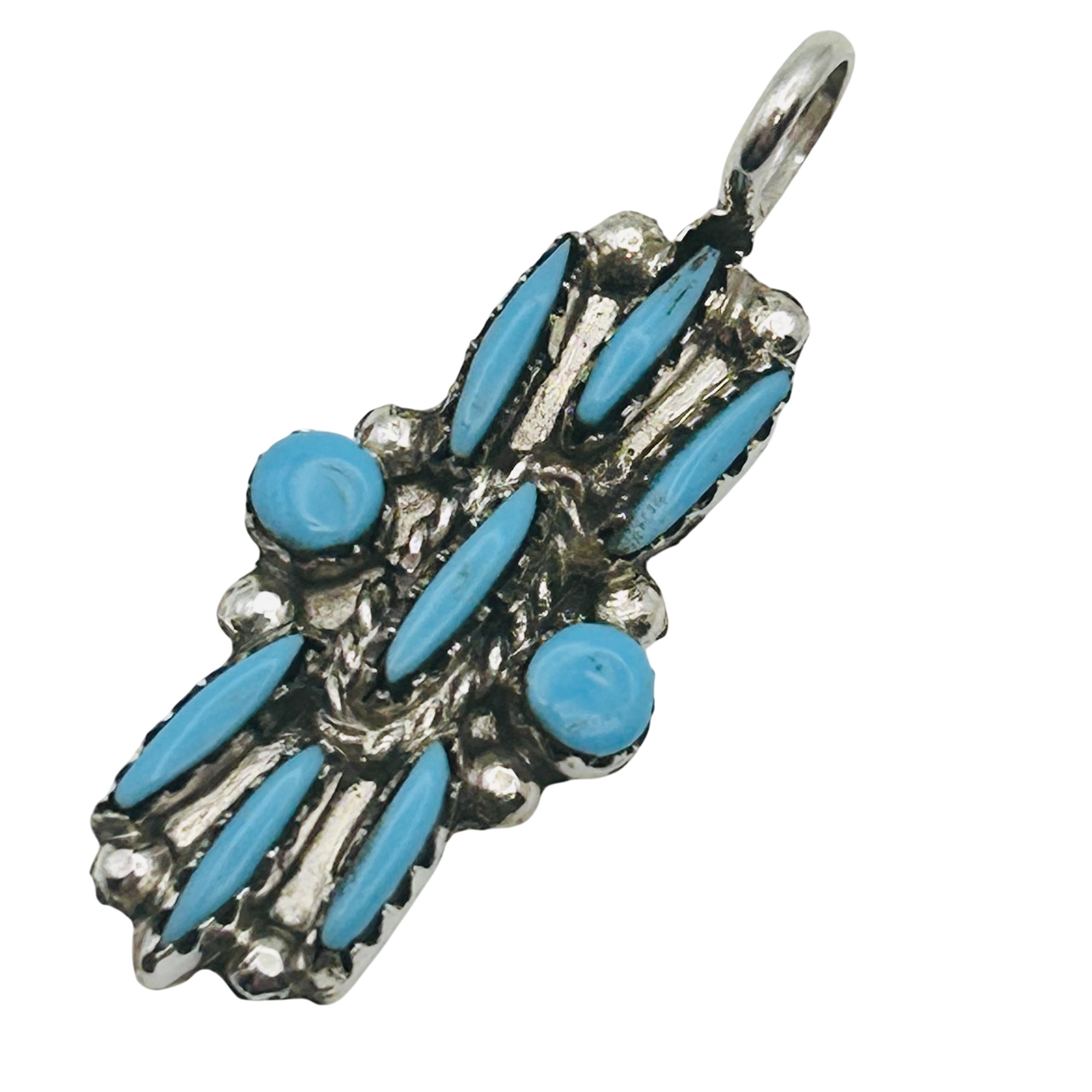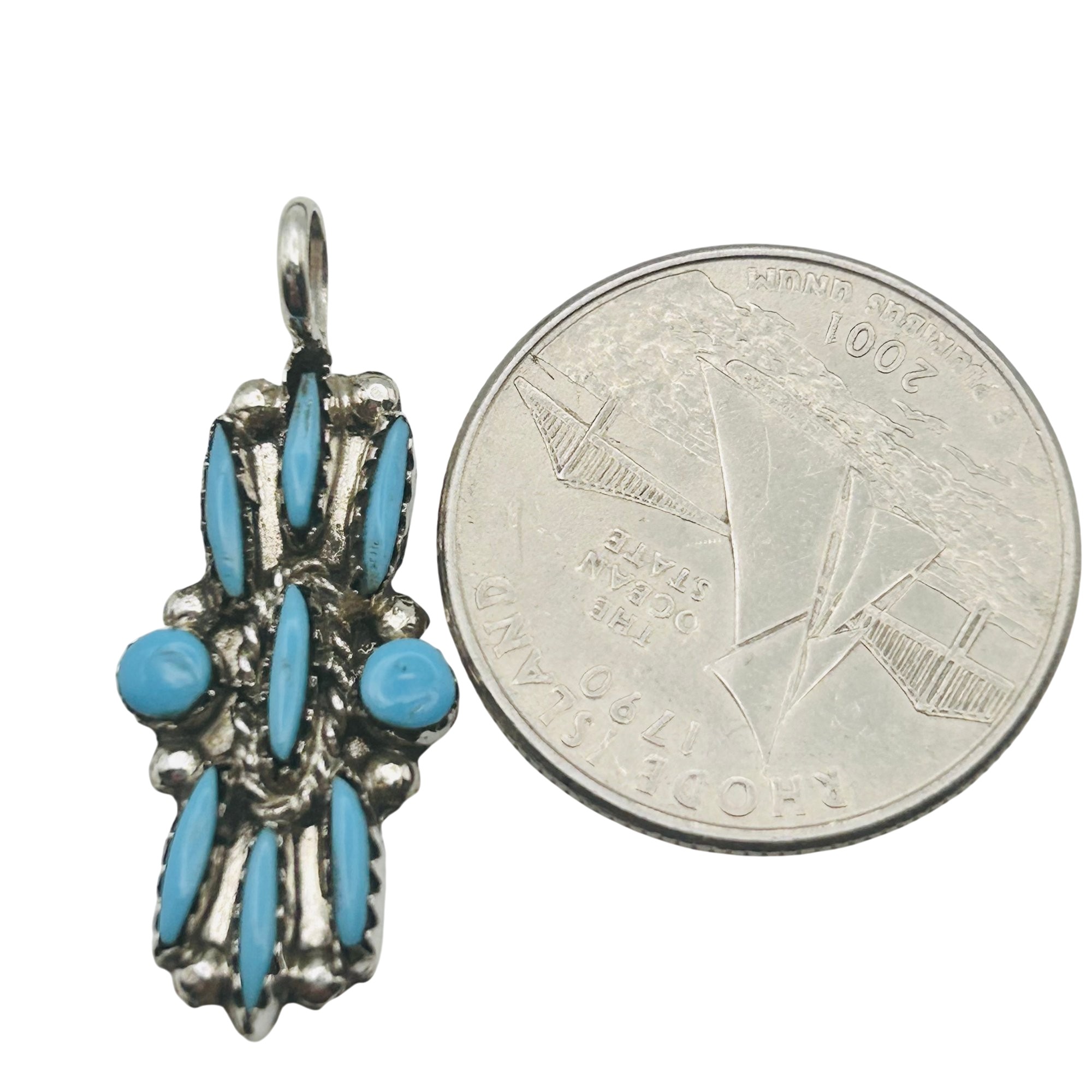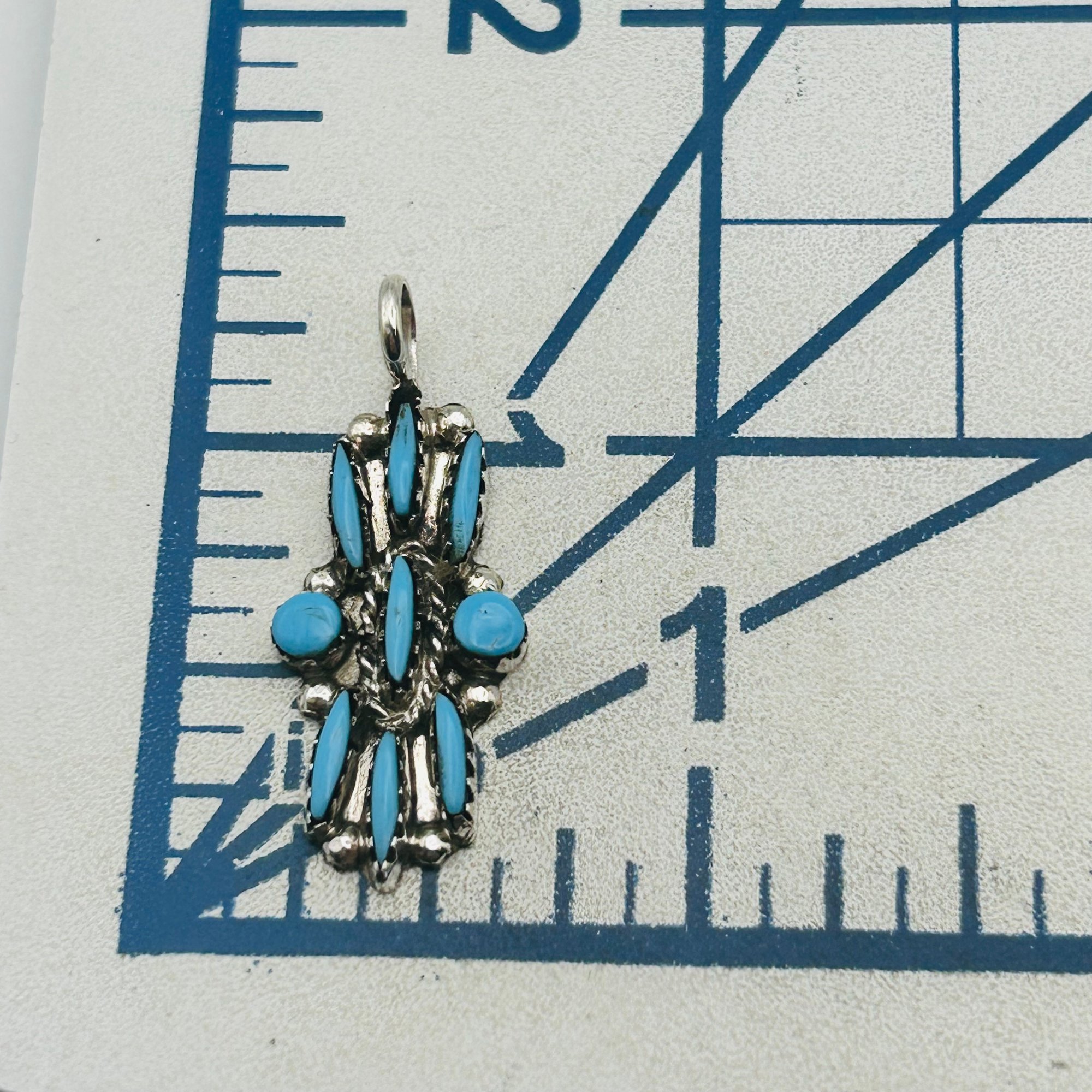 Yvette Kaamasee Zuni Sterling Needlepoint Turquoise Pendant 1.73 grams