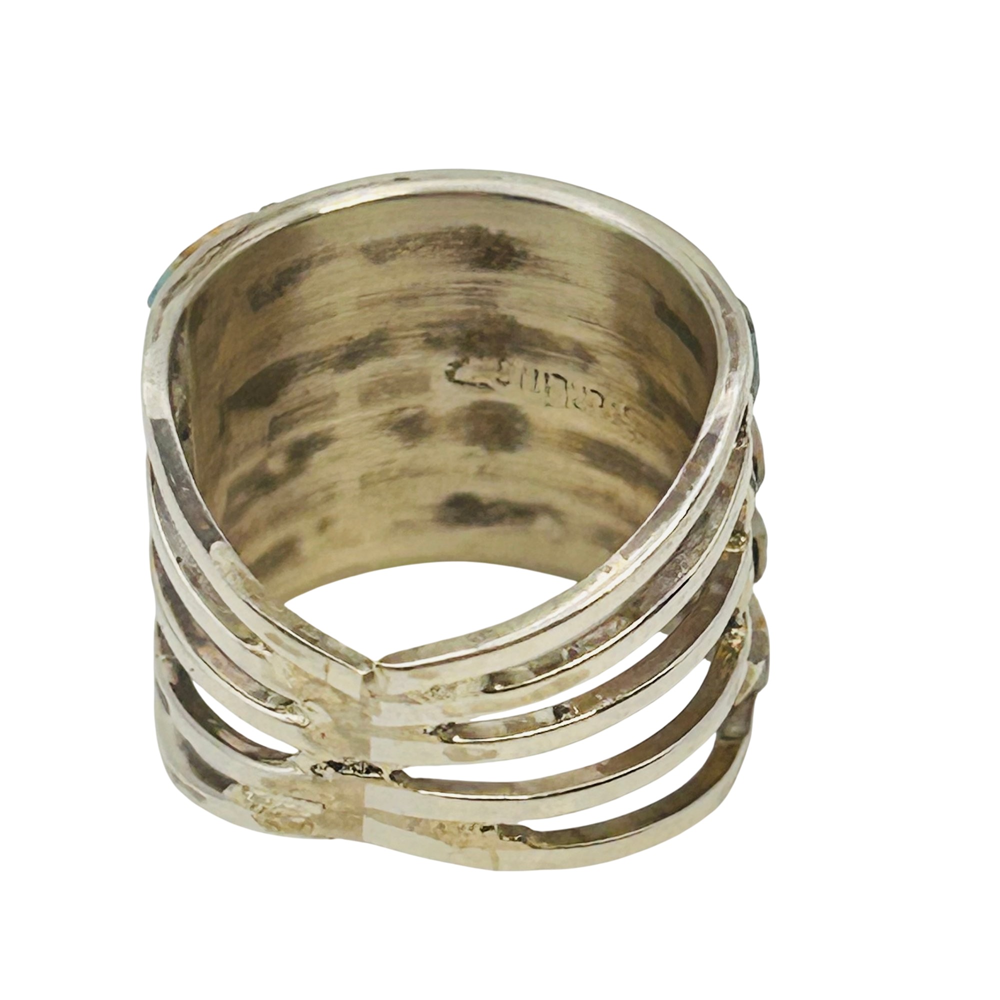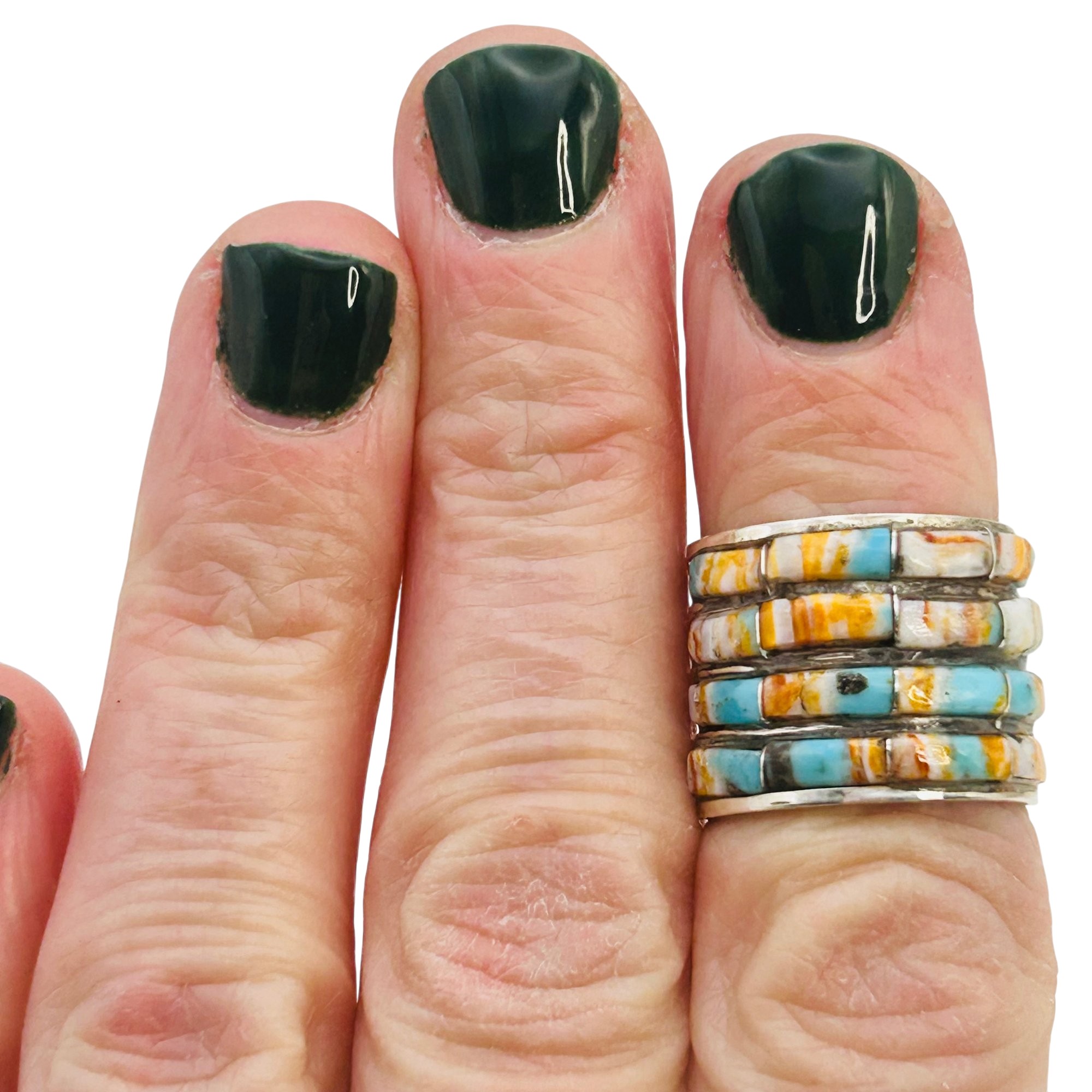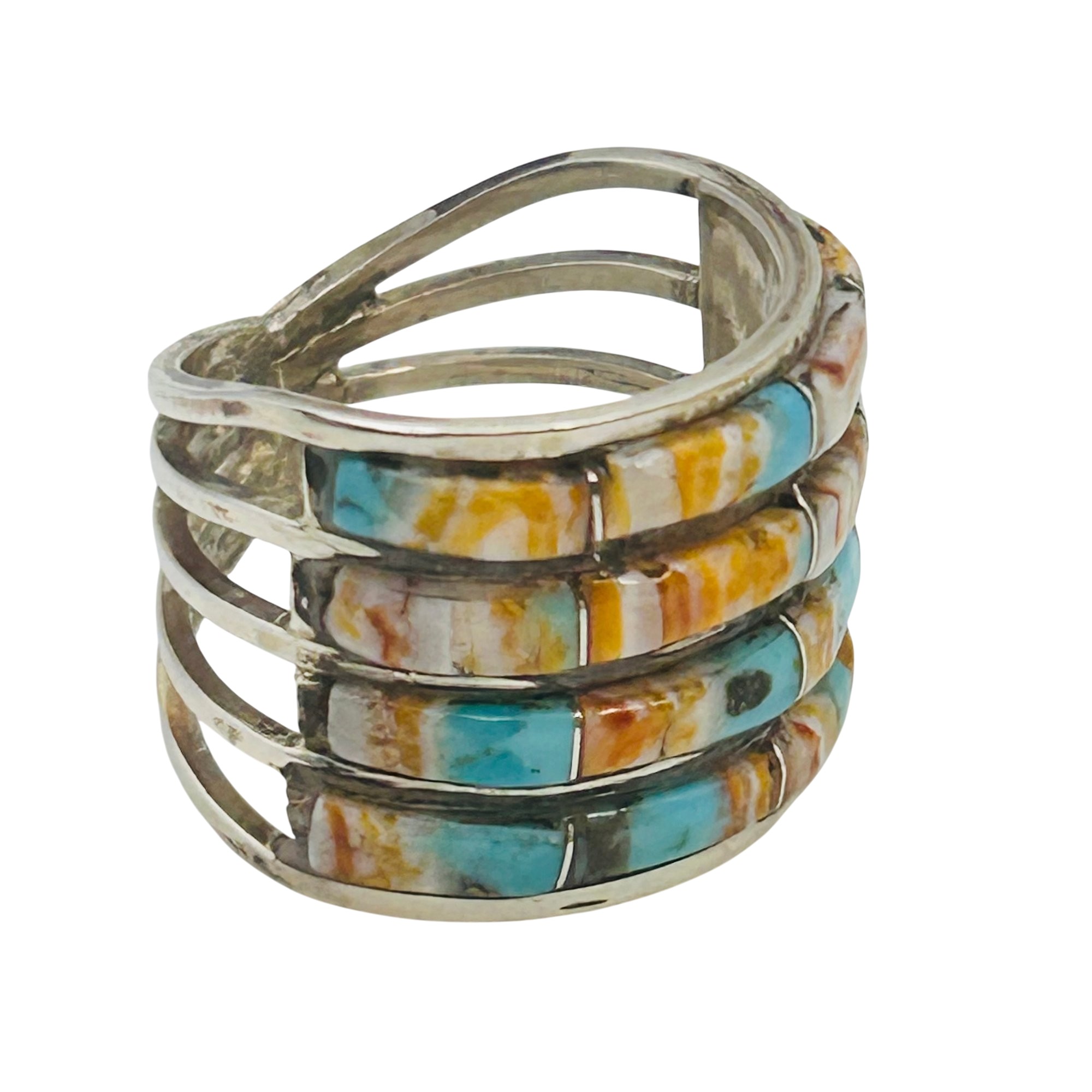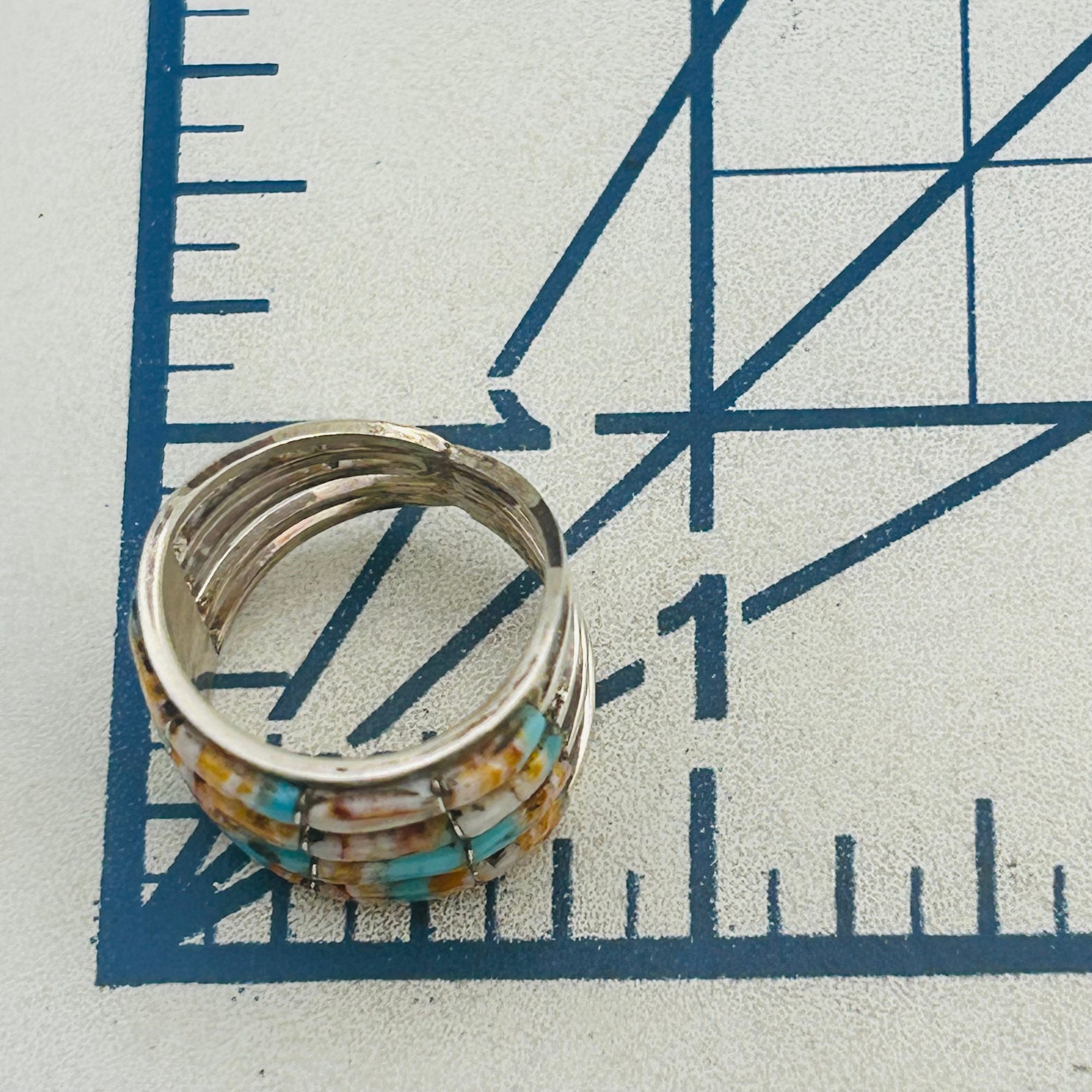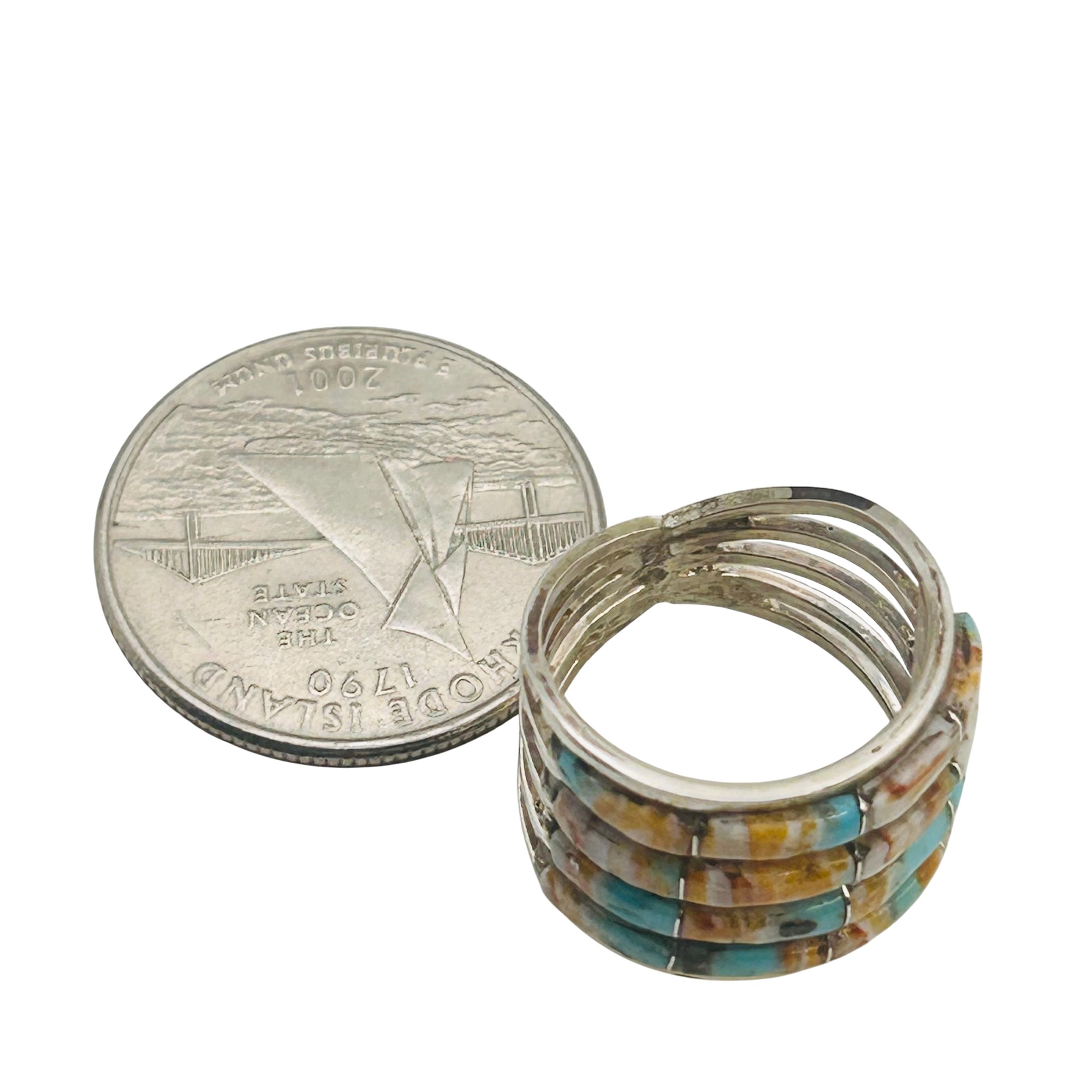 Debbie Livingston Navajo Sterling Spiny Oyster Turquoise 4 row Ring SZ 6 4.82 grams