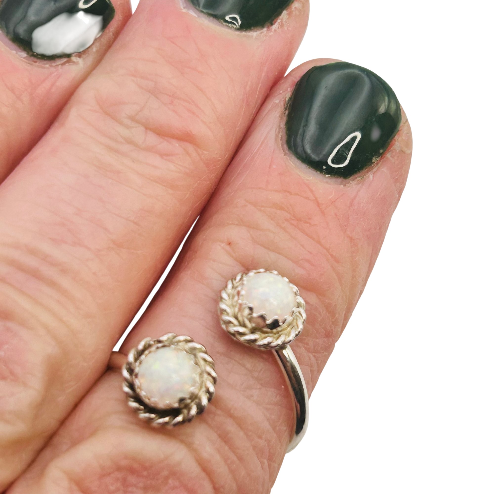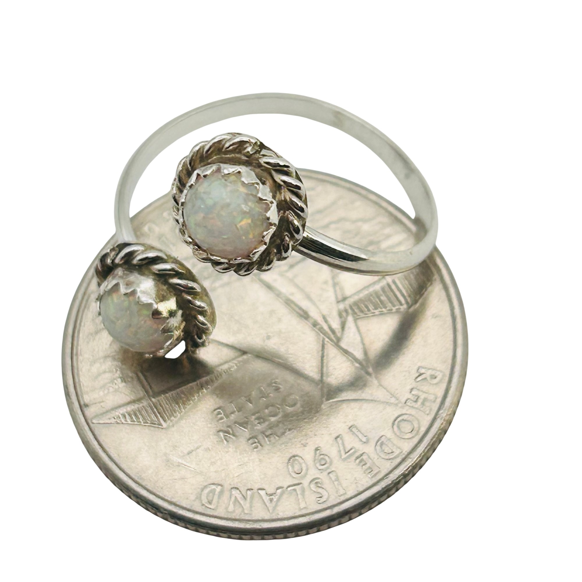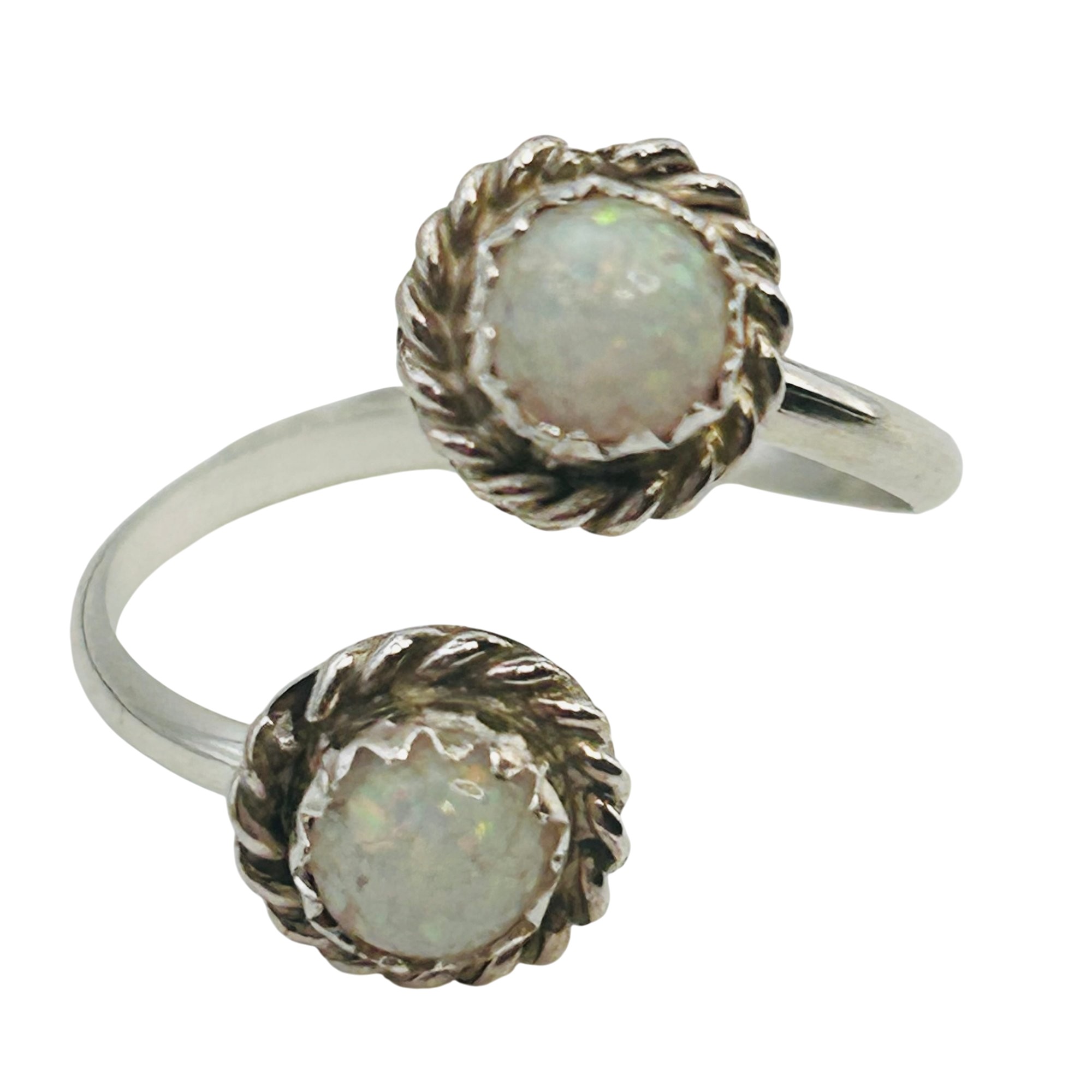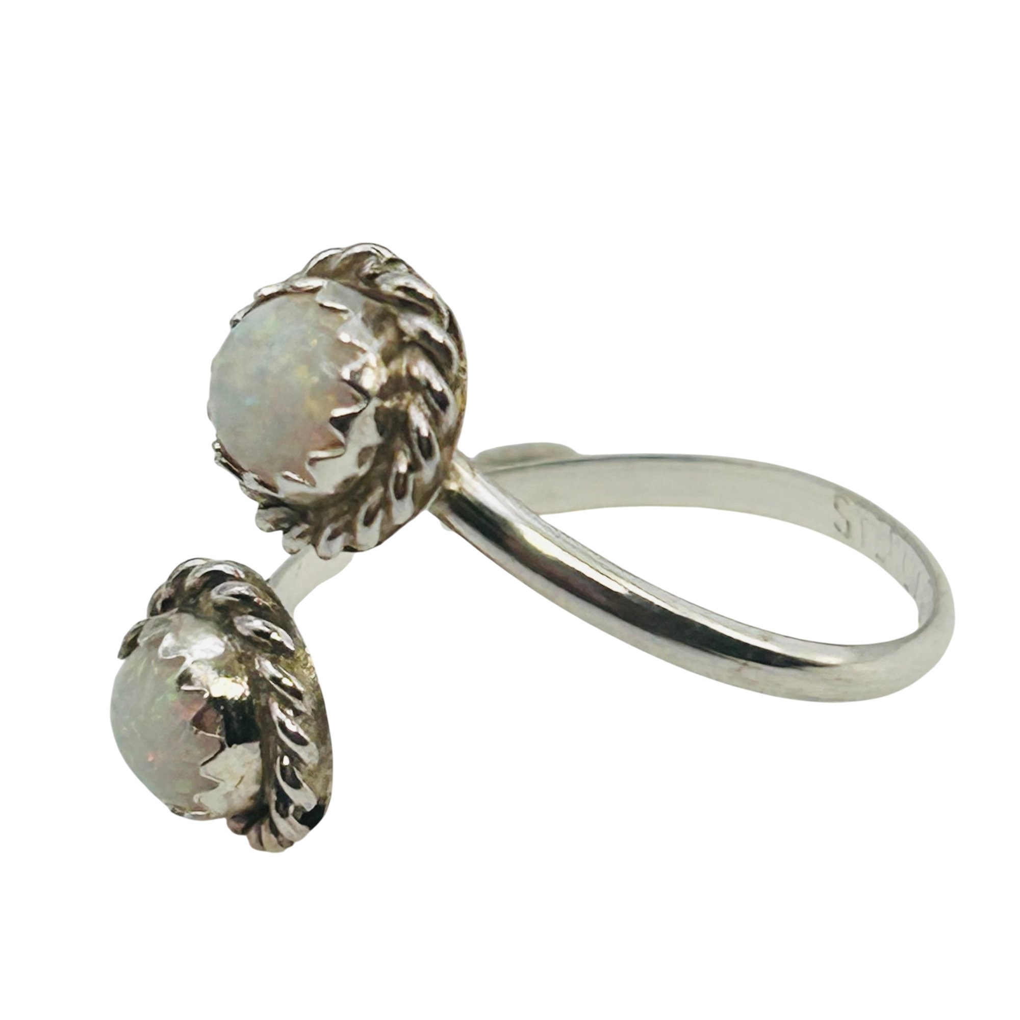 Esther White Navajo Sterling Opal Adjustable Bypass Ring 1.67grams