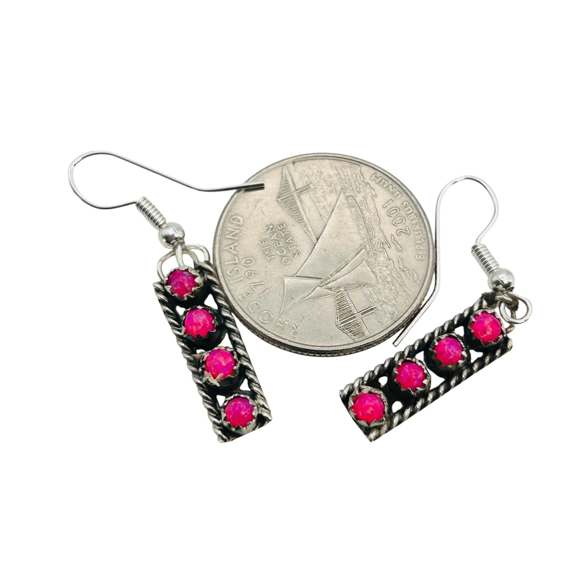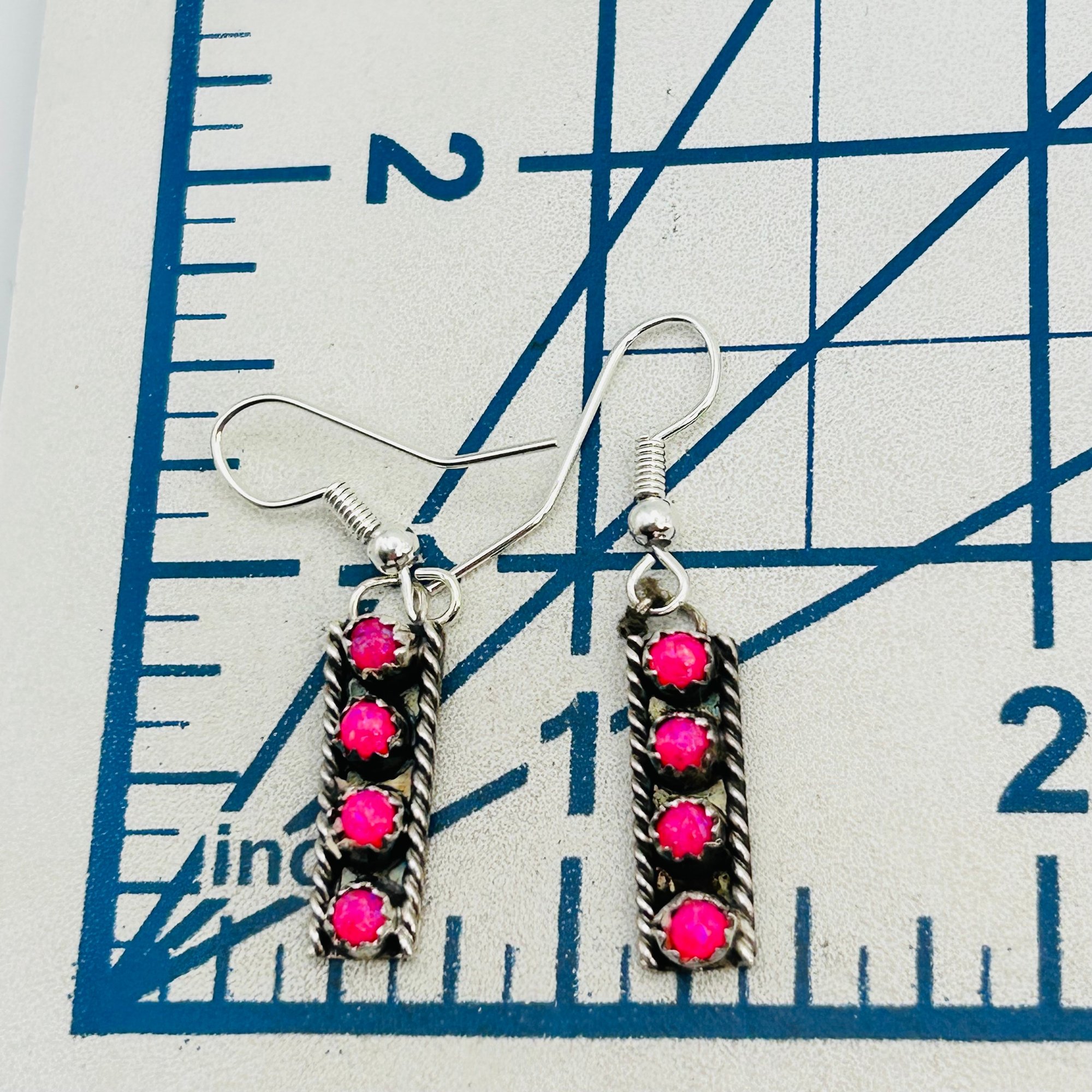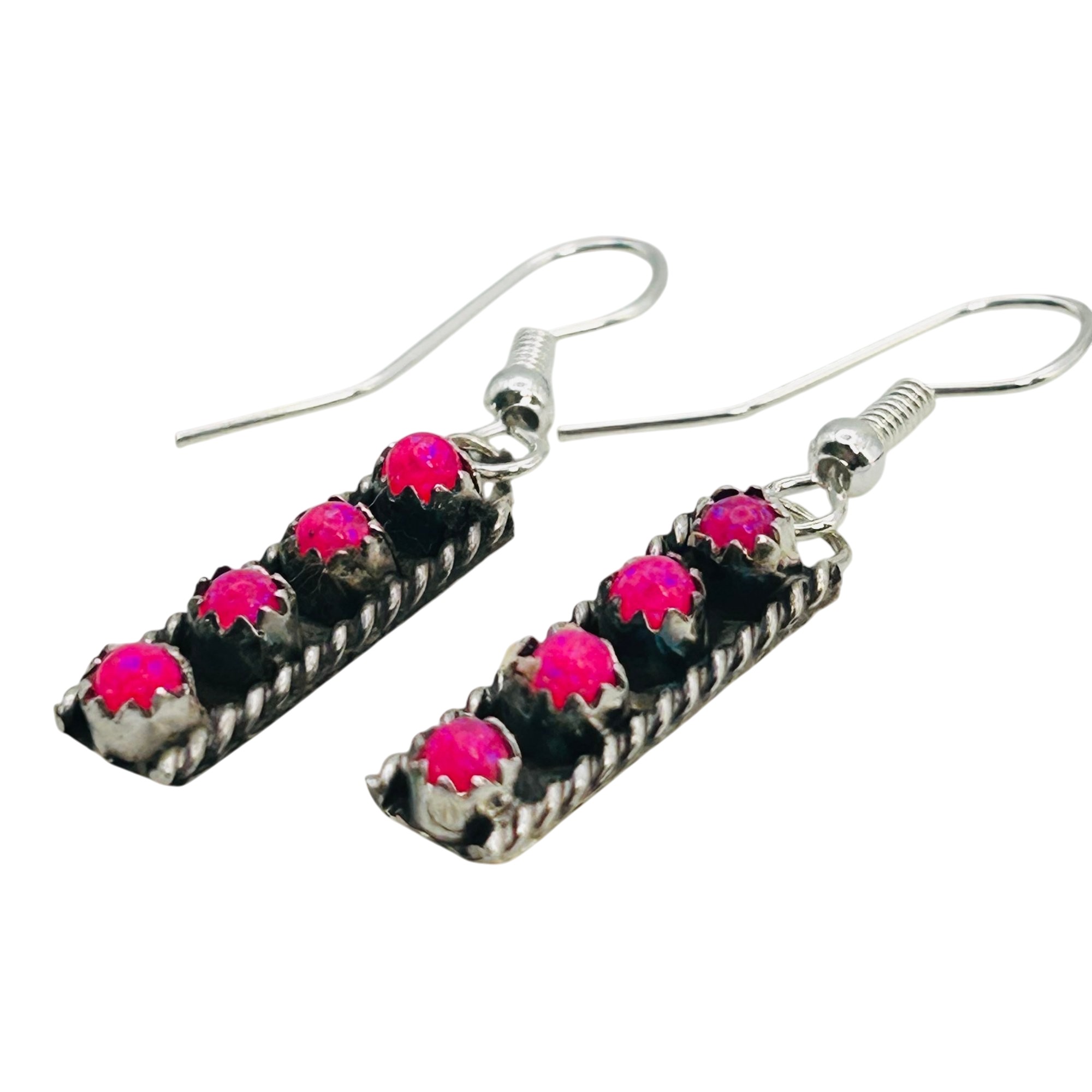 Esther White Navajo Sterling Pink Opal hookback Earrings 2.51 grams