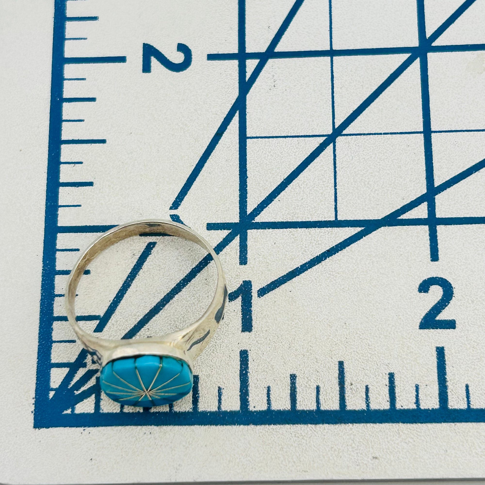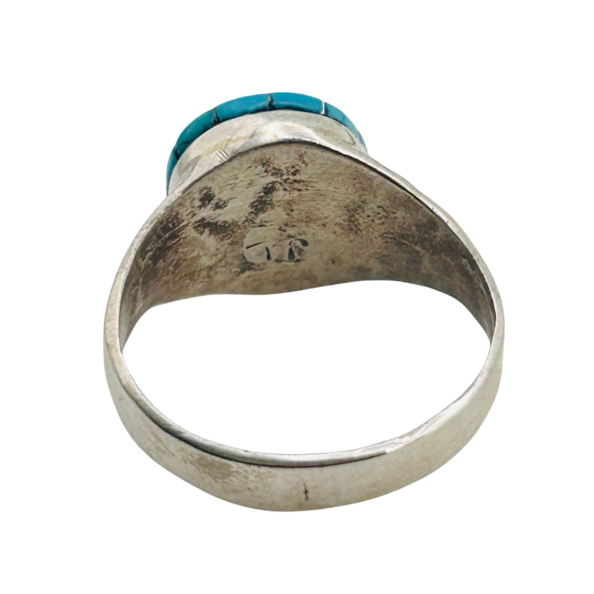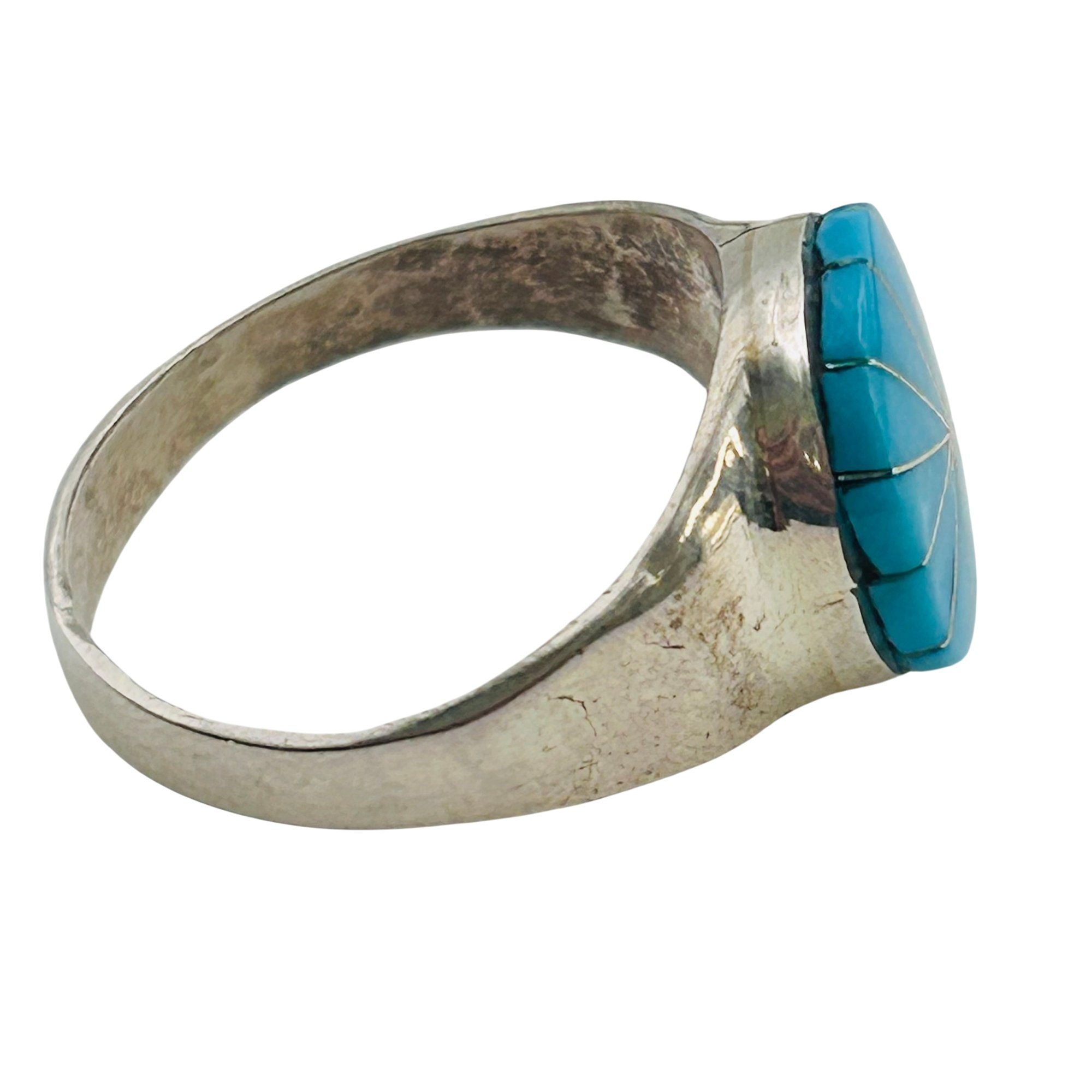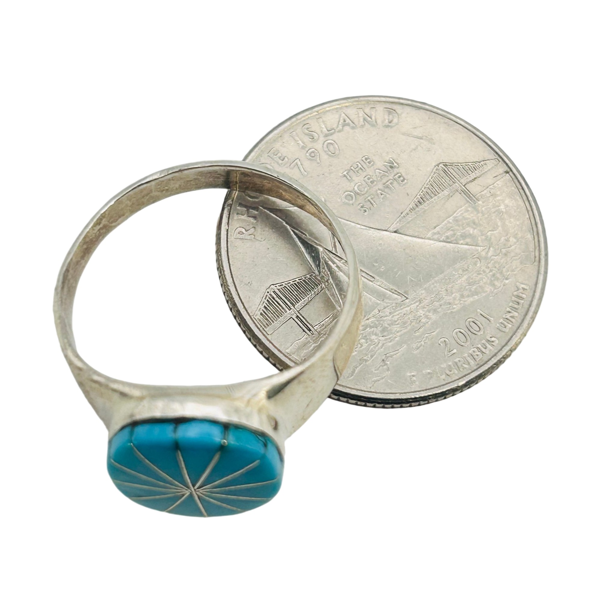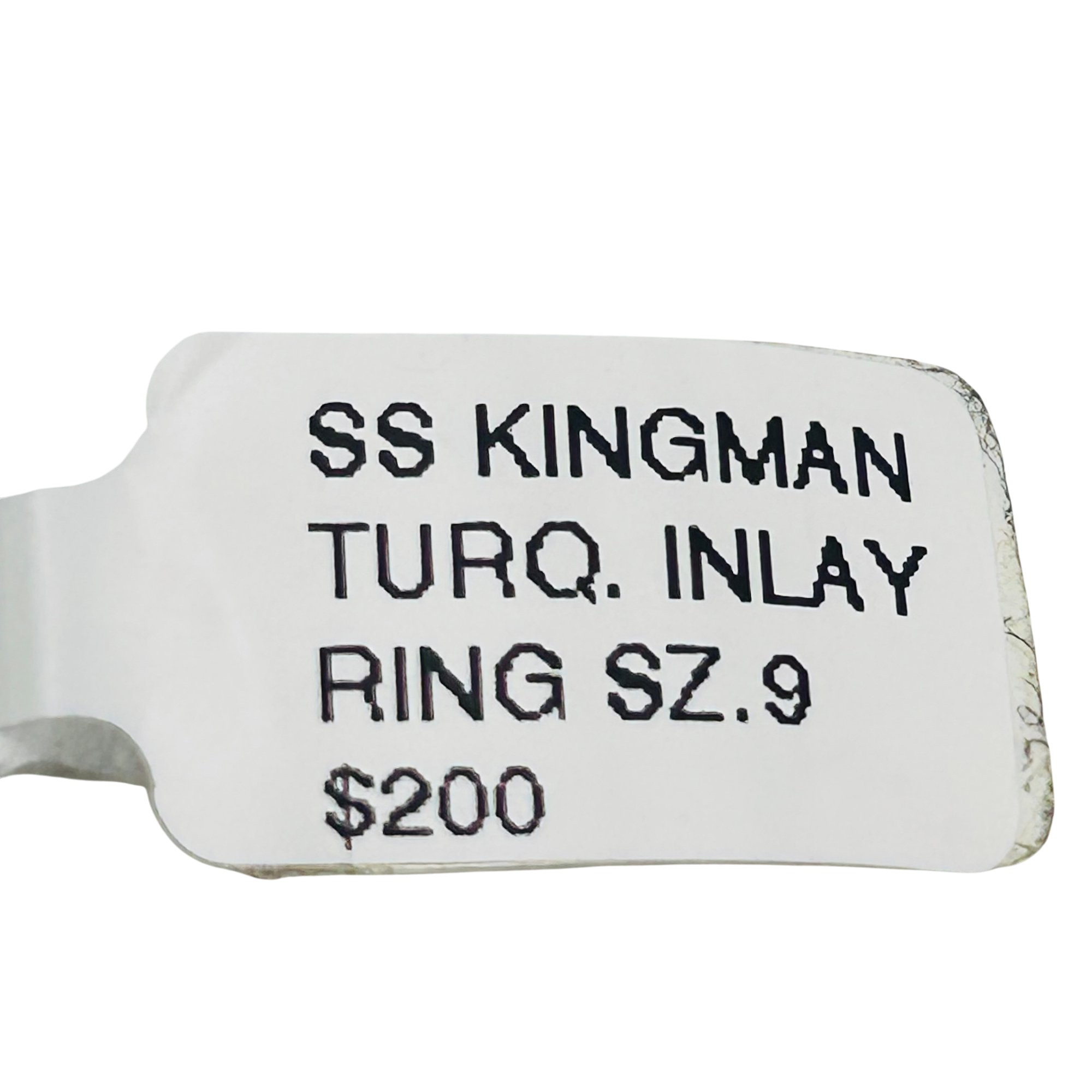 Johnson Laweka Zuni Sterling Kingman Turquoise Inlay Round Ring SZ 9. 4.45grams