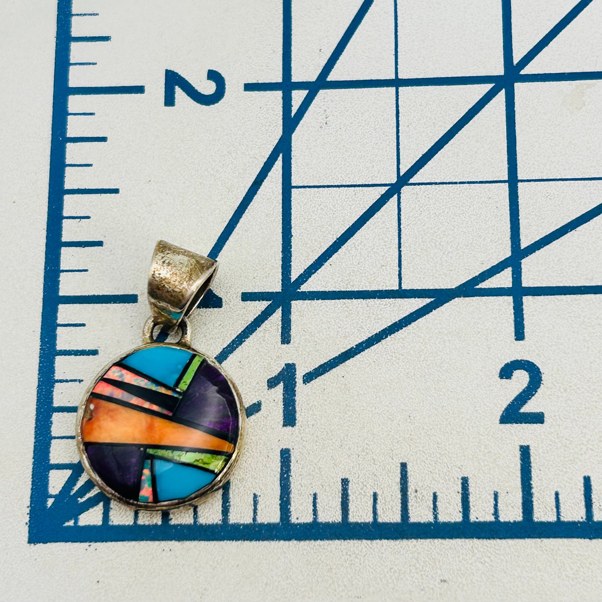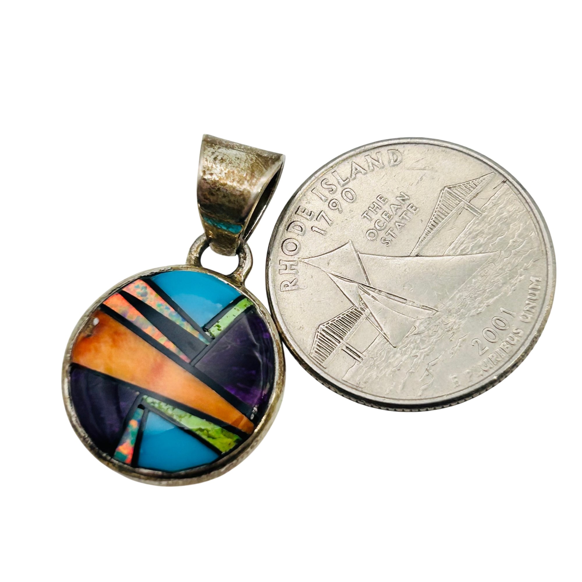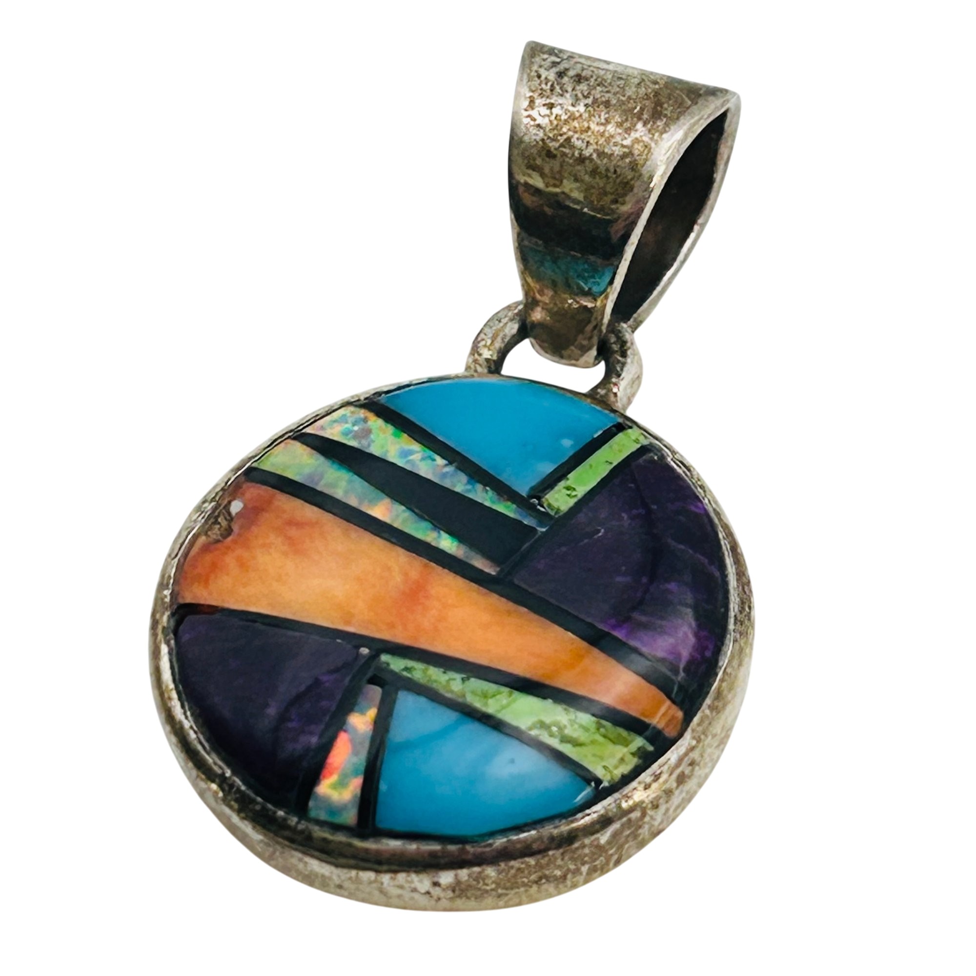 Cordell Brown Navajo Sterling Multi Stone Spiny Oyster Turquoise Opal Pendant 5.17grams