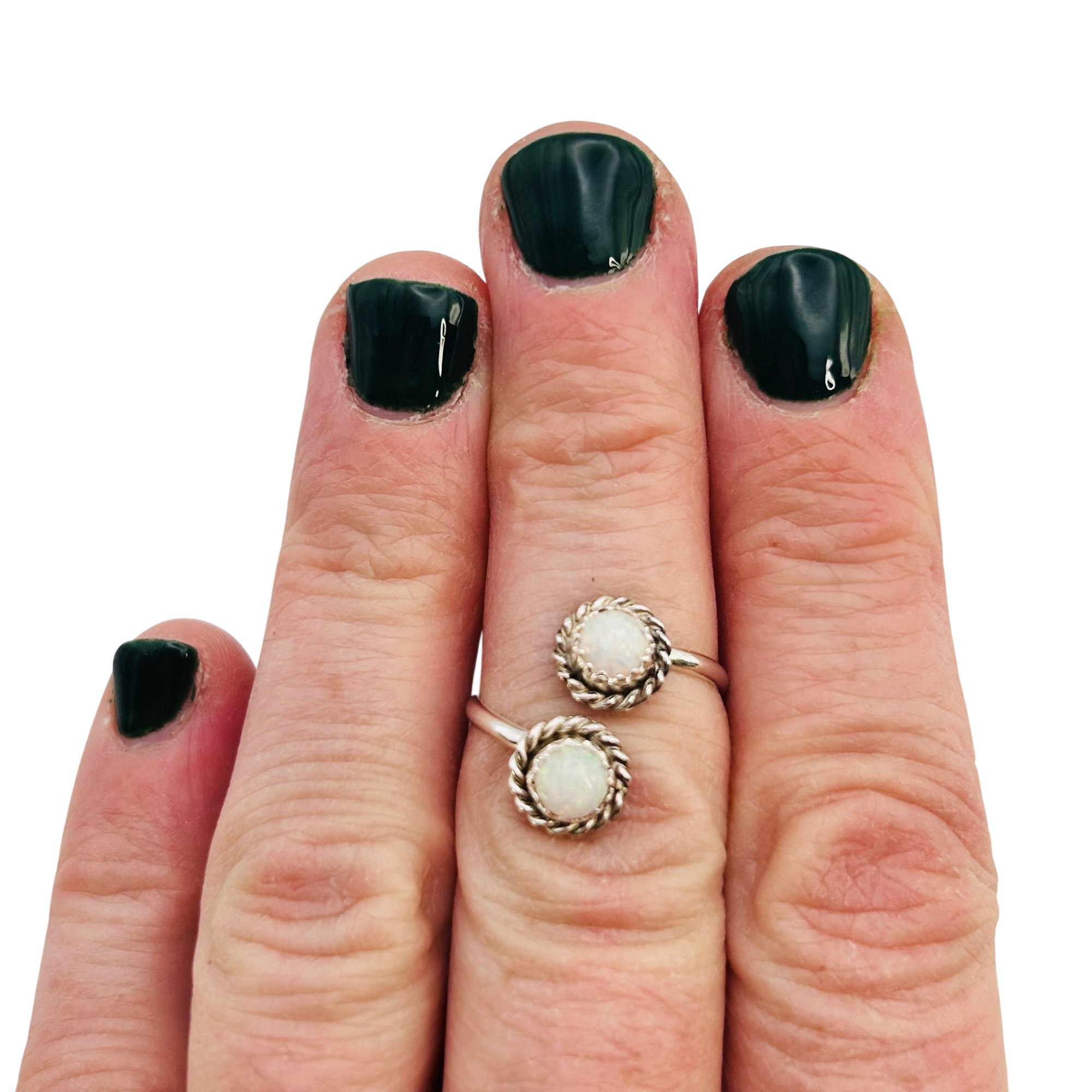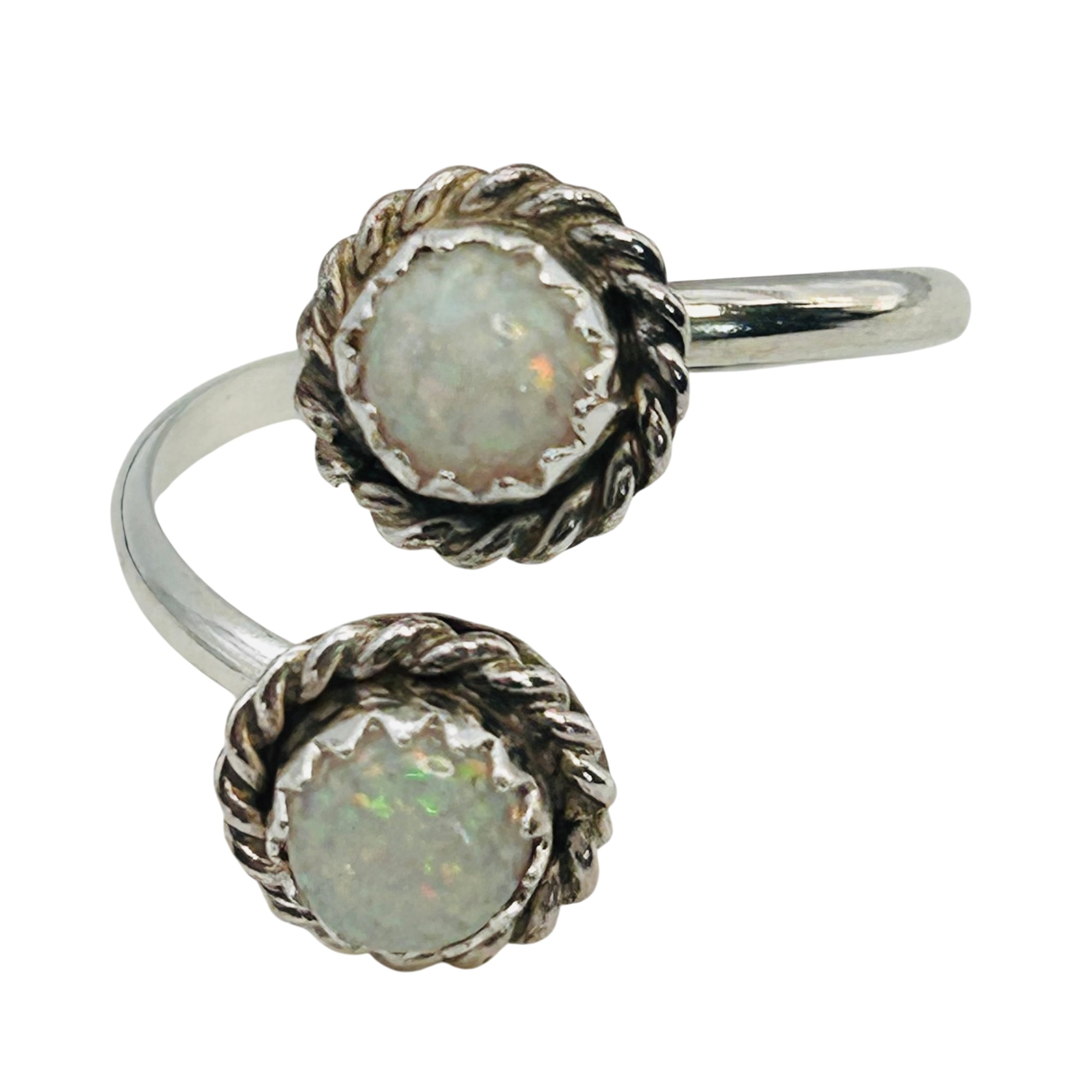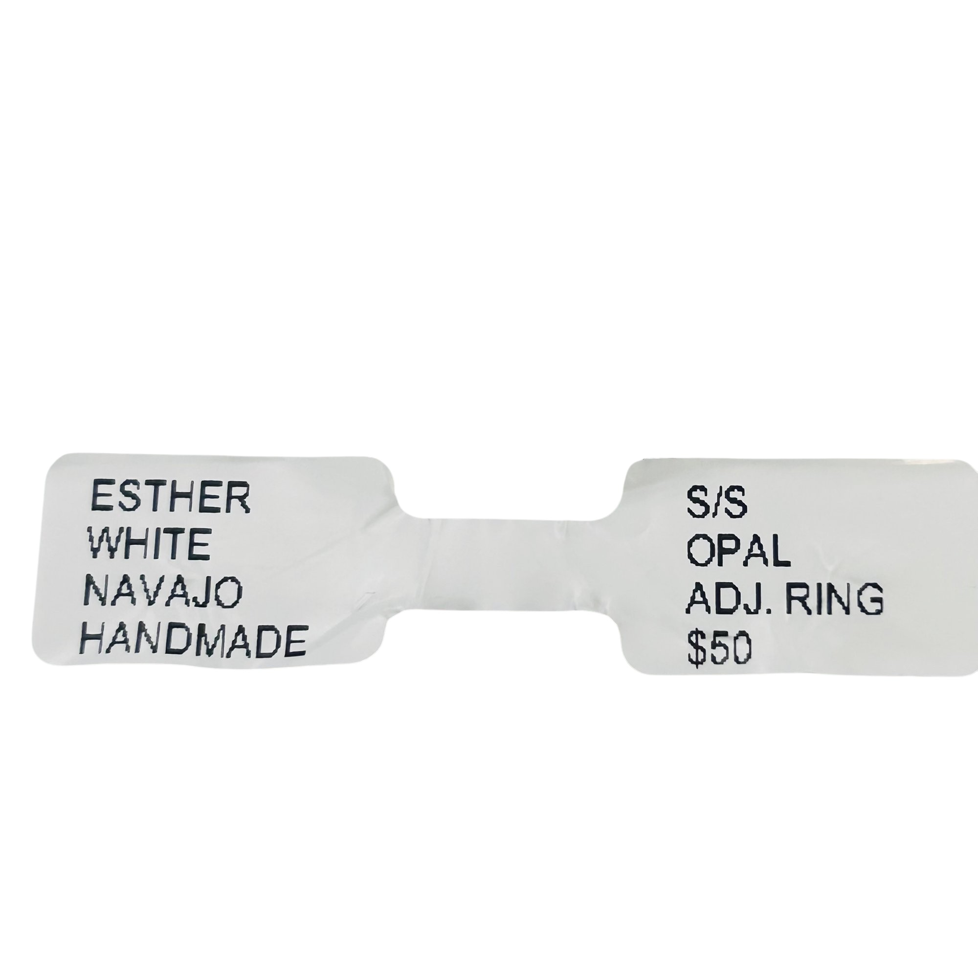 Esther White Navajo Sterling Opal adjustable Ring 1.66 grams