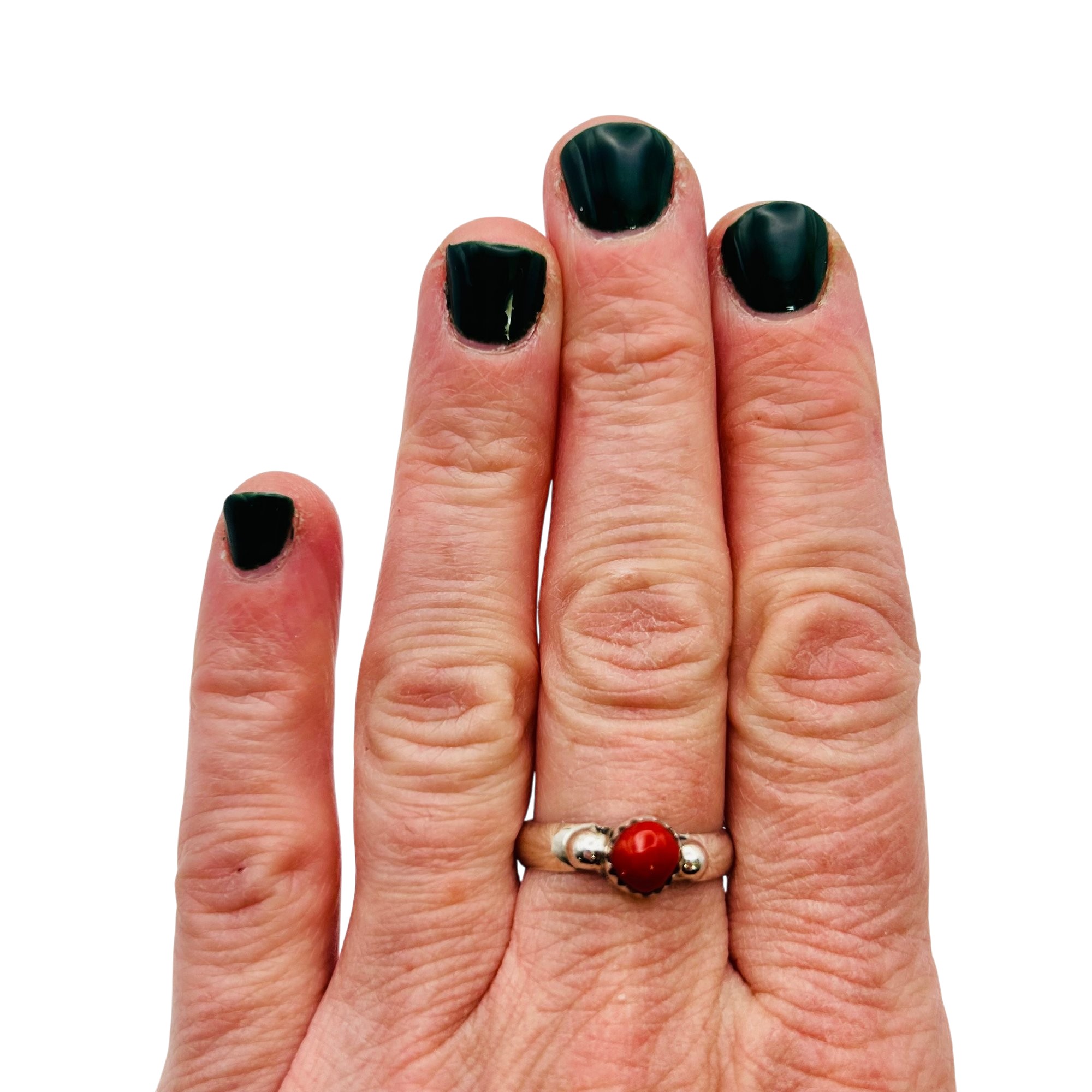Jason Yazzie Navajo Sterling Red Coral Ring SZ 9