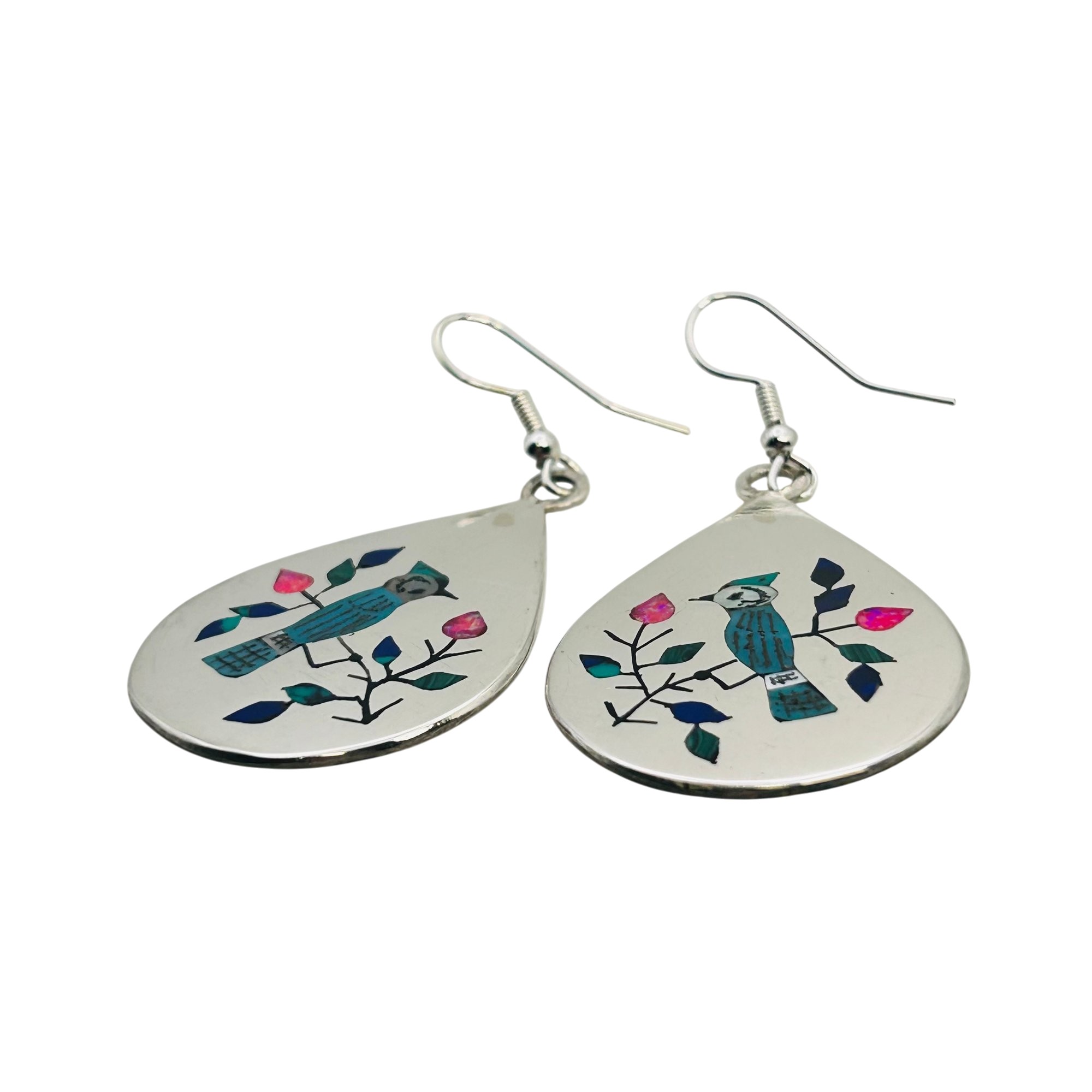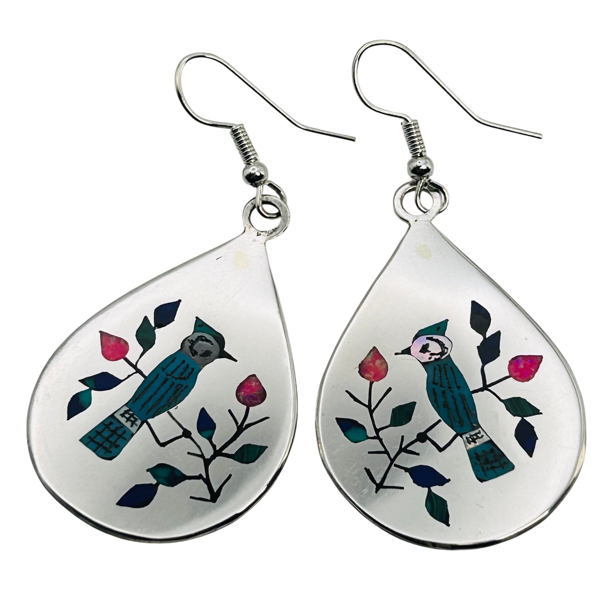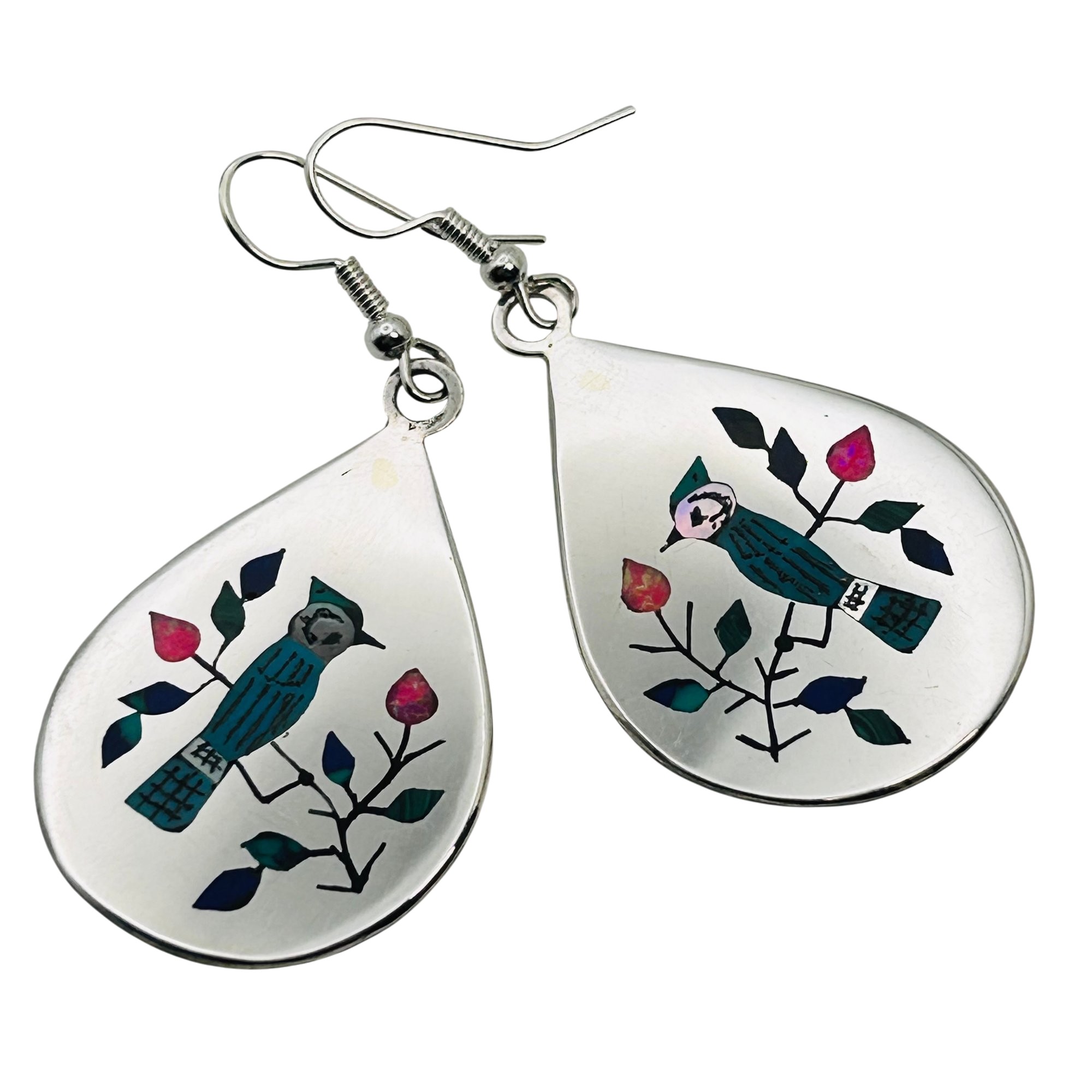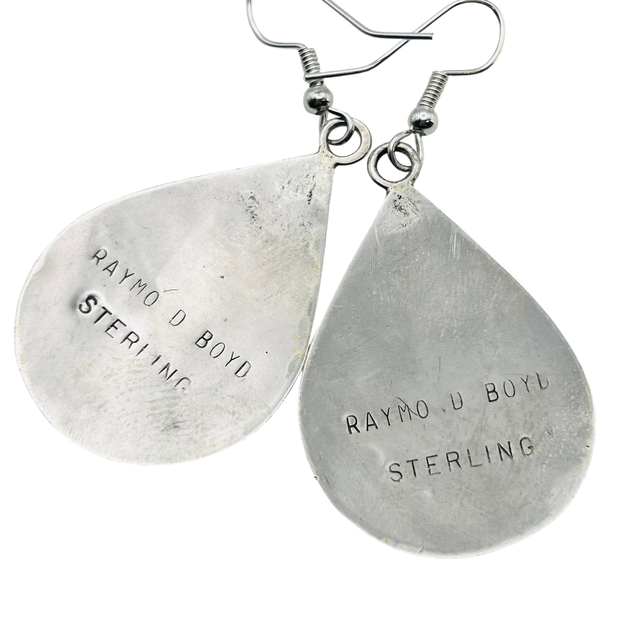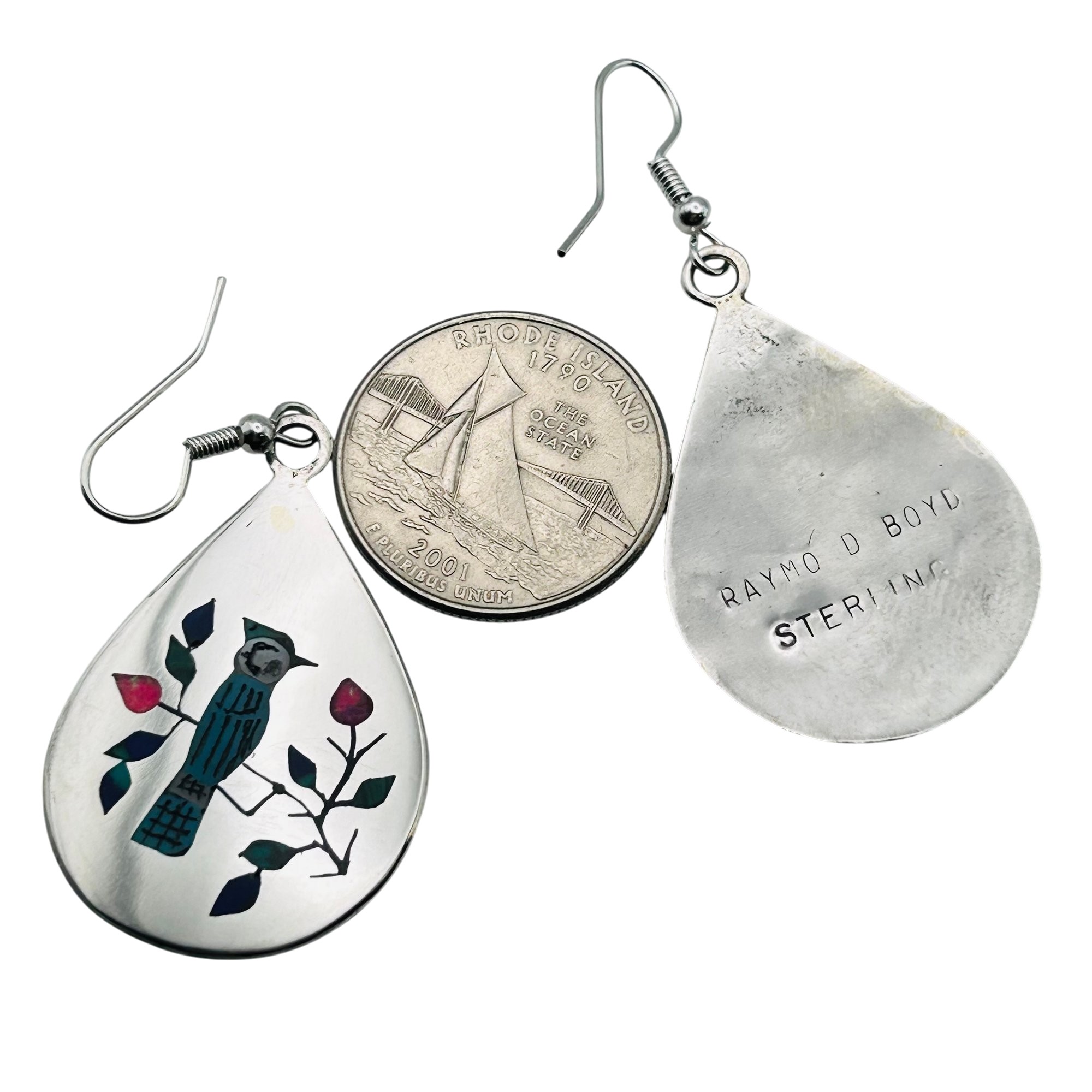 Raymond Boyd Navajo Sterling Hummingbird teardrop Dangel Earrings 11.47 grams