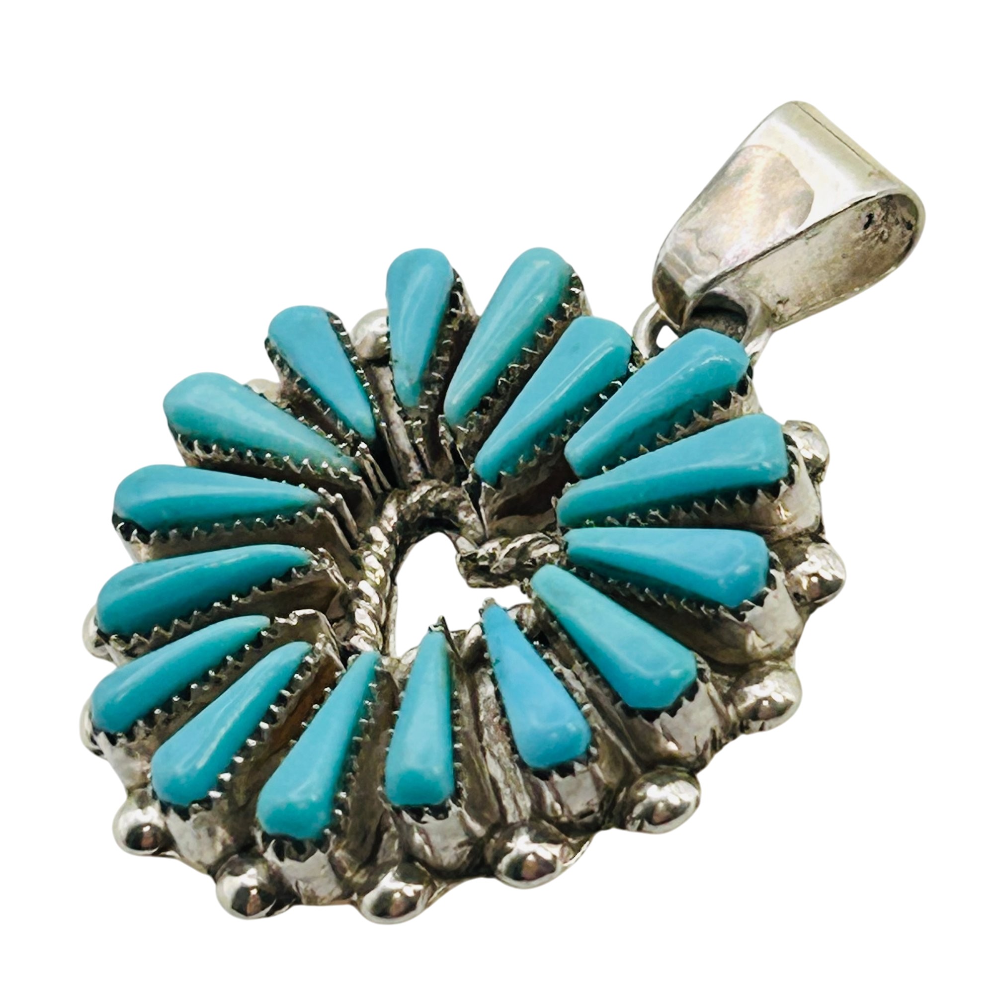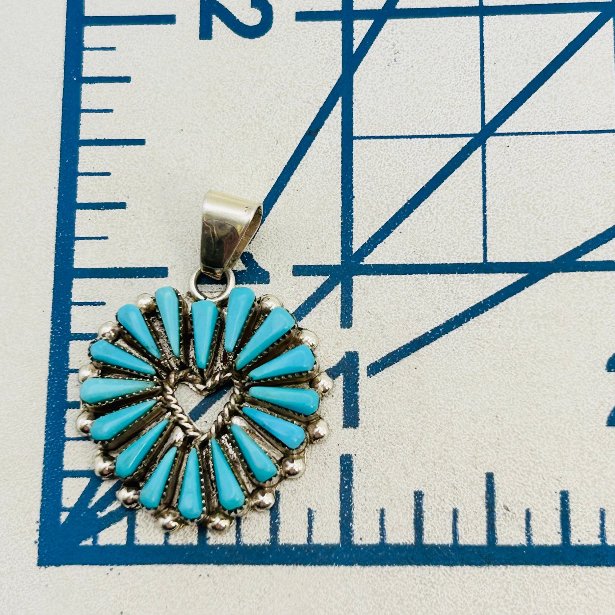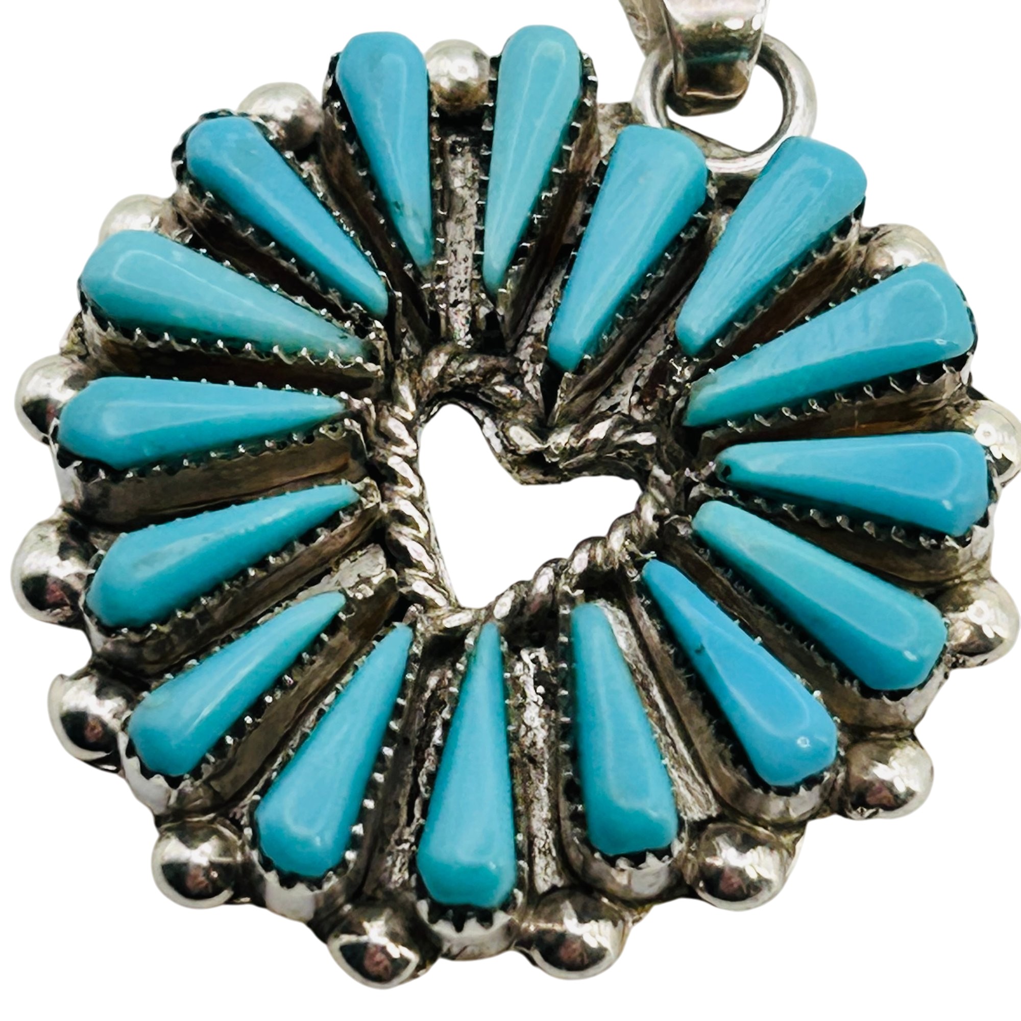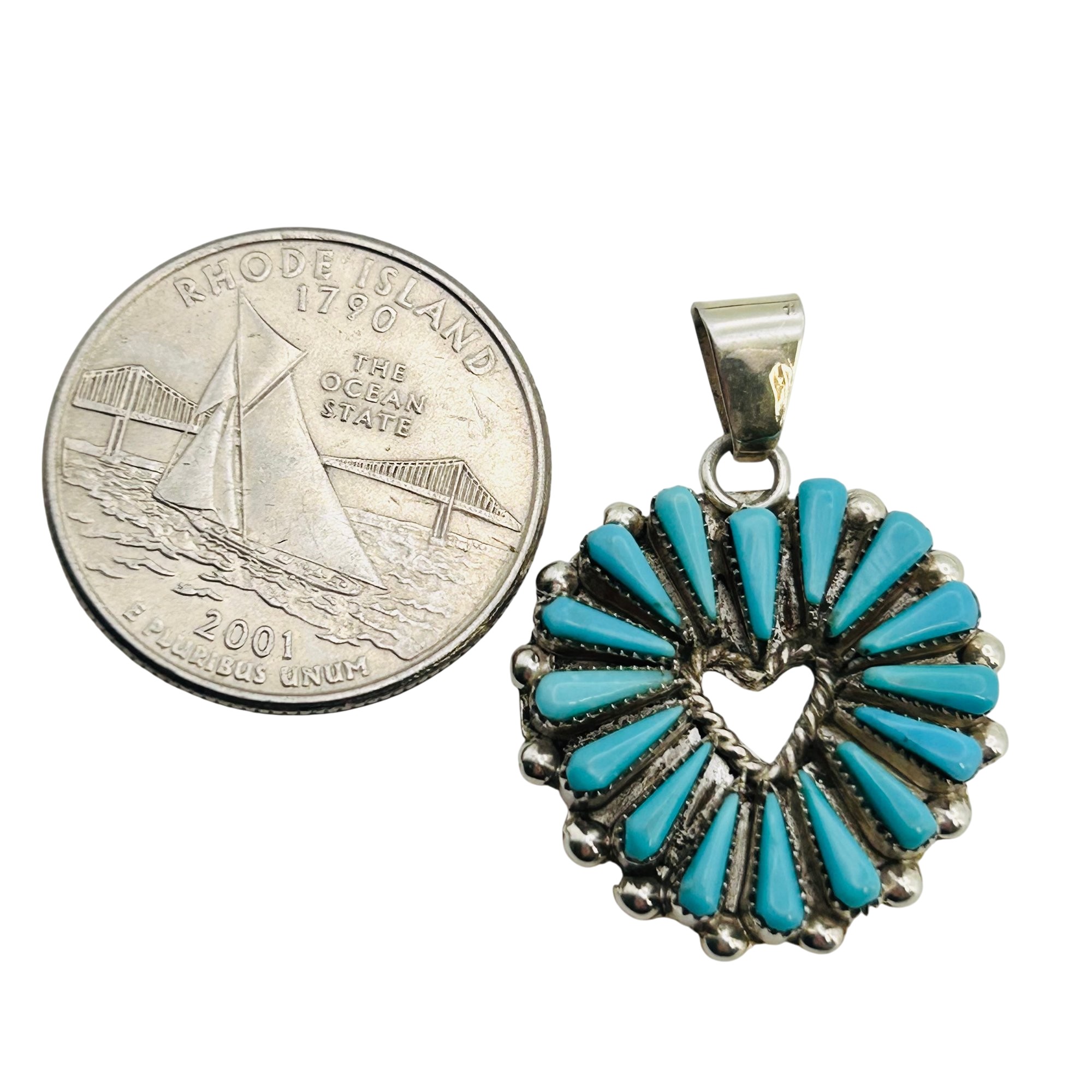 Rebecca Laate Zuni Sterling Needlepoint Turquoise Heart Pendant 3.79grams