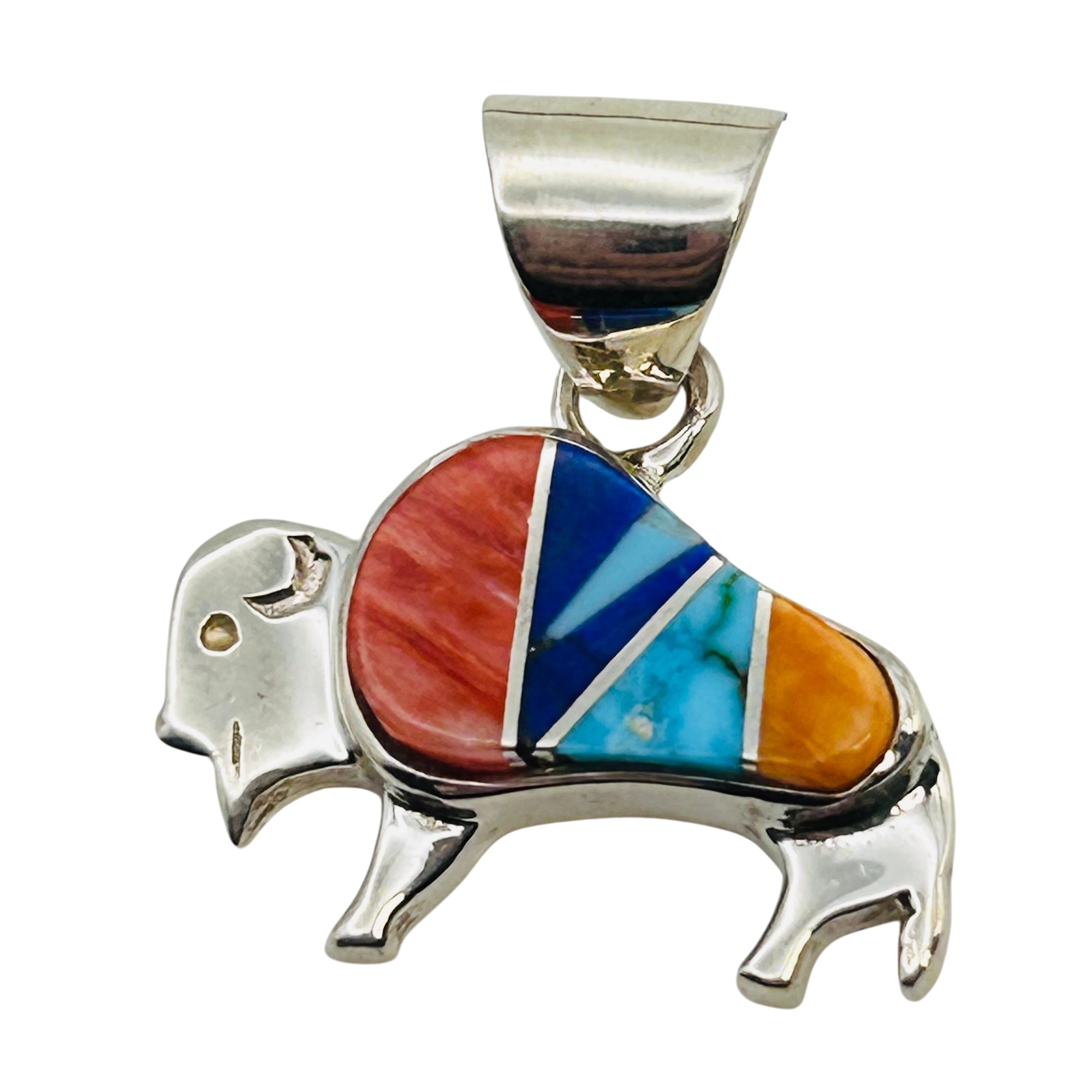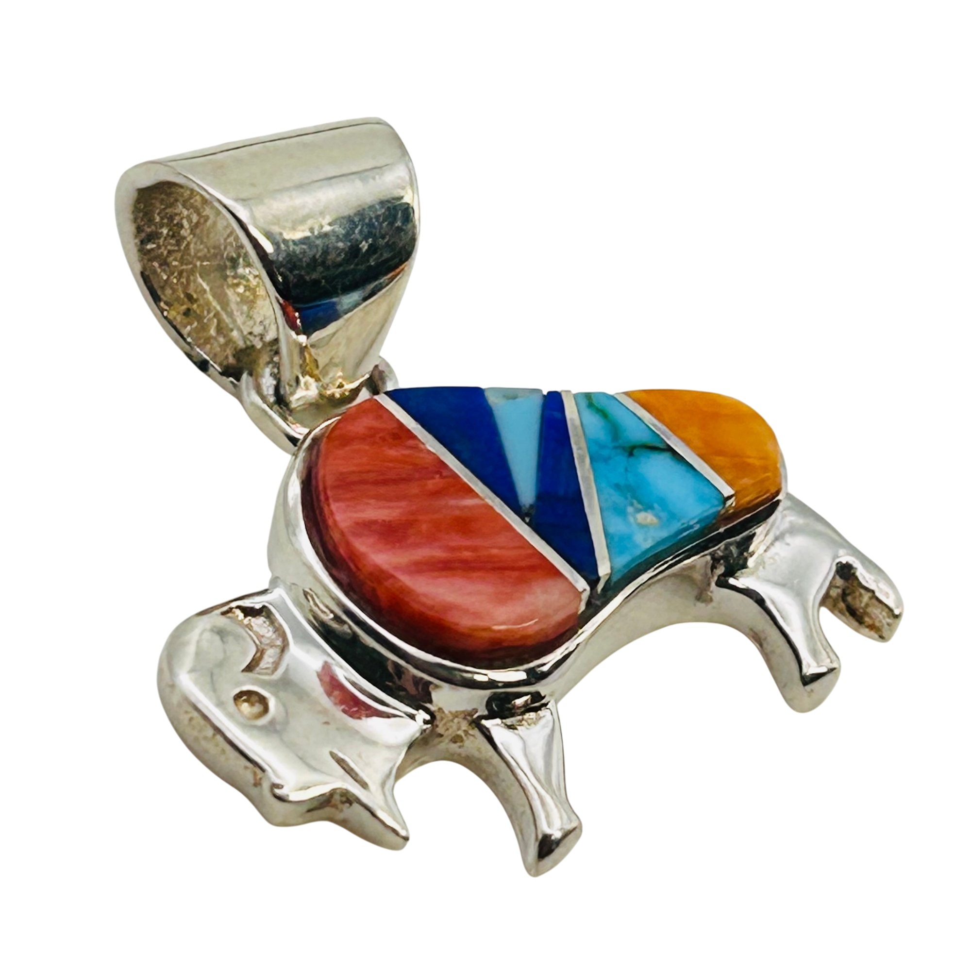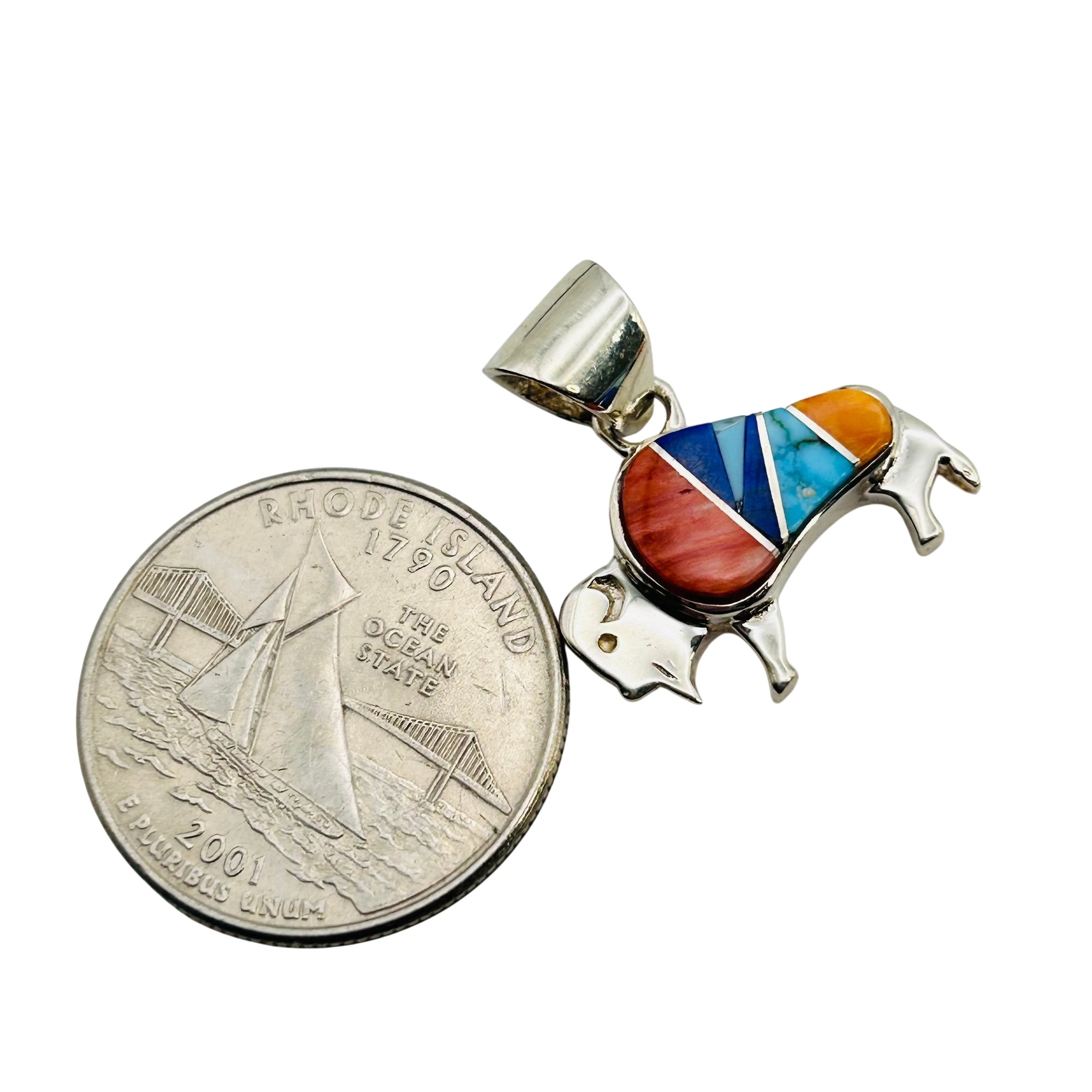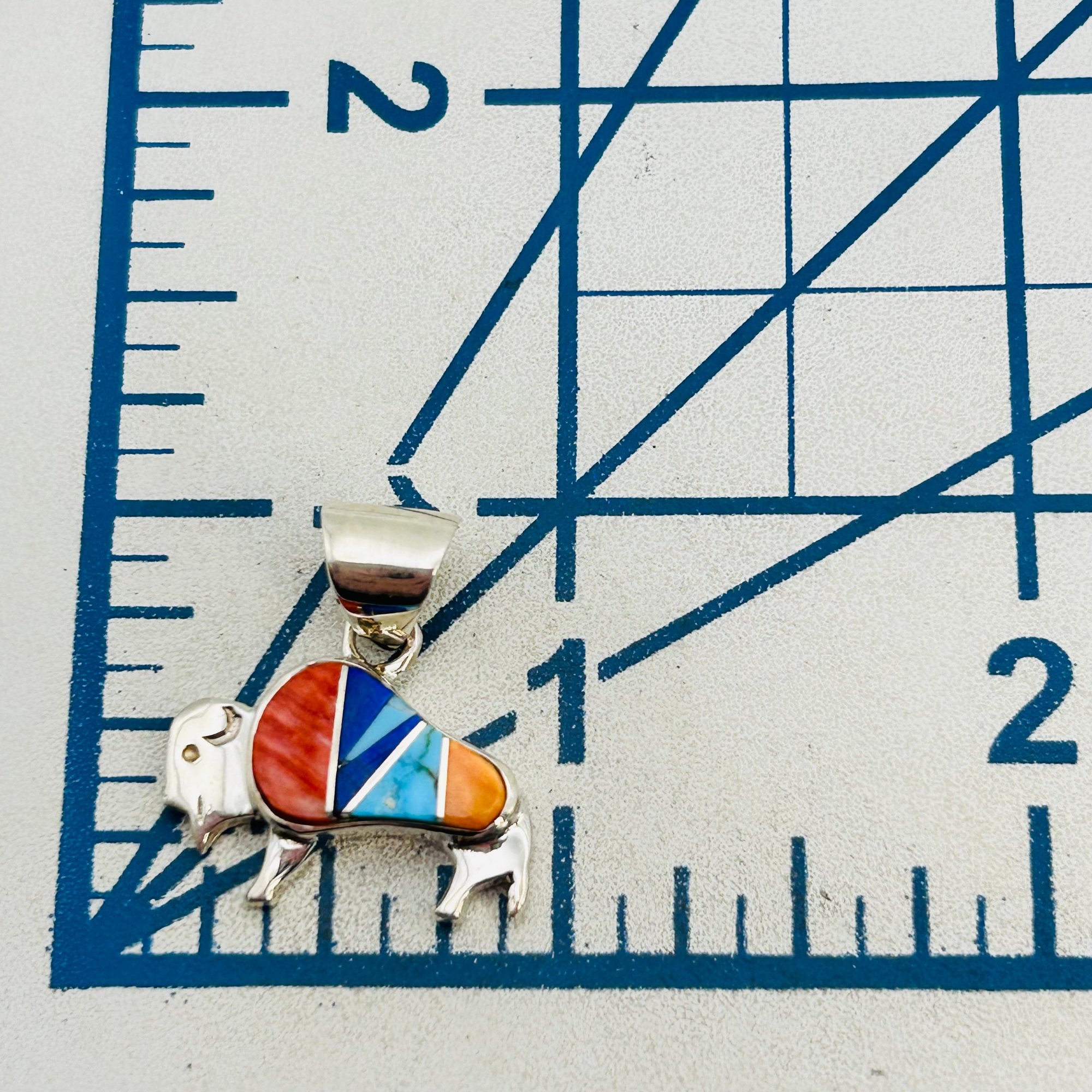 Rose Ann Long Navajo Sterling Multi Stone Spiny Oyster Turquoise Lapis Pendant 3.91 grams