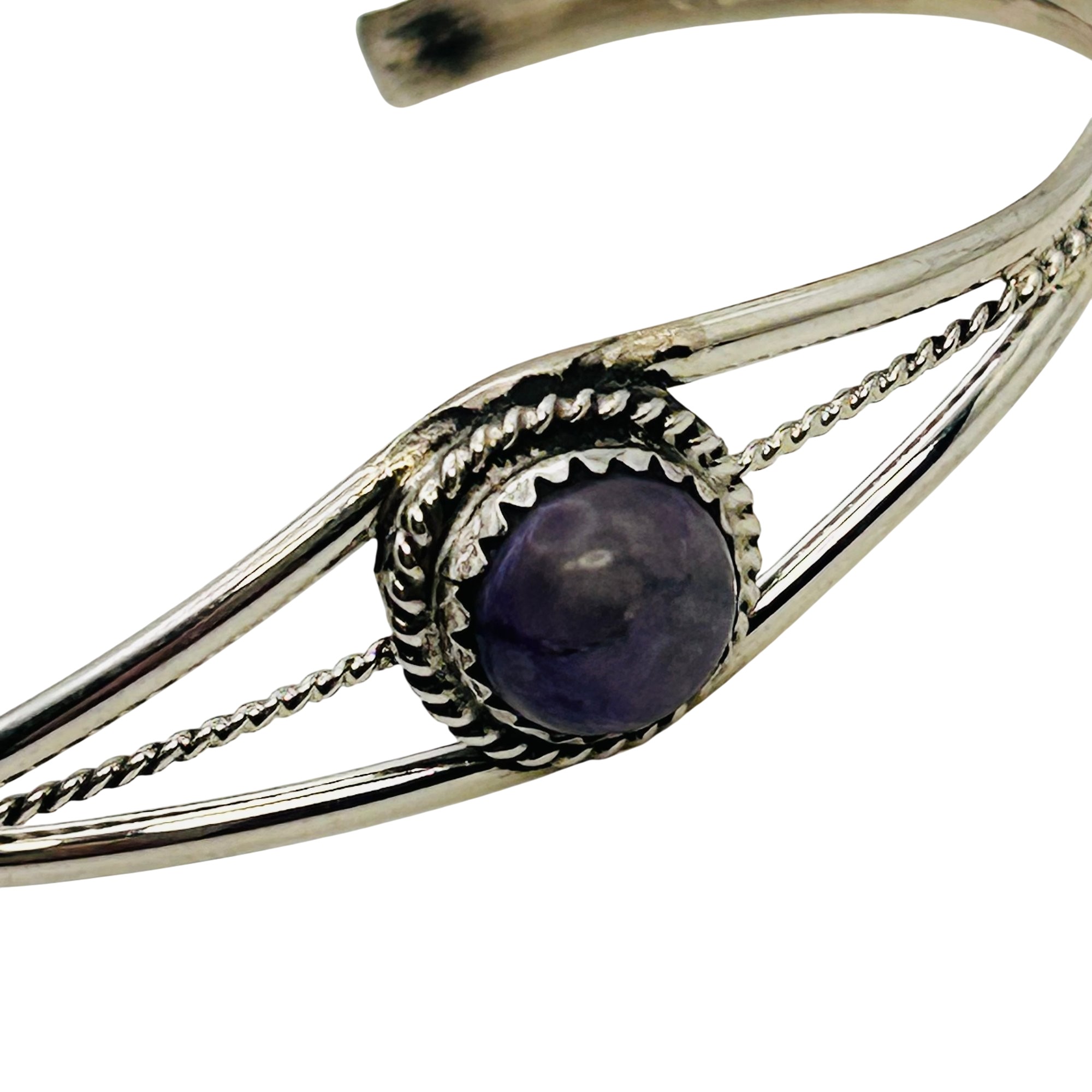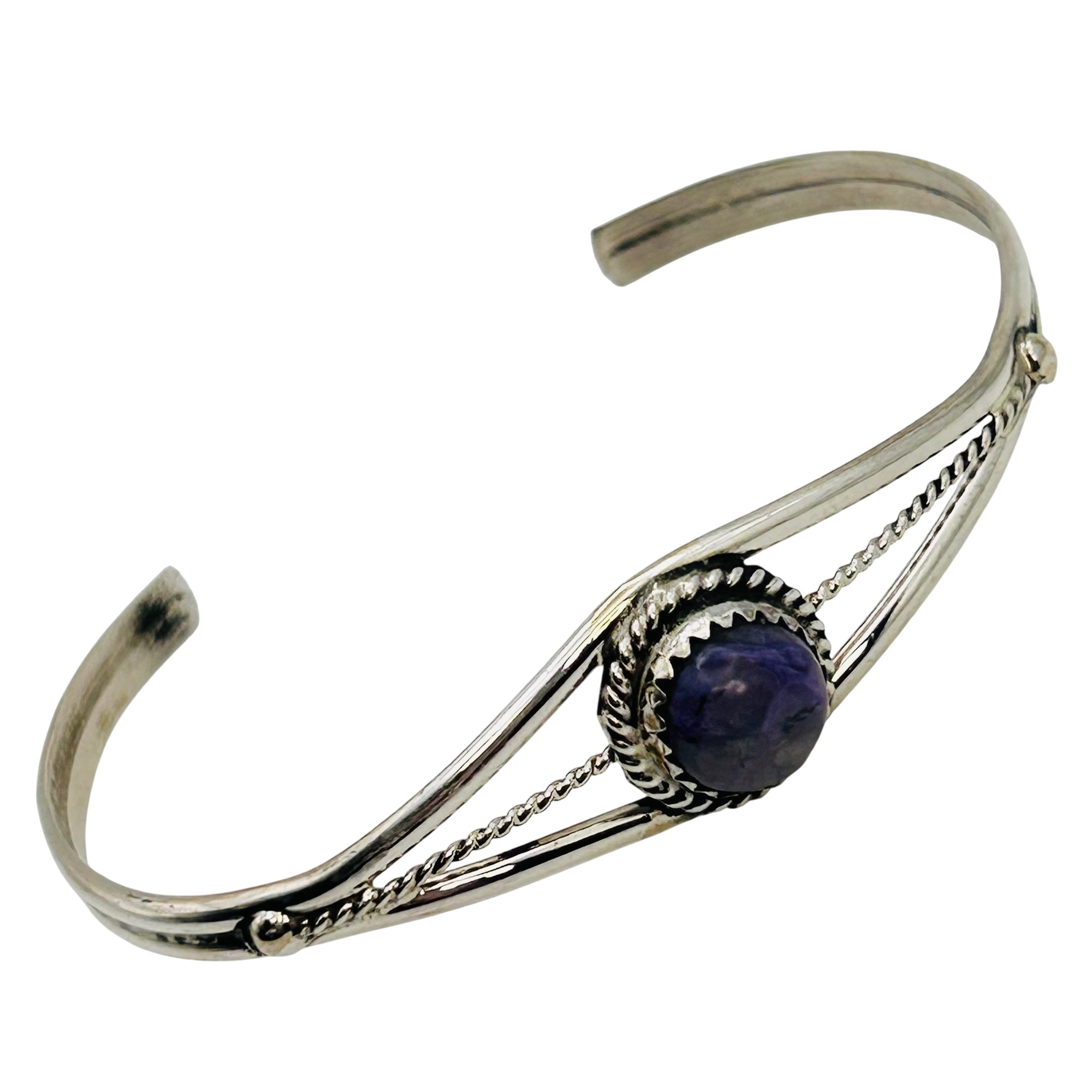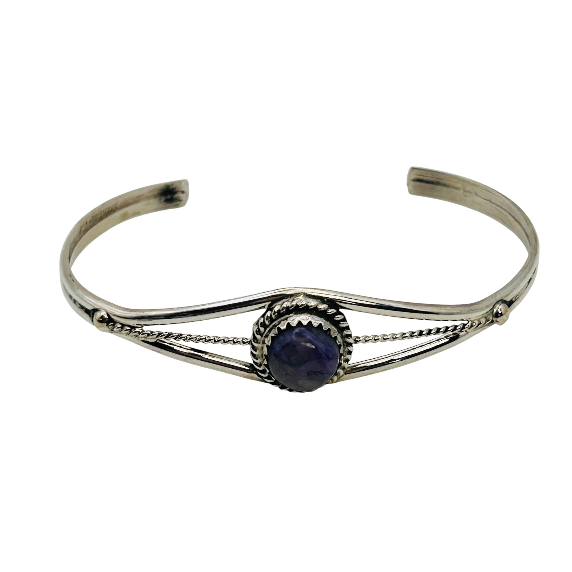 Esther White Navajo Sterling Charoite Bracelet 6 grams