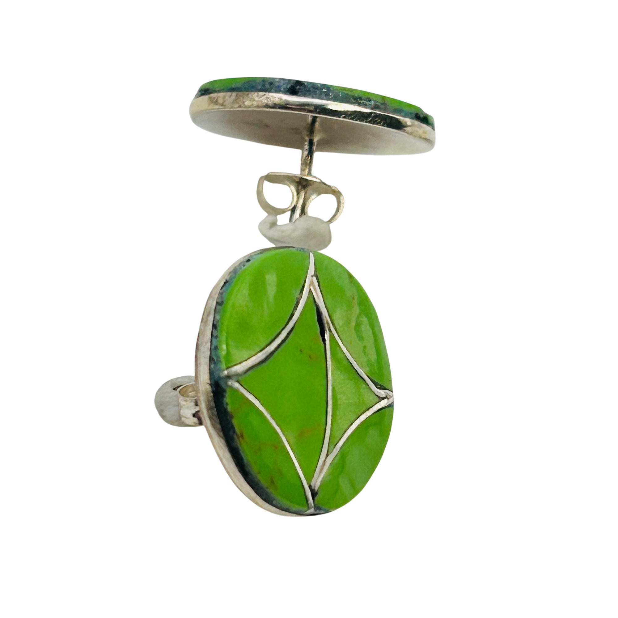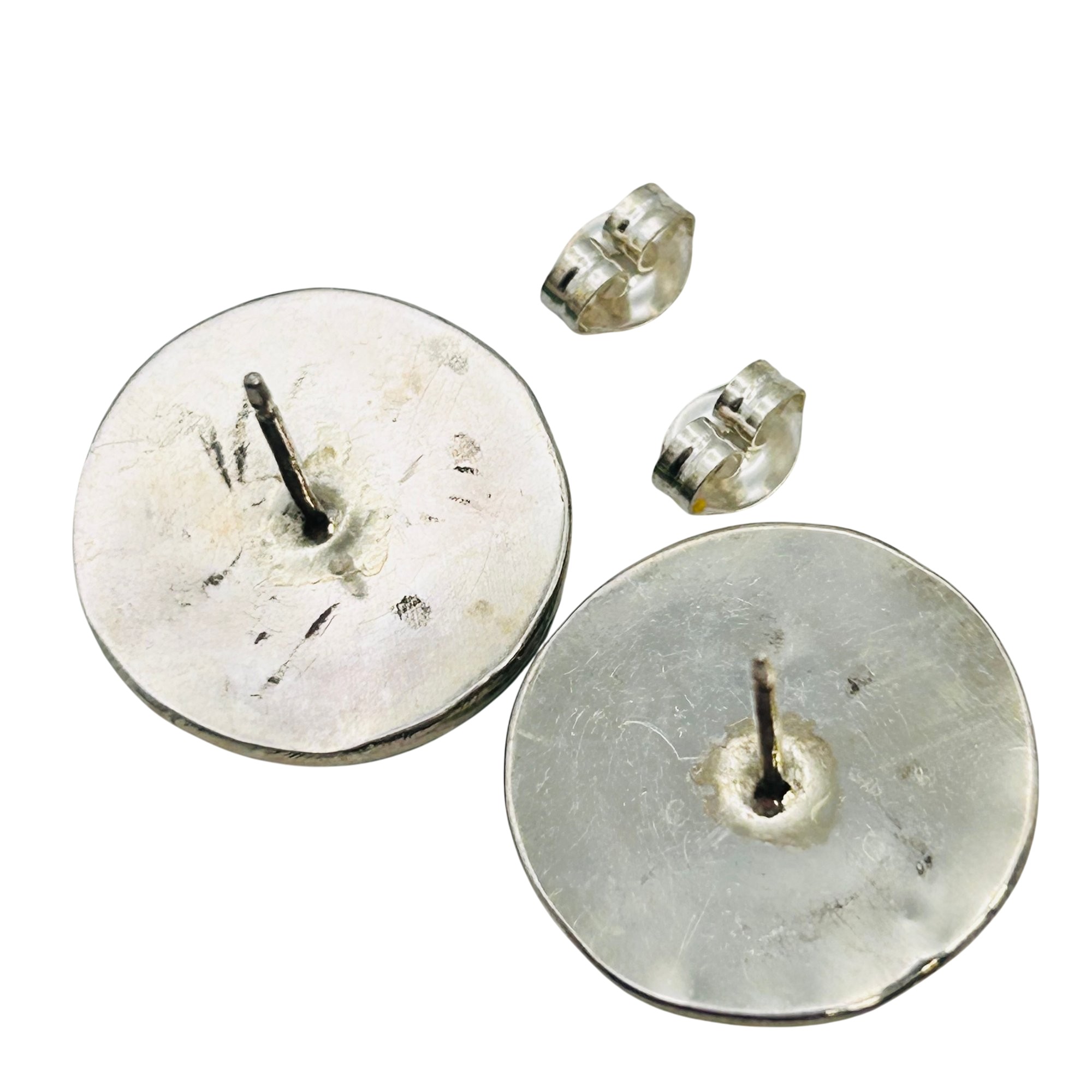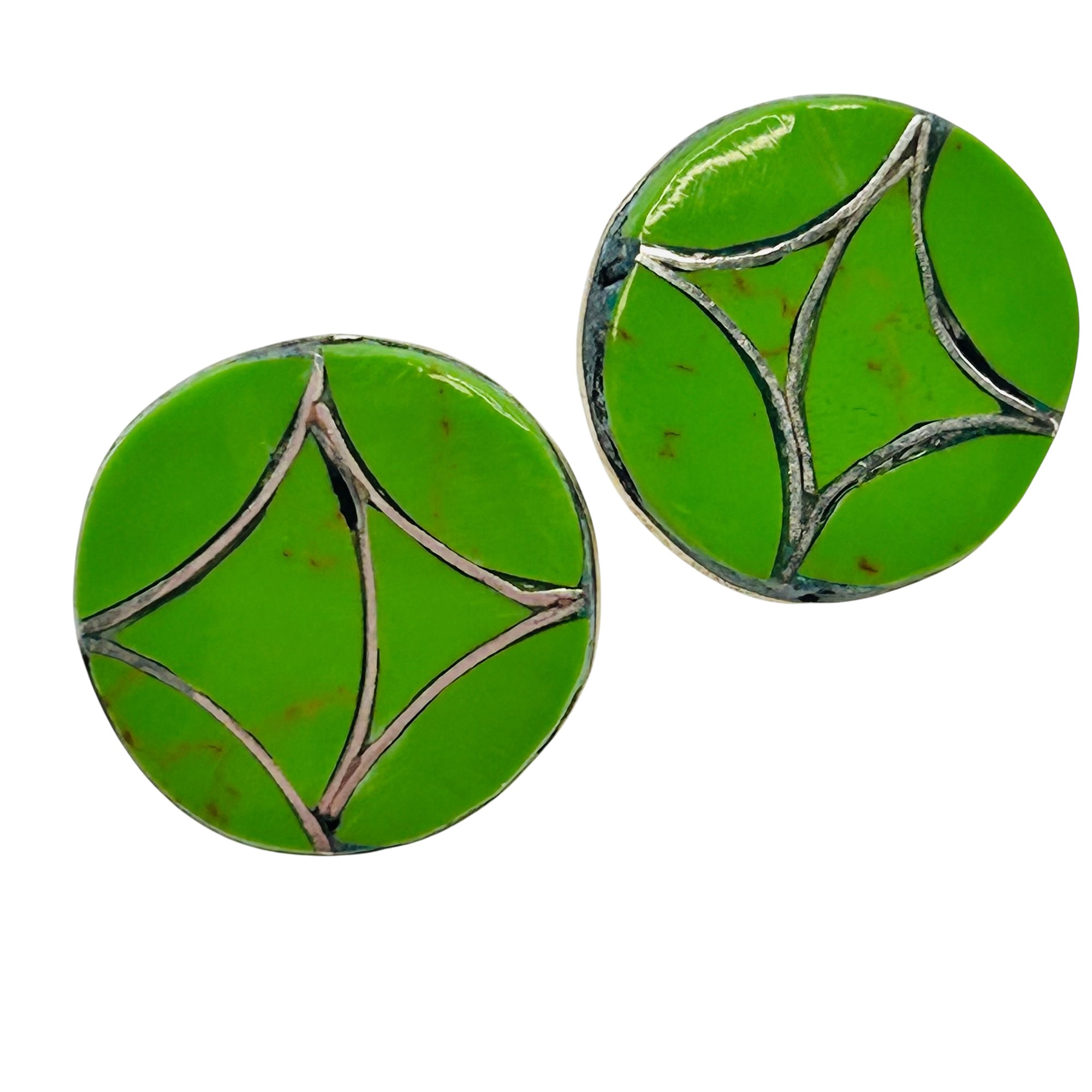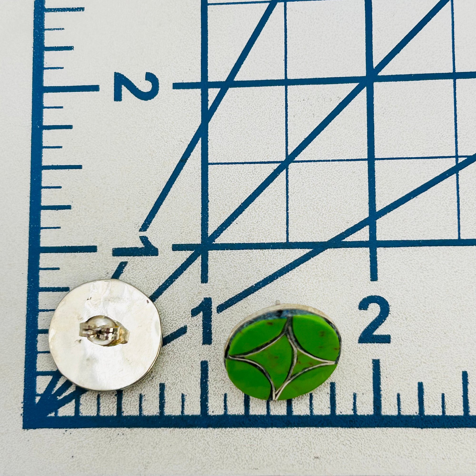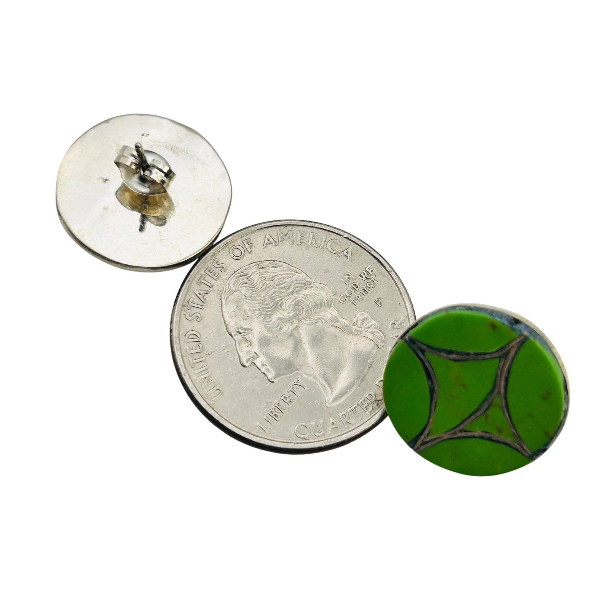 Karen Lalio Zuni Sterling inlay Gaspeite round Earrings 3.4 grams