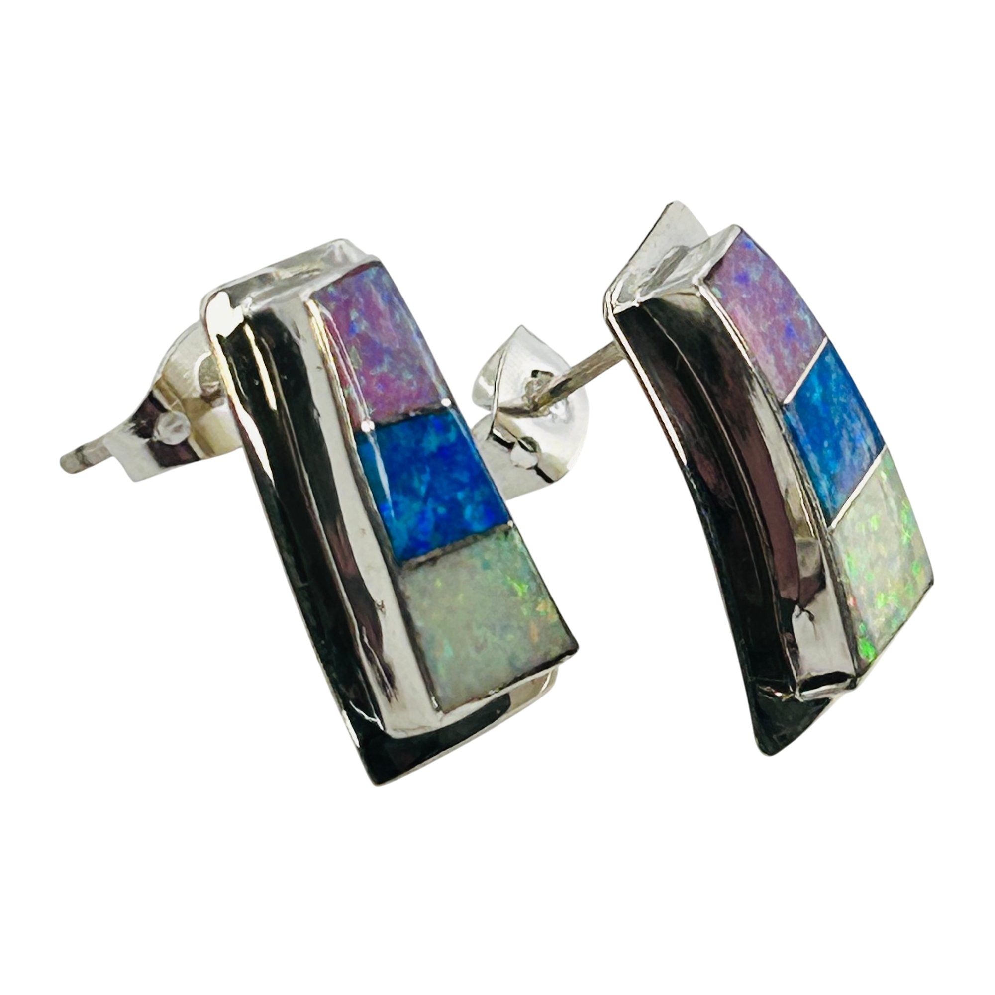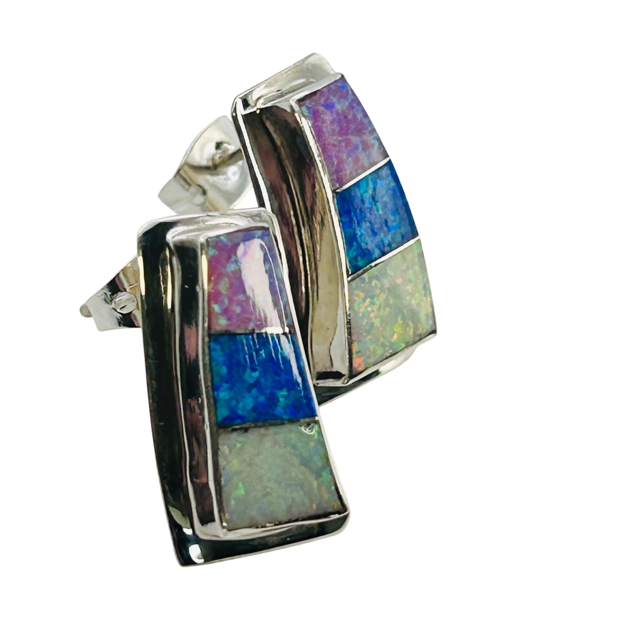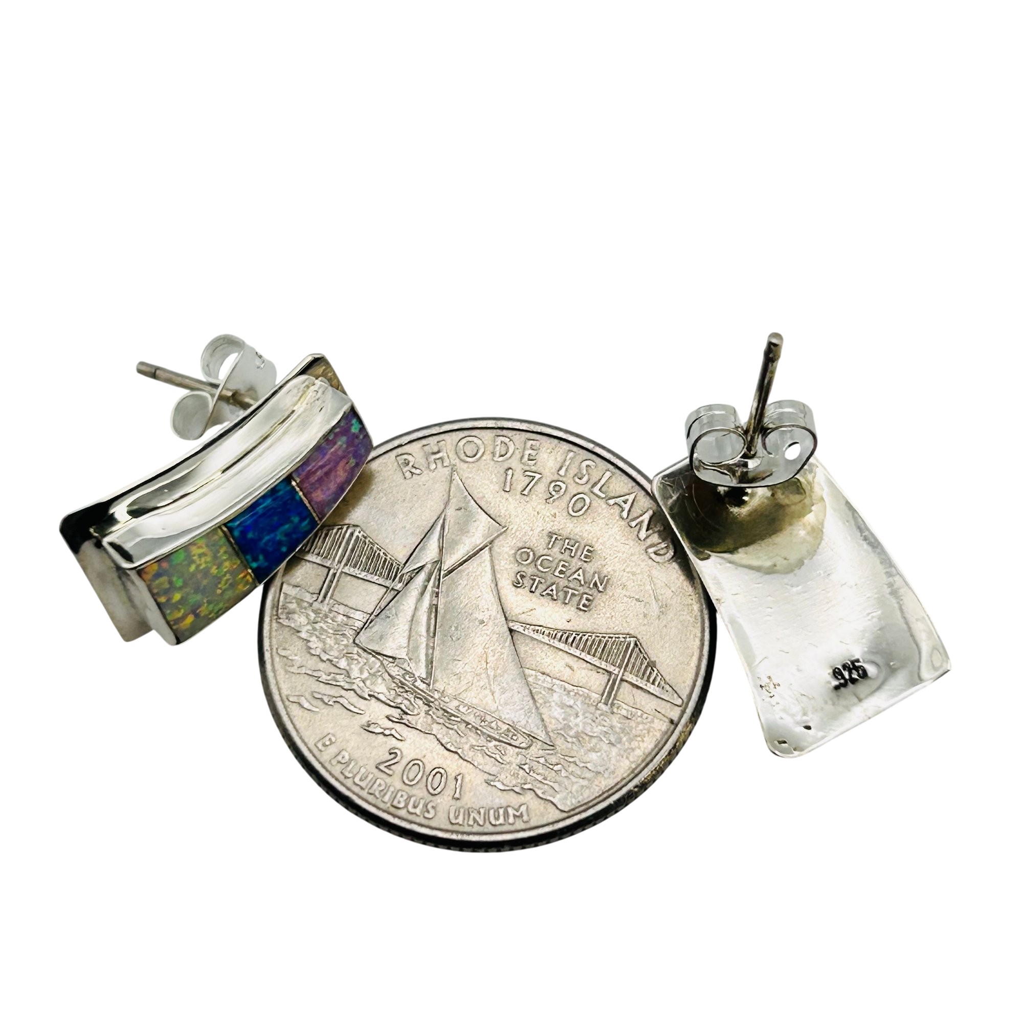 Norvin Johnson Navajo Sterling Opal bezel set pushback Earring 2.57 grams