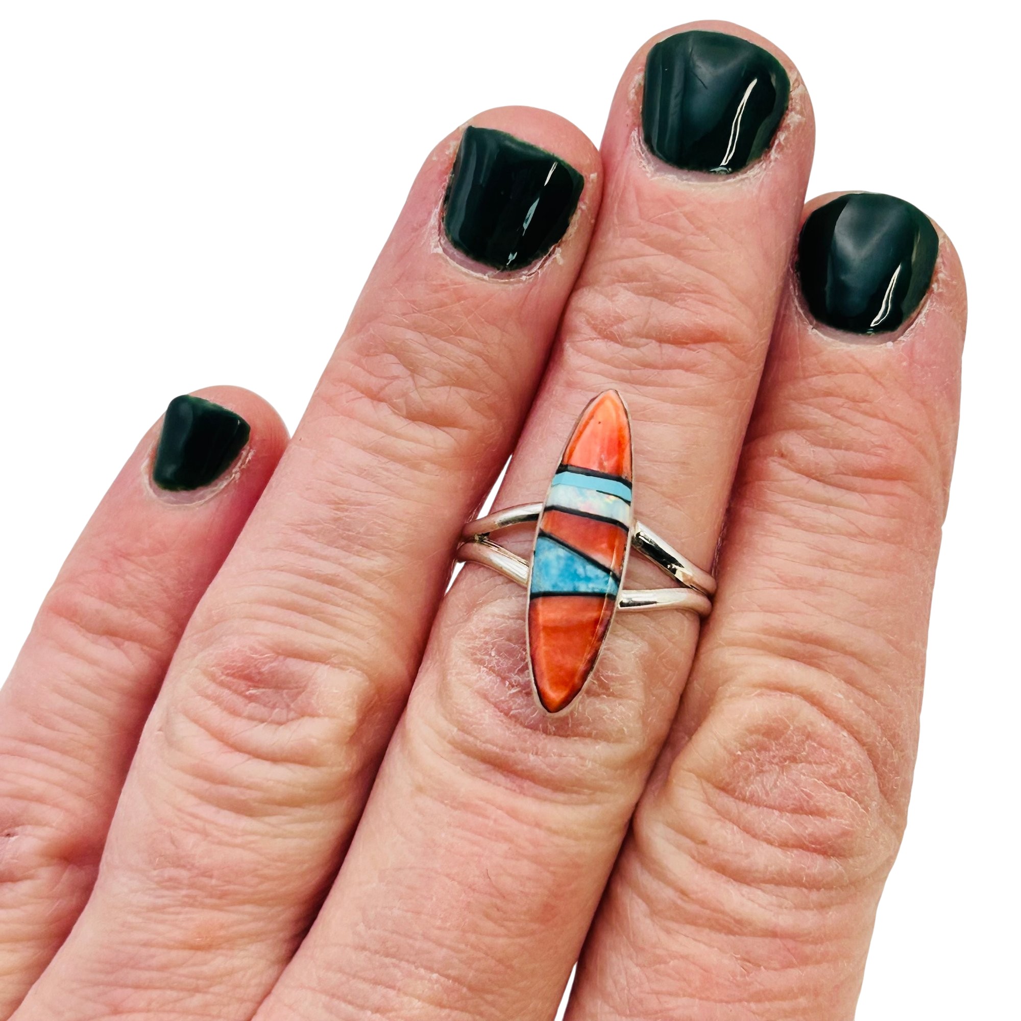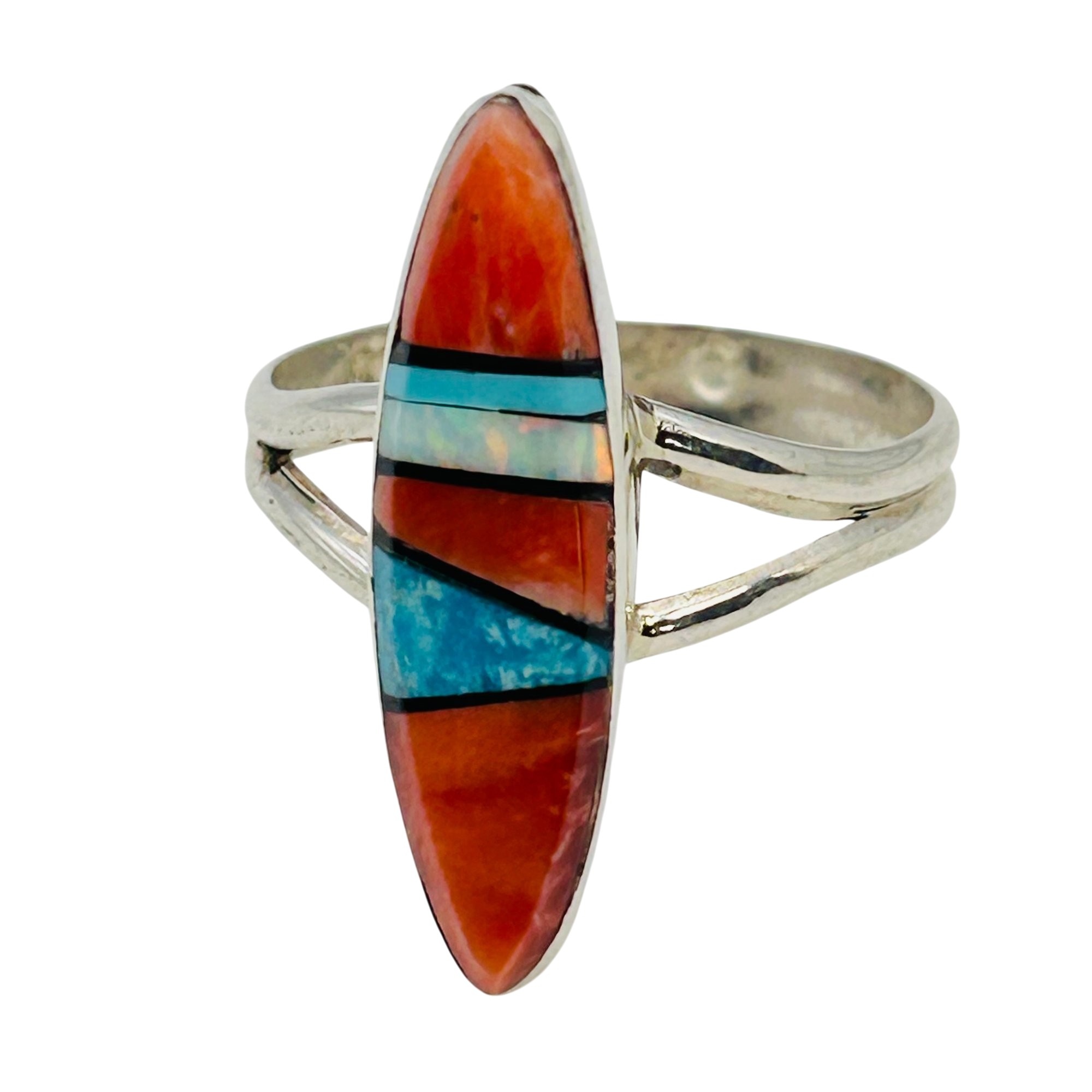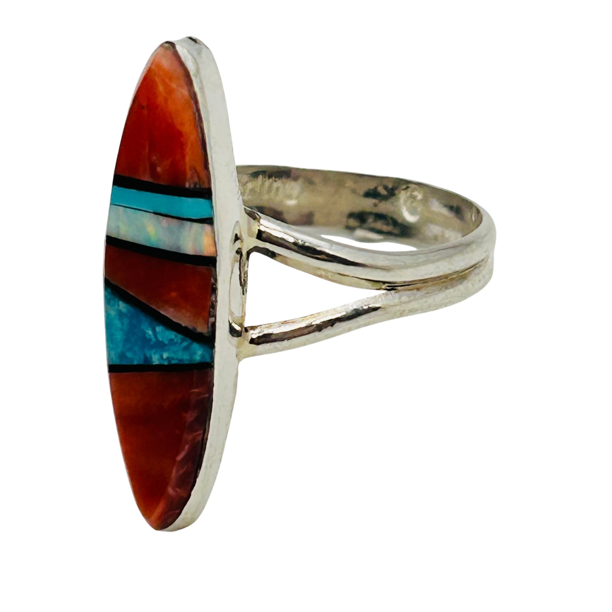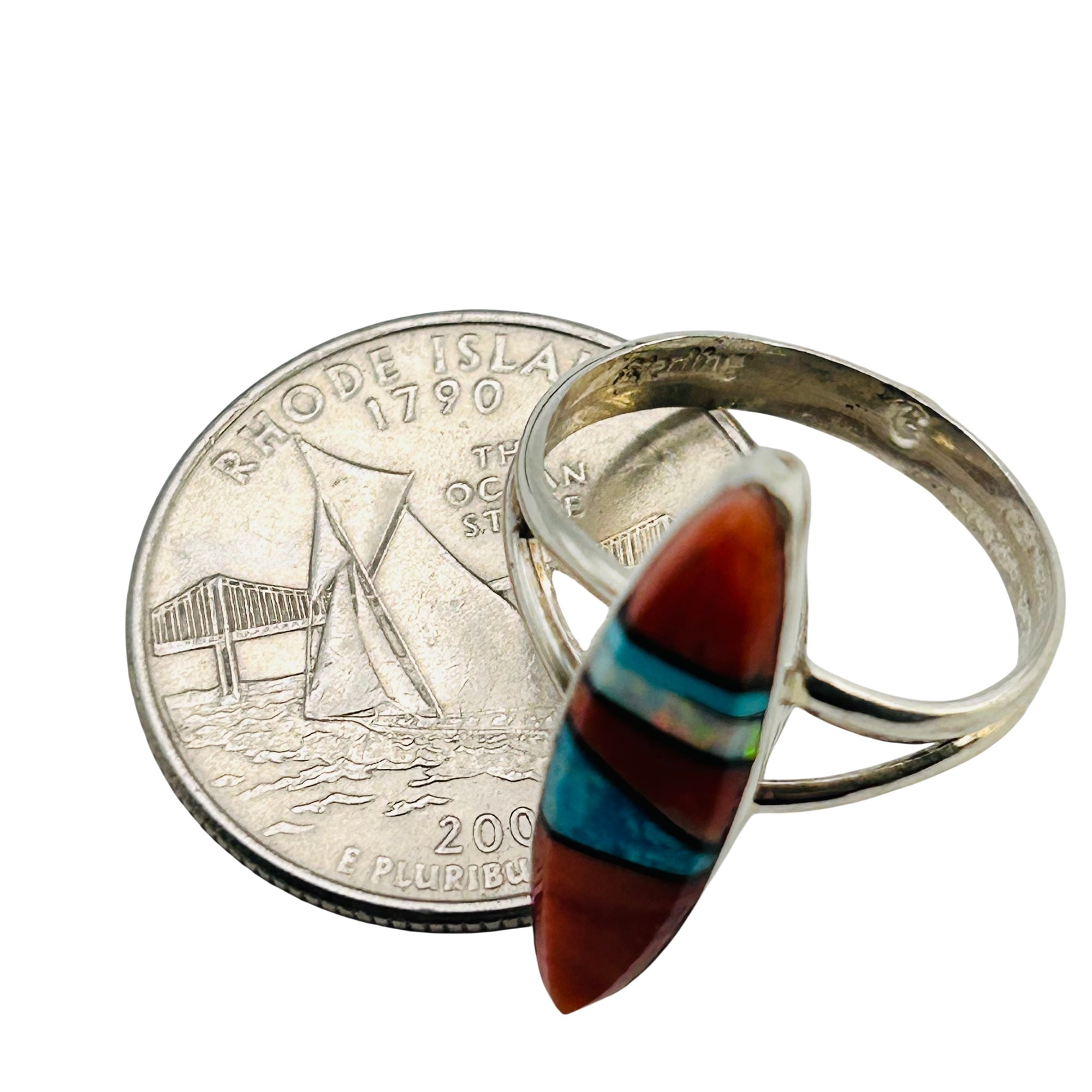 Germane Smith Navajo Sterling Multi Stone Spiny Oyster and Opal Ring SZ. 7.5 2.7 grams